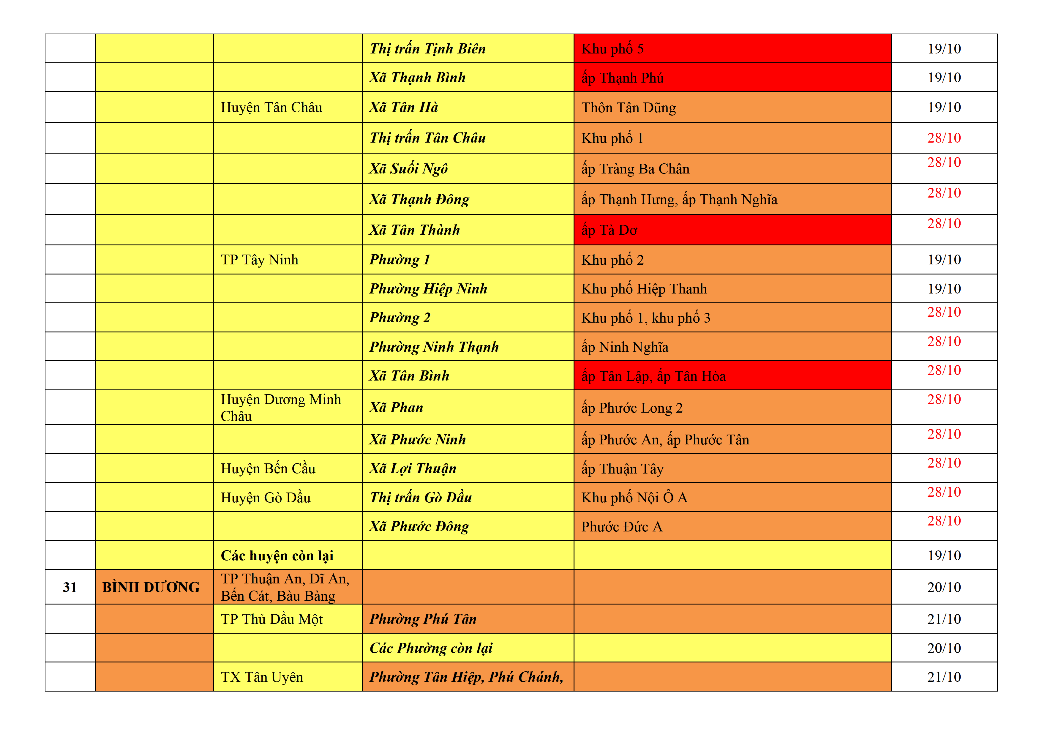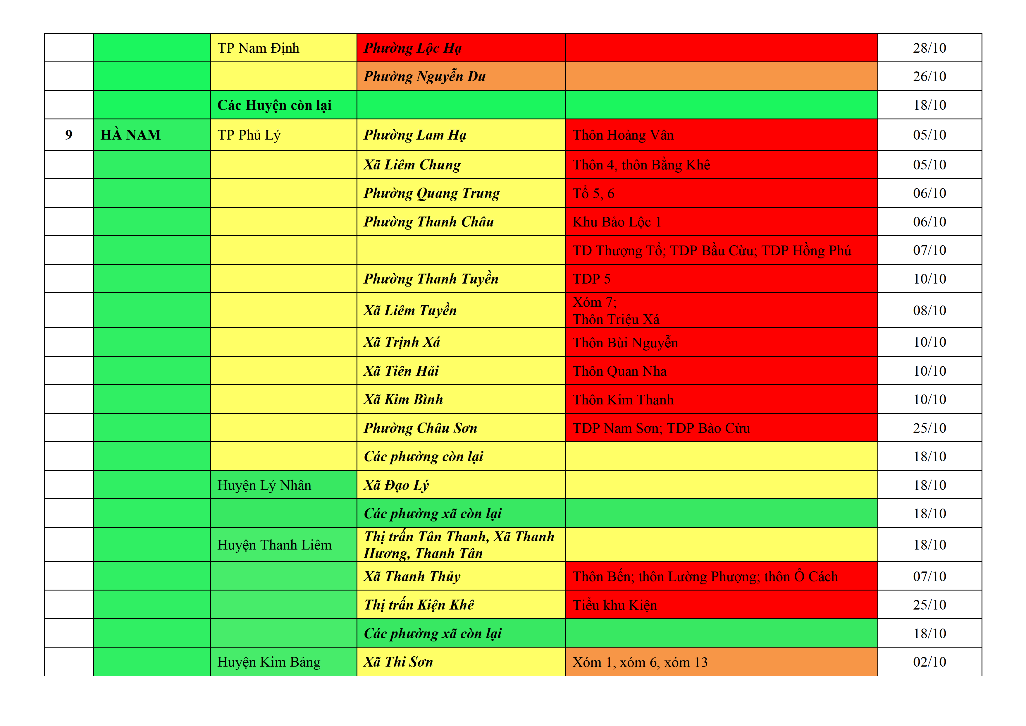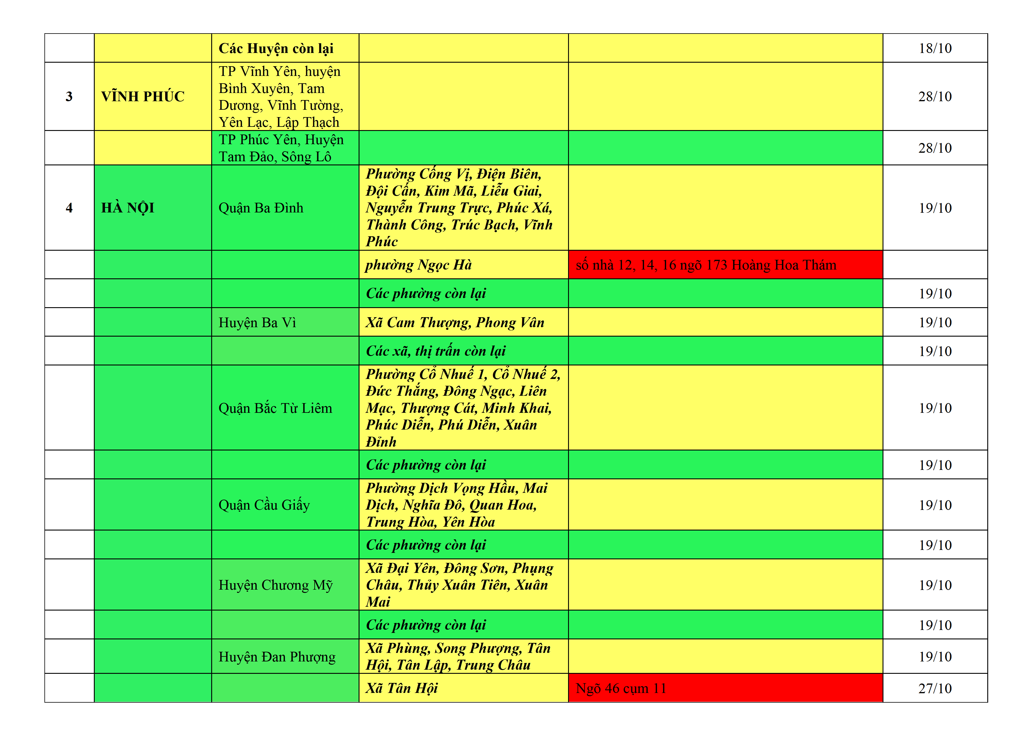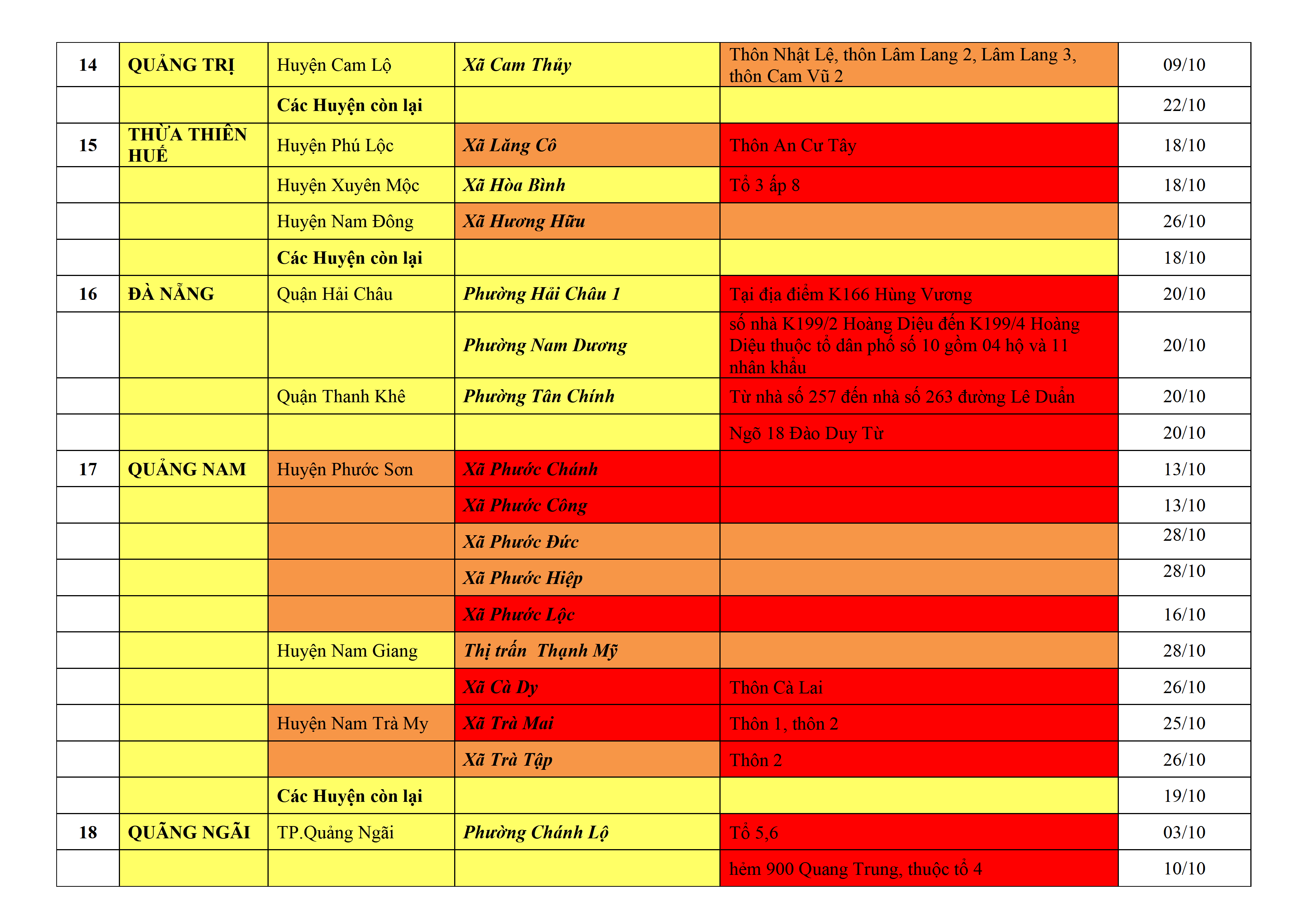 Lưu ý: Các tỉnh, thành phố không có tên trong bảng màu, đi lại bình thường, tuân thủ các biện pháp phòng chống dịch theo chỉ đạo của Bộ Y tế; khai báo y tế, thực hiện nghiêm 5K.