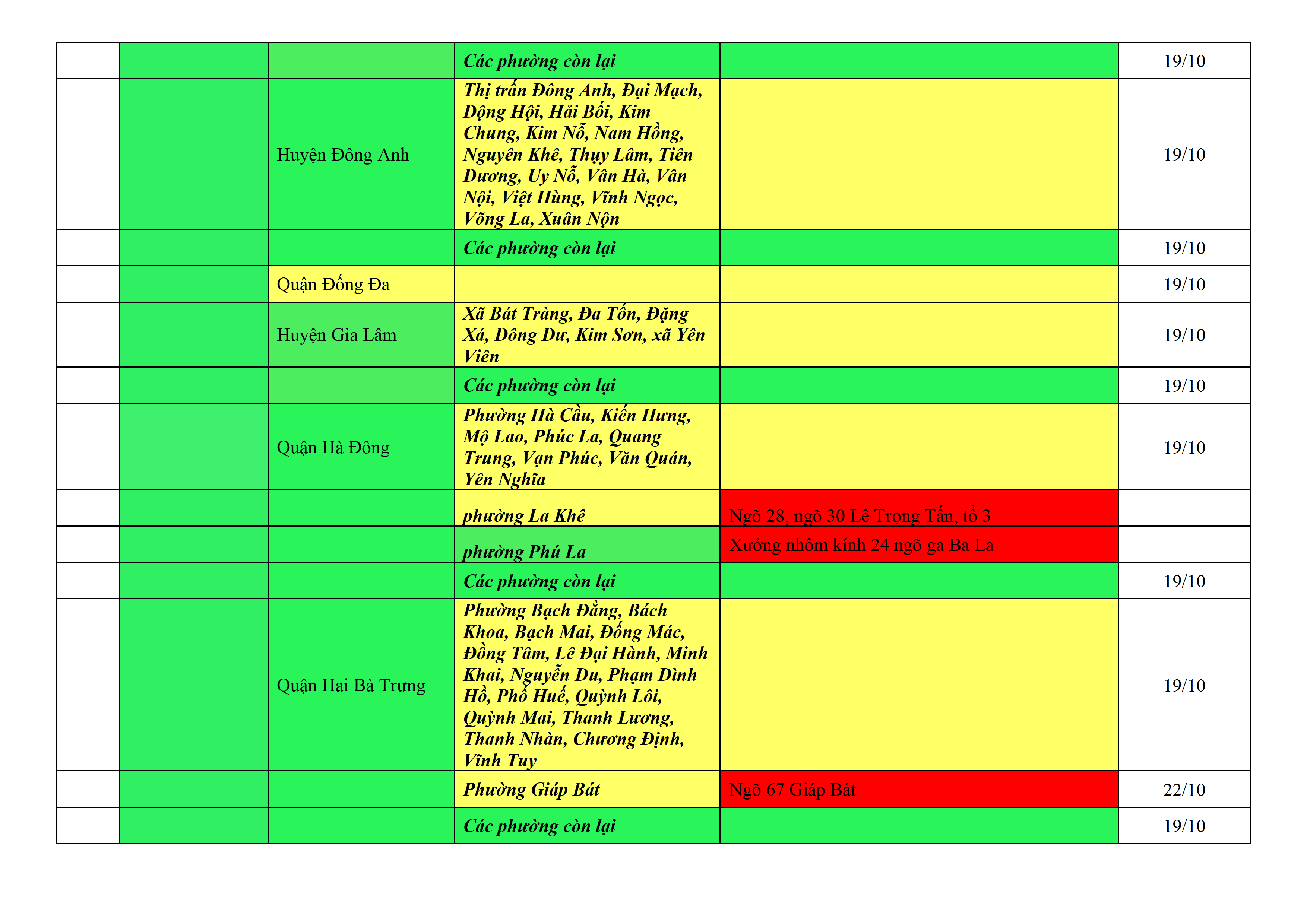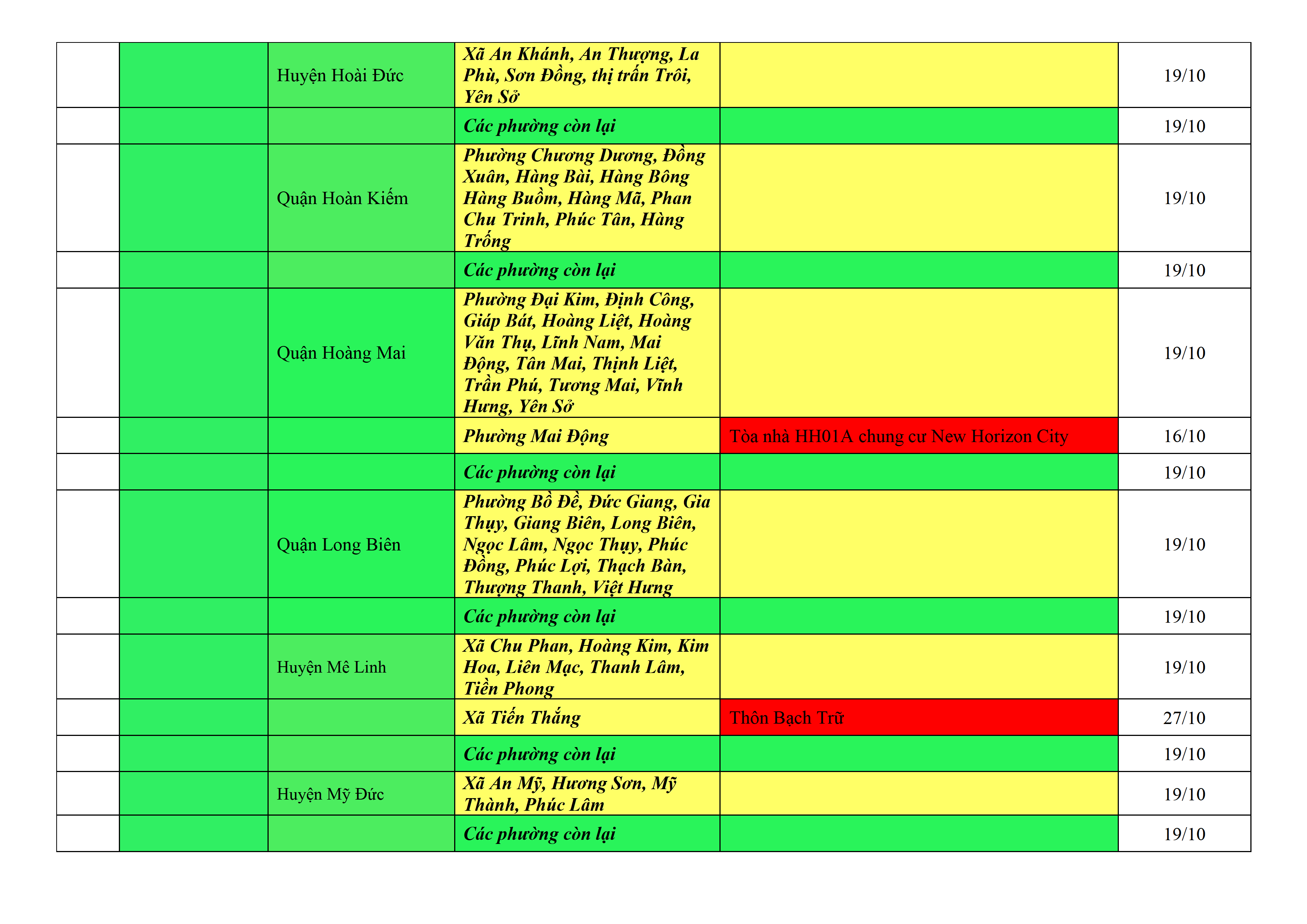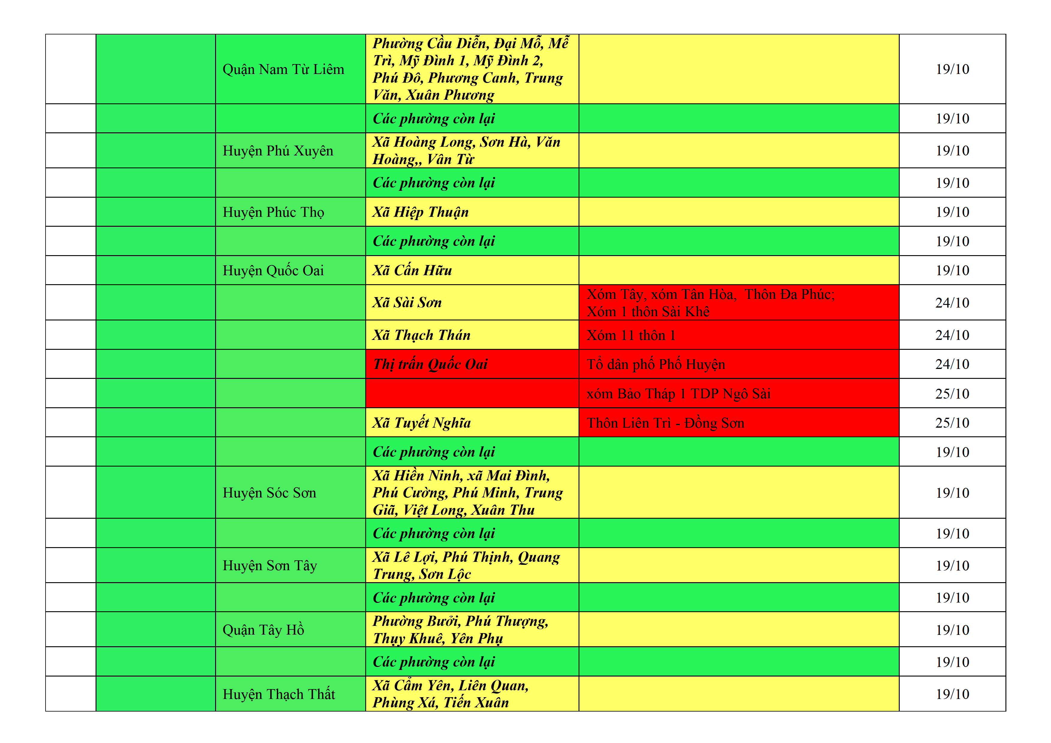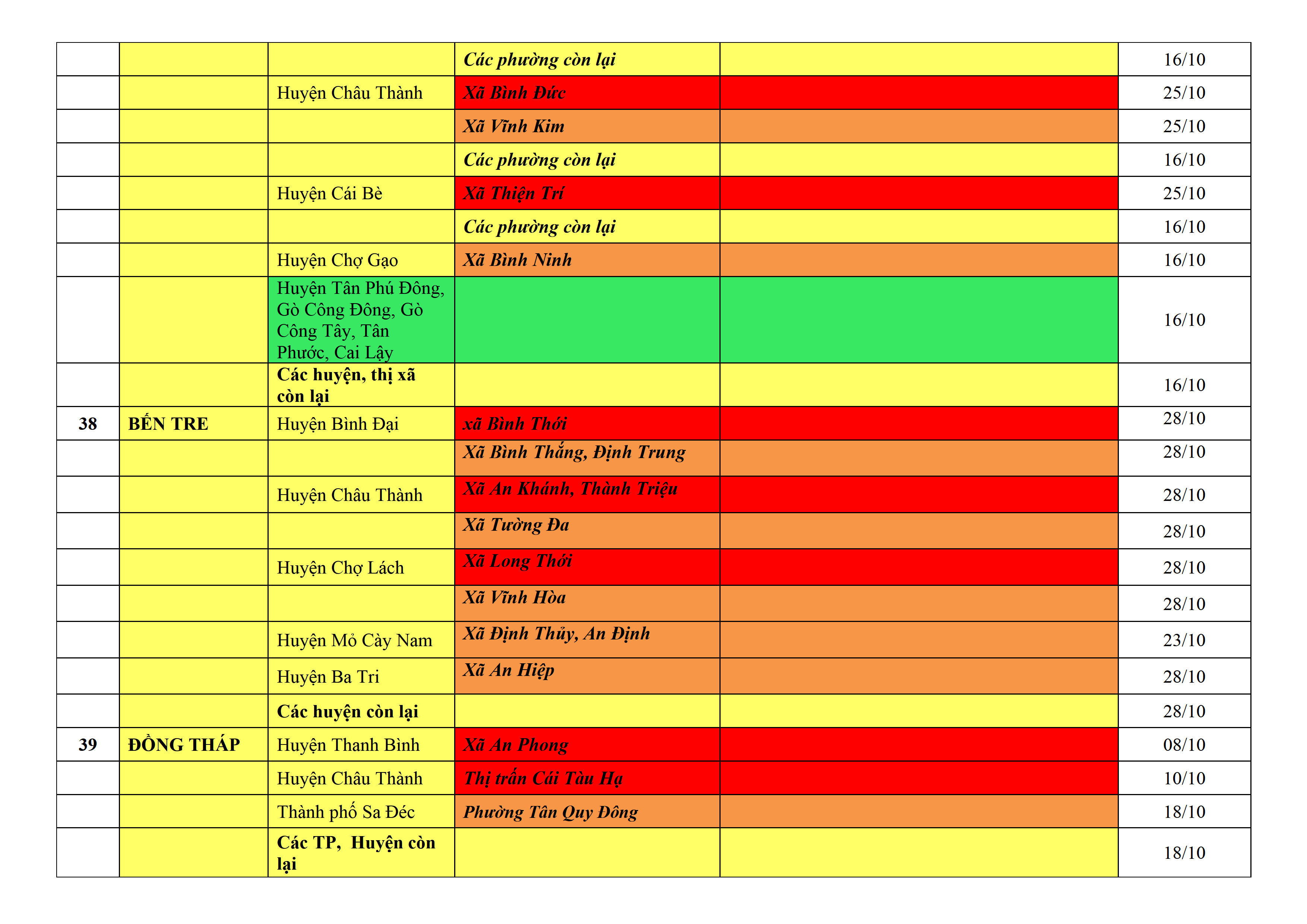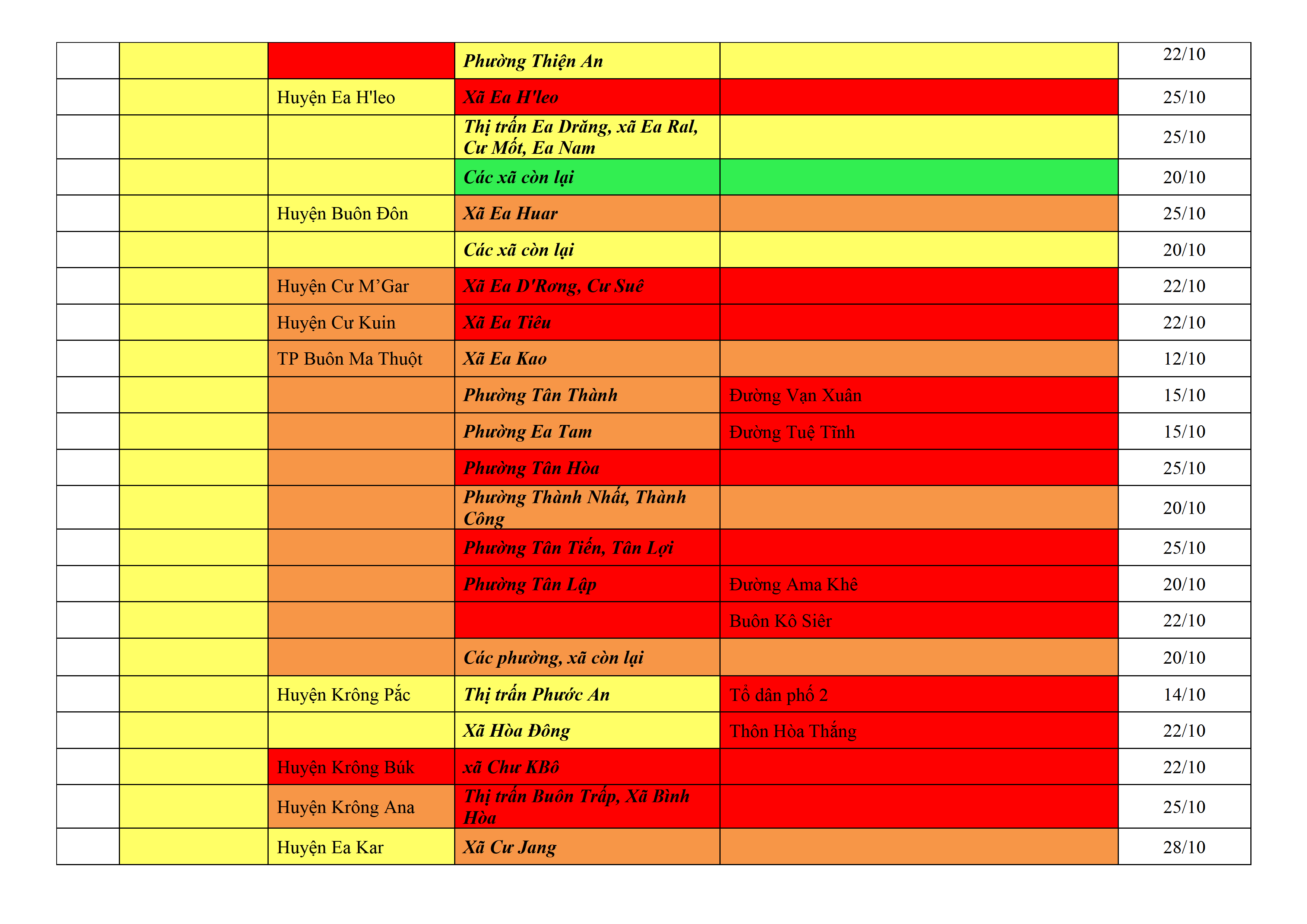Lưu ý: Các tỉnh, thành phố không có tên trong bảng màu, đi lại bình thường, tuân thủ các biện pháp phòng chống dịch theo chỉ đạo của Bộ Y tế; khai báo y tế, thực hiện nghiêm 5K.