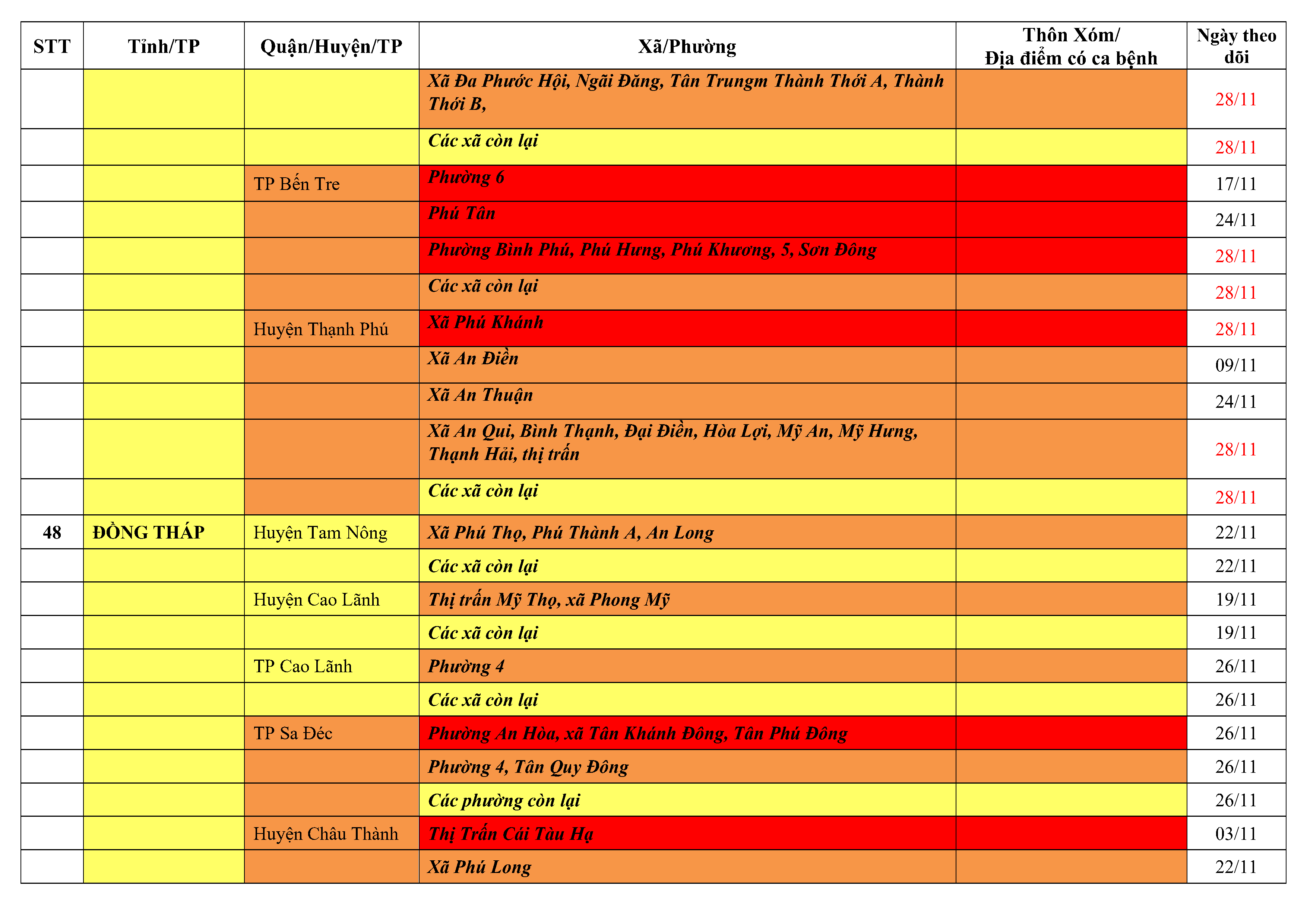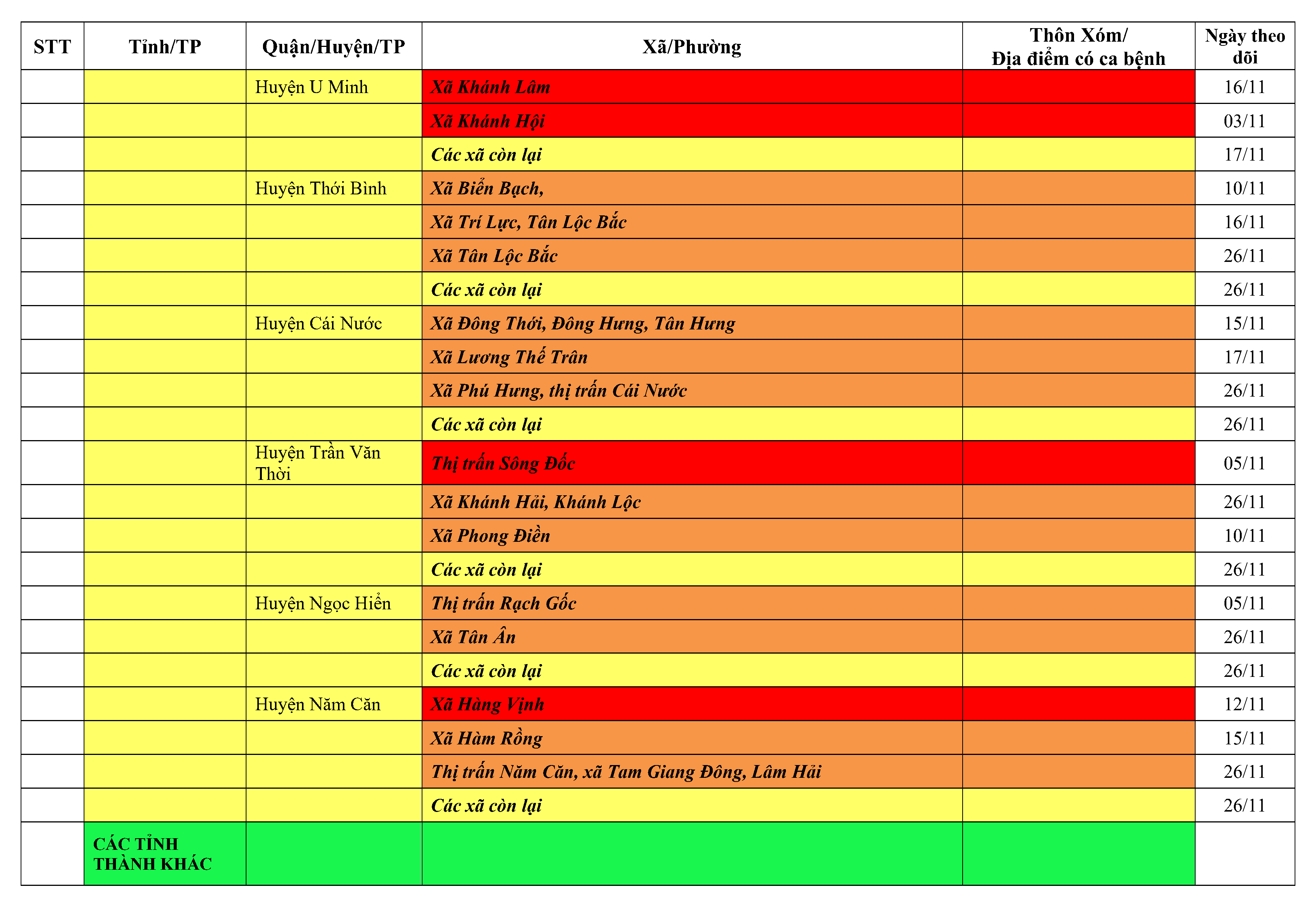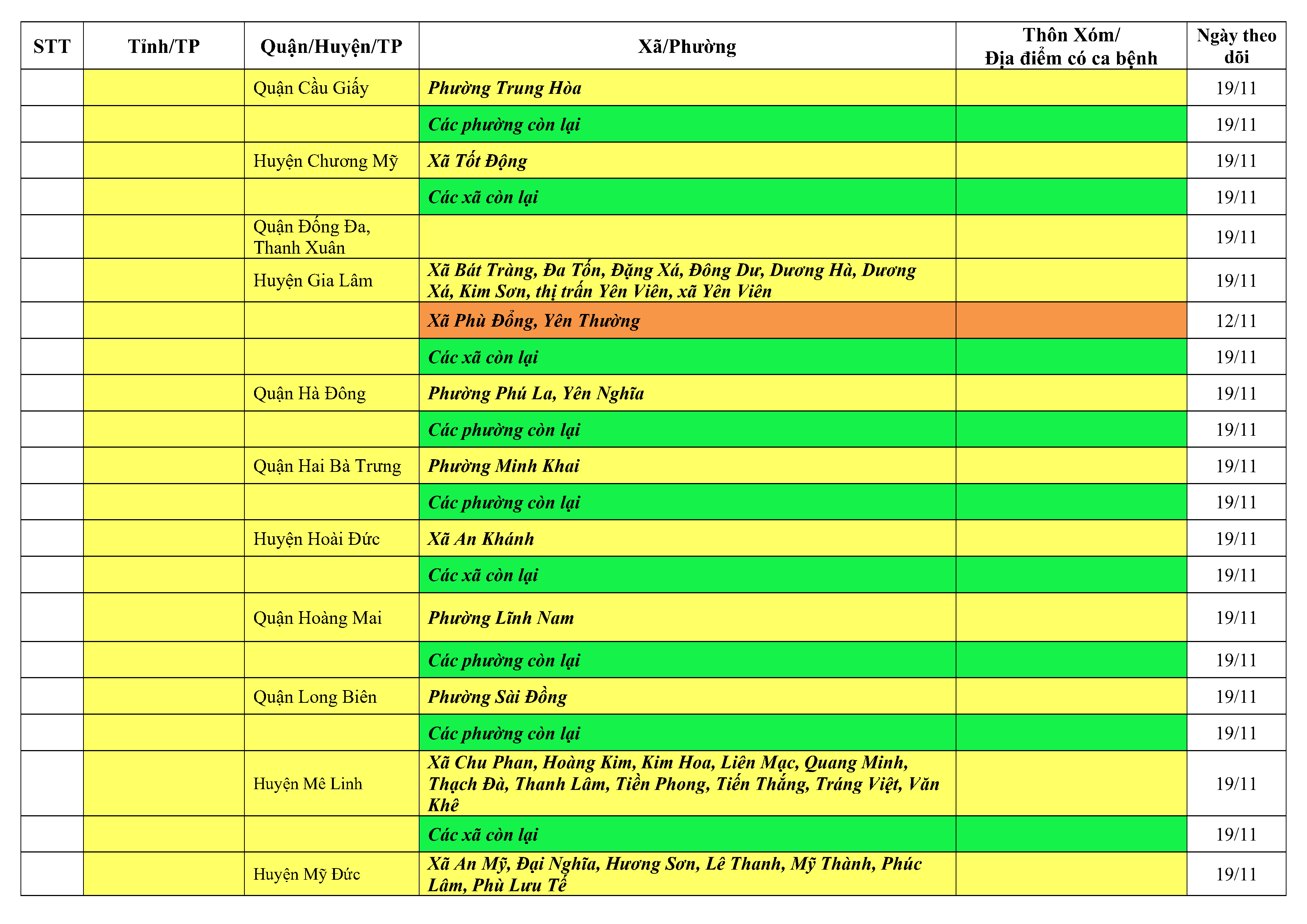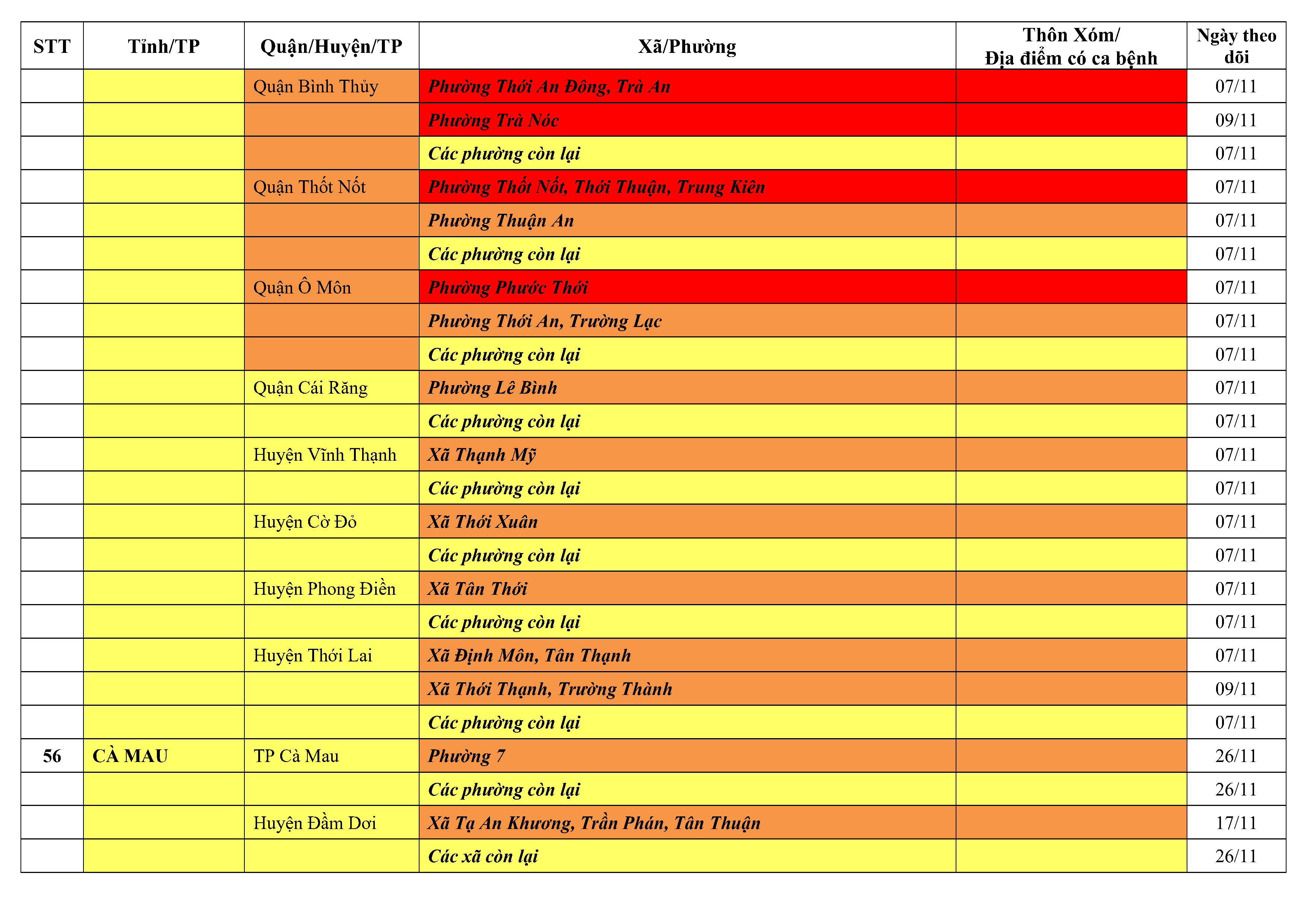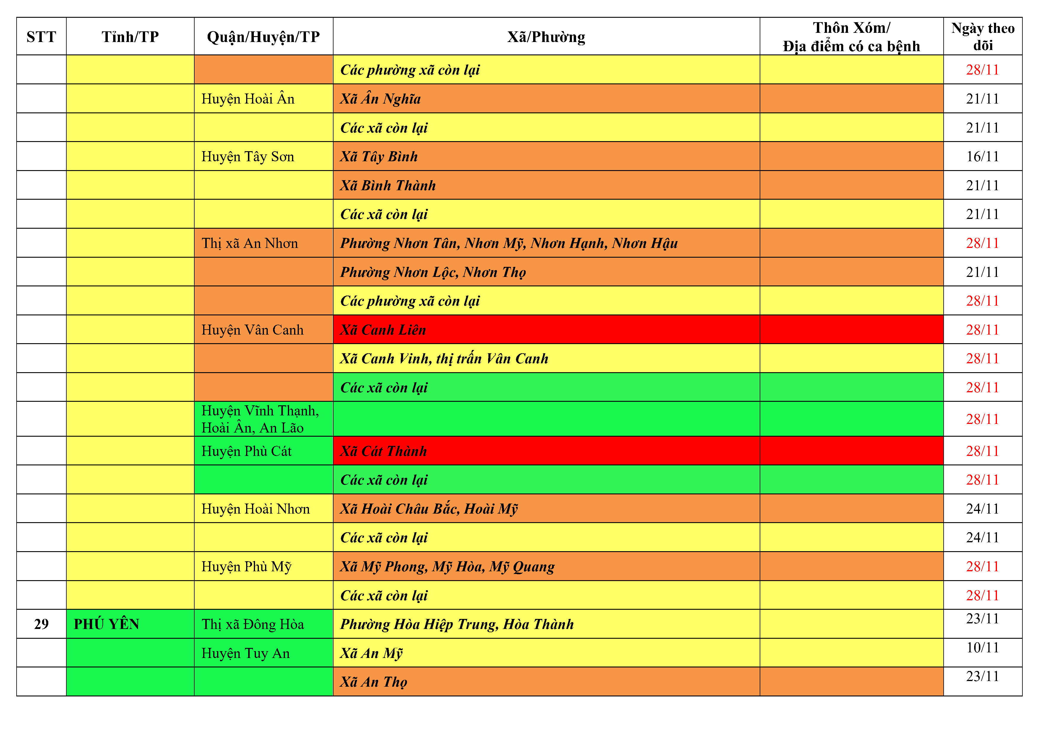 Lưu ý: Các tỉnh, thành phố không có tên trong bảng màu, đi lại bình thường, tuân thủ các biện pháp phòng chống dịch theo chỉ đạo của Bộ Y tế; khai báo y tế, thực hiện nghiêm 5K.