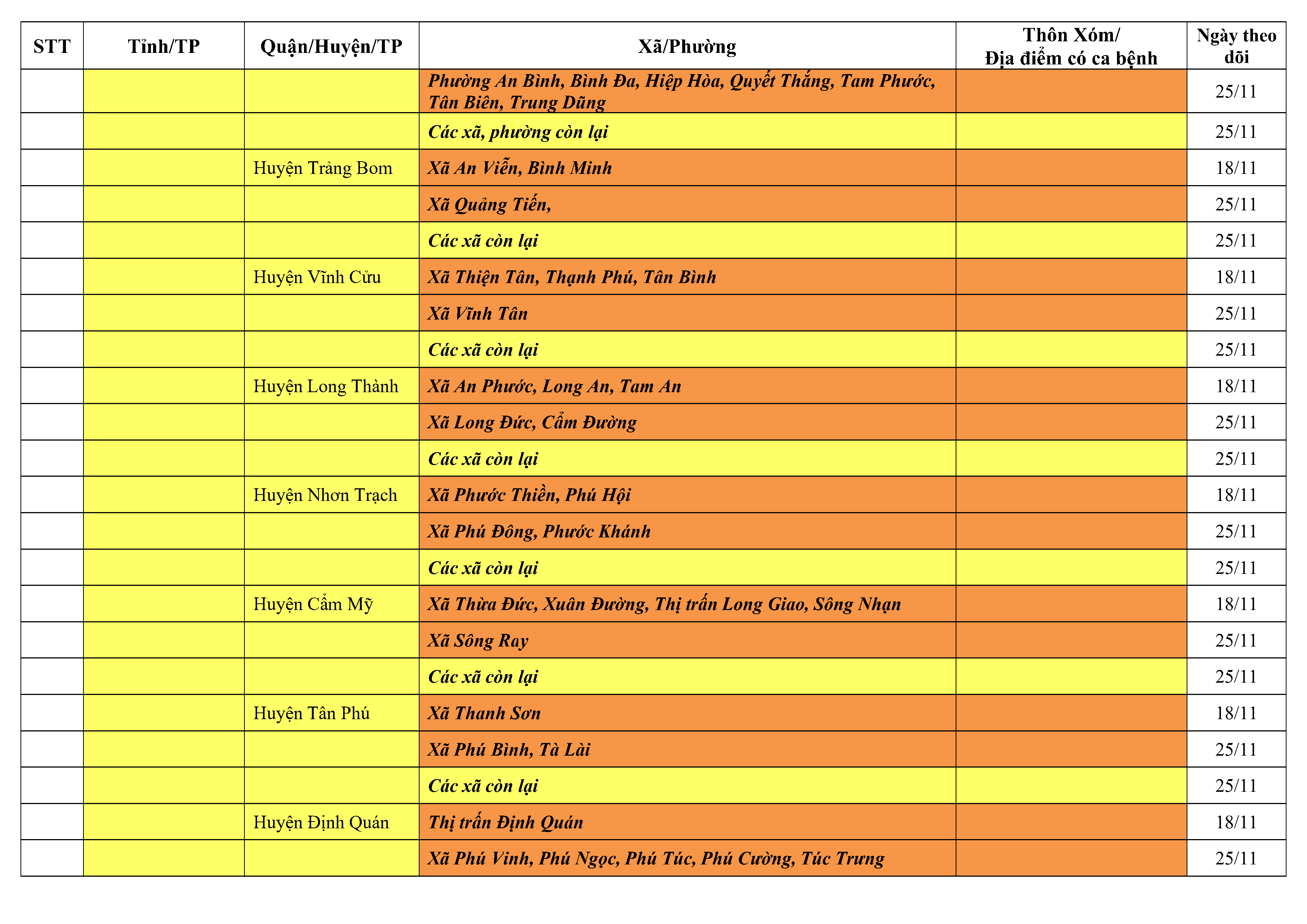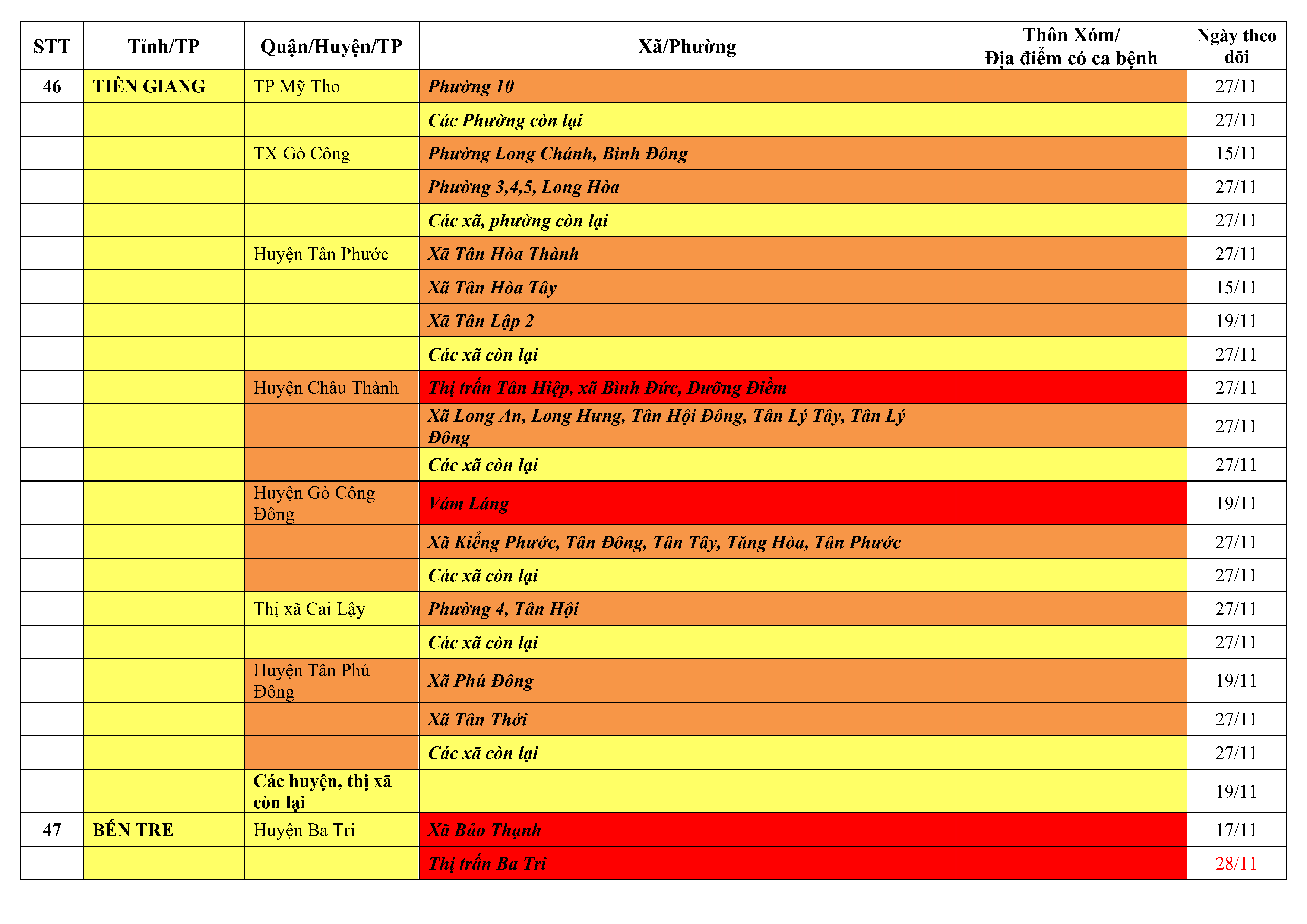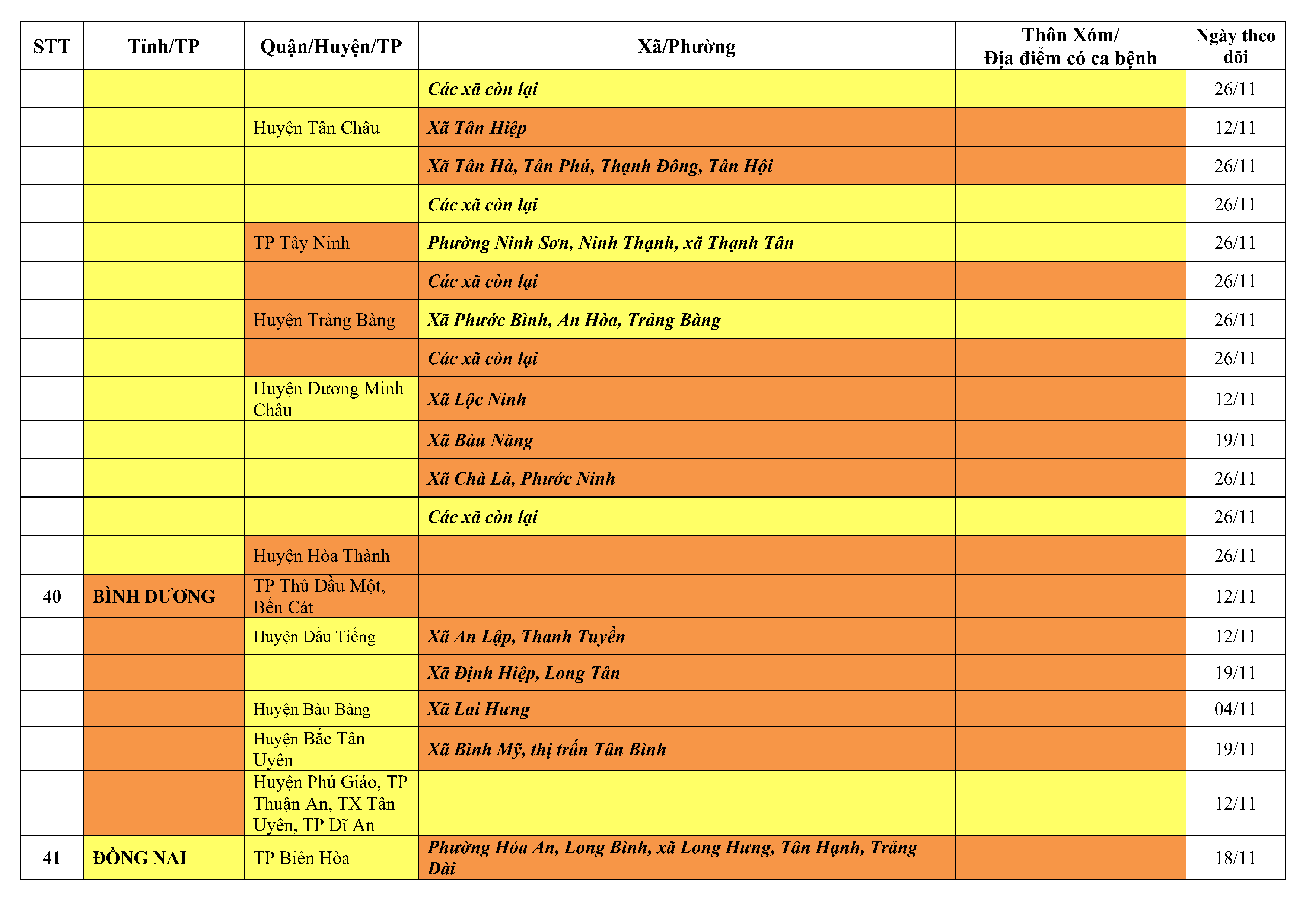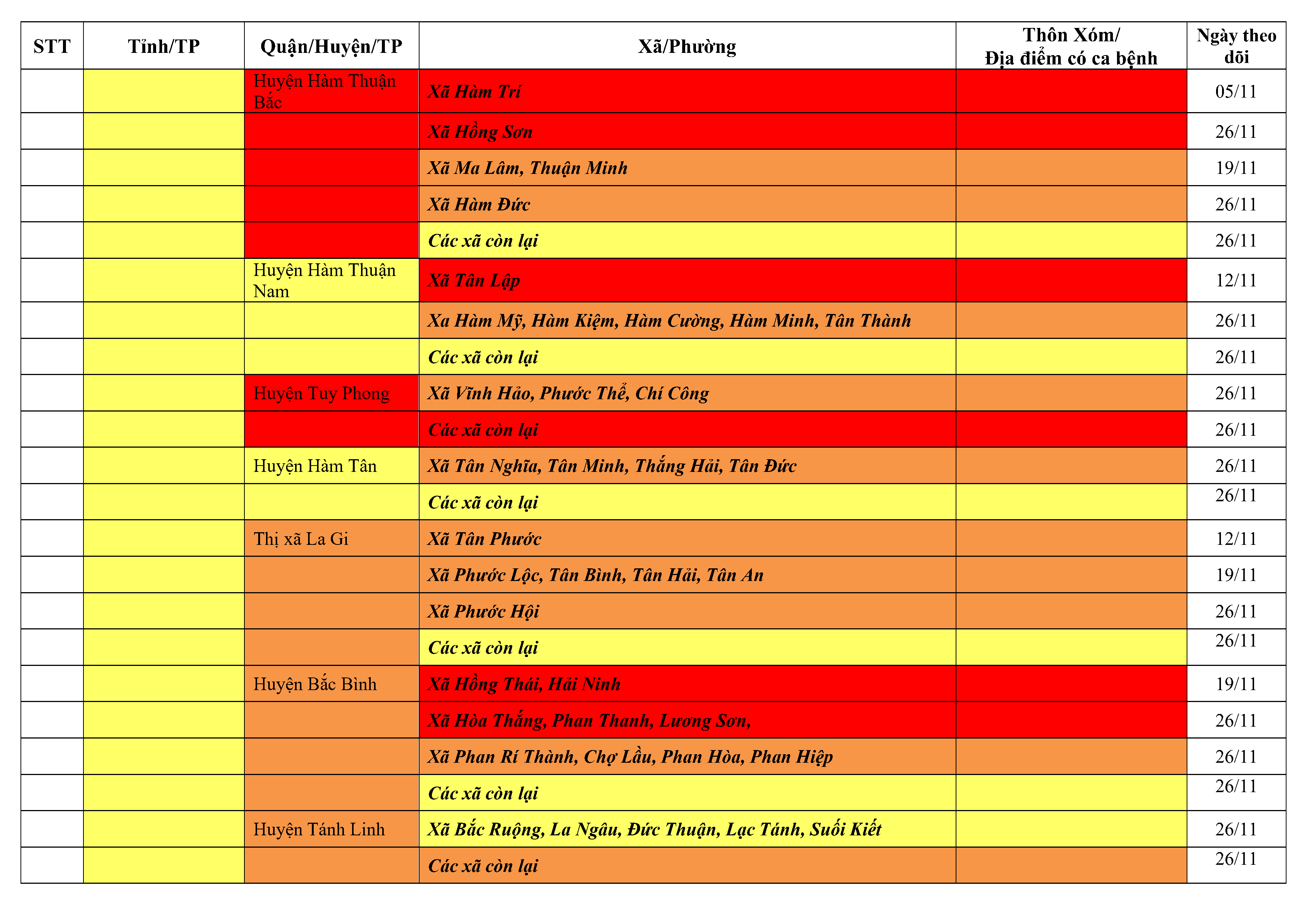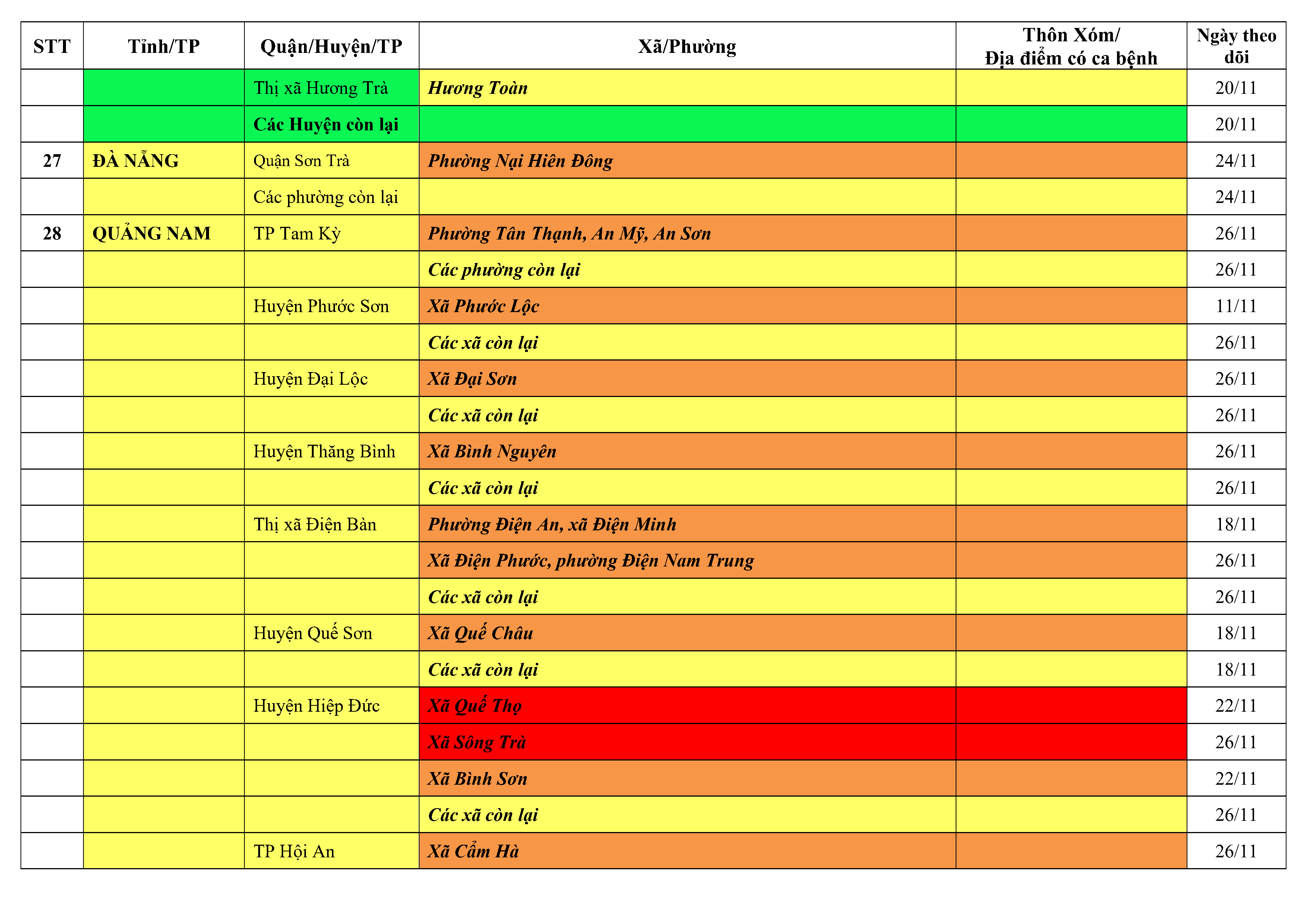 Lưu ý: Các tỉnh, thành phố không có tên trong bảng màu, đi lại bình thường, tuân thủ các biện pháp phòng chống dịch theo chỉ đạo của Bộ Y tế; khai báo y tế, thực hiện nghiêm 5K.