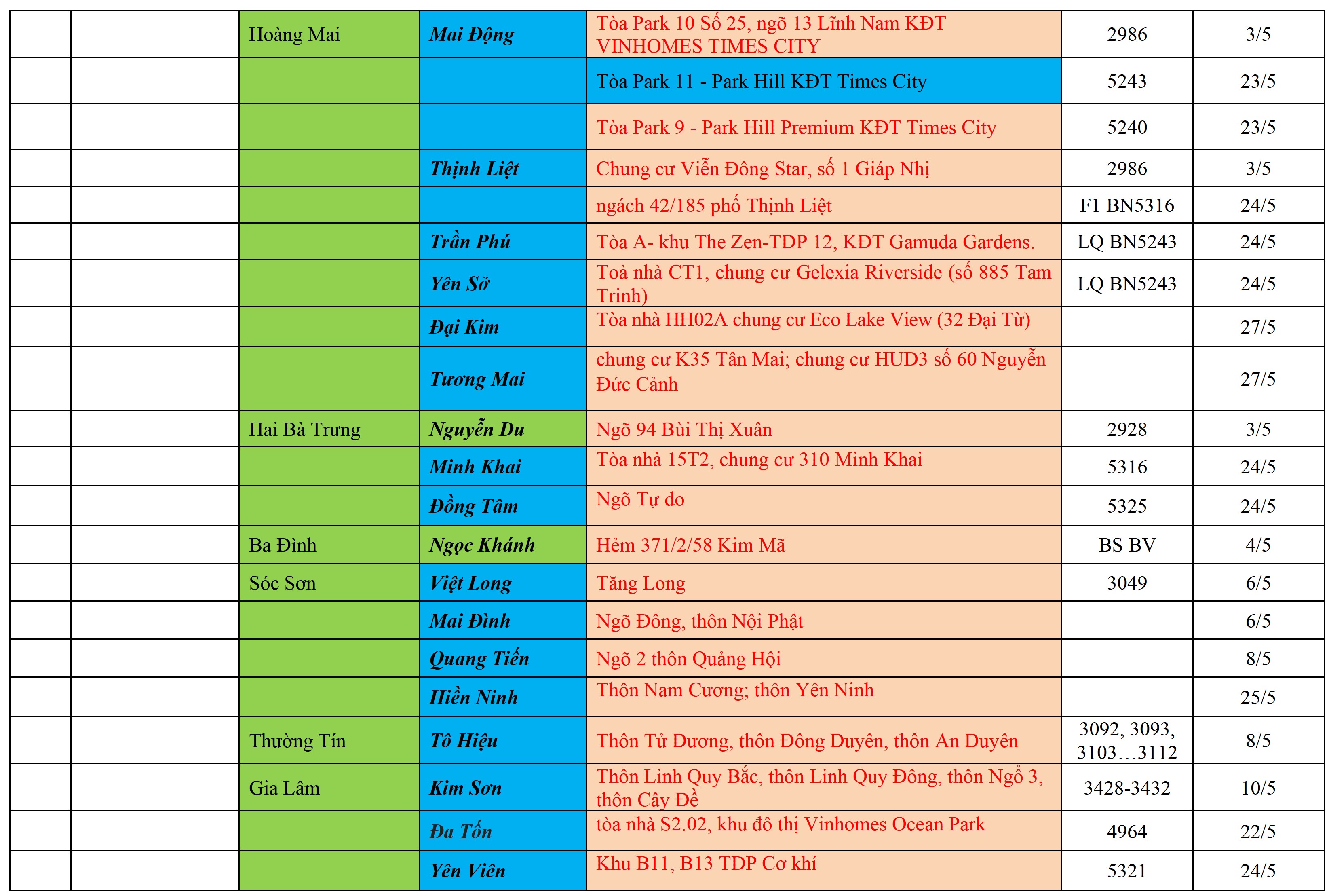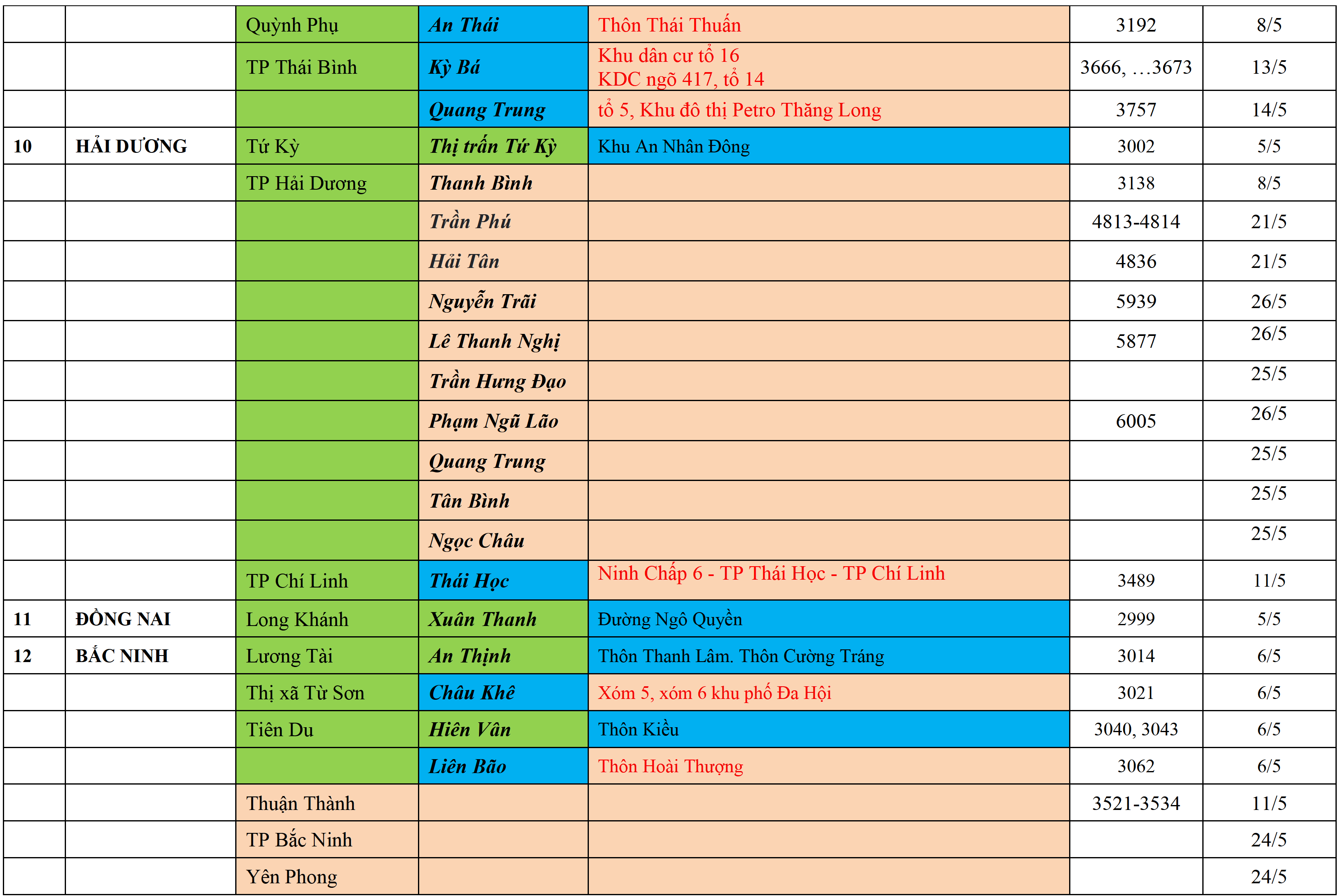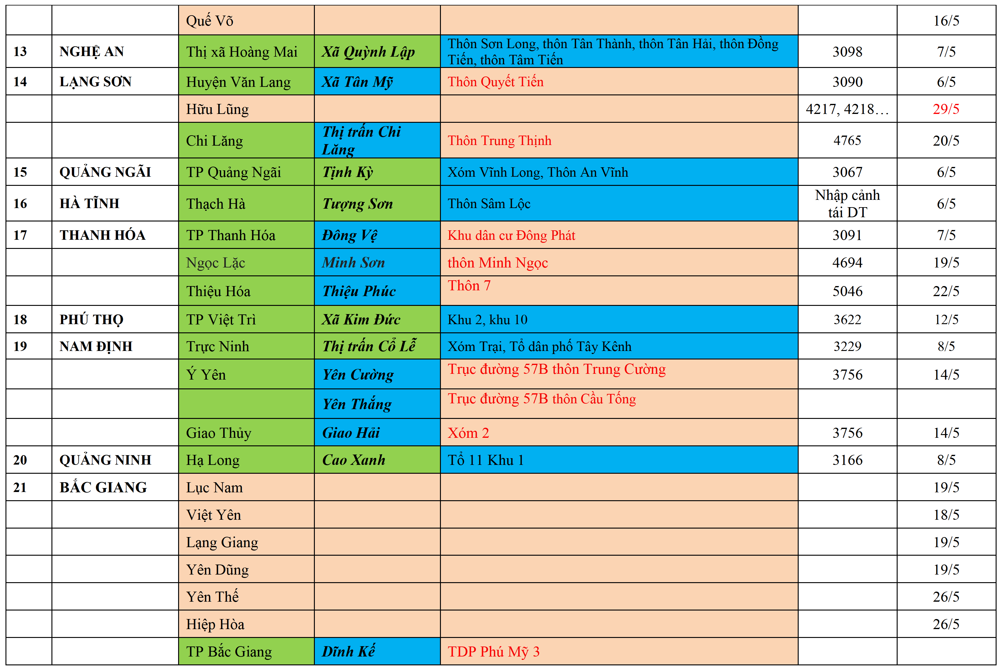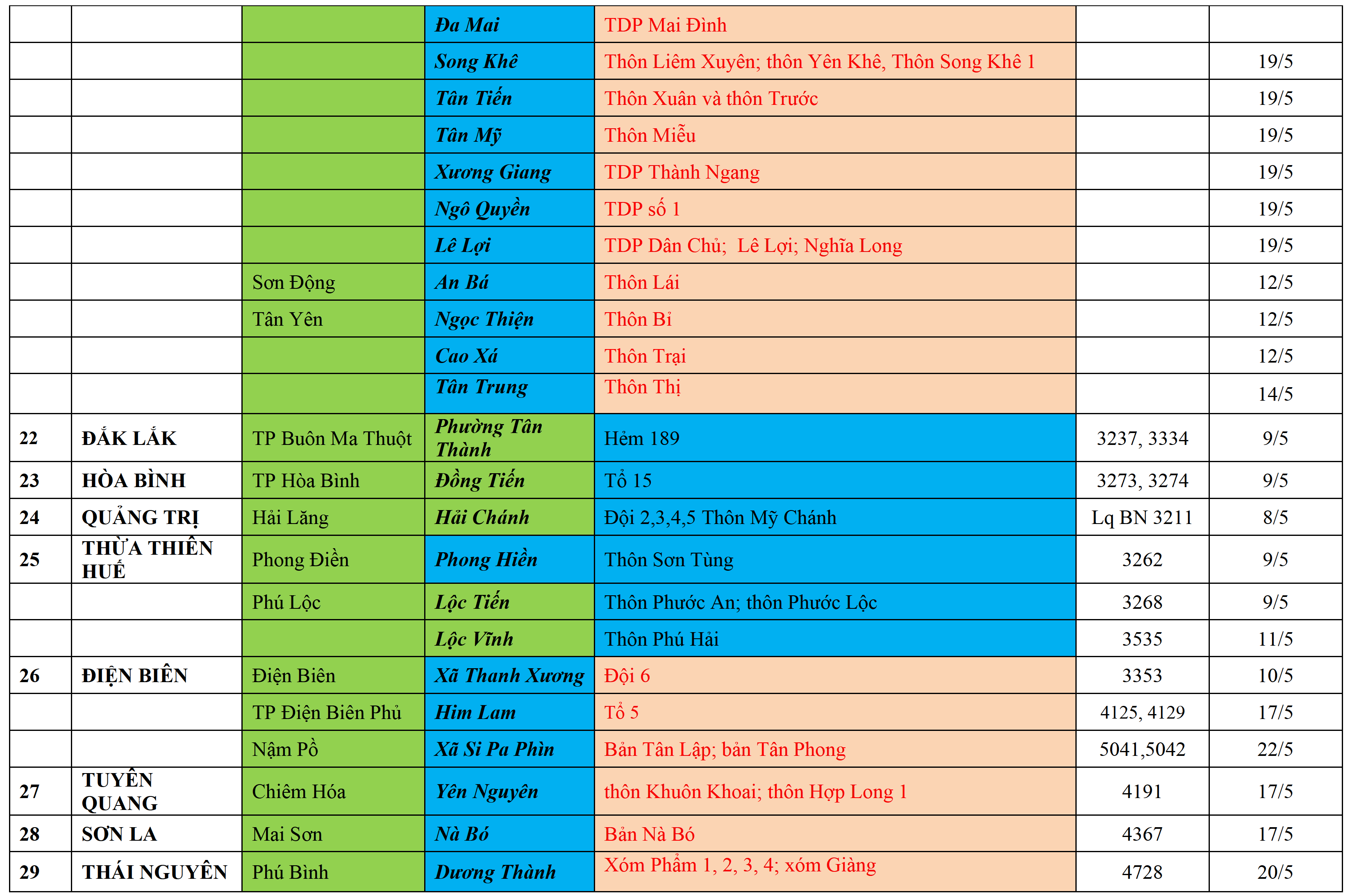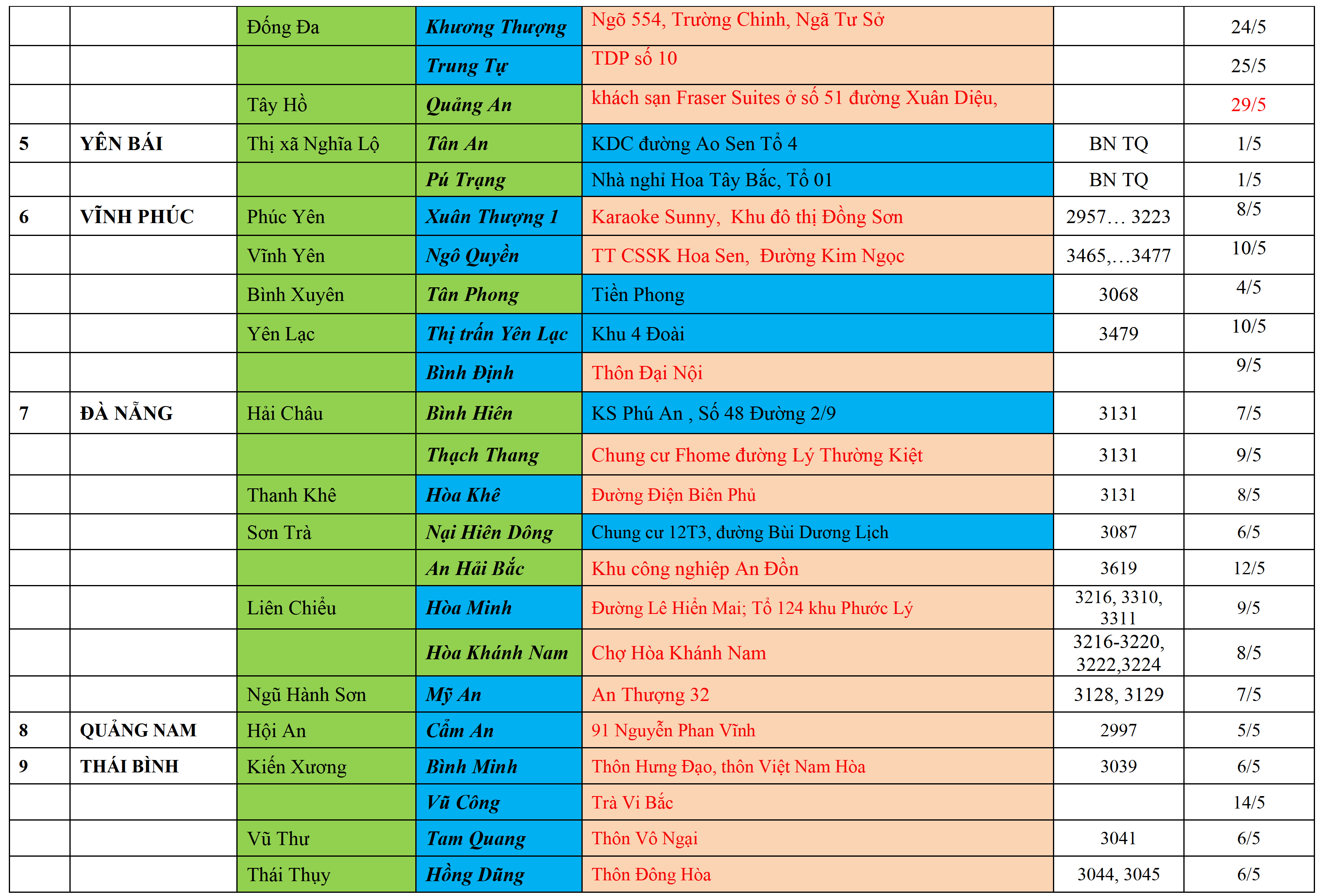 . Từ 12h00 ngày 30/5/2021 thay đổi biện pháp cách ly y tế đối với các địa phương: