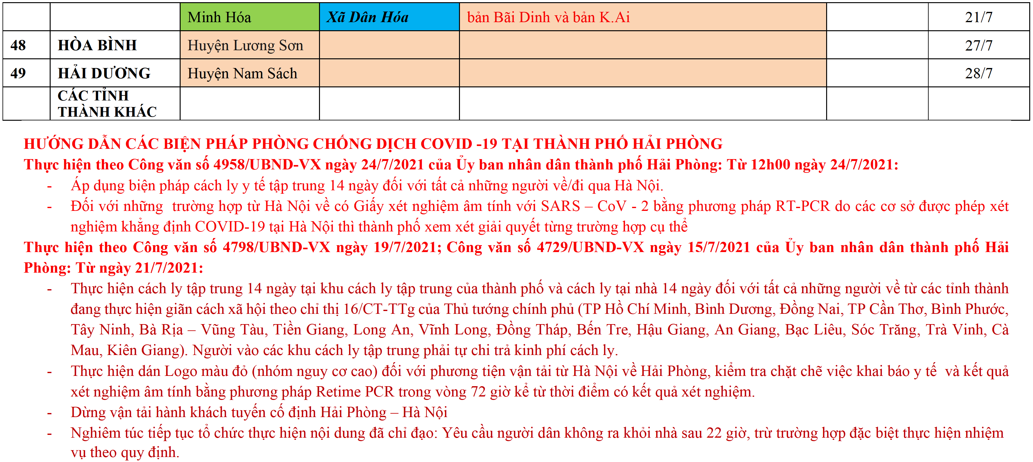 Thực hiện theo Công văn số 4958/UBND-VX ngày 24/7/2021 của Ủy ban nhân dân thành phố Hải Phòng, từ 12h00 ngày 24/7/2021: