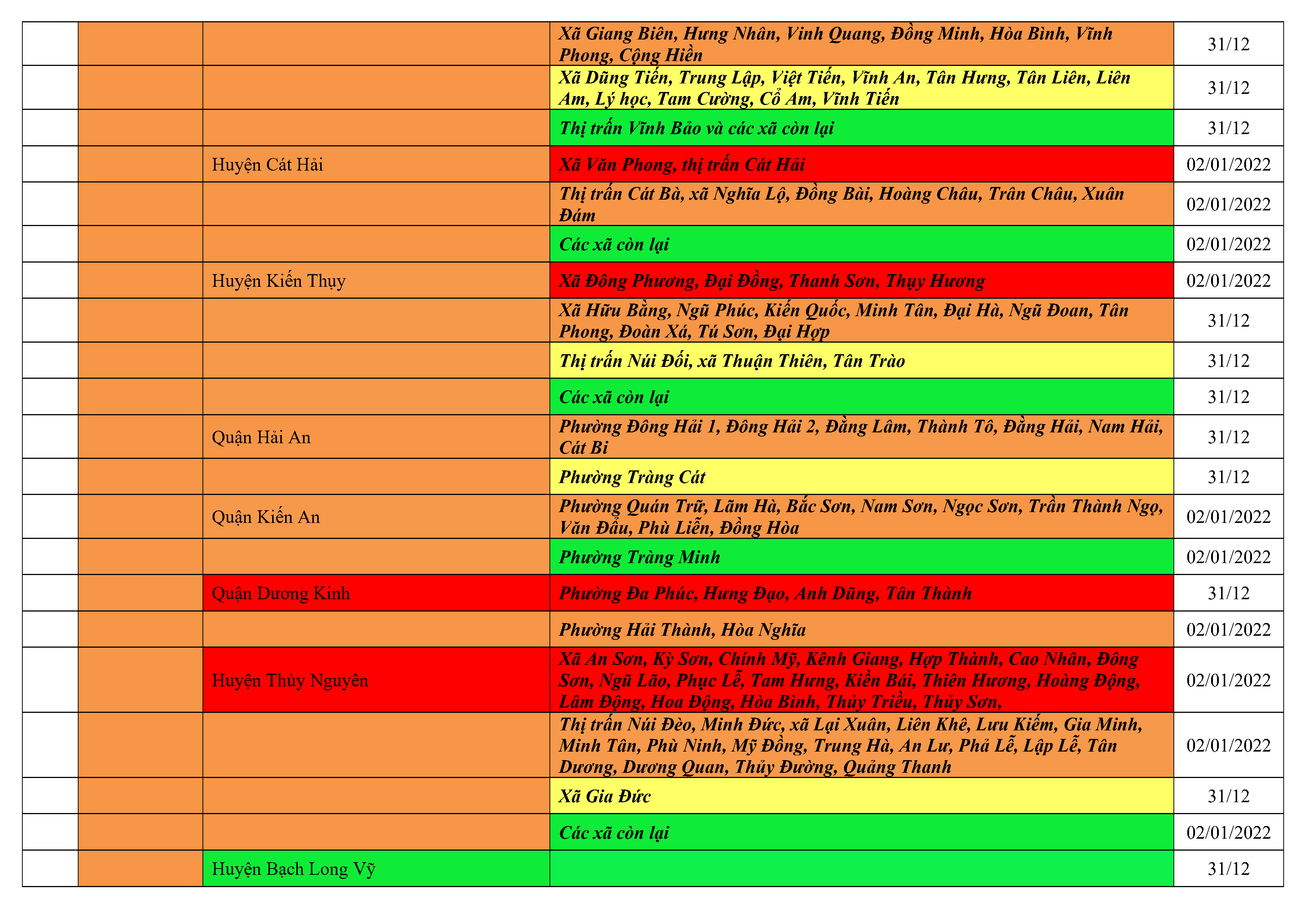 . Mọi người dân thực hiện 5K theo khuyến cáo của Bộ Y tế. Khai báo y tế tại Trạm Y tế các xã phường thị trấn nơi cư trú, lưu trú. (truy cập http://covidmaps.haiphong.gov.vn).