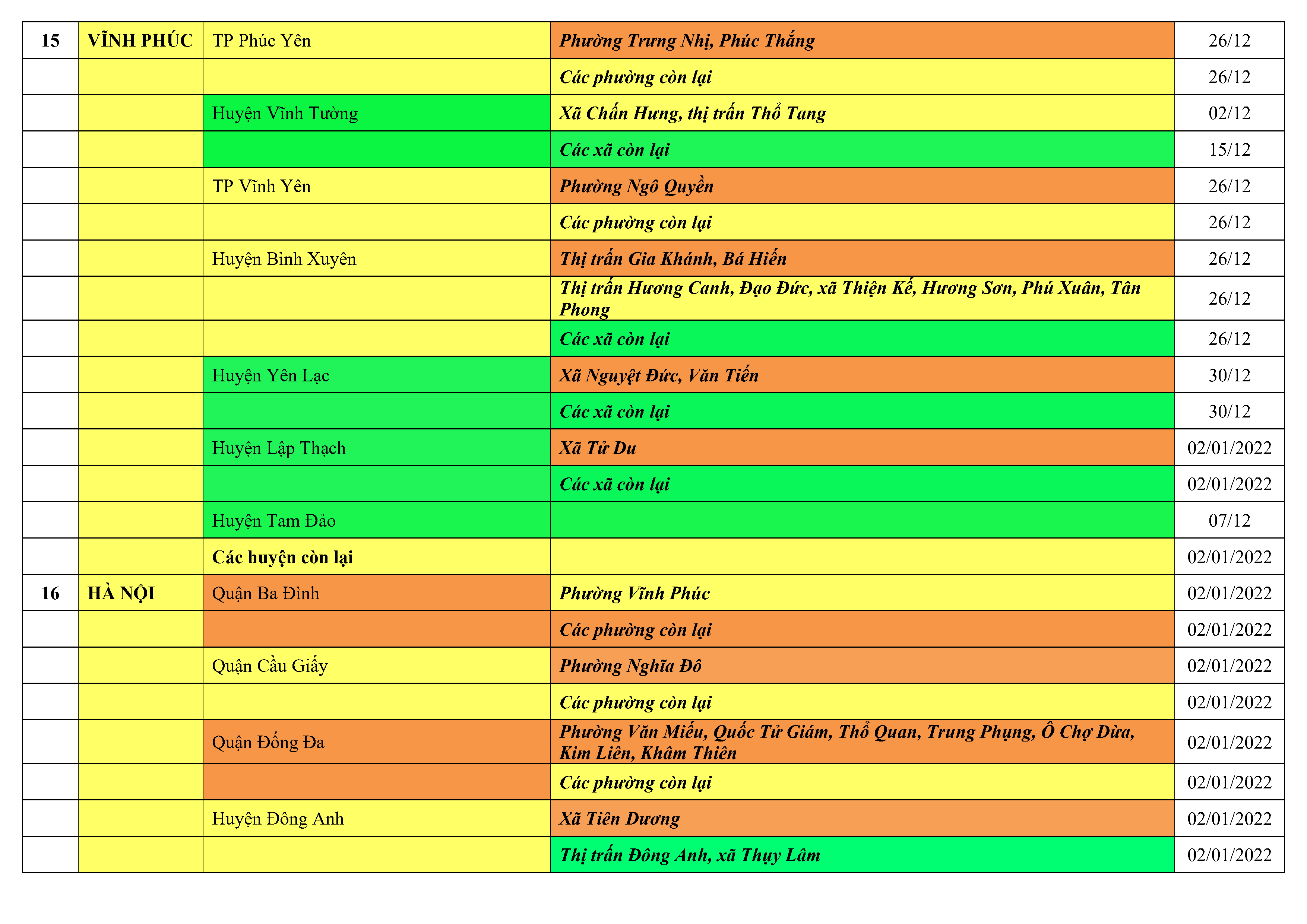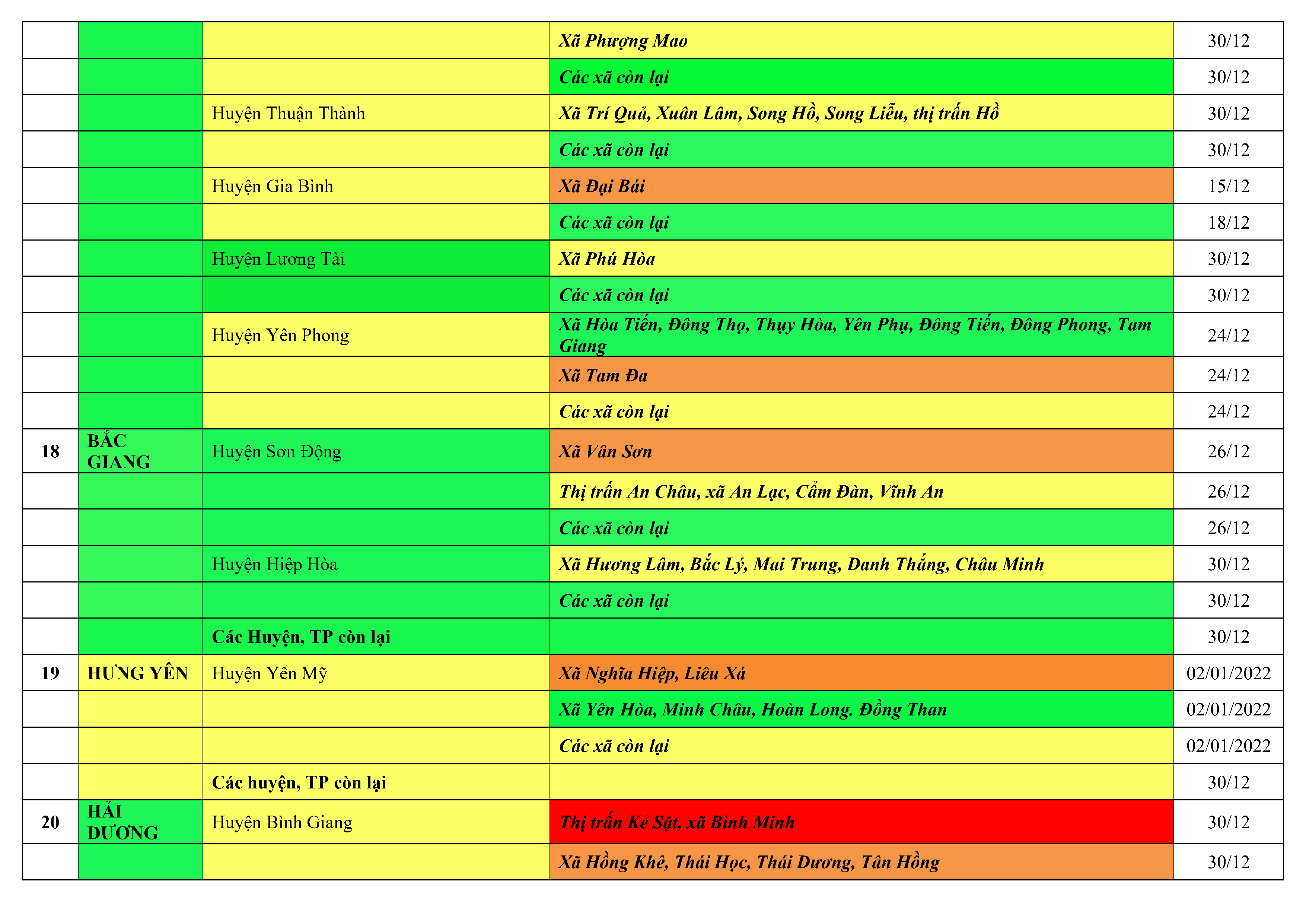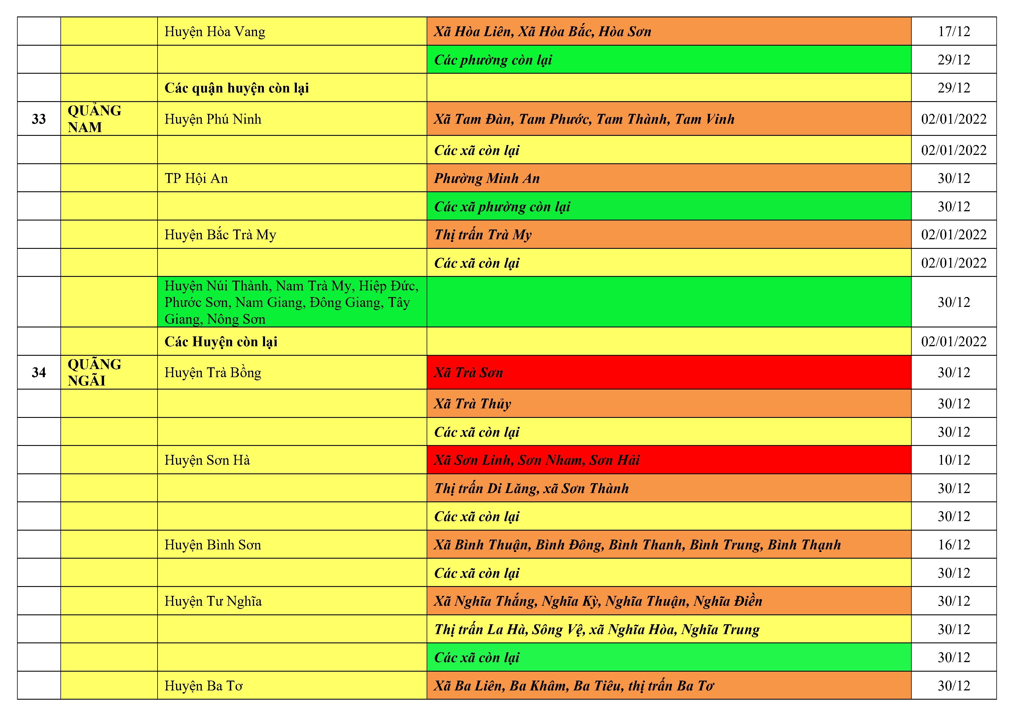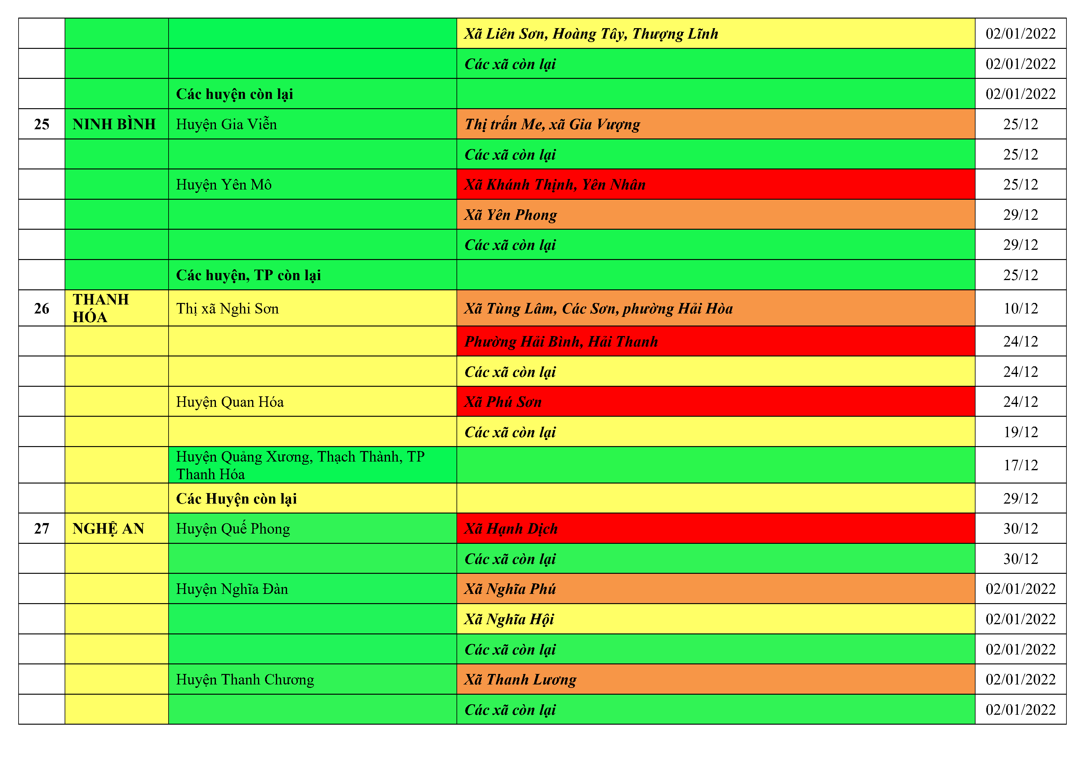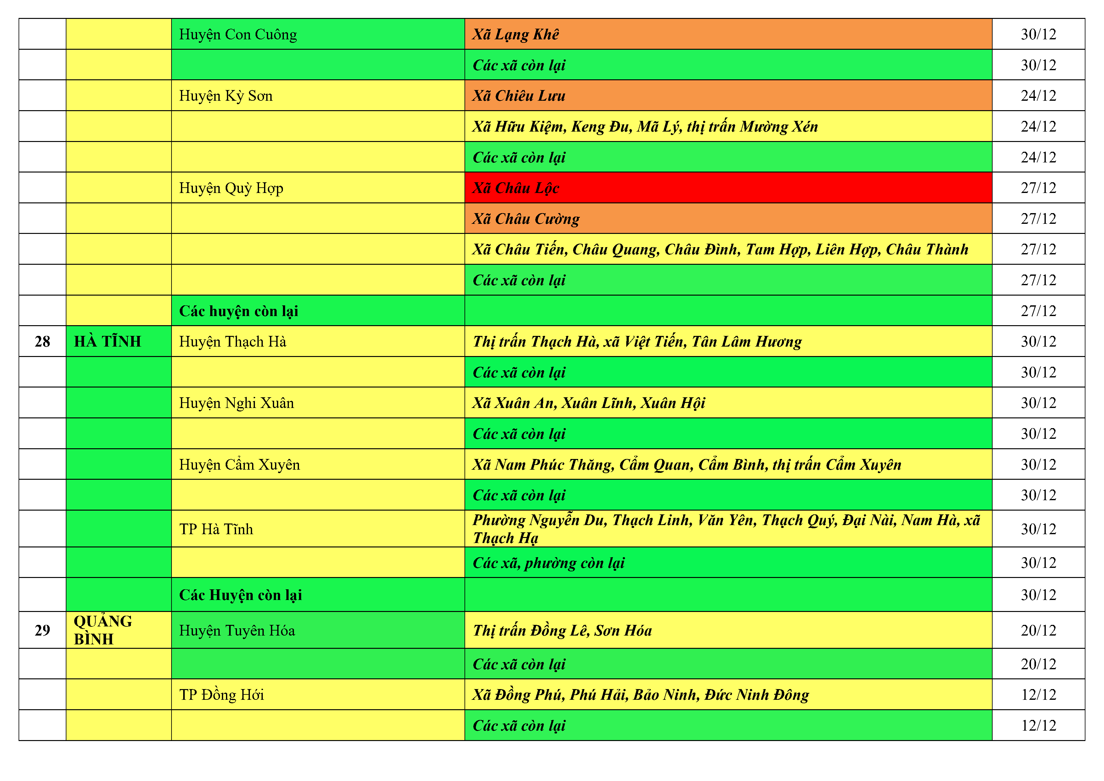 Áp dụng biện pháp tương ứng màu sắc ô cột theo thôn xóm; xã phường; quận huyện; tỉnh thành phố. Cách ly y tế dựa vào việc tiếp xúc, đi đến địa điểm và nơi cư trú có ca bệnh, theo Thông báo của Bộ Y tế, các tỉnh thành phố.