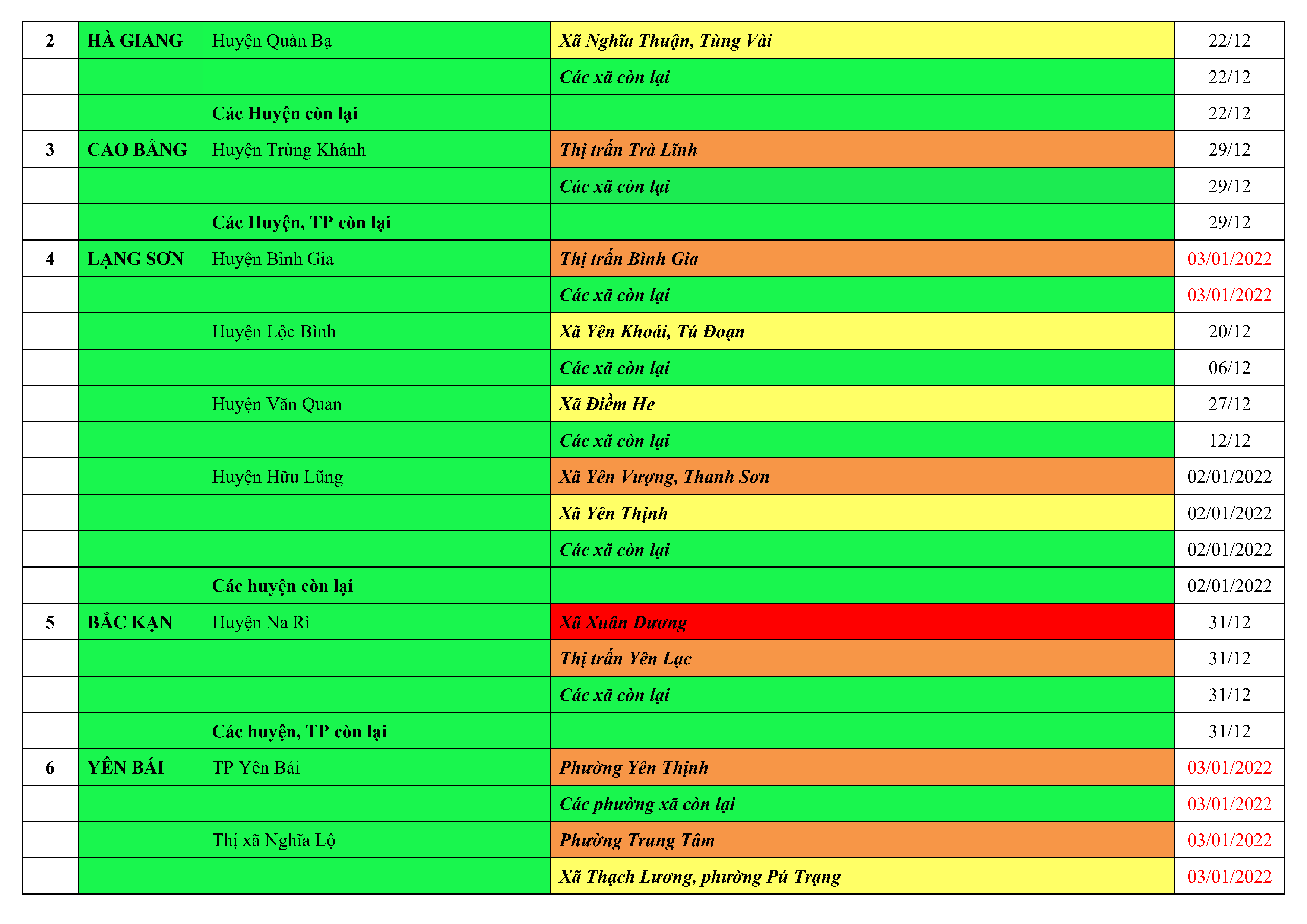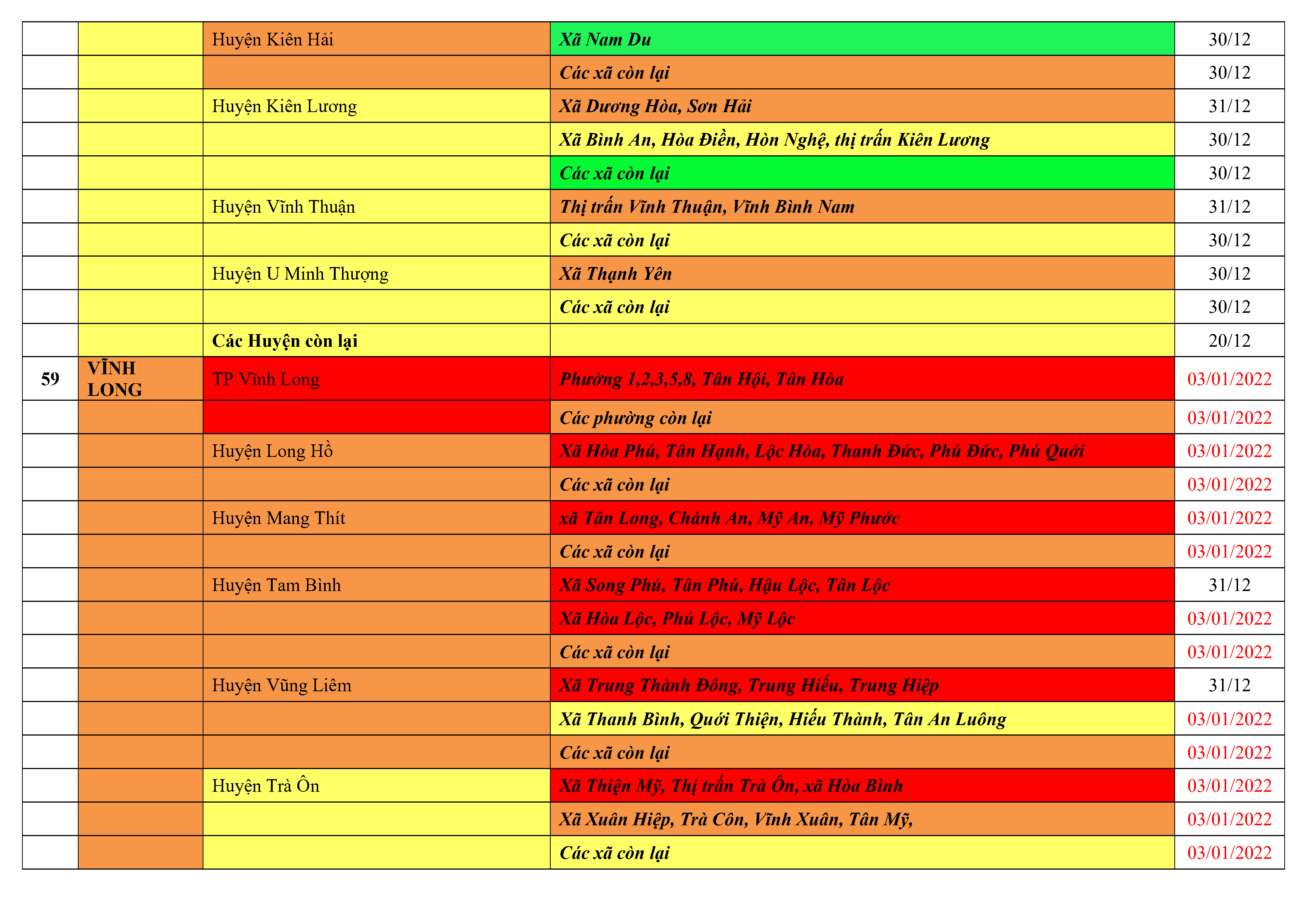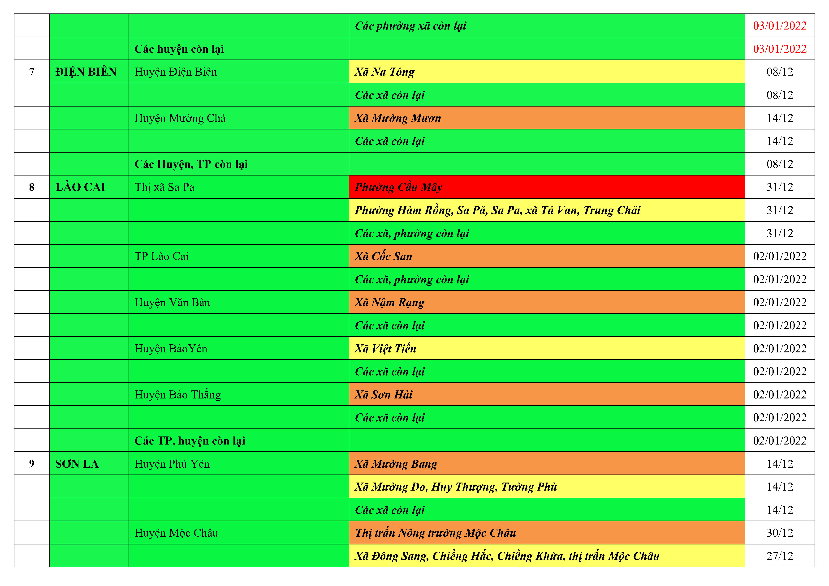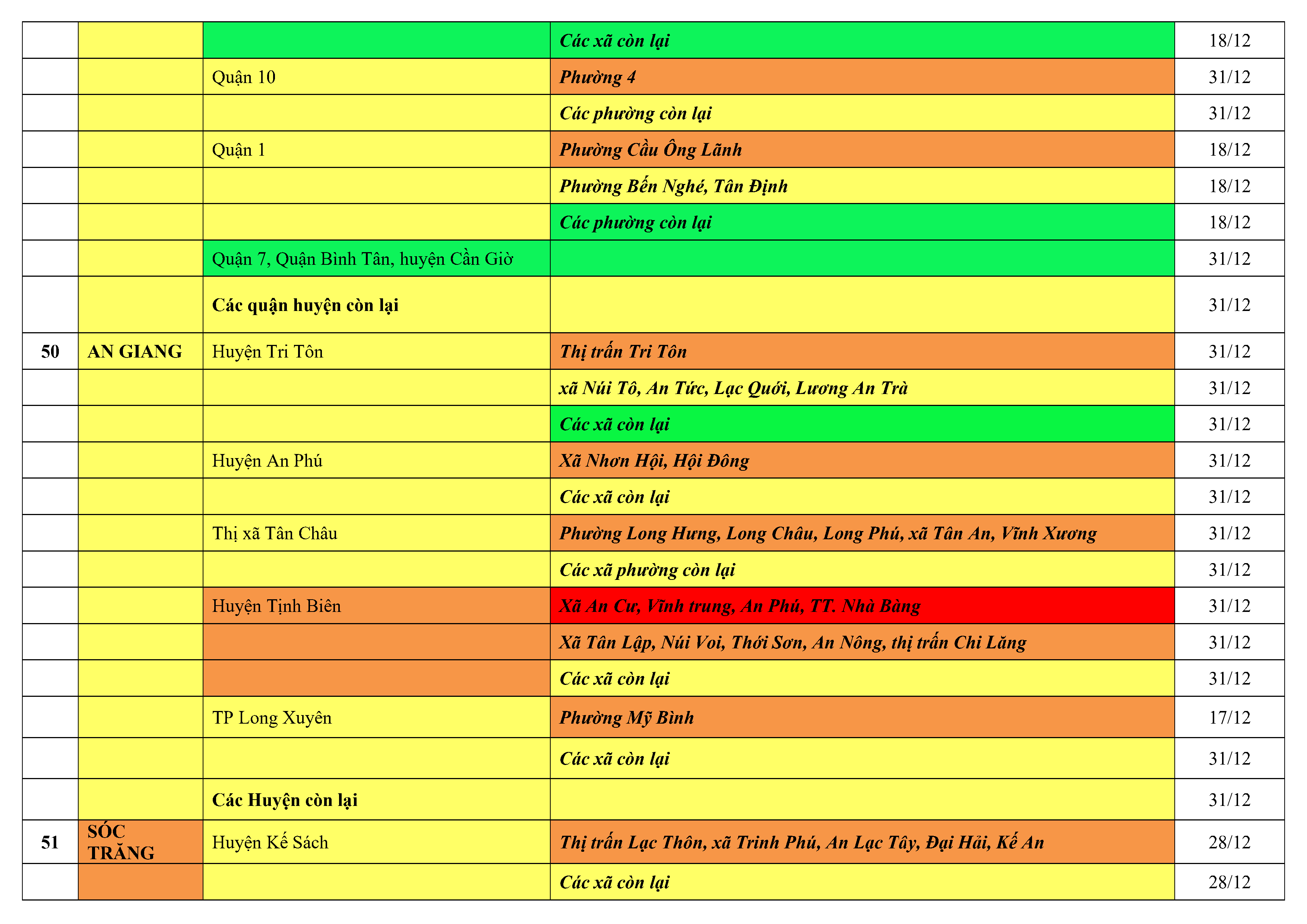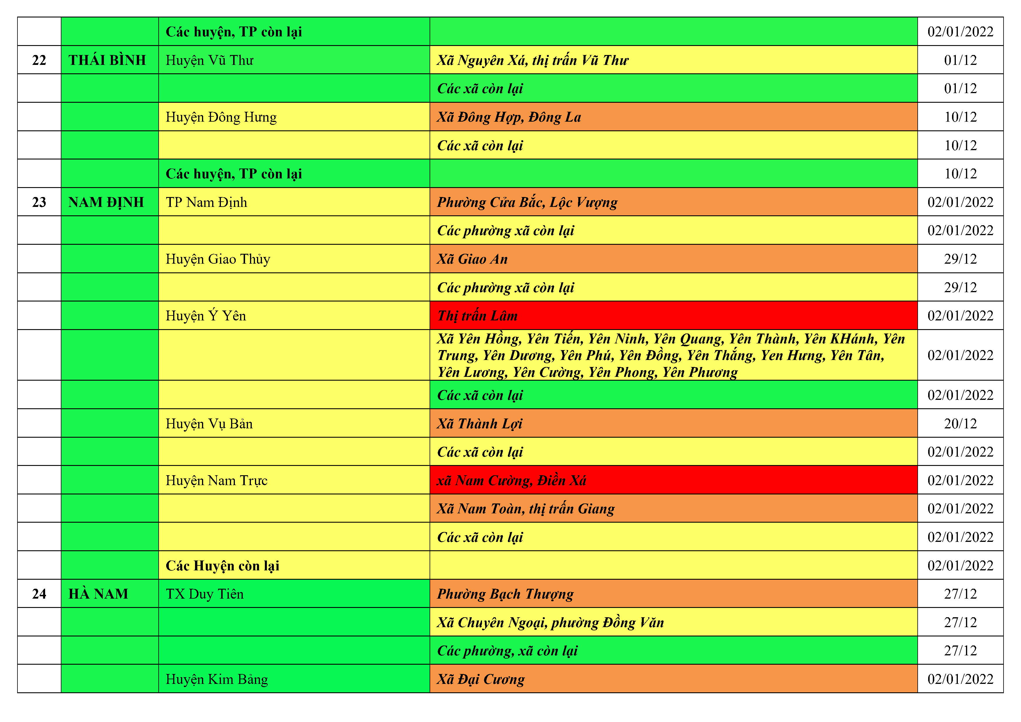 Áp dụng biện pháp tương ứng màu sắc ô cột theo thôn xóm; xã phường; quận huyện; tỉnh thành phố. Cách ly y tế dựa vào việc tiếp xúc, đi đến địa điểm và nơi cư trú có ca bệnh, theo Thông báo của Bộ Y tế, các tỉnh thành phố.
