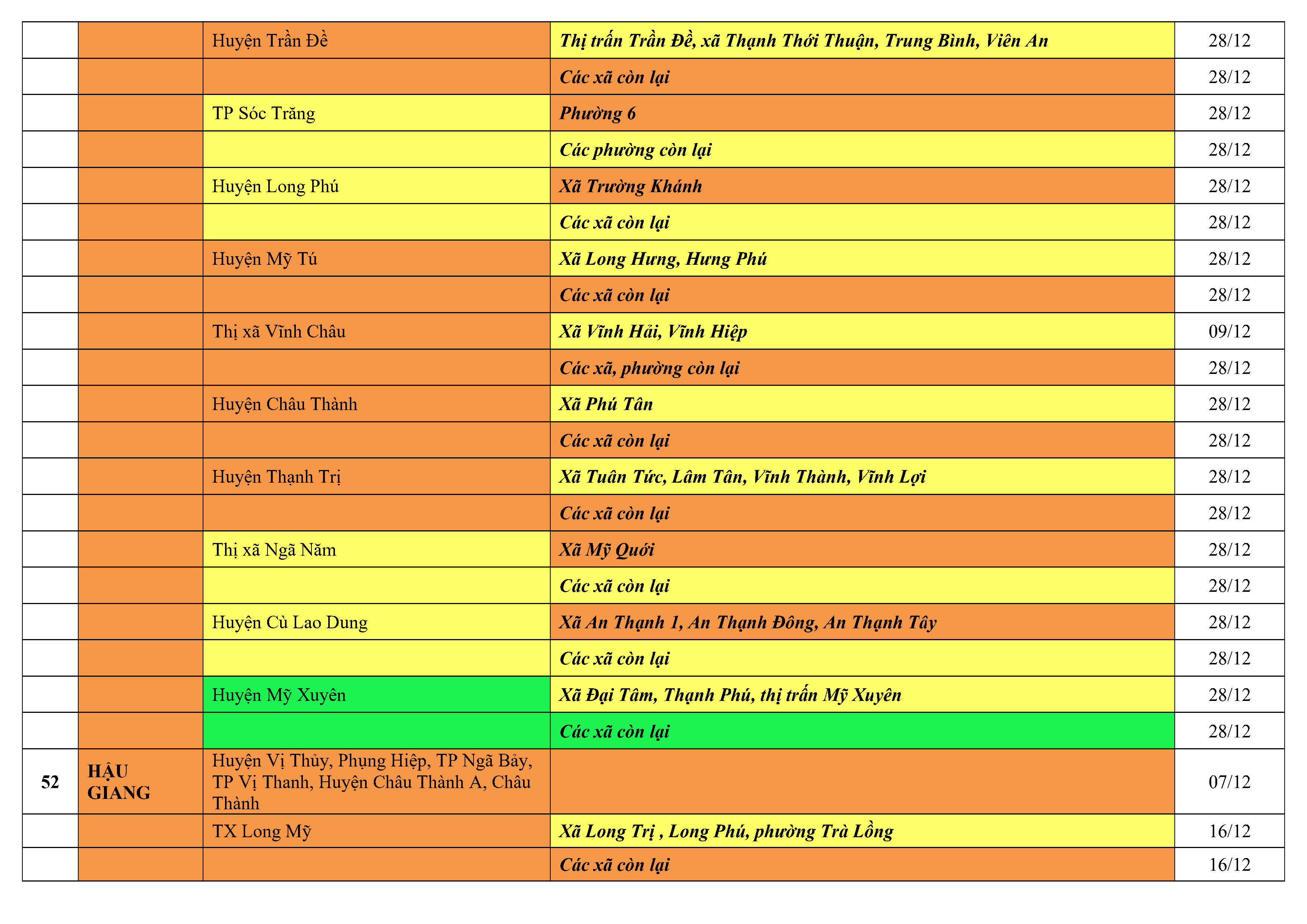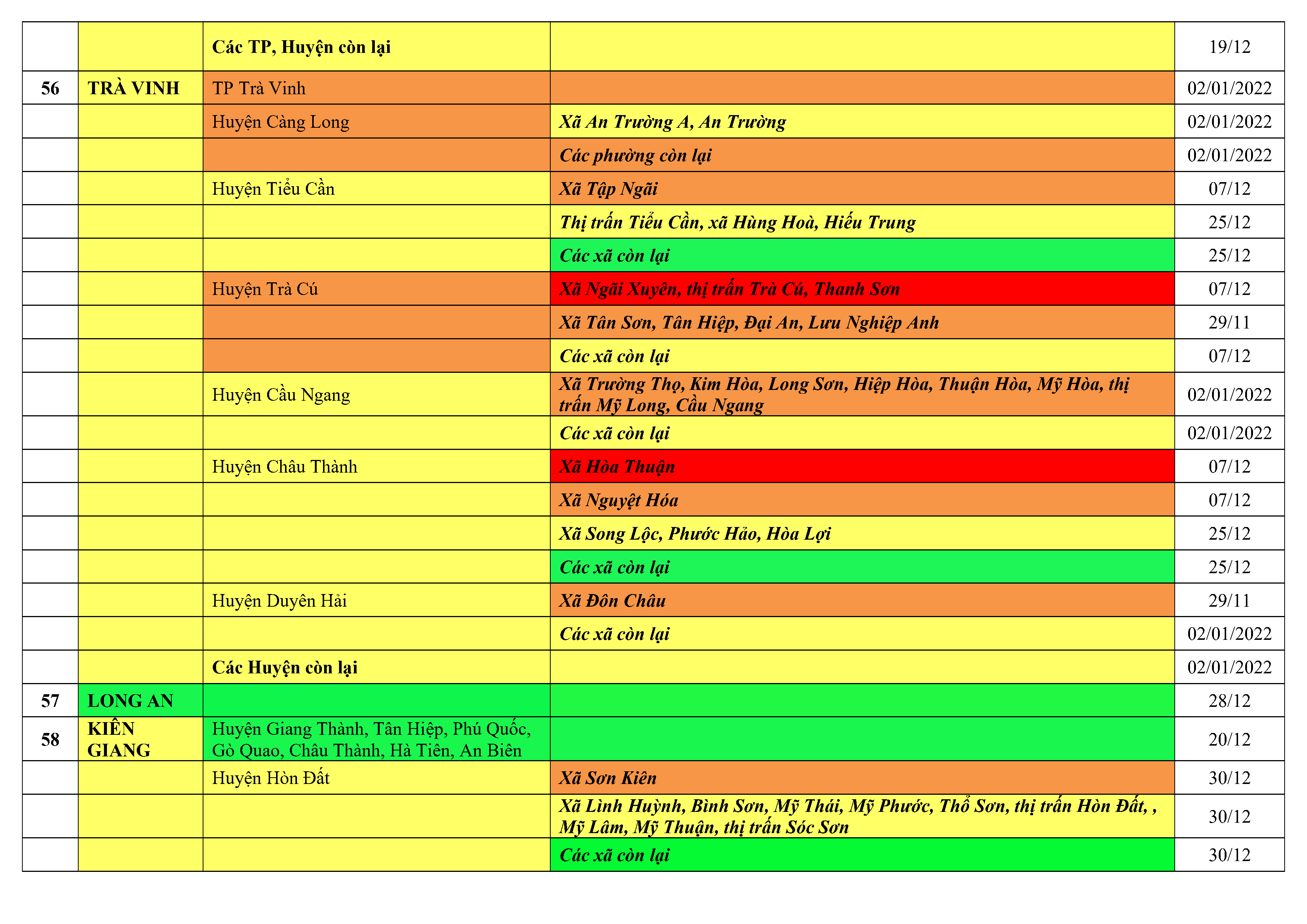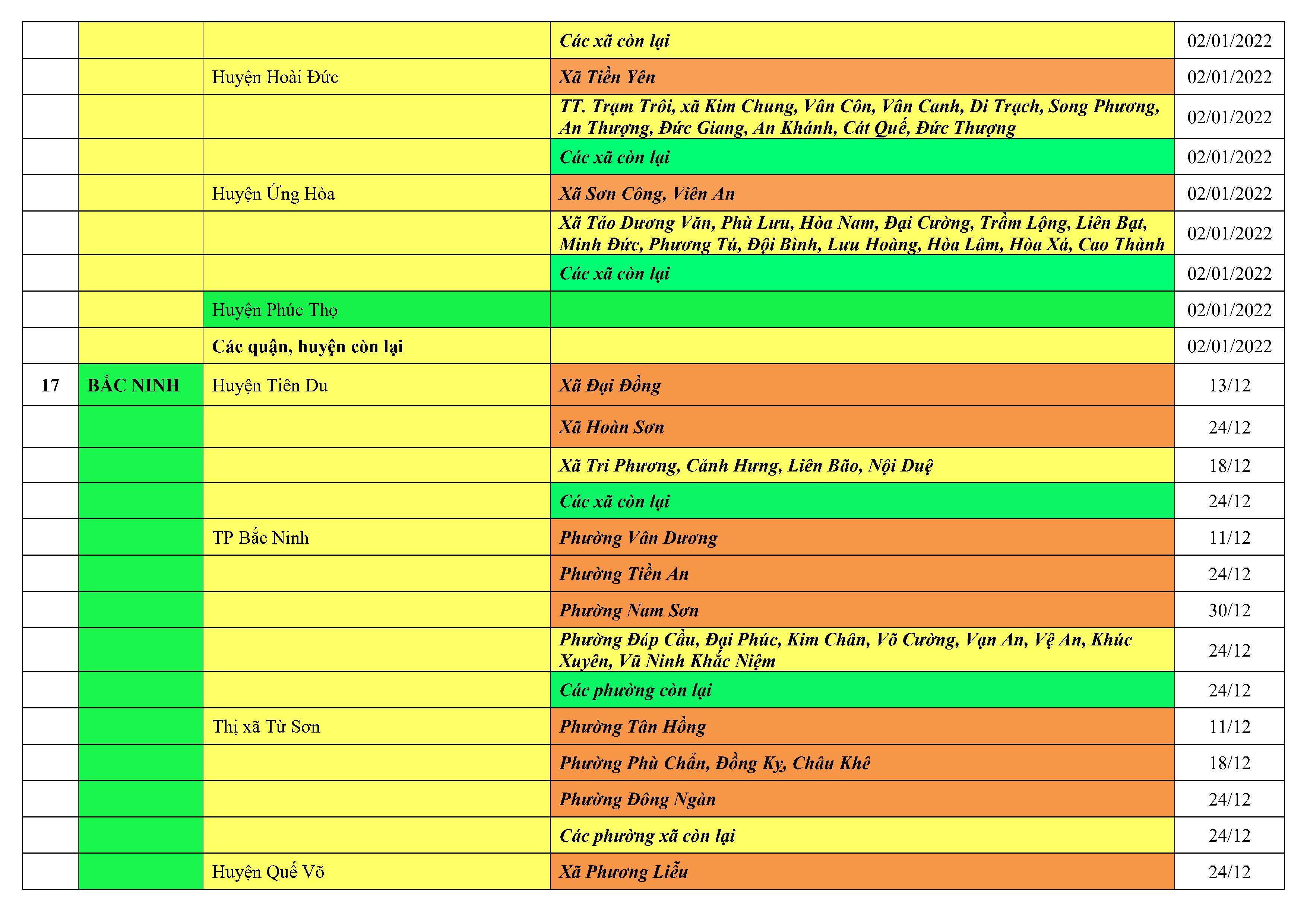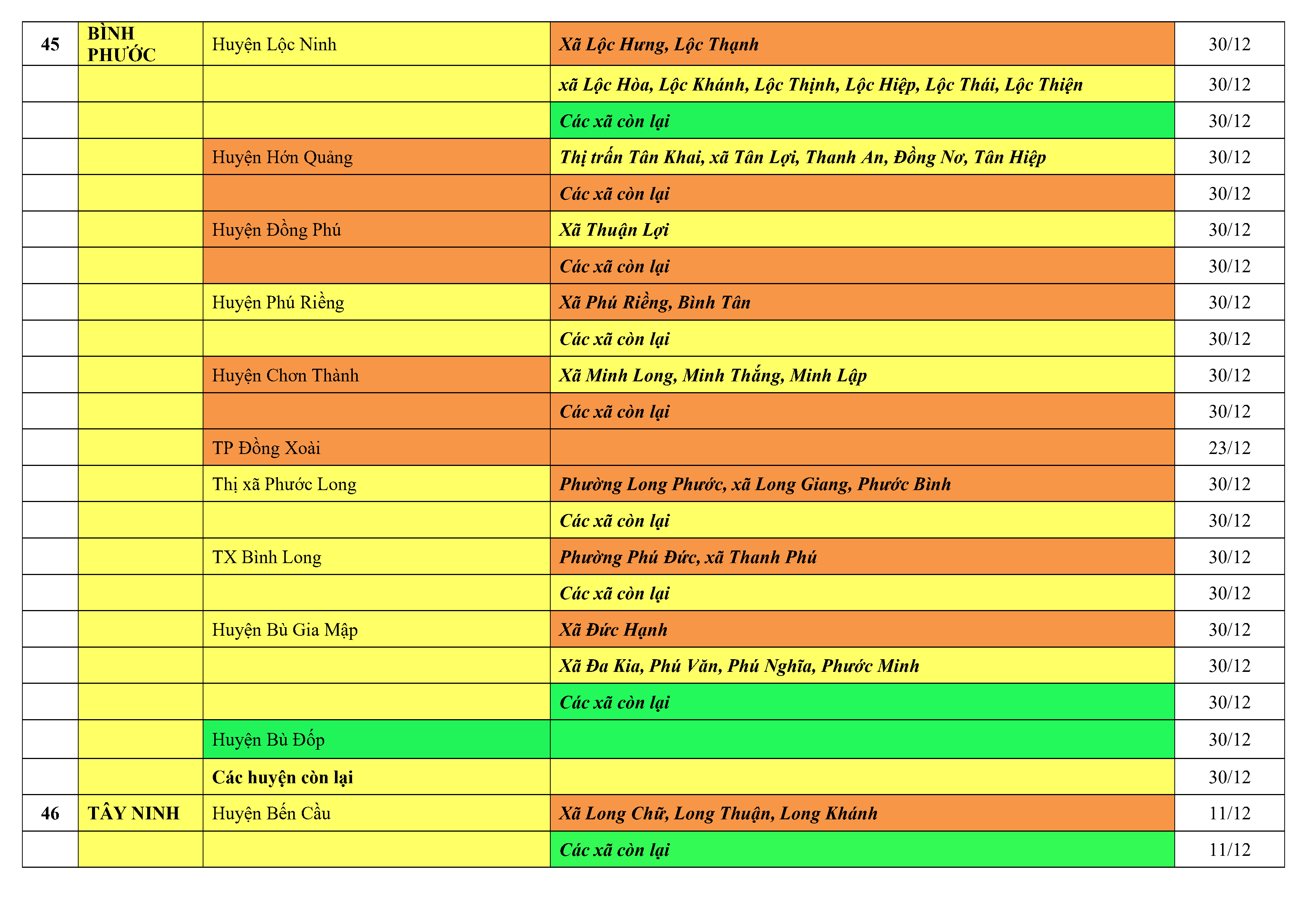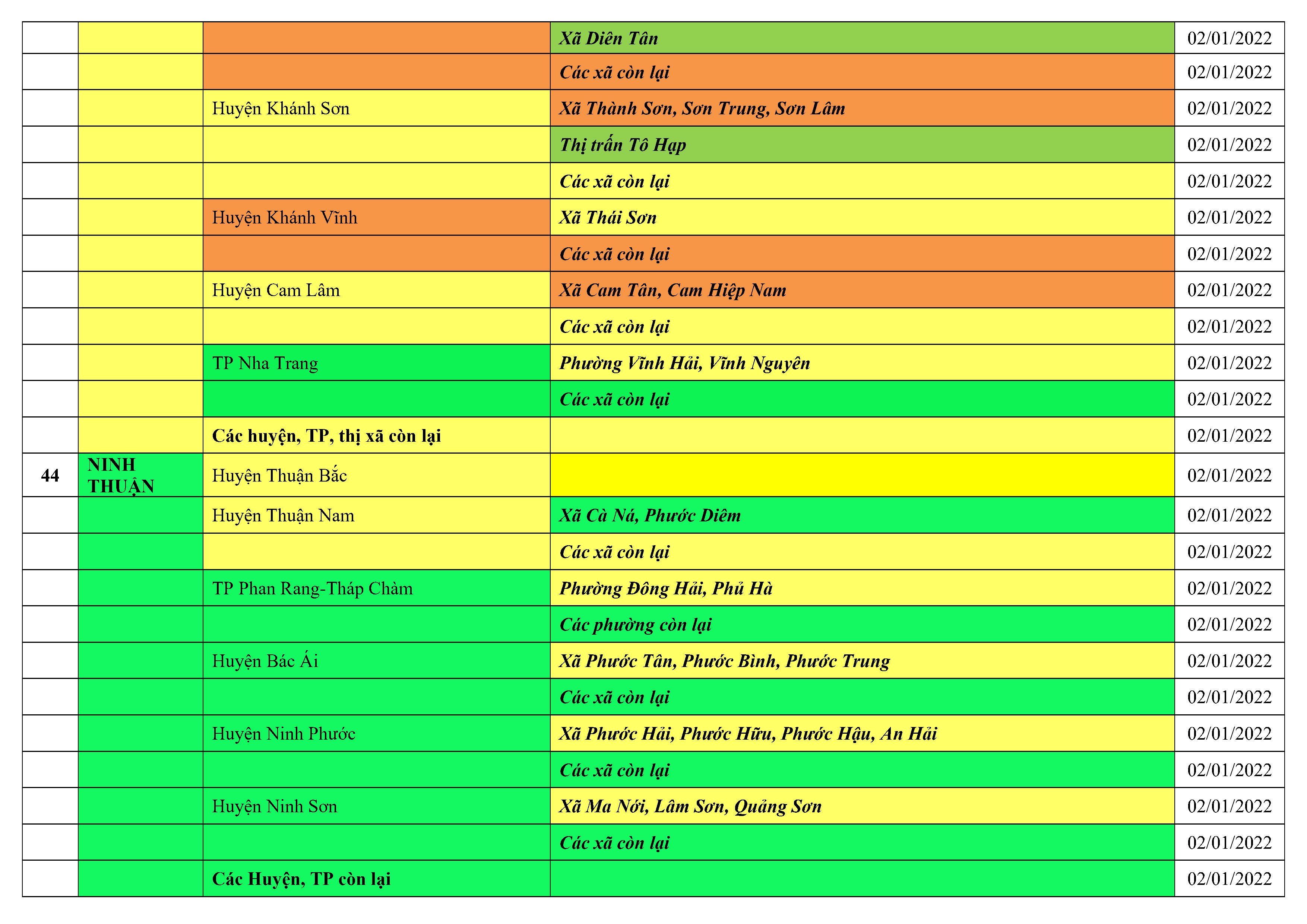 Áp dụng biện pháp tương ứng màu sắc ô cột theo thôn xóm; xã phường; quận huyện; tỉnh thành phố. Cách ly y tế dựa vào việc tiếp xúc, đi đến địa điểm và nơi cư trú có ca bệnh, theo Thông báo của Bộ Y tế, các tỉnh thành phố.