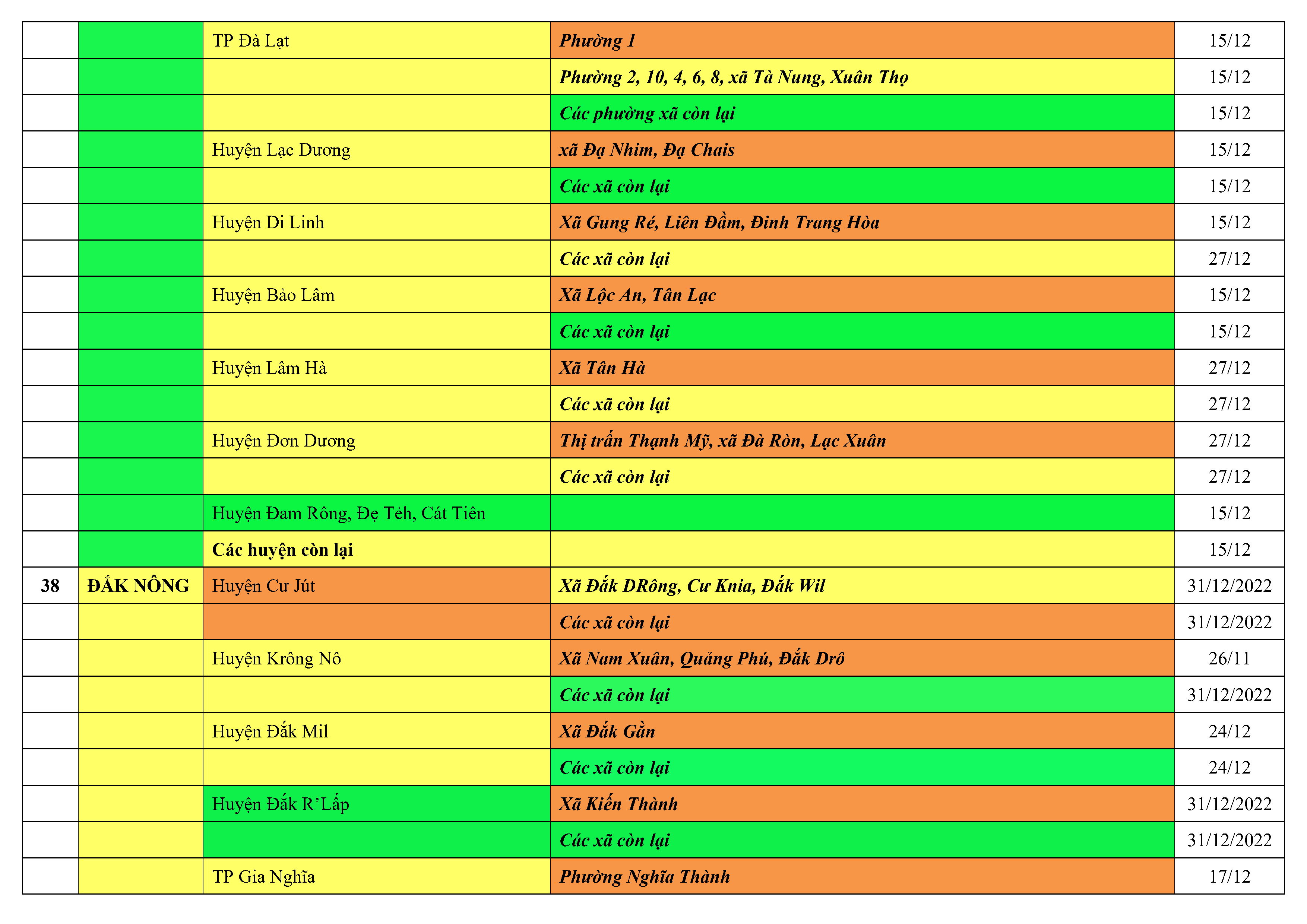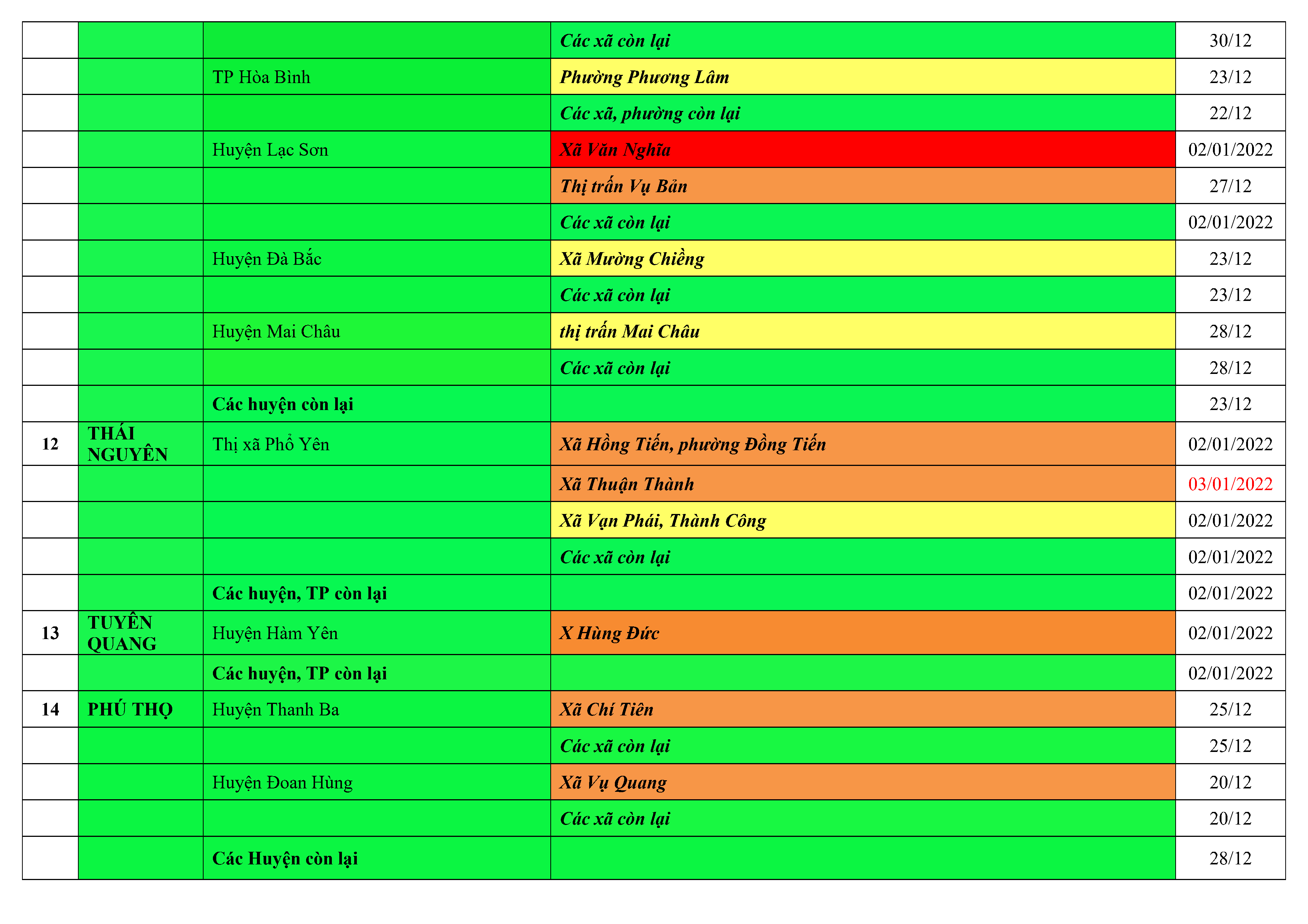 Áp dụng biện pháp tương ứng màu sắc ô cột theo thôn xóm; xã phường; quận huyện; tỉnh thành phố.