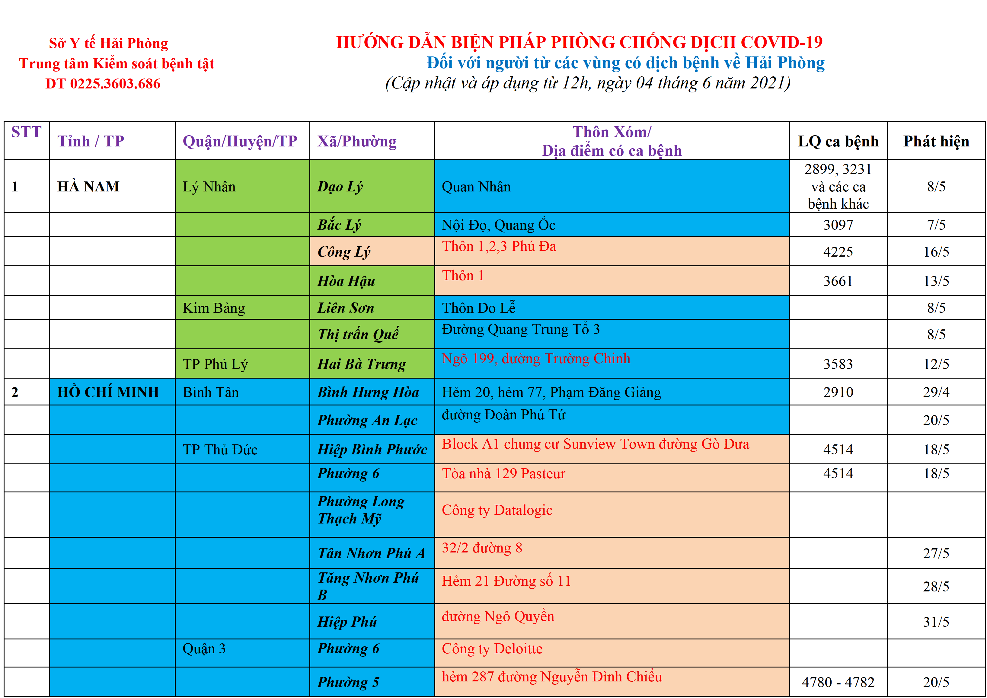 Sở Y tế Hải Phòng ban hành hướng dẫn tạm thời biện pháp phòng chống dịch COVID-19 đối với người từ các tỉnh, thành khác về thành phố như sau (thông tin cập nhật vào 12h00’ ngày 4/6/2021):