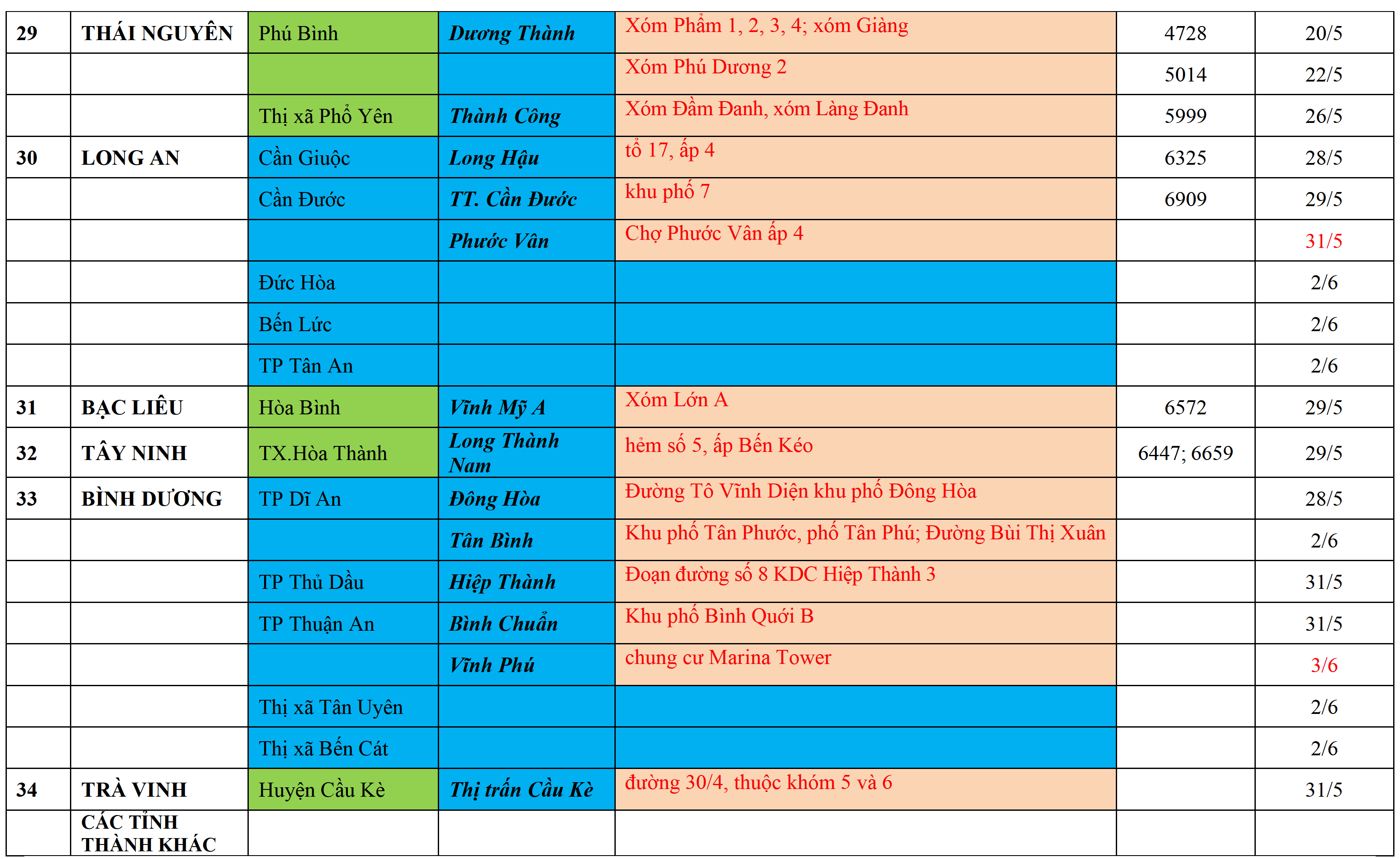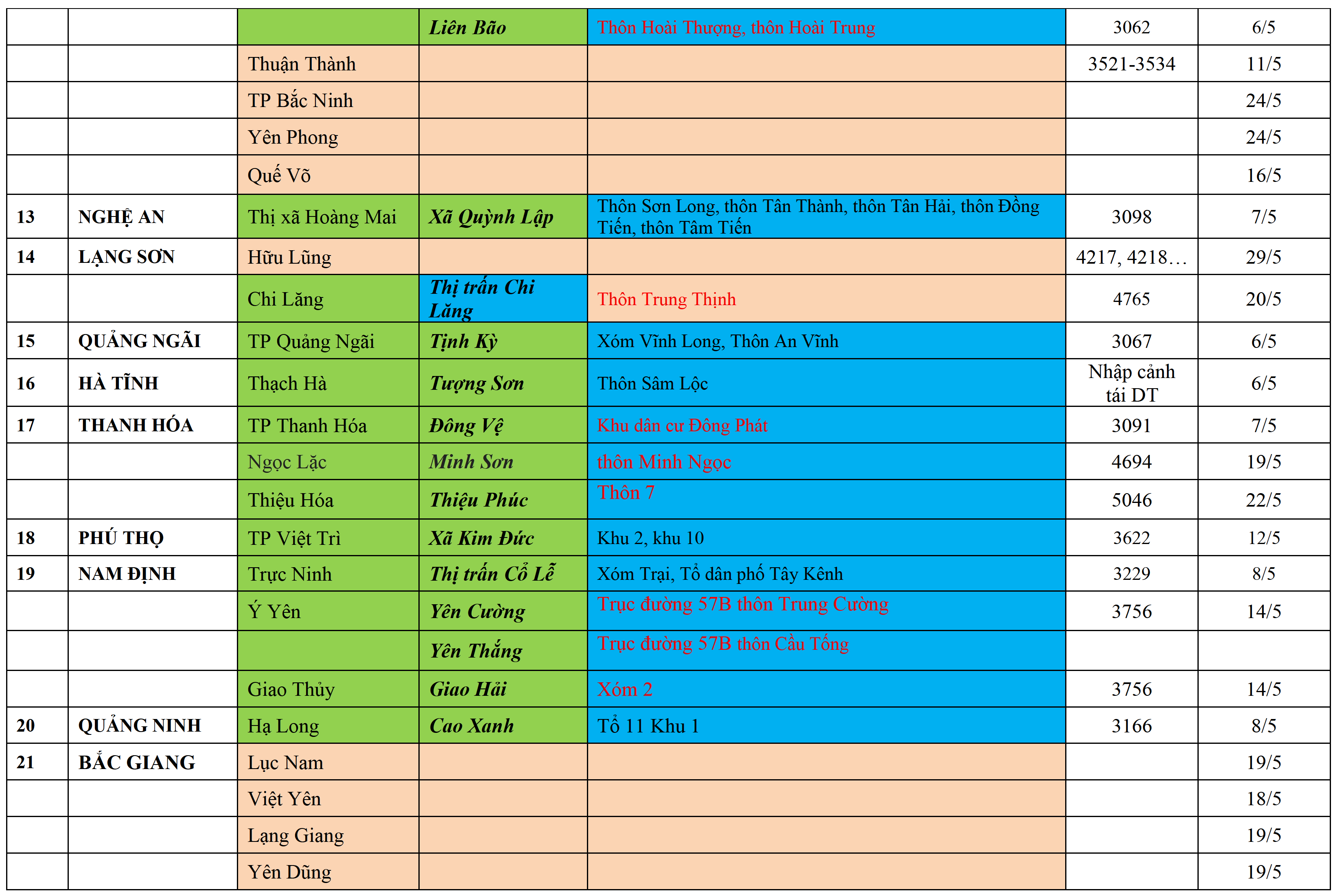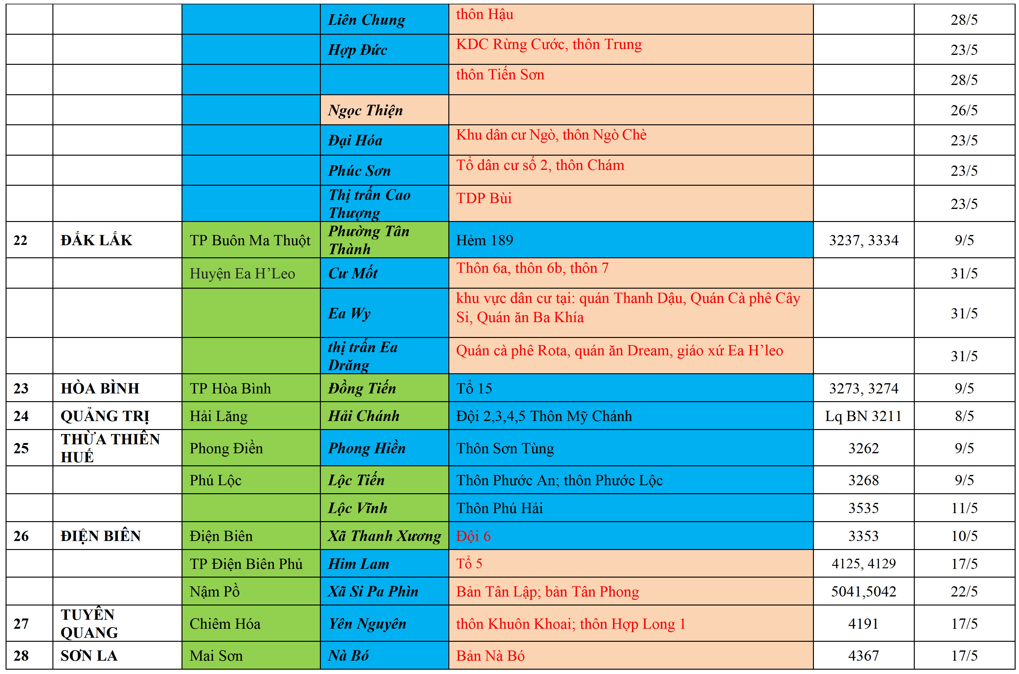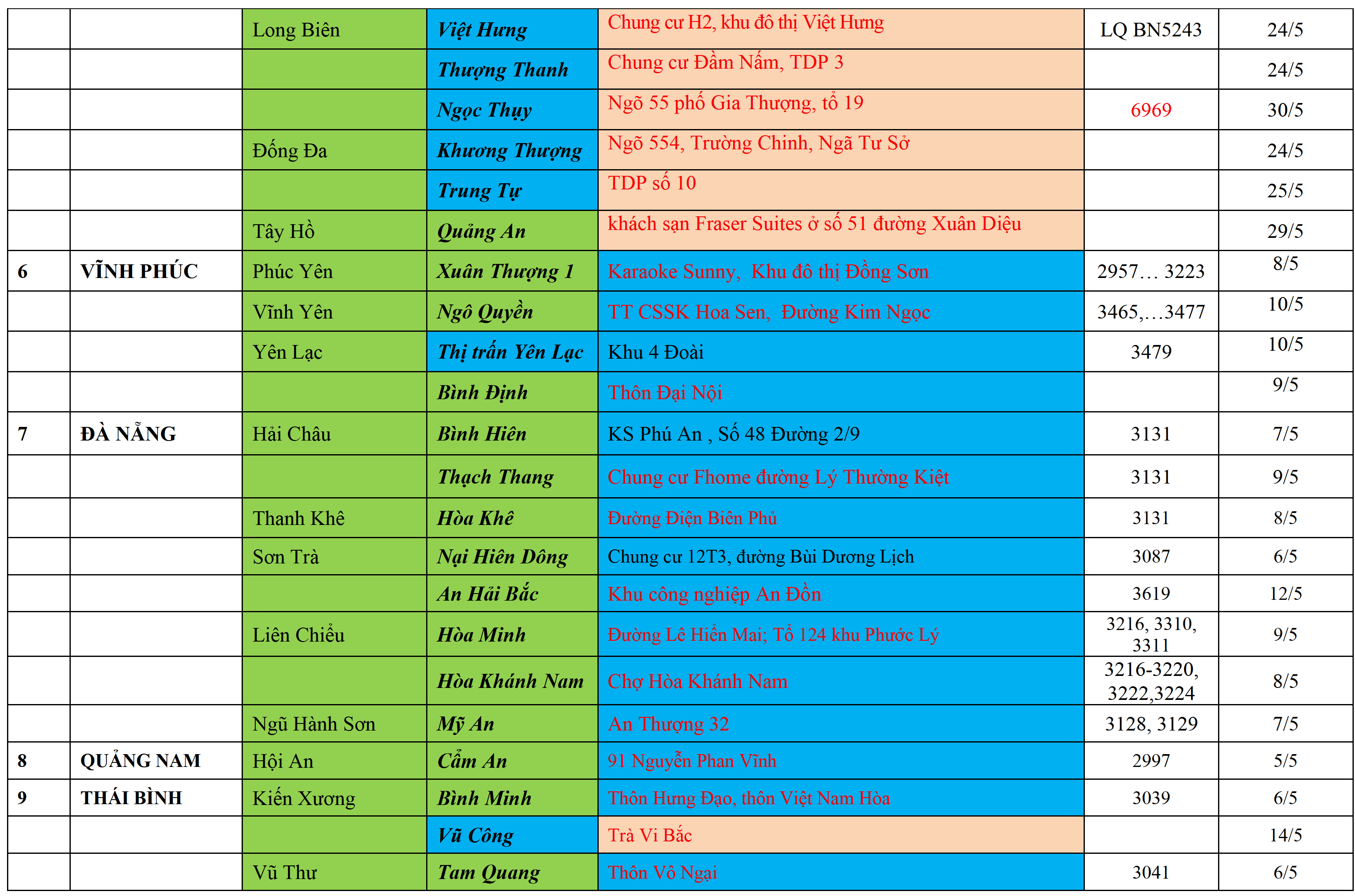 Cách ly tập trung theo MÀU CAM, Cách ly tại nhà theo MÀU XANH NƯỚC BIỂN, Khai báo, giám sát y tế theo MÀU XANH MẠ; Không áp dụng các biện pháp cách ly y tế theo MÀU TRẮNG;