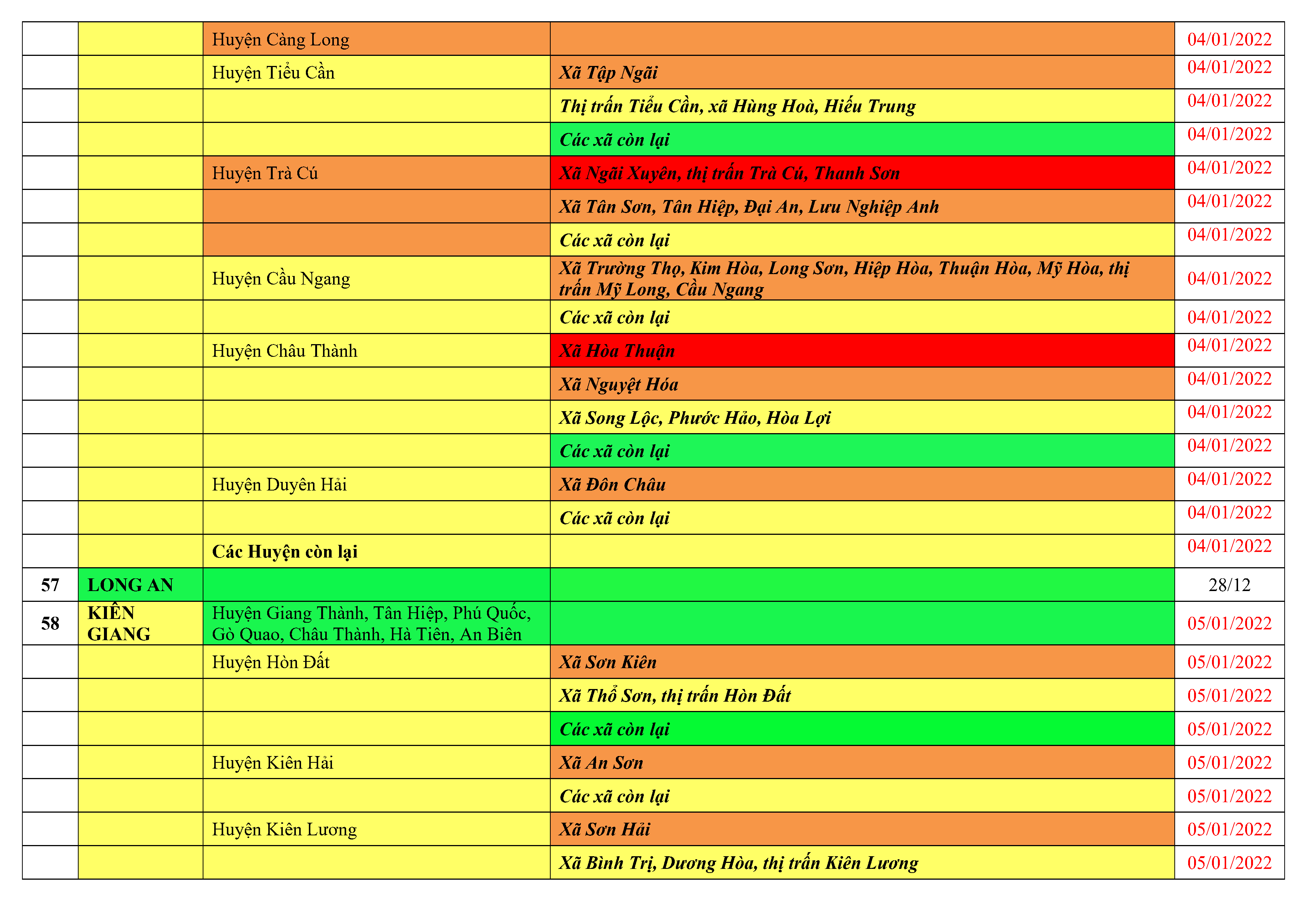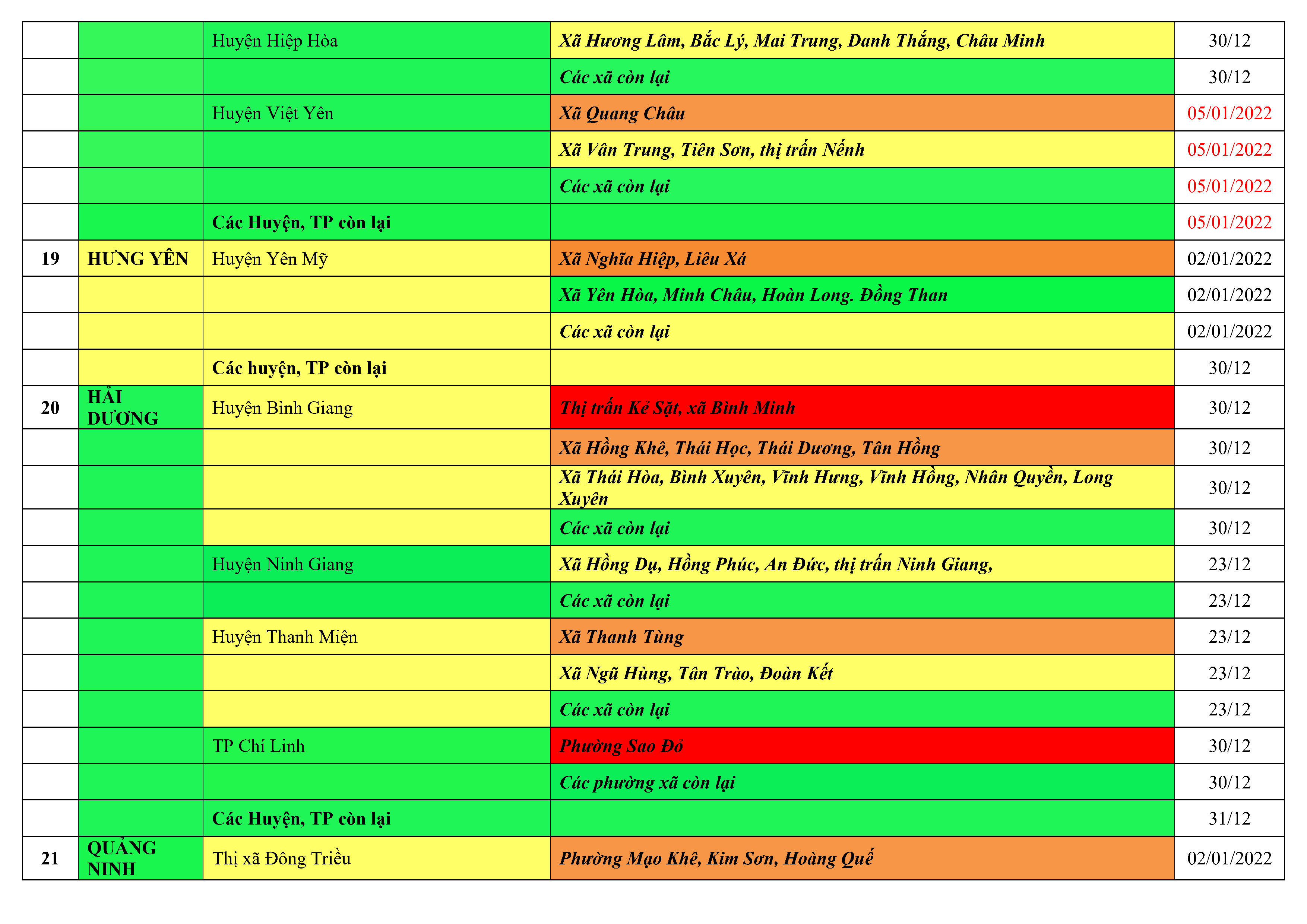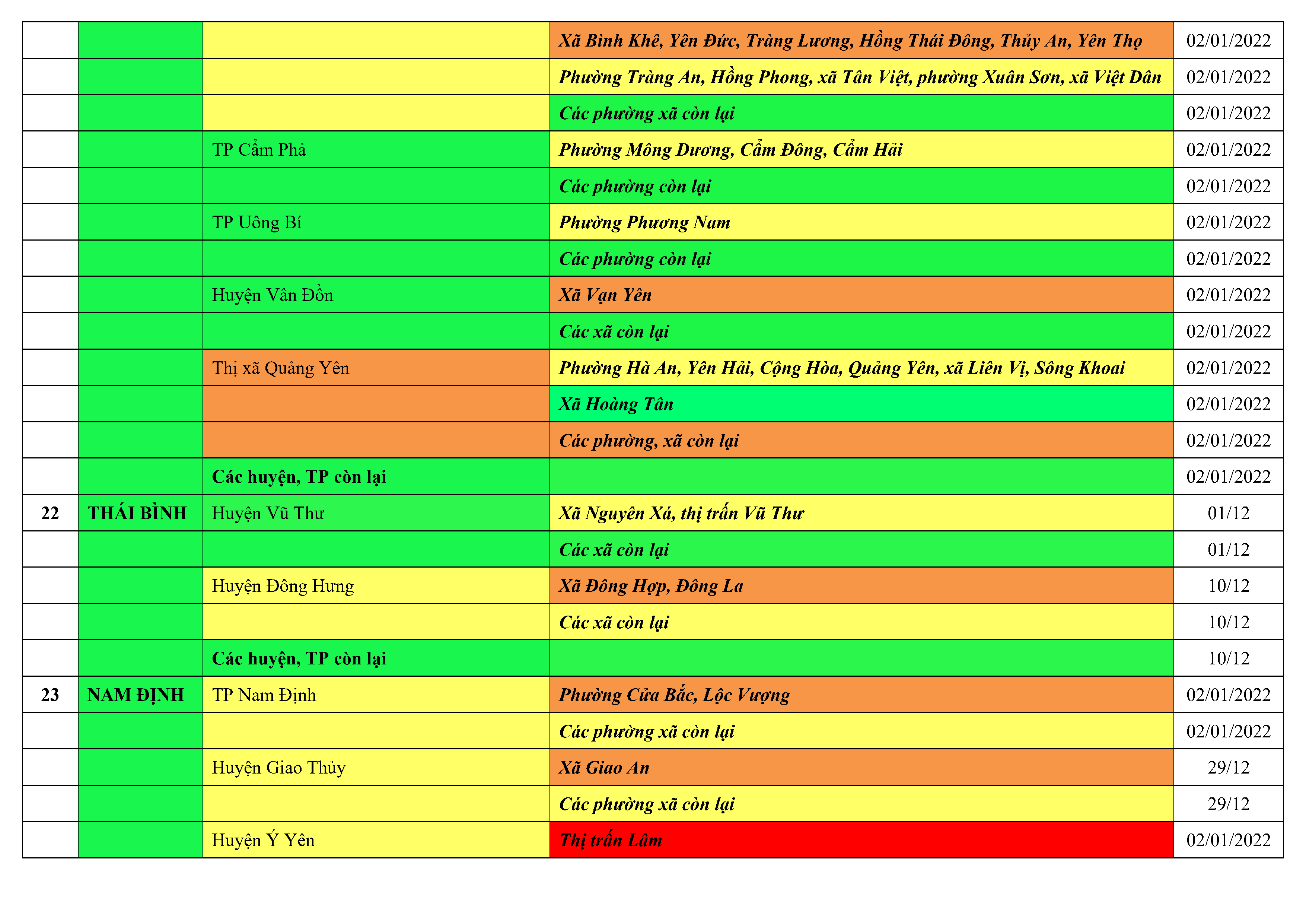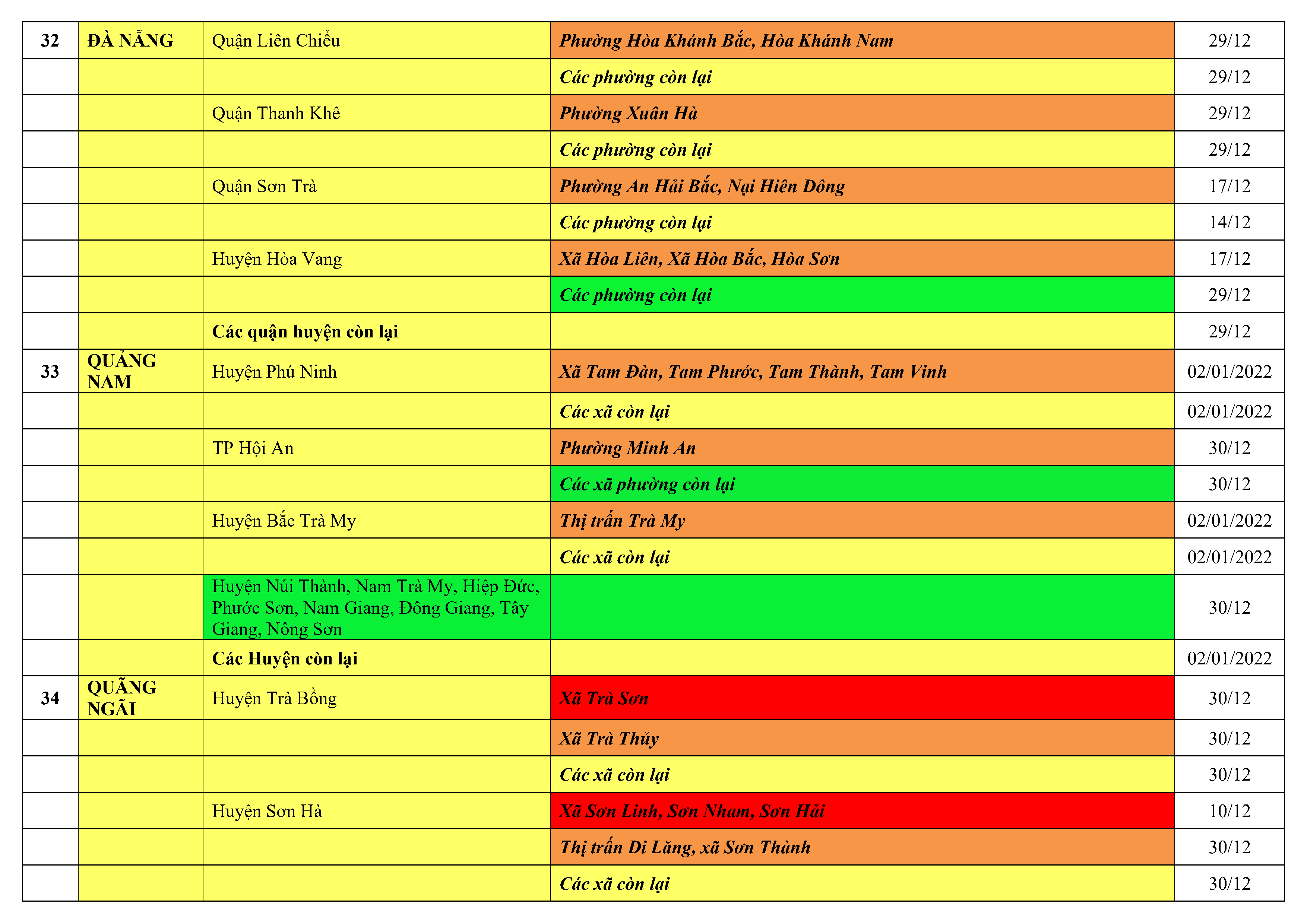 Áp dụng biện pháp tương ứng màu sắc ô cột theo thôn xóm; xã phường; quận huyện; tỉnh thành phố. Cách ly y tế dựa vào việc tiếp xúc, đi đến địa điểm và nơi cư trú có ca bệnh, theo Thông báo của Bộ Y tế, các tỉnh thành phố.