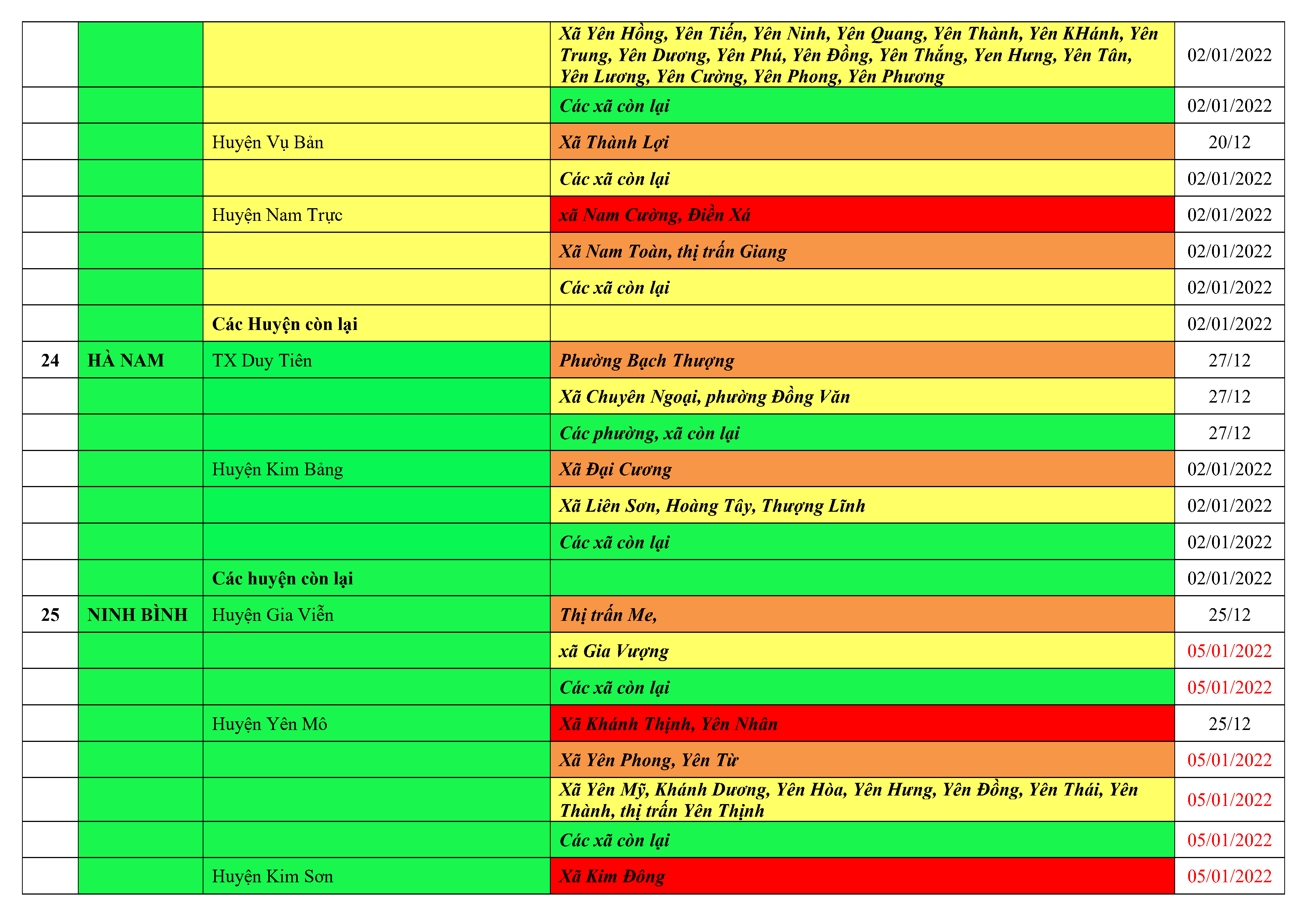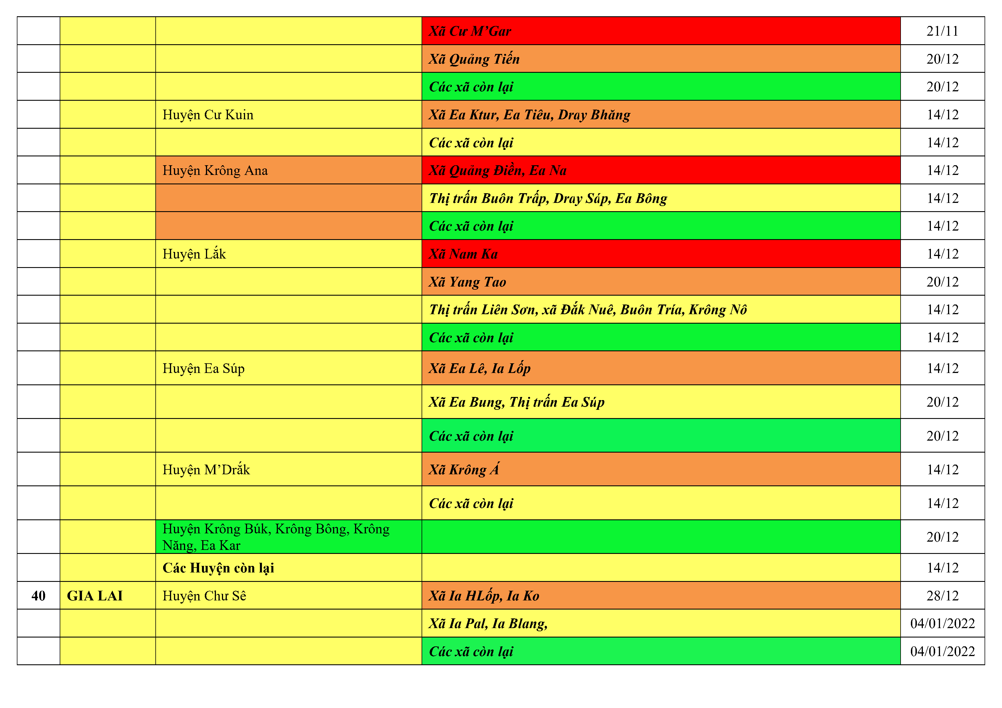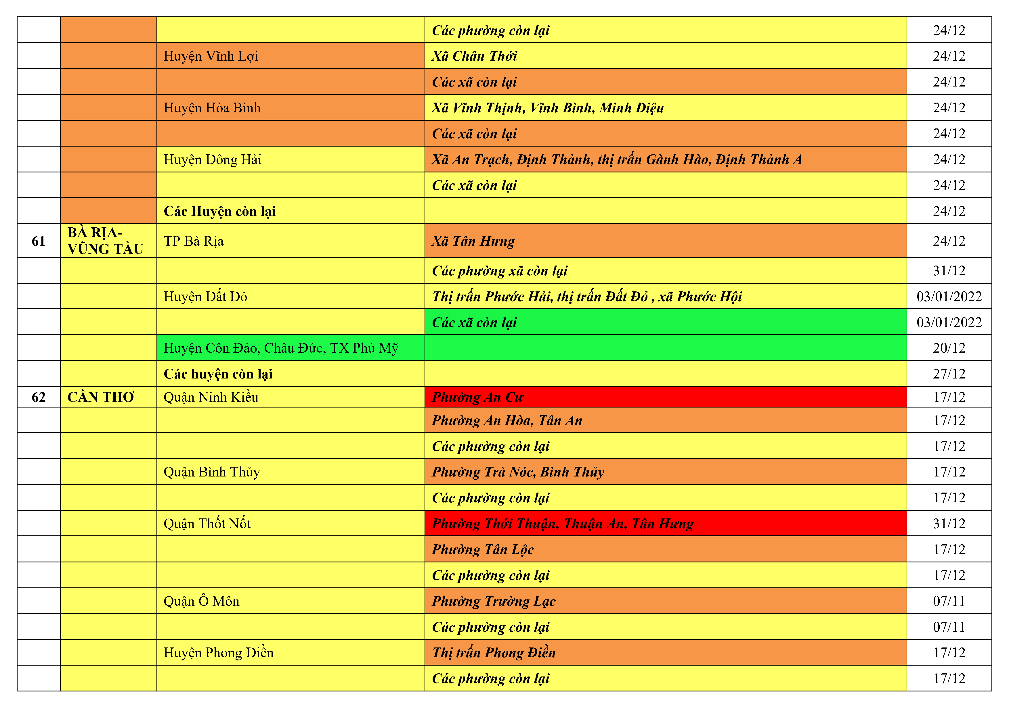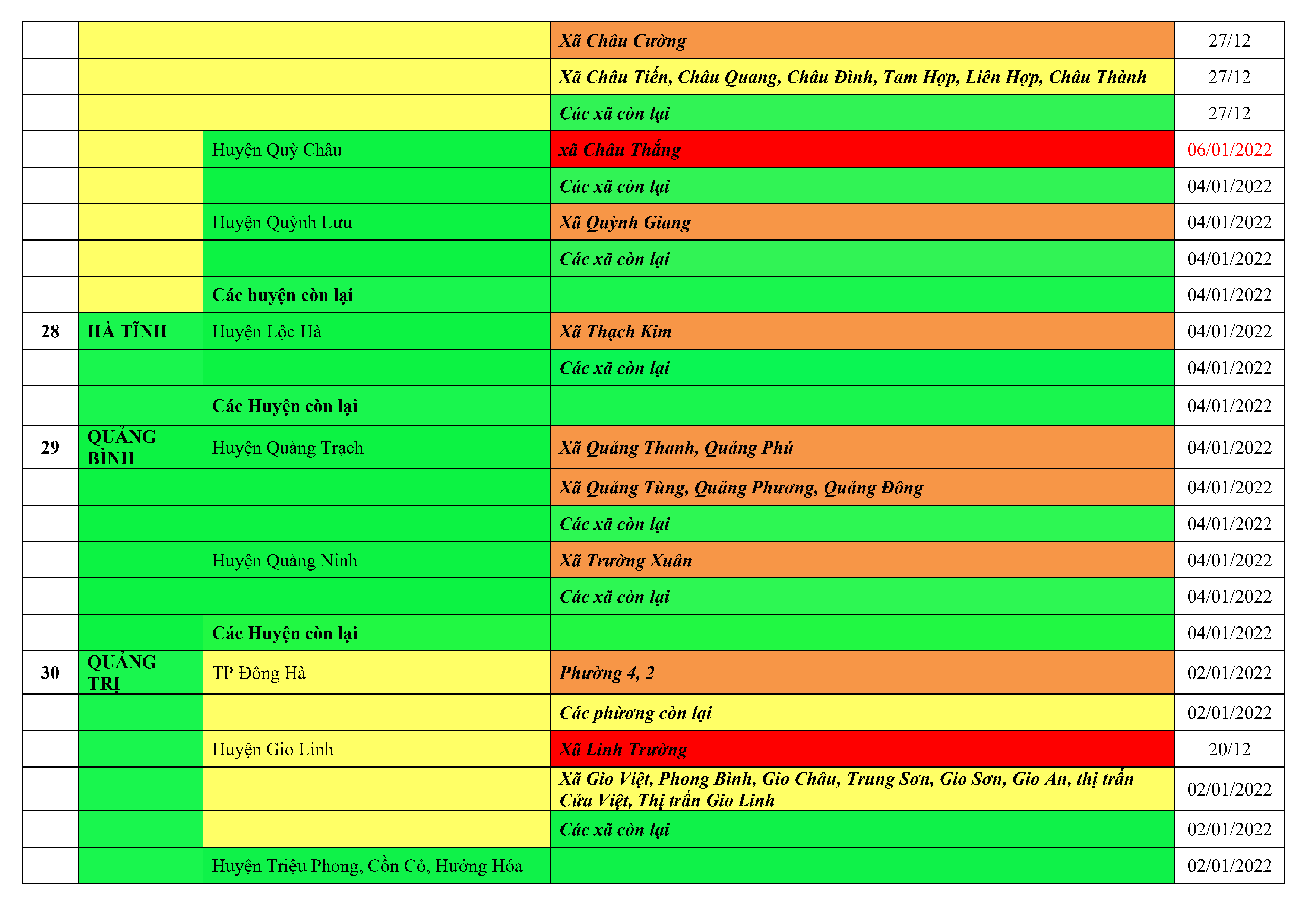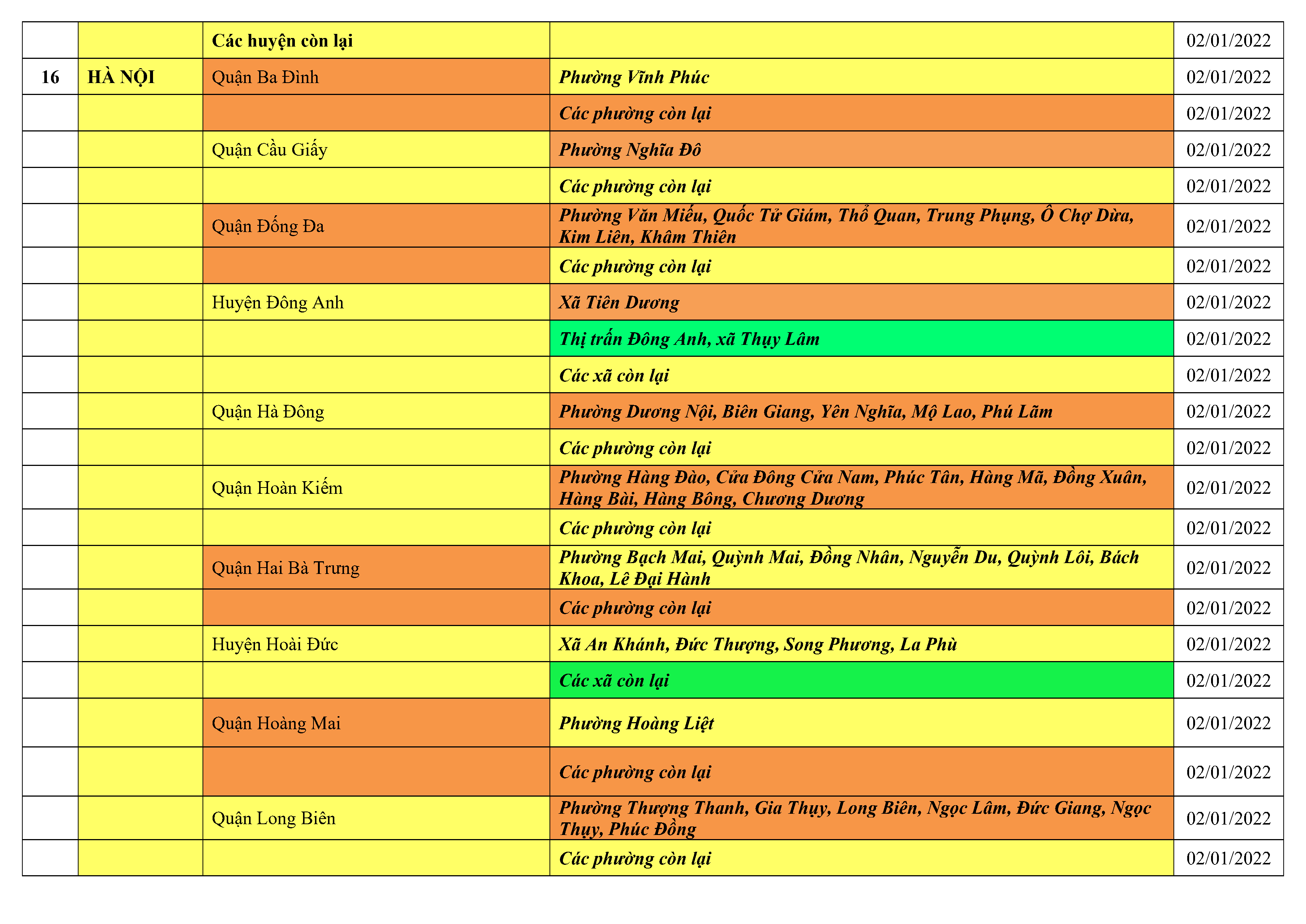 Áp dụng biện pháp tương ứng màu sắc ô cột theo thôn xóm; xã phường; quận huyện; tỉnh thành phố. Cách ly y tế dựa vào việc tiếp xúc, đi đến địa điểm và nơi cư trú có ca bệnh, theo Thông báo của Bộ Y tế, các tỉnh thành phố.