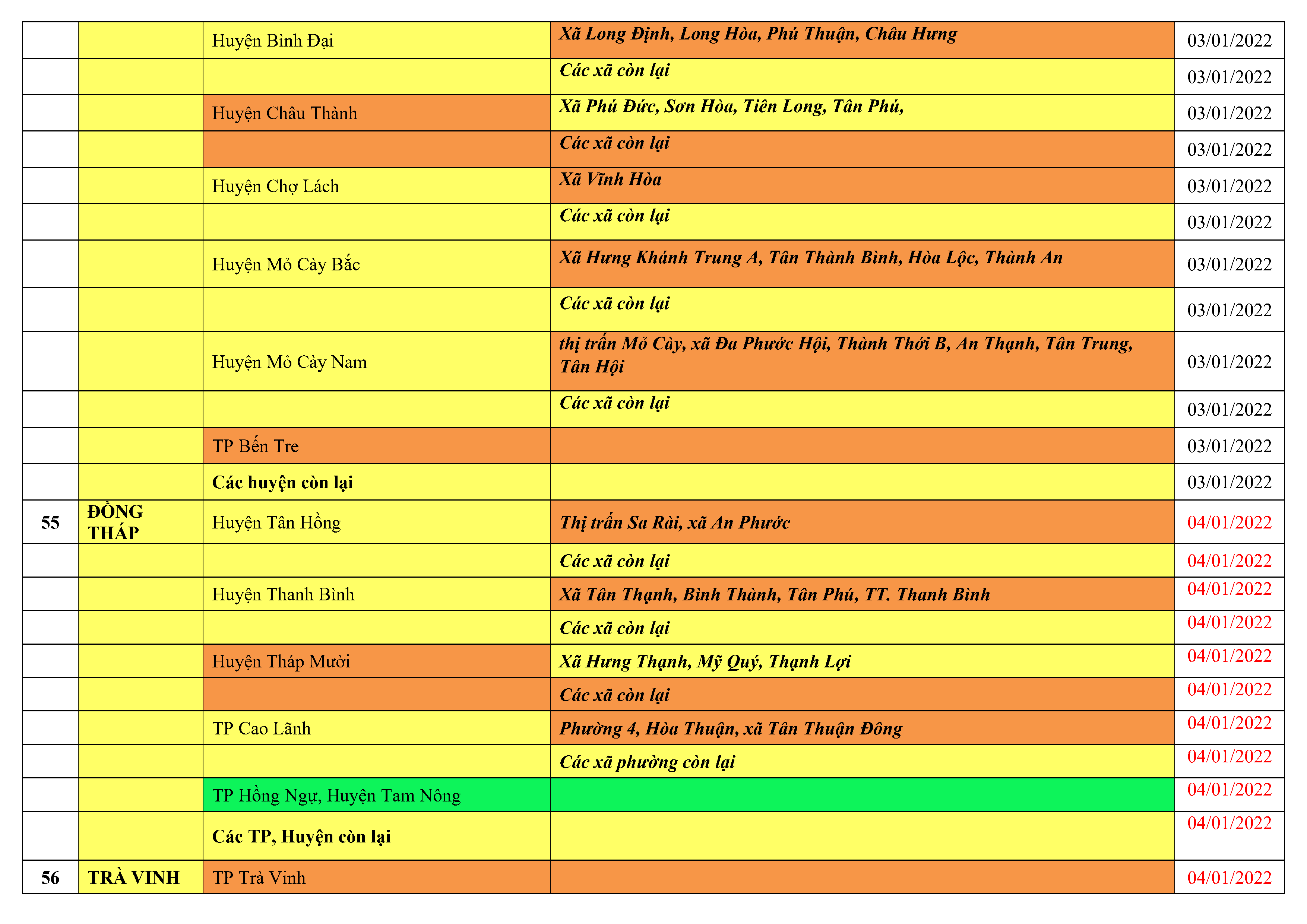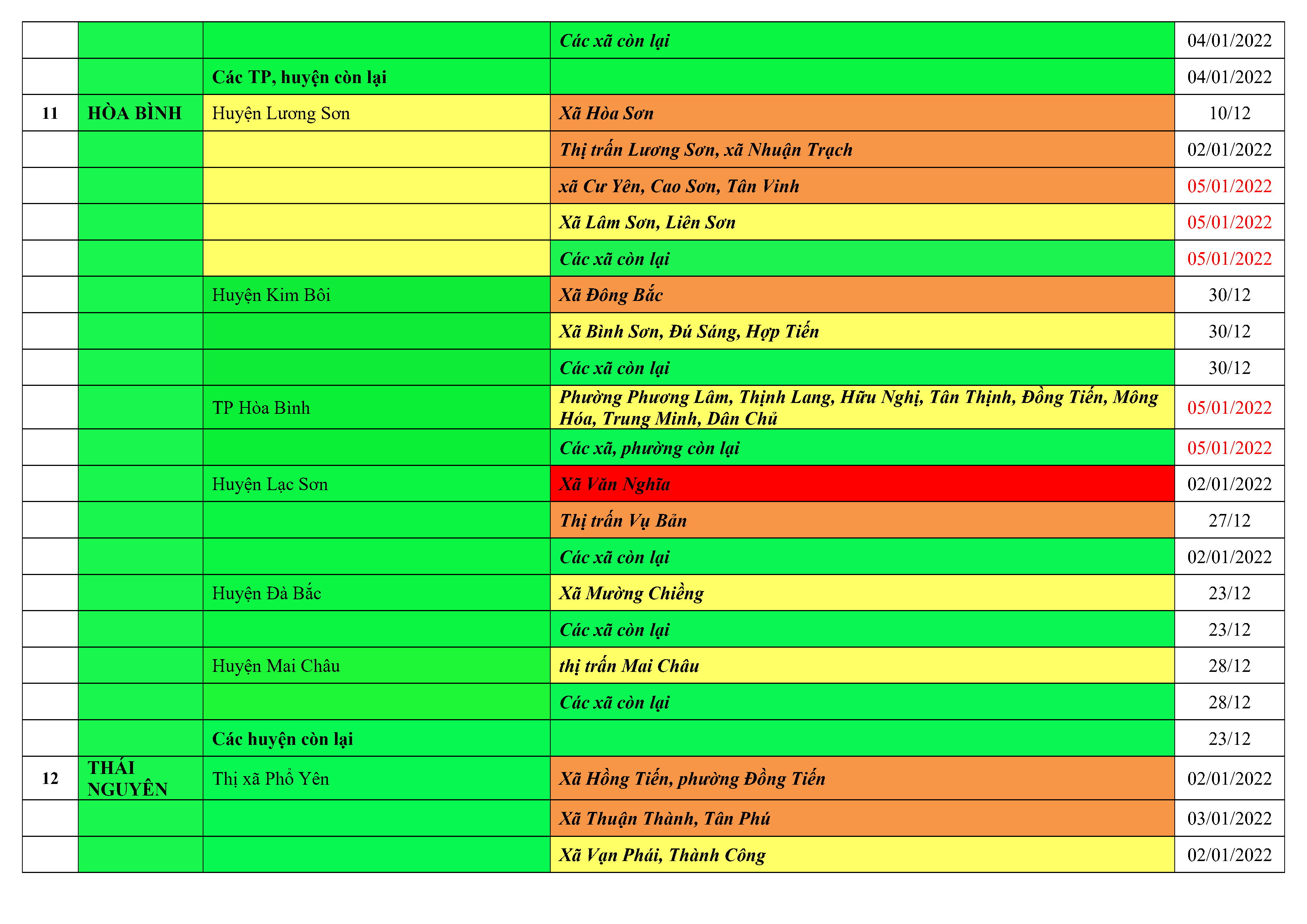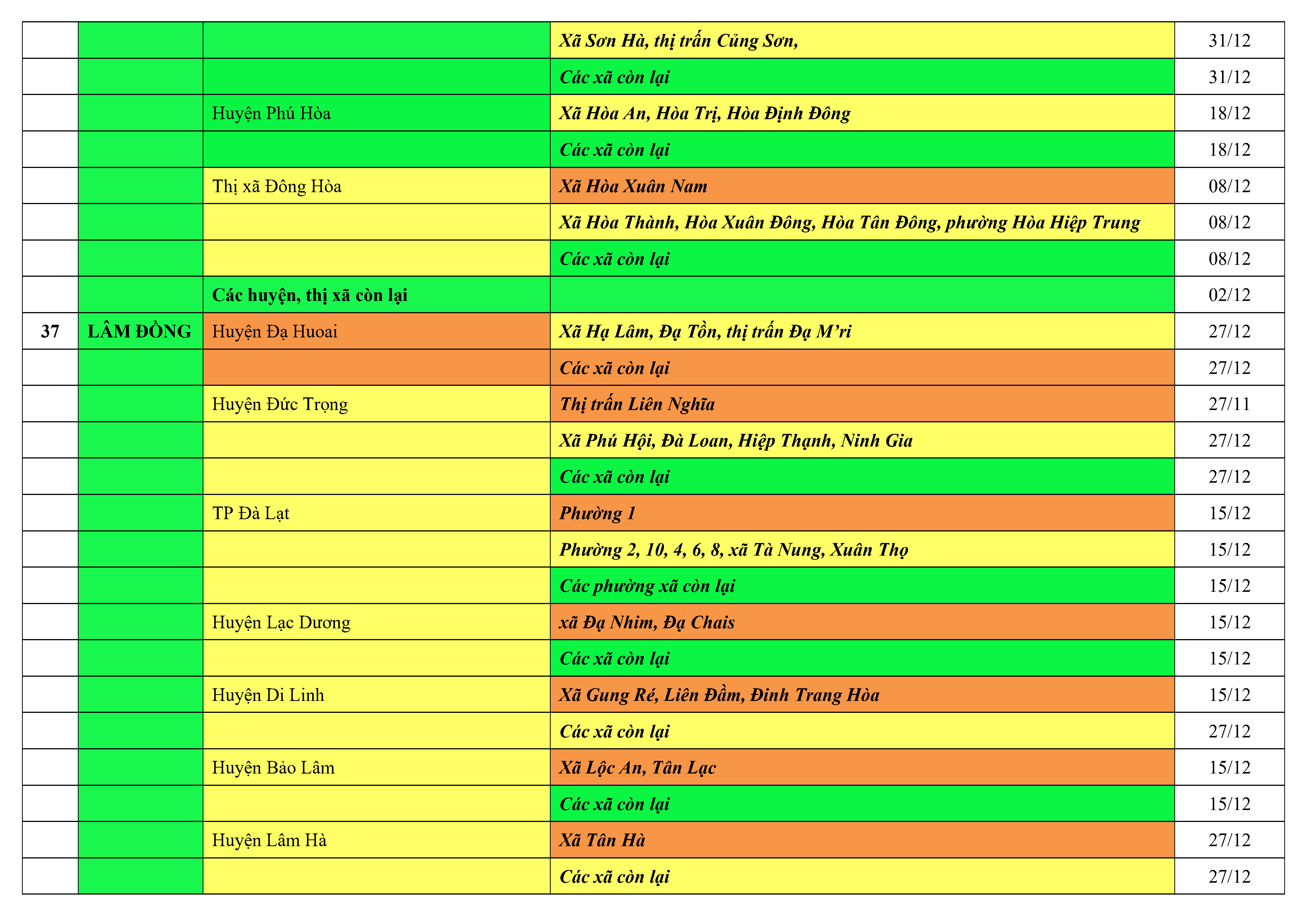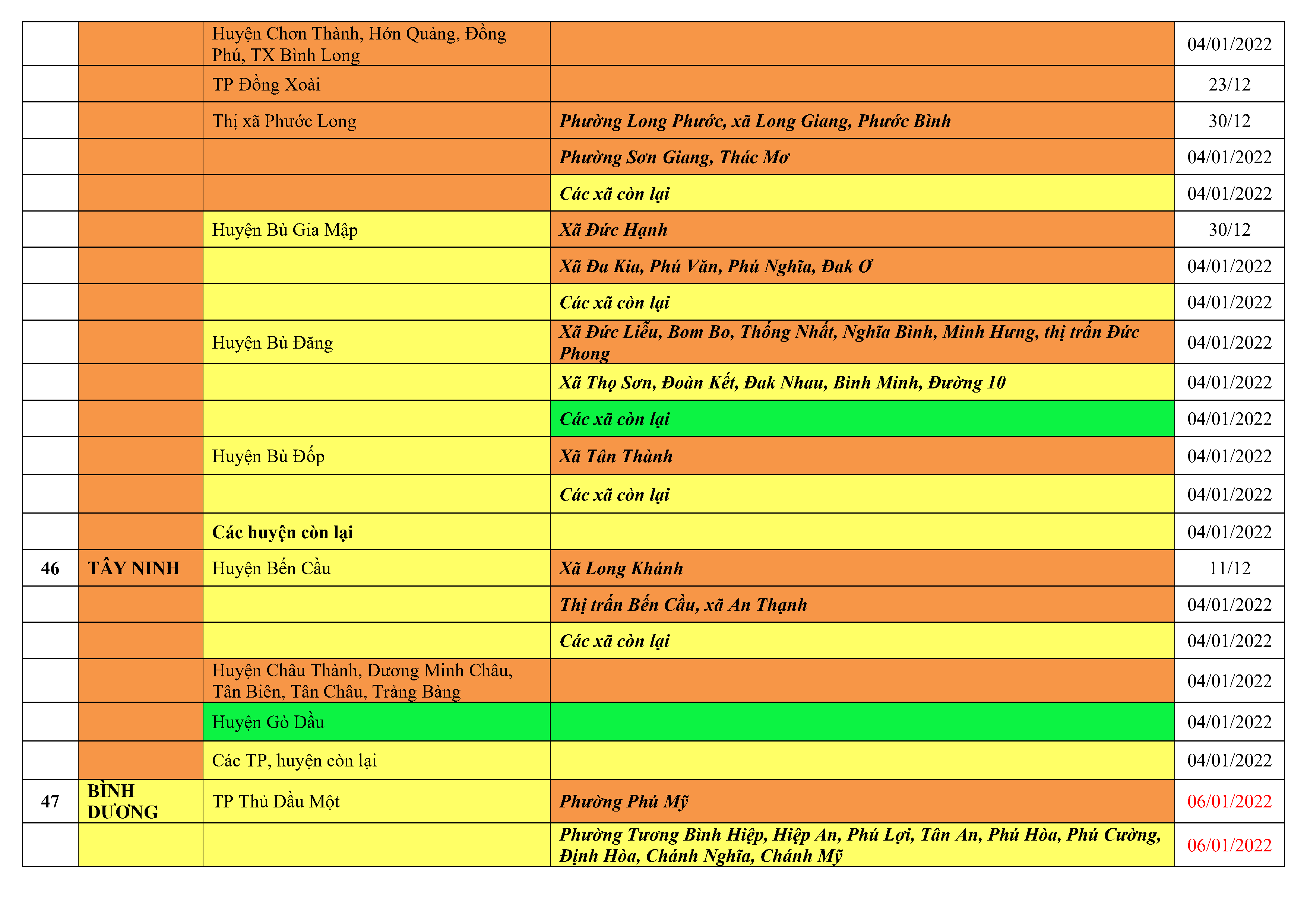 Áp dụng biện pháp tương ứng màu sắc ô cột theo thôn xóm; xã phường; quận huyện; tỉnh thành phố. Cách ly y tế dựa vào việc tiếp xúc, đi đến địa điểm và nơi cư trú có ca bệnh, theo Thông báo của Bộ Y tế, các tỉnh thành phố.