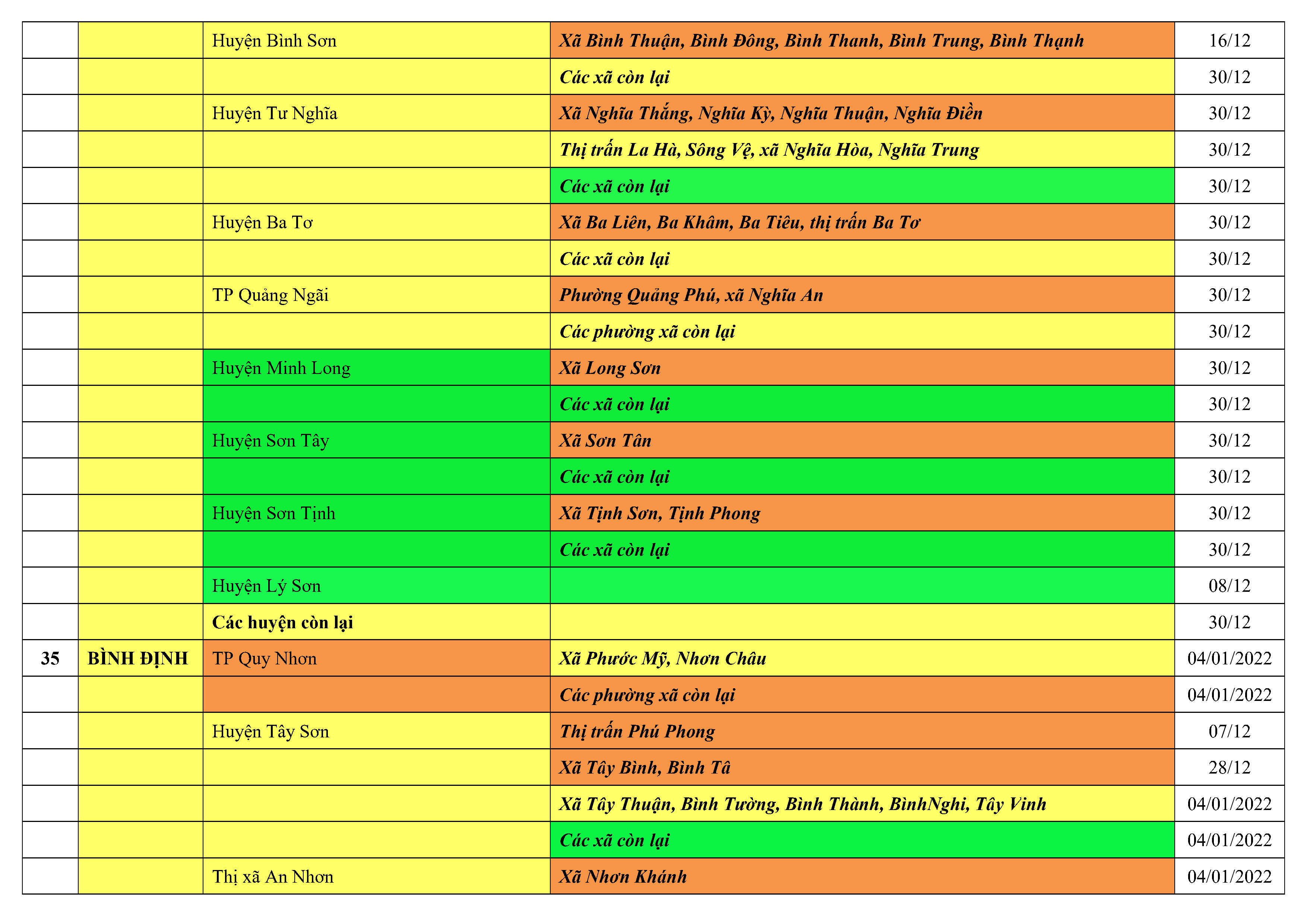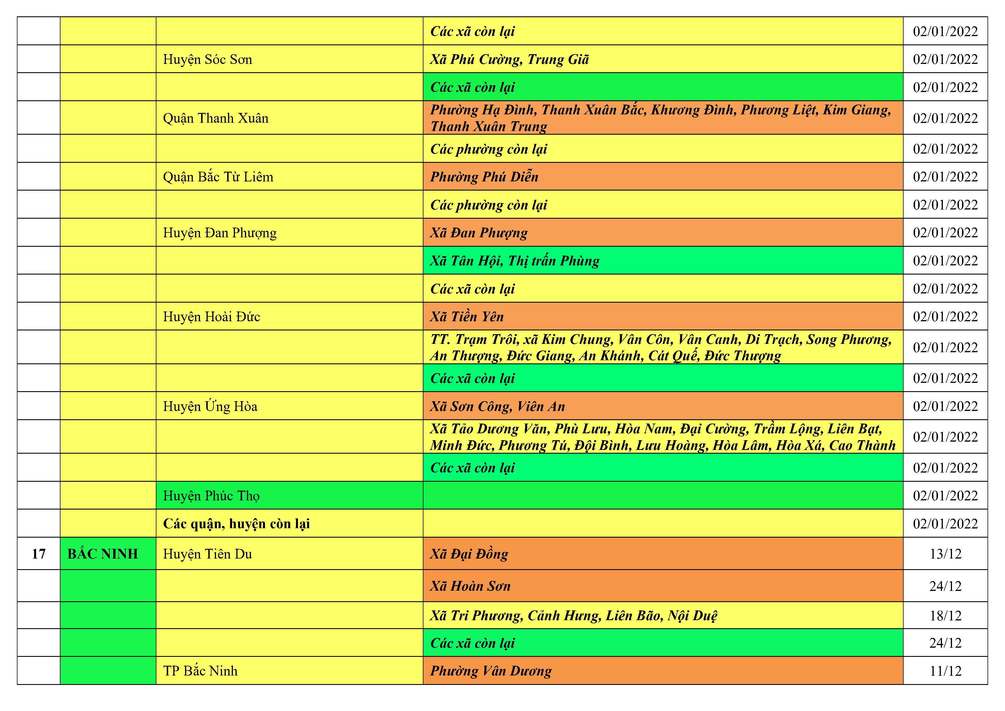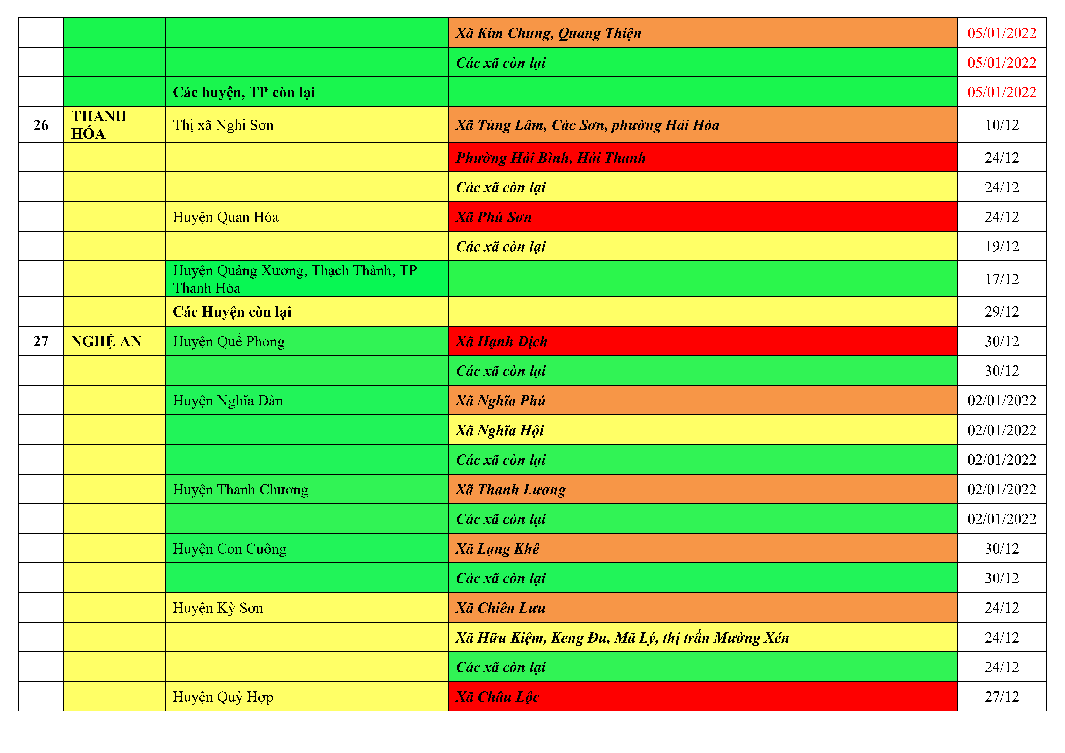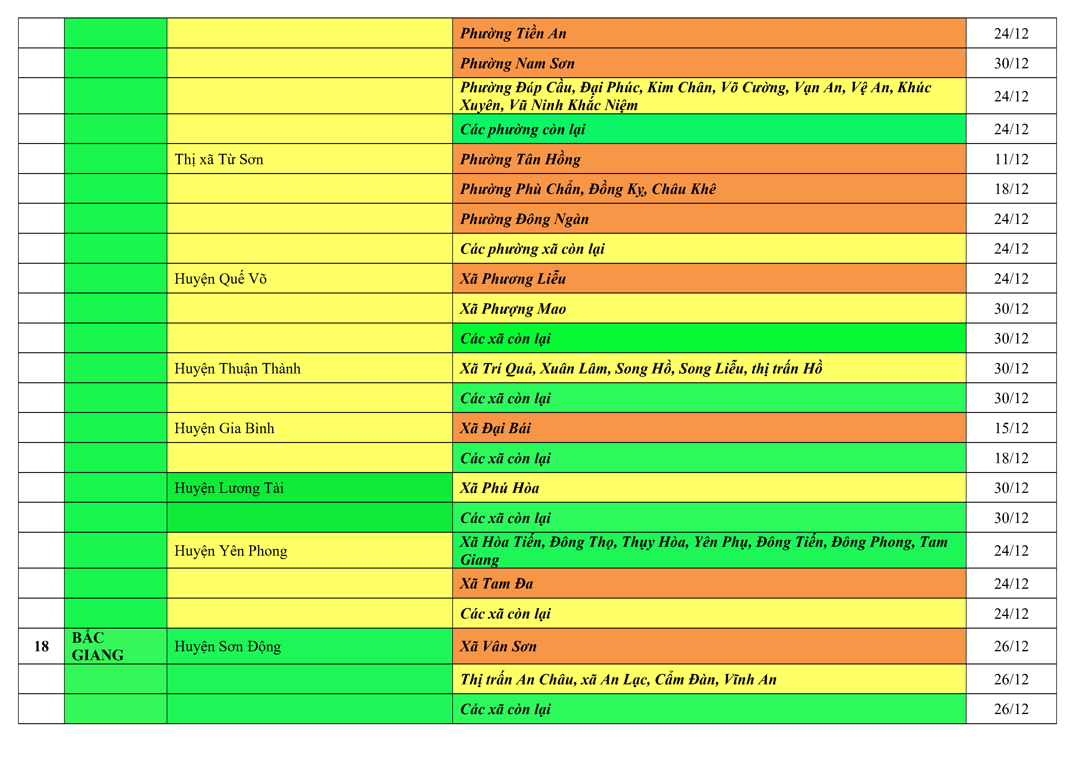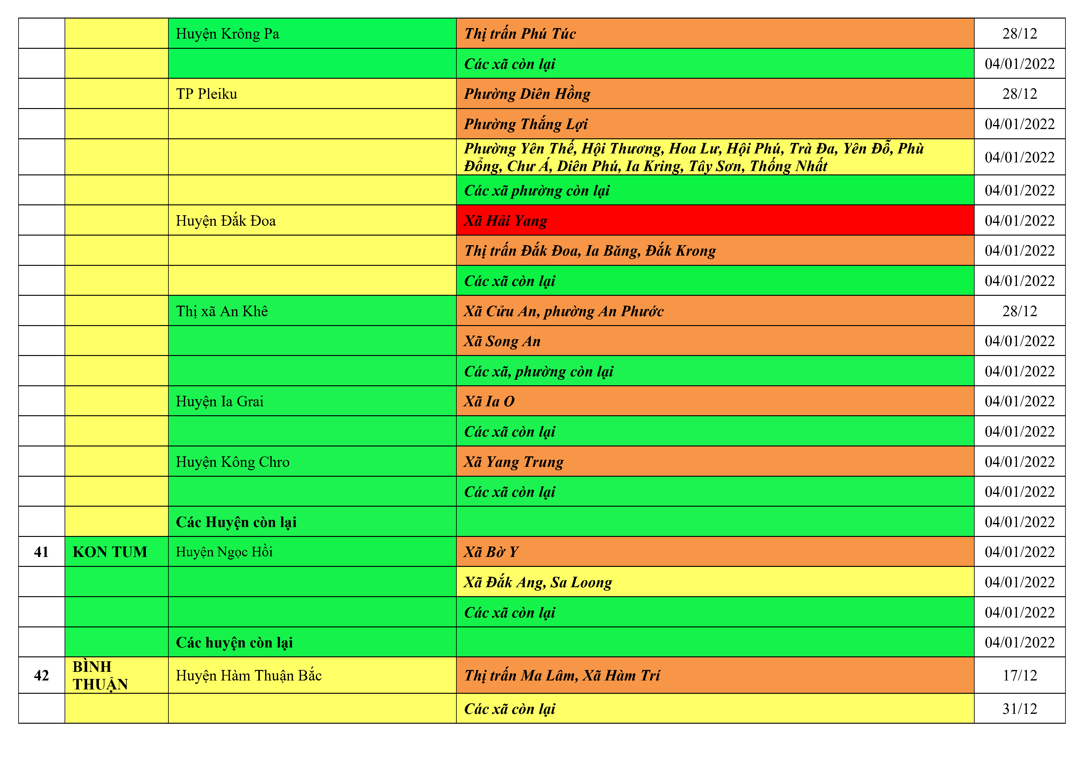 Áp dụng biện pháp tương ứng màu sắc ô cột theo thôn xóm; xã phường; quận huyện; tỉnh thành phố. Cách ly y tế dựa vào việc tiếp xúc, đi đến địa điểm và nơi cư trú có ca bệnh, theo Thông báo của Bộ Y tế, các tỉnh thành phố.