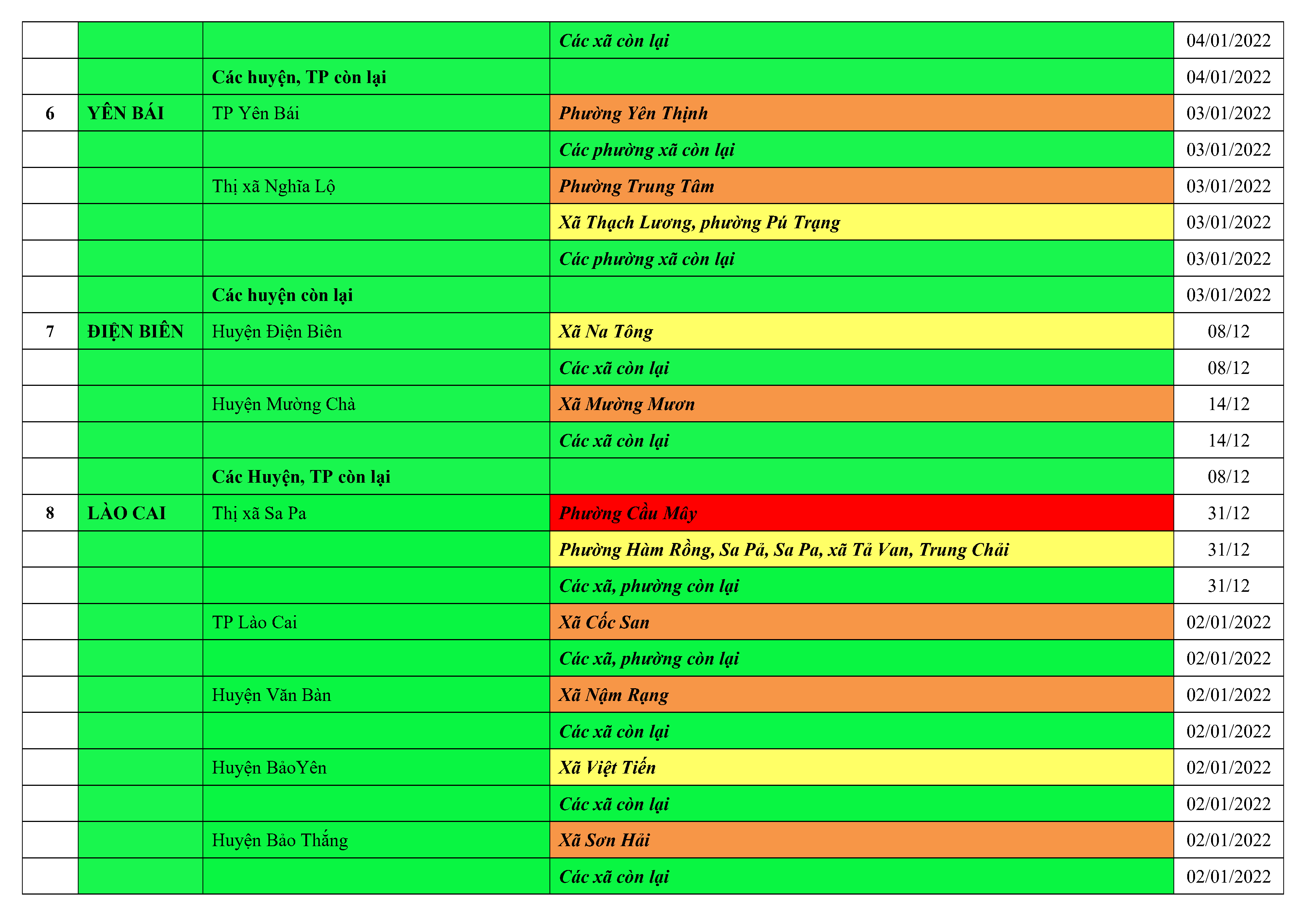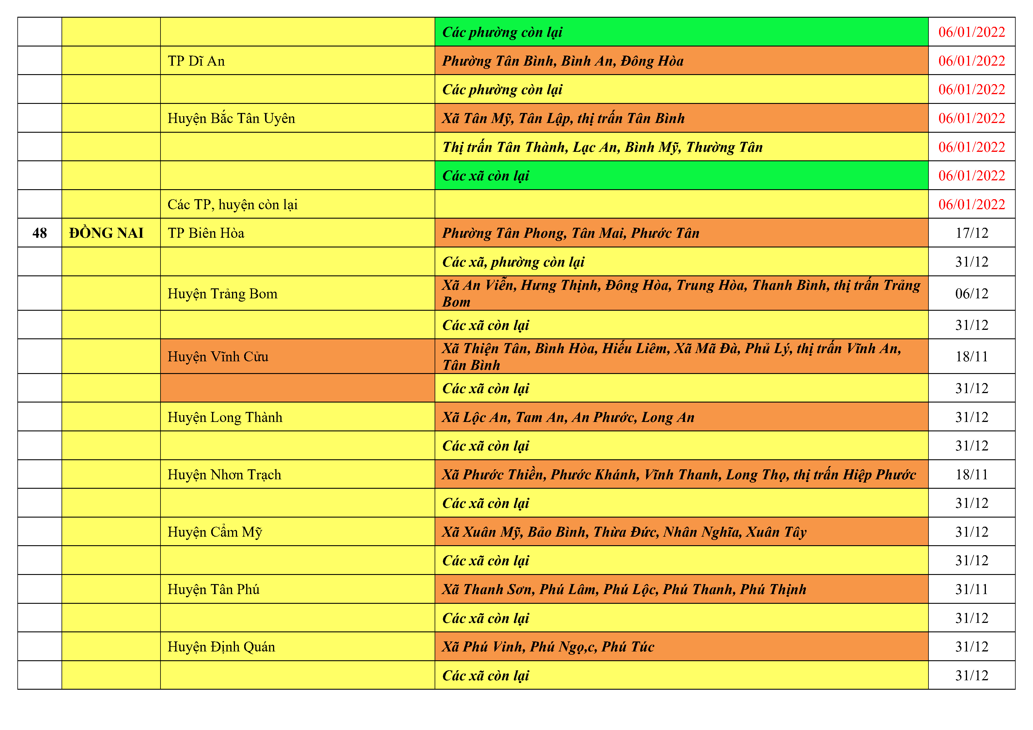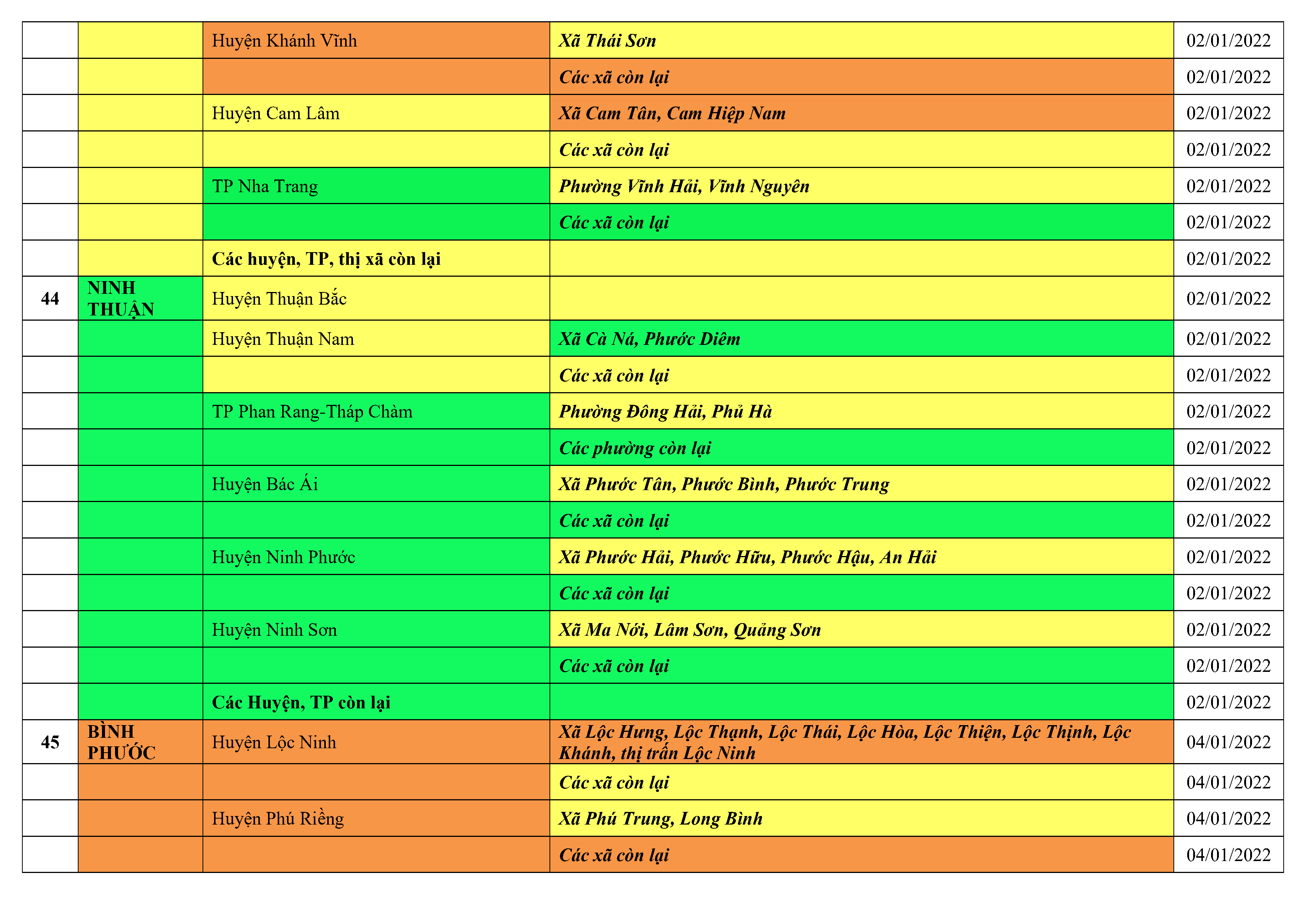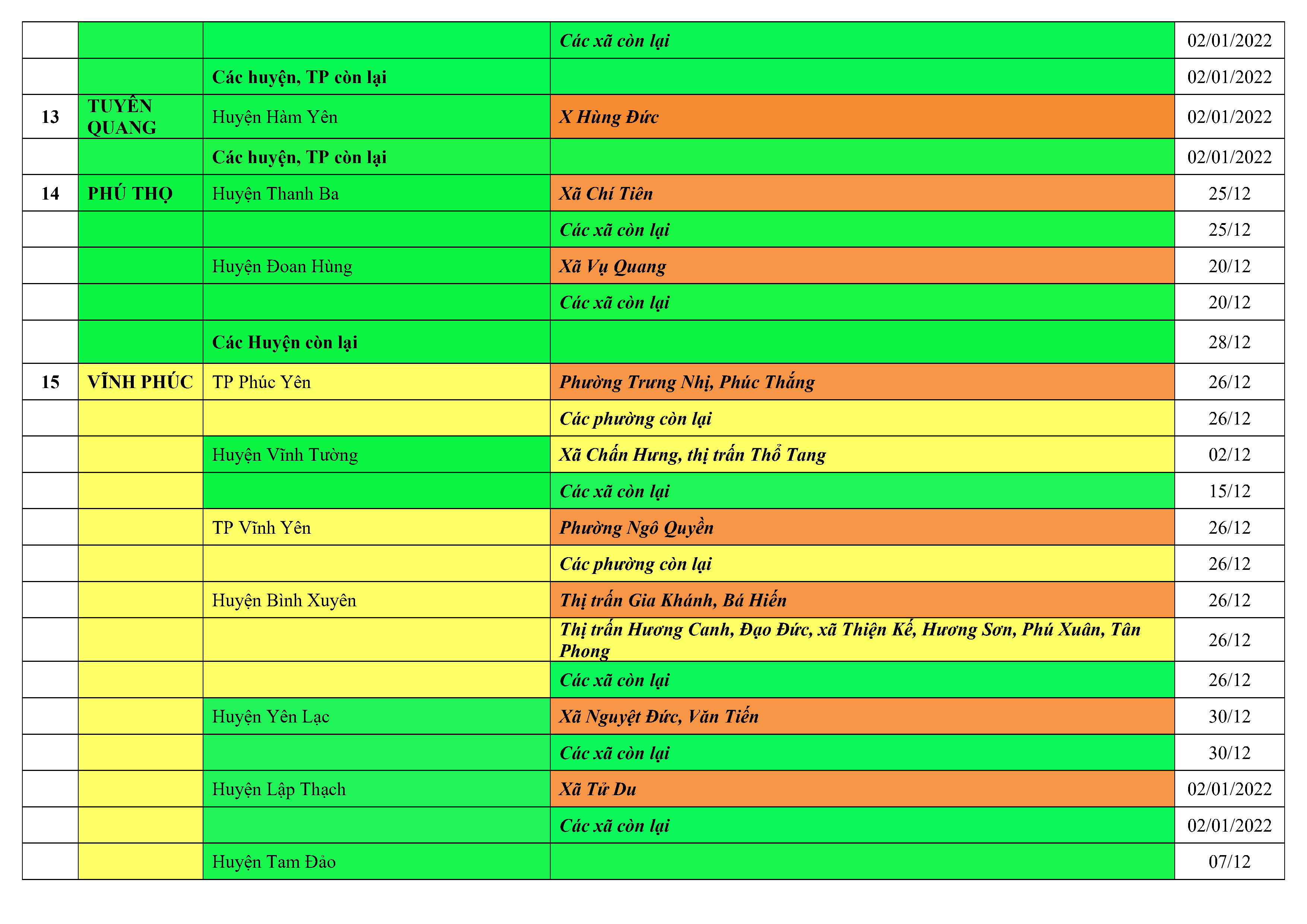 Áp dụng biện pháp tương ứng màu sắc ô cột theo thôn xóm; xã phường; quận huyện; tỉnh thành phố. Cách ly y tế dựa vào việc tiếp xúc, đi đến địa điểm và nơi cư trú có ca bệnh, theo Thông báo của Bộ Y tế, các tỉnh thành phố.