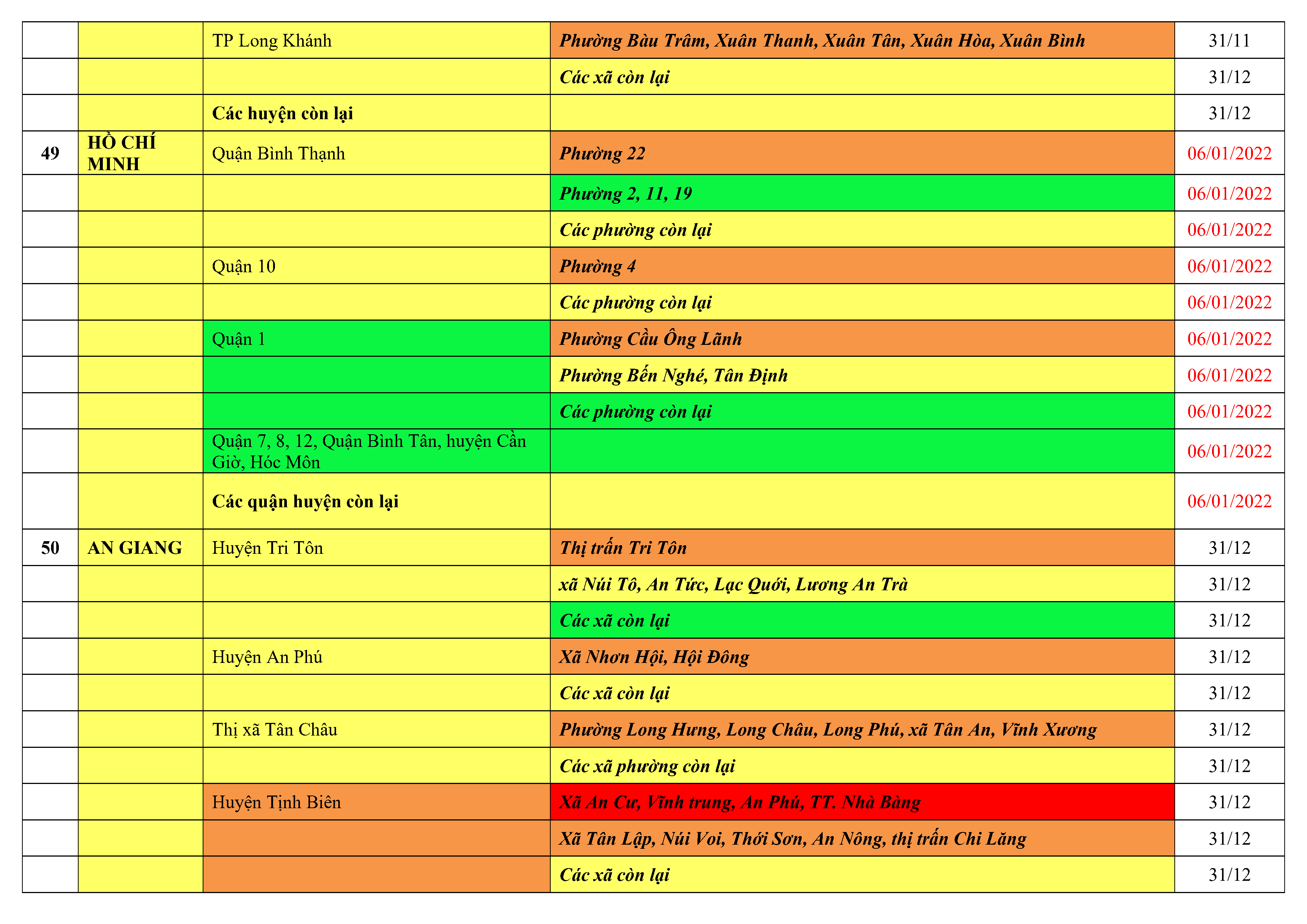 Áp dụng biện pháp tương ứng màu sắc ô cột theo thôn xóm; xã phường; quận huyện; tỉnh thành phố.