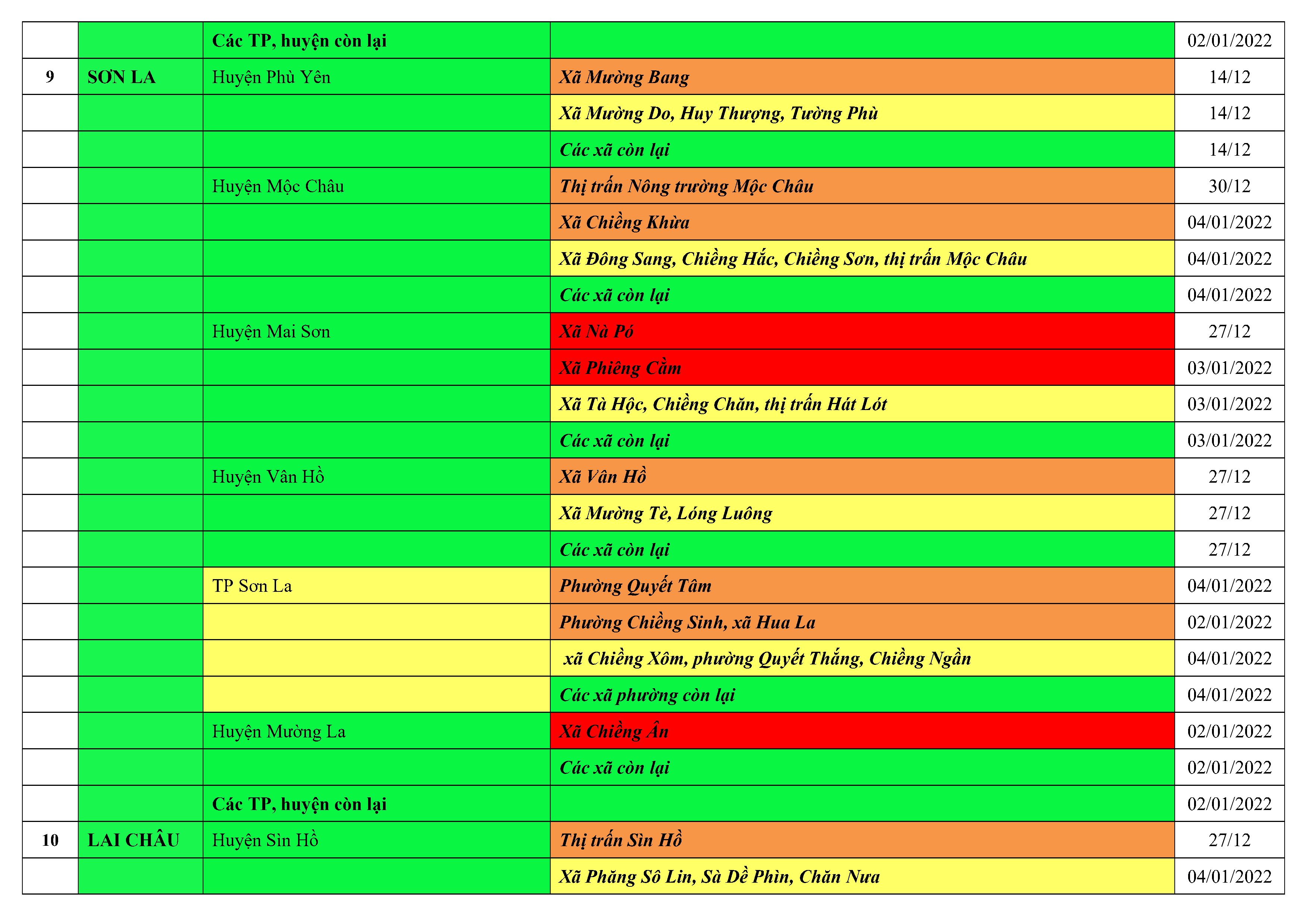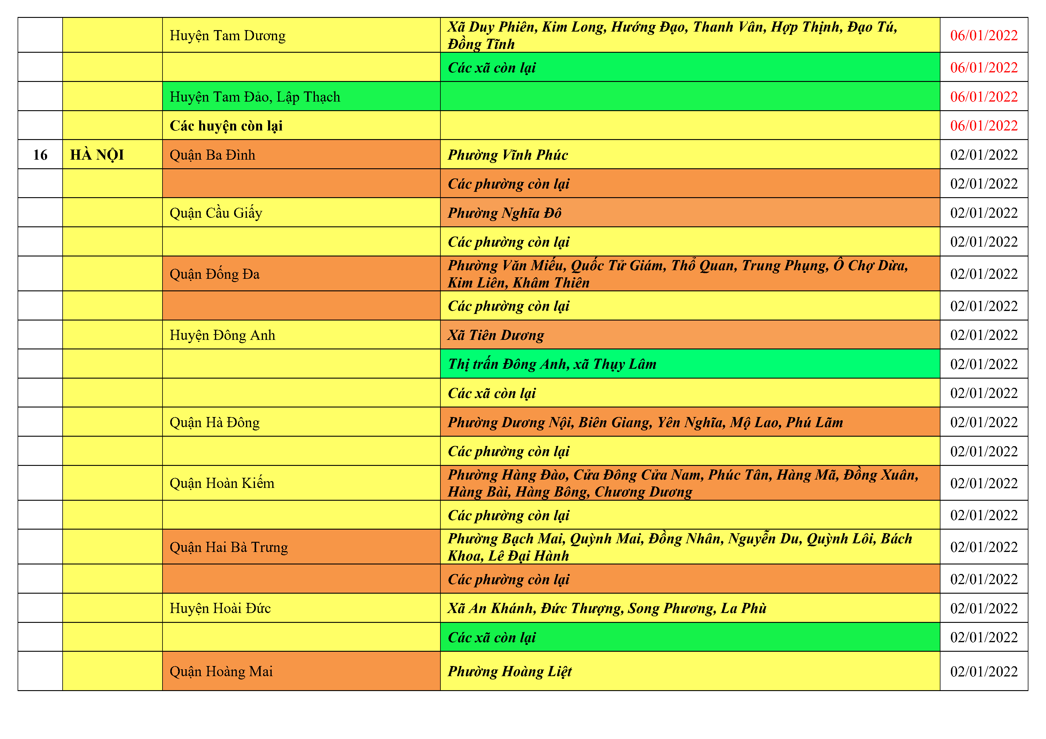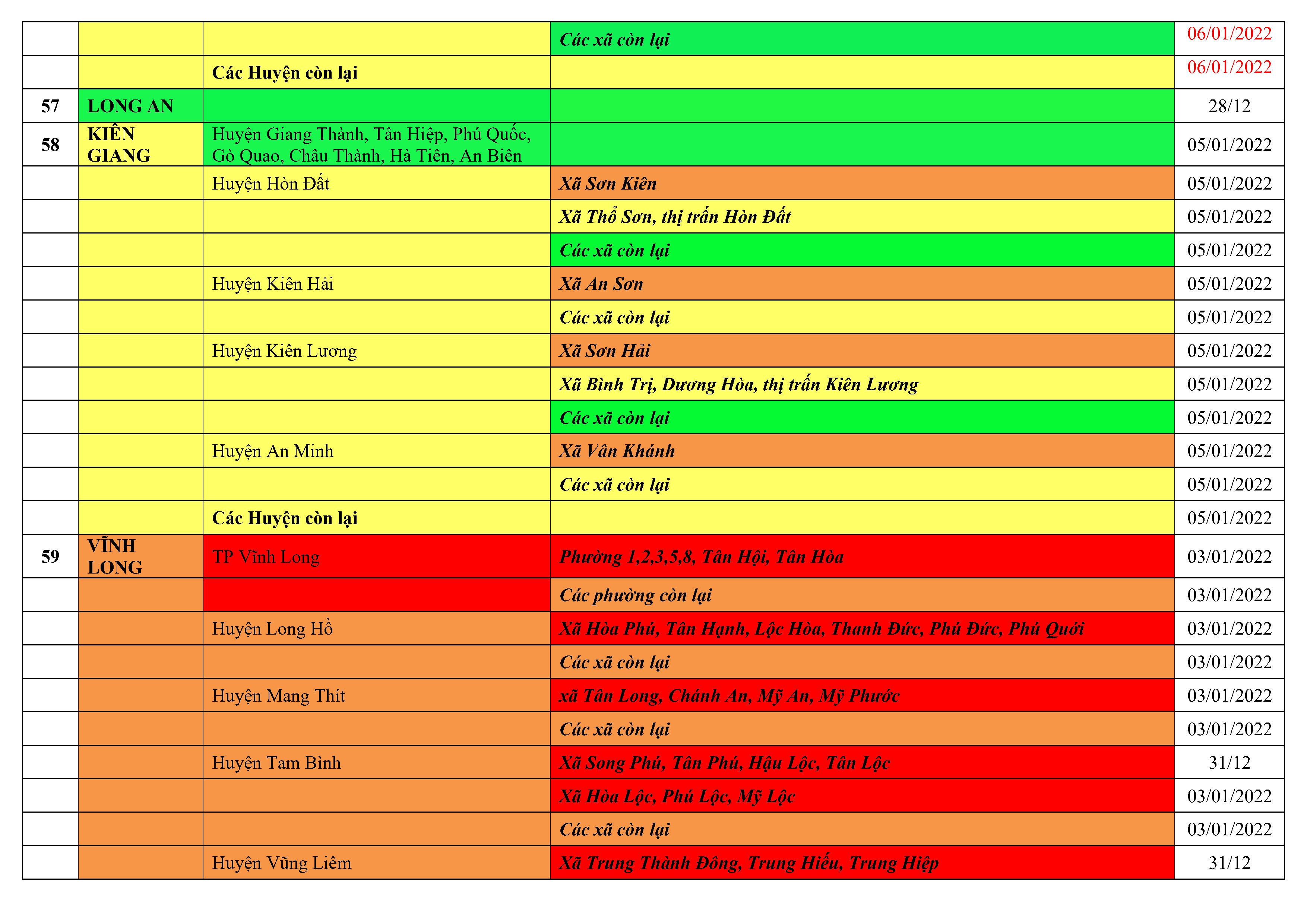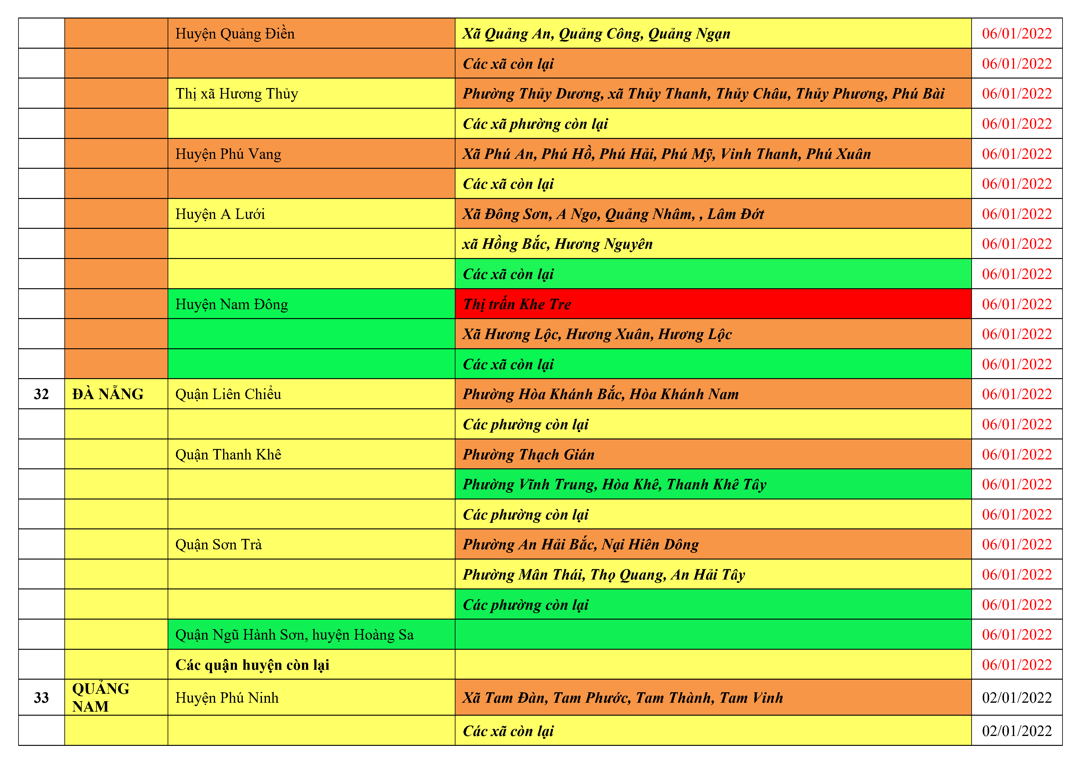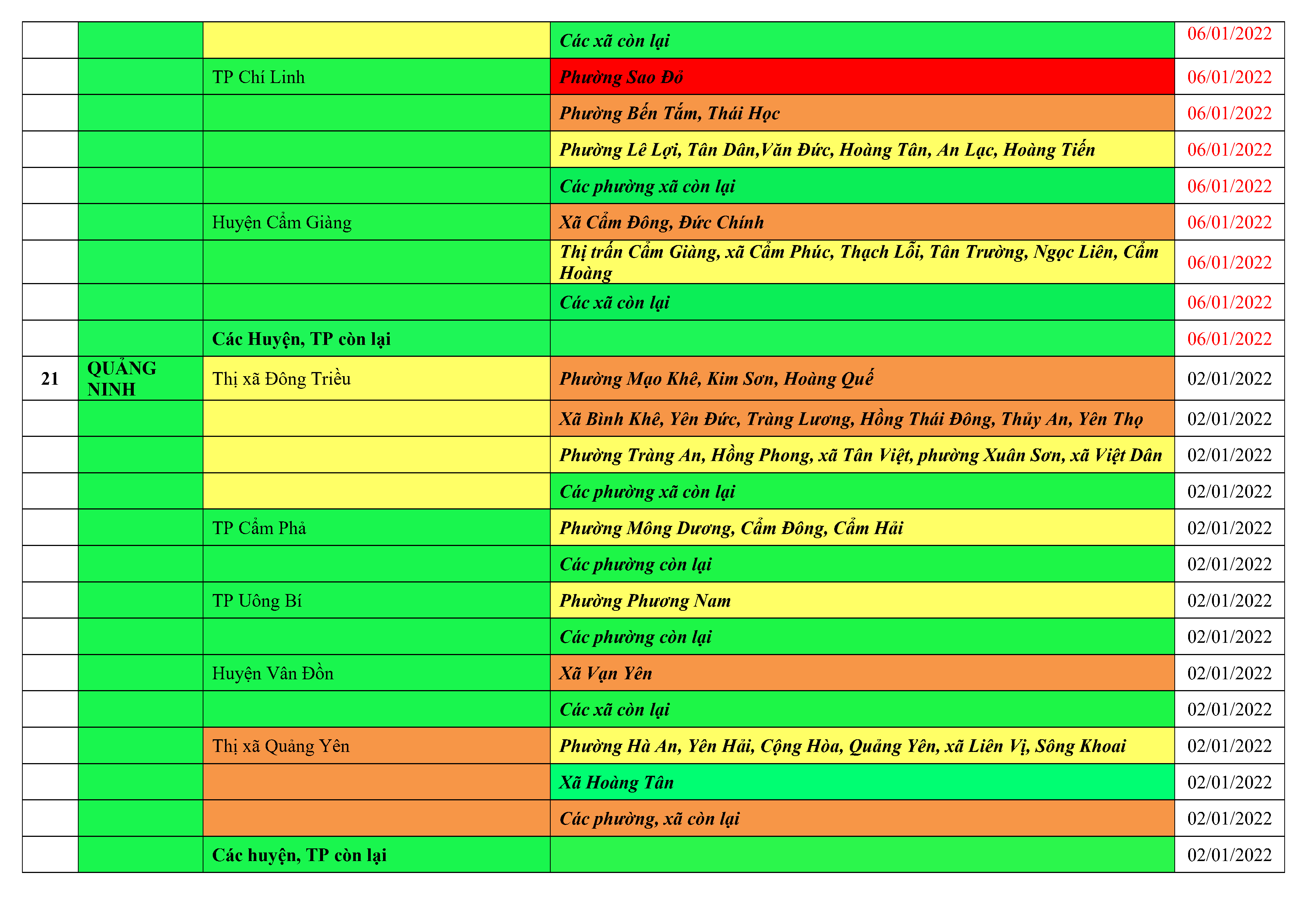 Áp dụng biện pháp tương ứng màu sắc ô cột theo thôn xóm; xã phường; quận huyện; tỉnh thành phố. Cách ly y tế dựa vào việc tiếp xúc, đi đến địa điểm và nơi cư trú có ca bệnh, theo Thông báo của Bộ Y tế, các tỉnh thành phố.