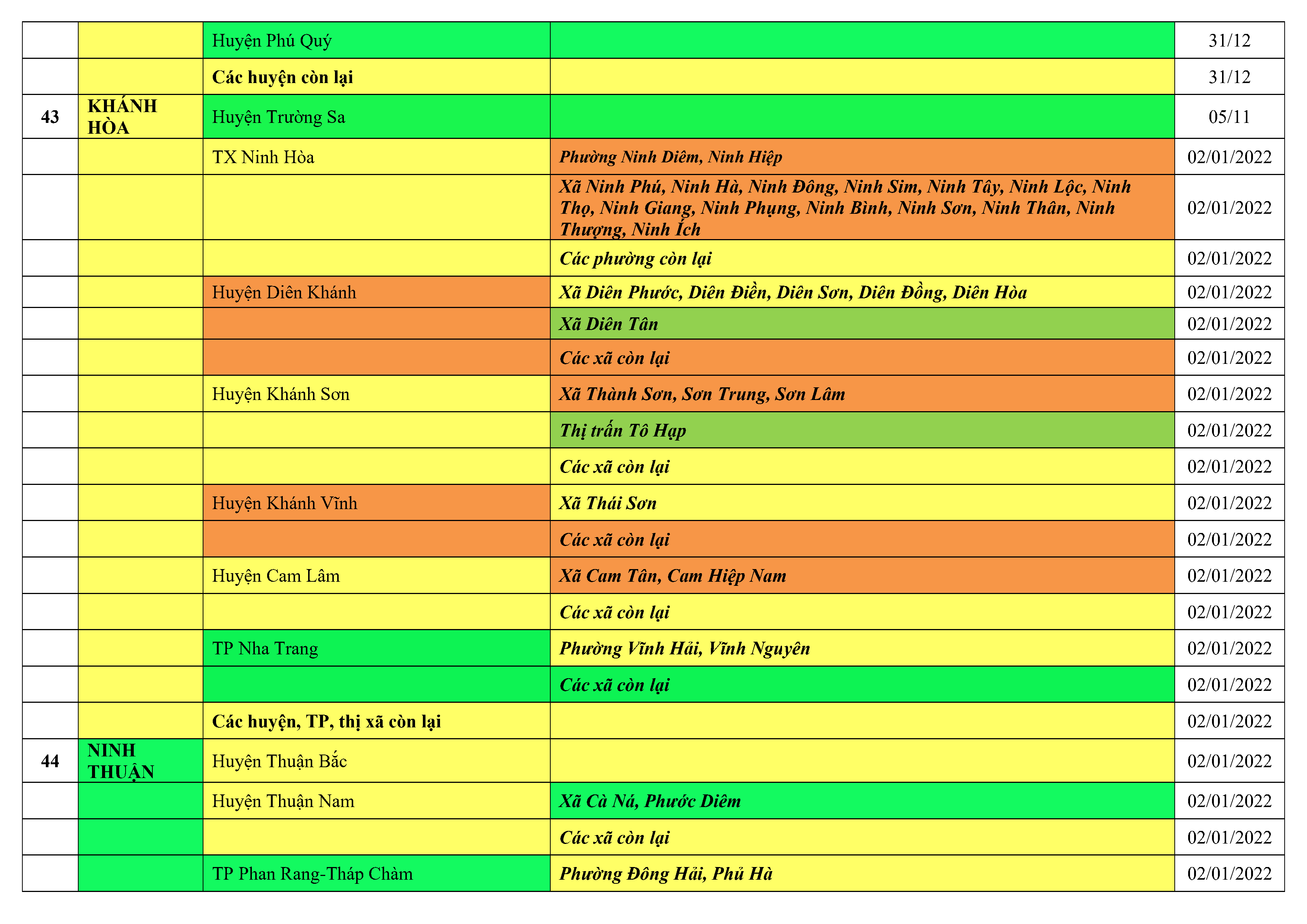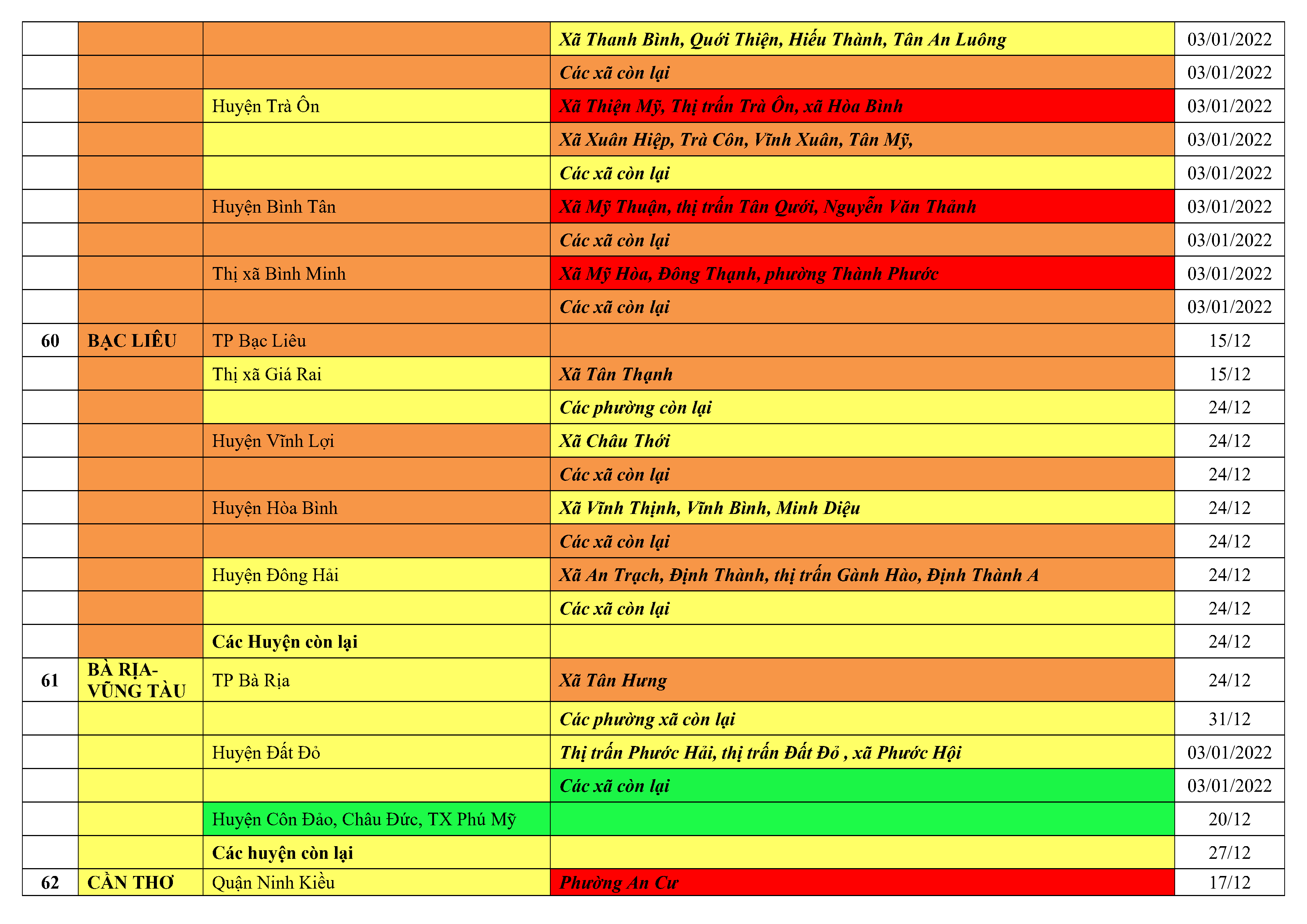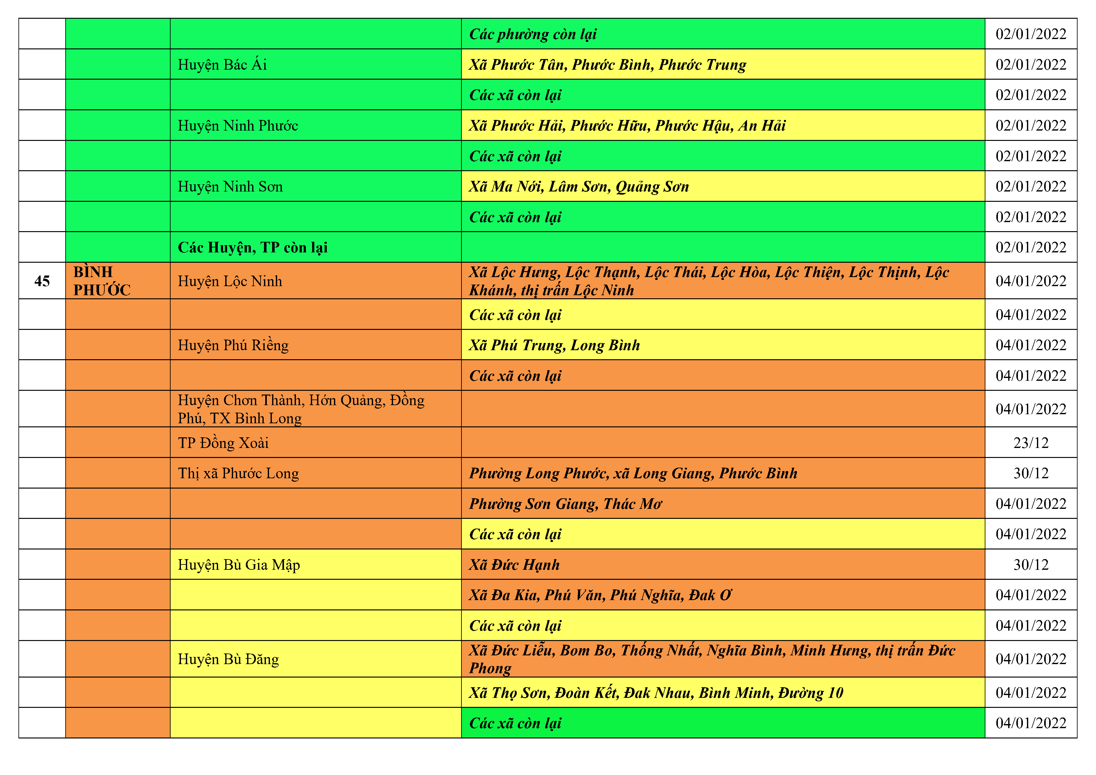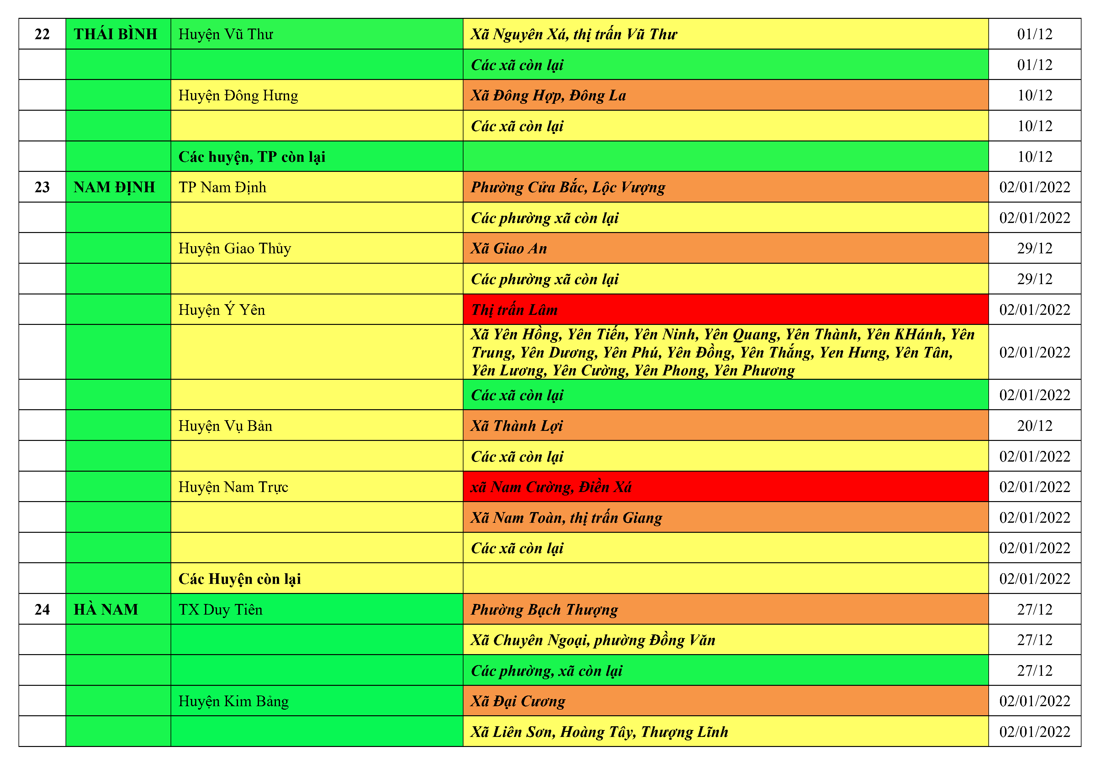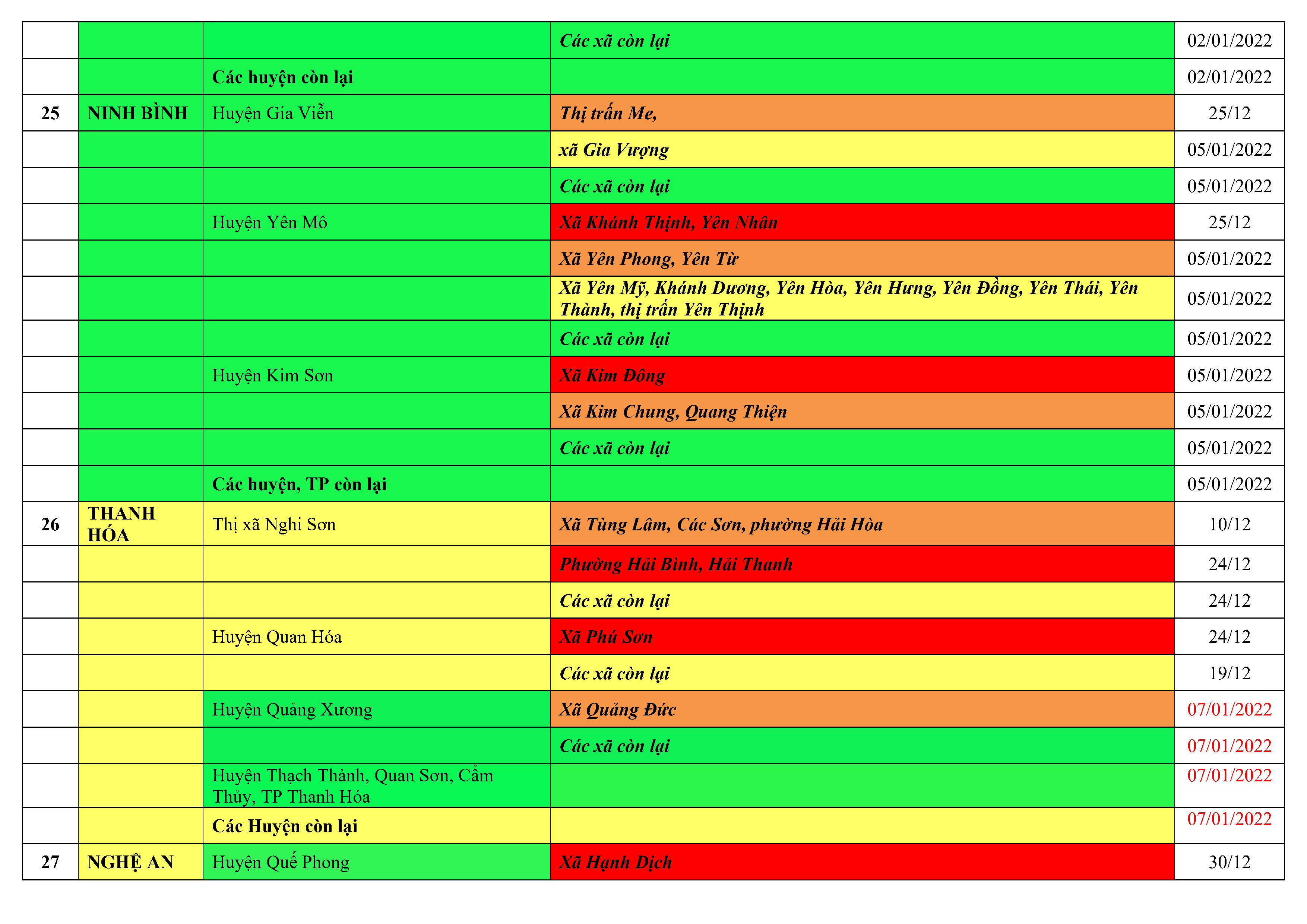 Áp dụng biện pháp tương ứng màu sắc ô cột theo thôn xóm; xã phường; quận huyện; tỉnh thành phố. Cách ly y tế dựa vào việc tiếp xúc, đi đến địa điểm và nơi cư trú có ca bệnh, theo Thông báo của Bộ Y tế, các tỉnh thành phố.