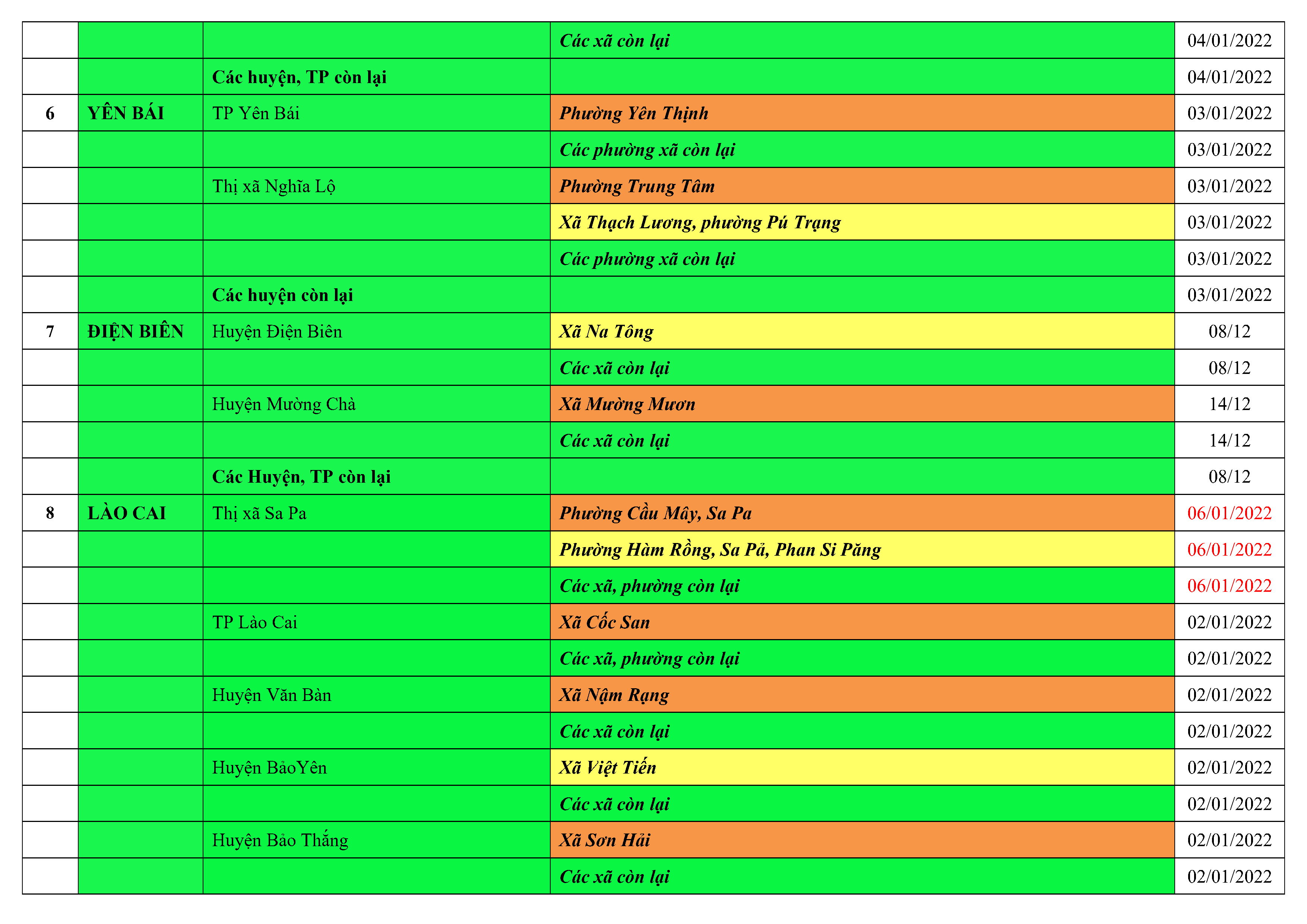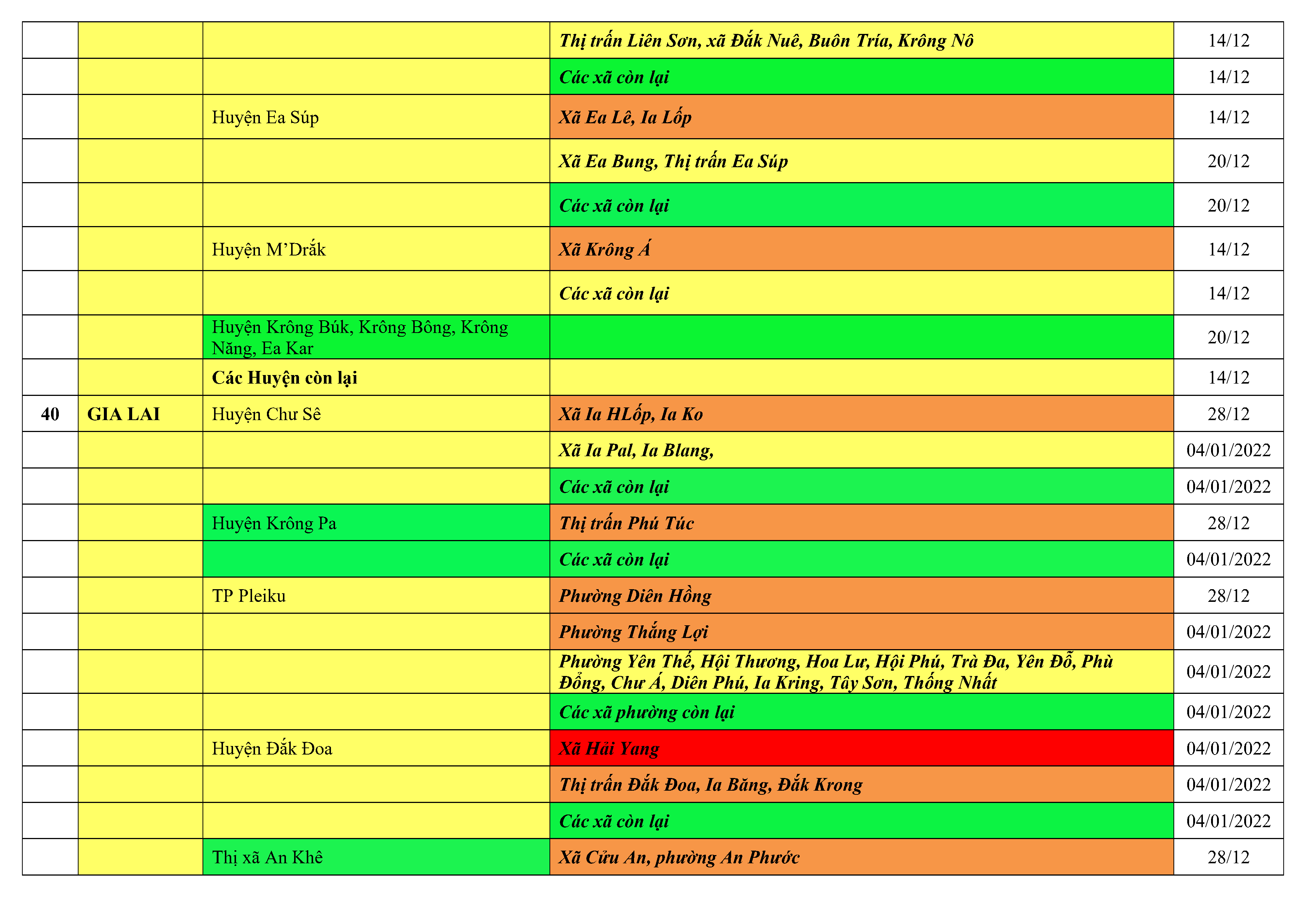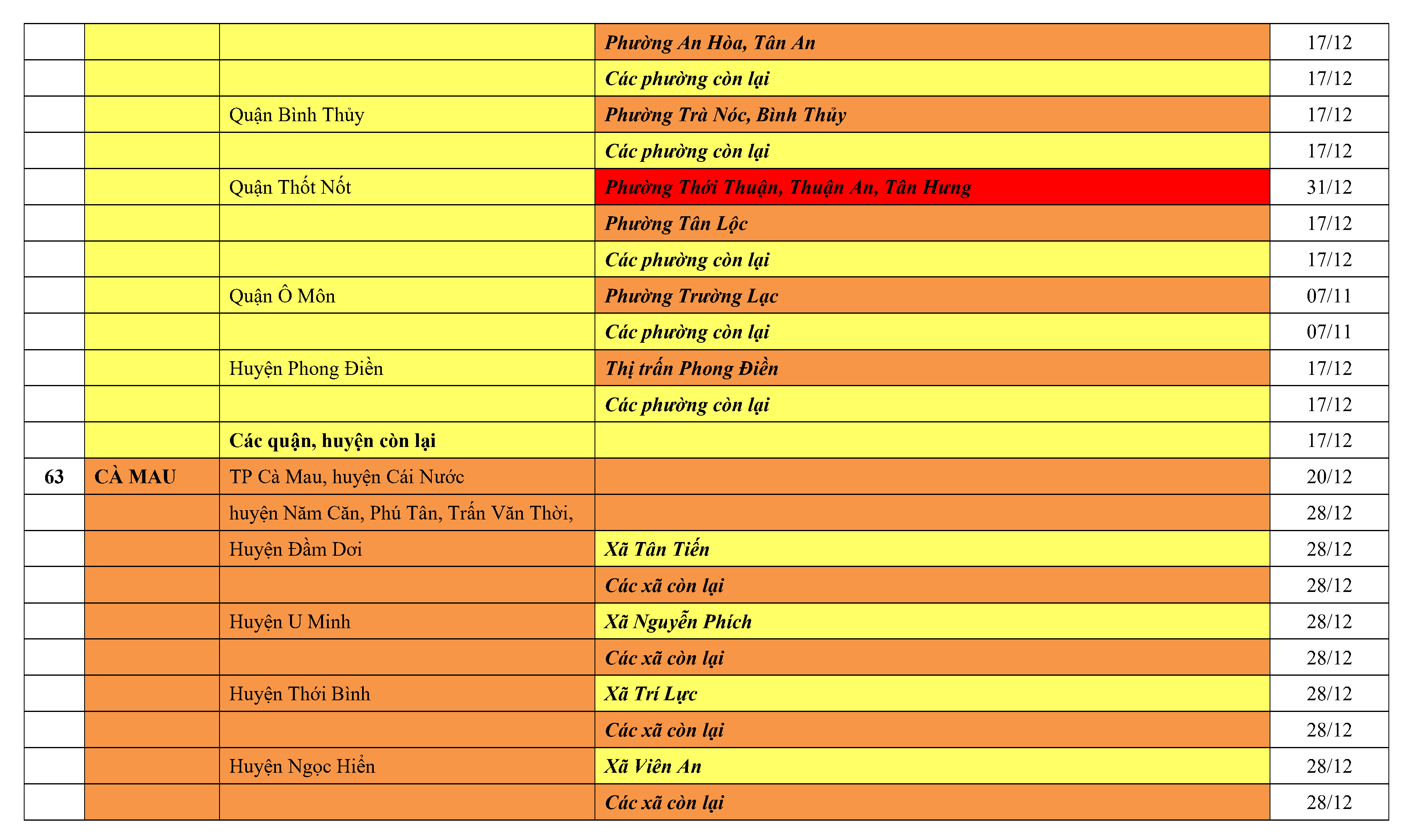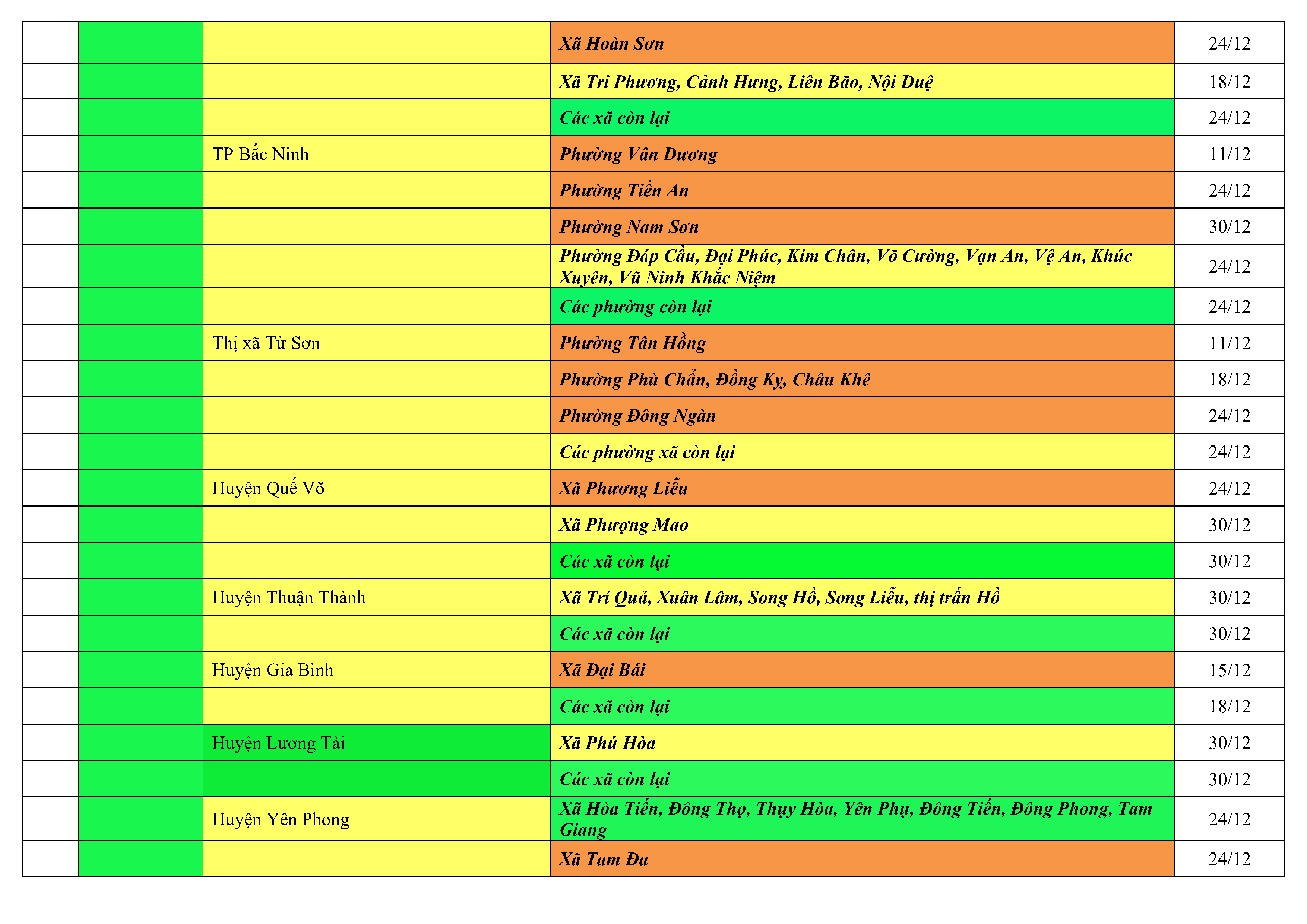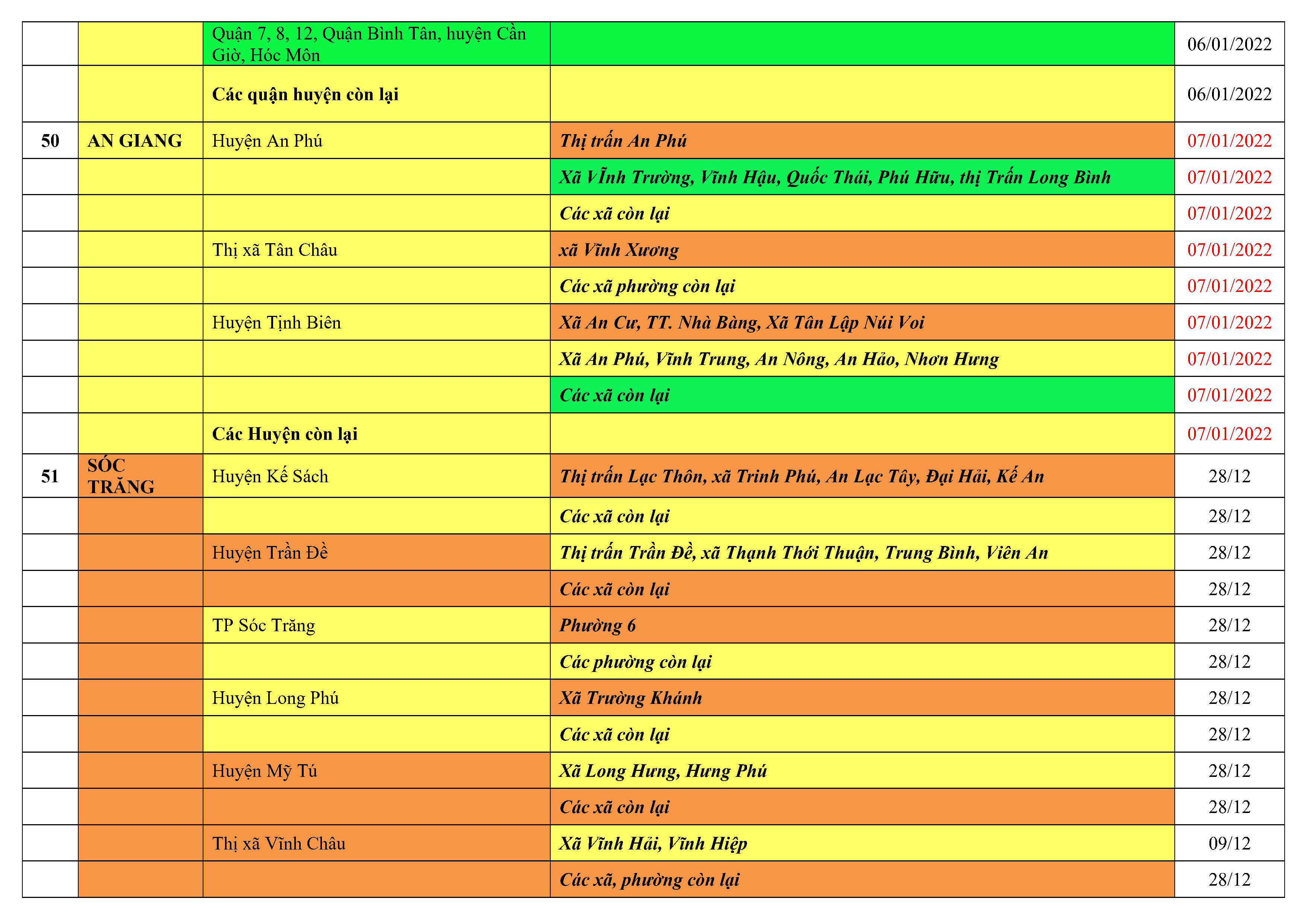Áp dụng biện pháp tương ứng màu sắc ô cột theo thôn xóm; xã phường; quận huyện; tỉnh thành phố. Cách ly y tế dựa vào việc tiếp xúc, đi đến địa điểm và nơi cư trú có ca bệnh, theo Thông báo của Bộ Y tế, các tỉnh thành phố.
