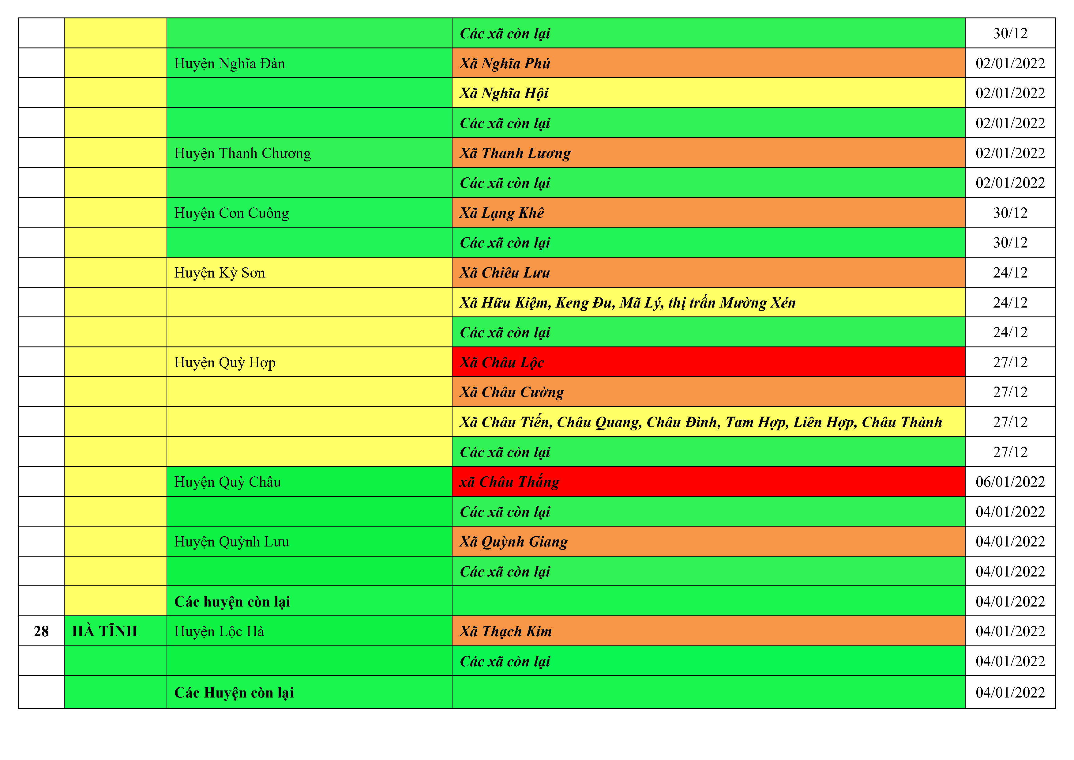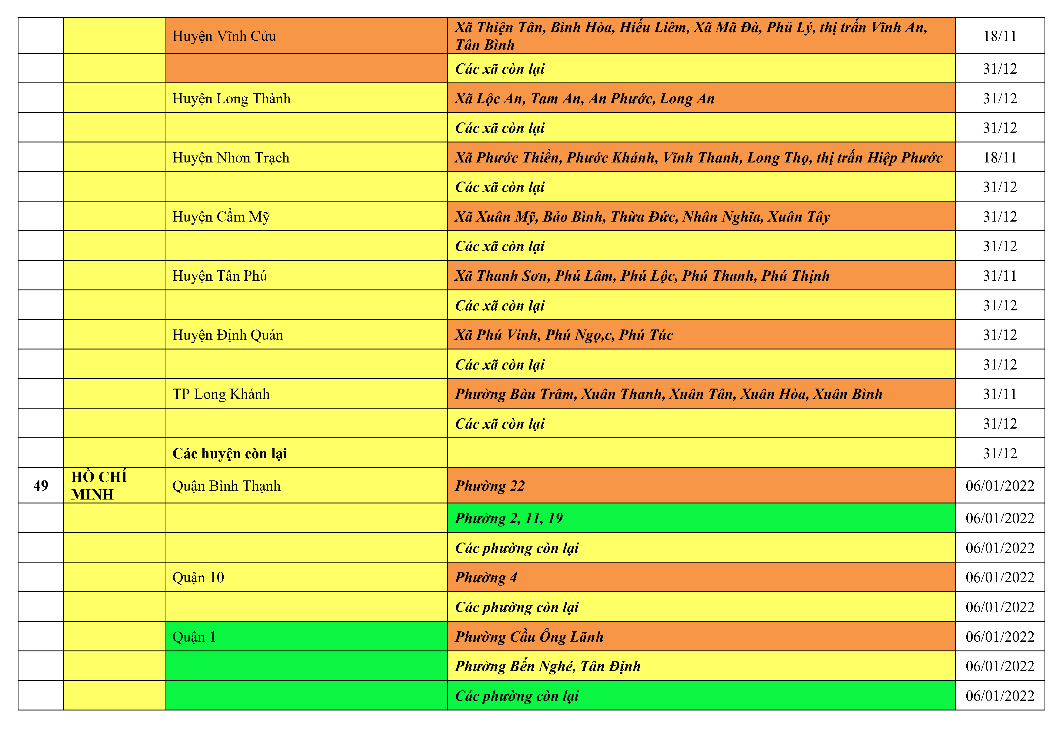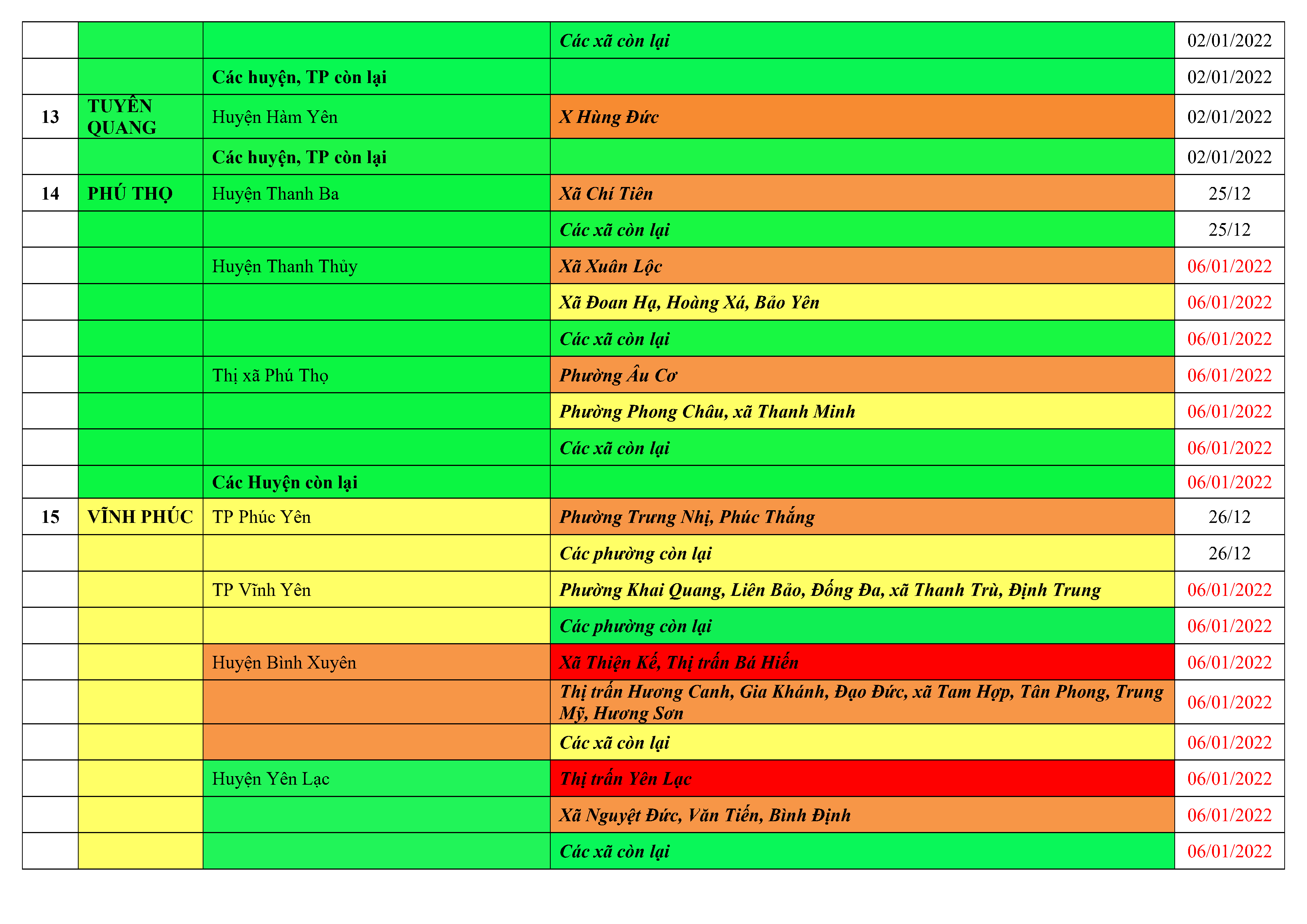 Áp dụng biện pháp tương ứng màu sắc ô cột theo thôn xóm; xã phường; quận huyện; tỉnh thành phố.