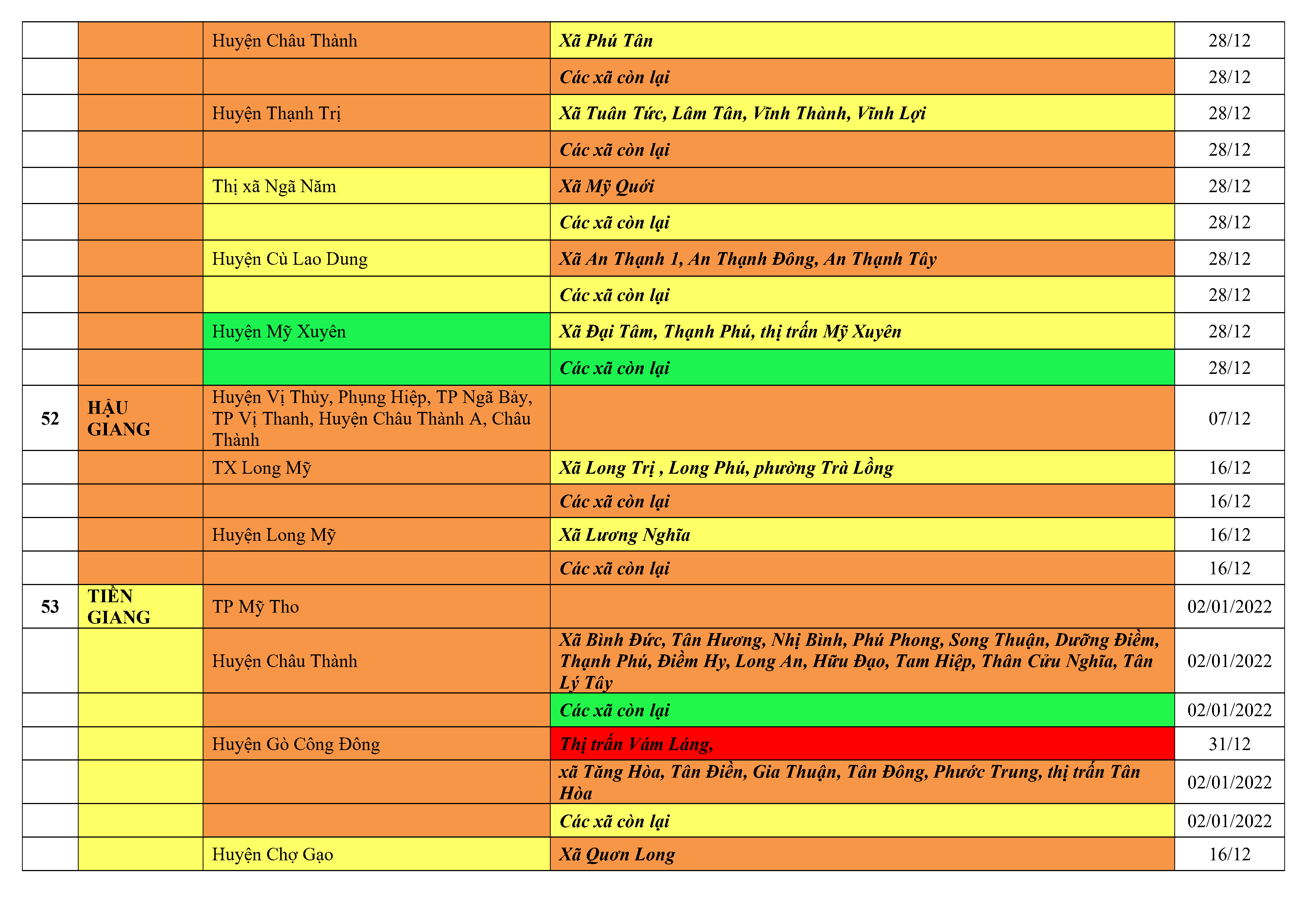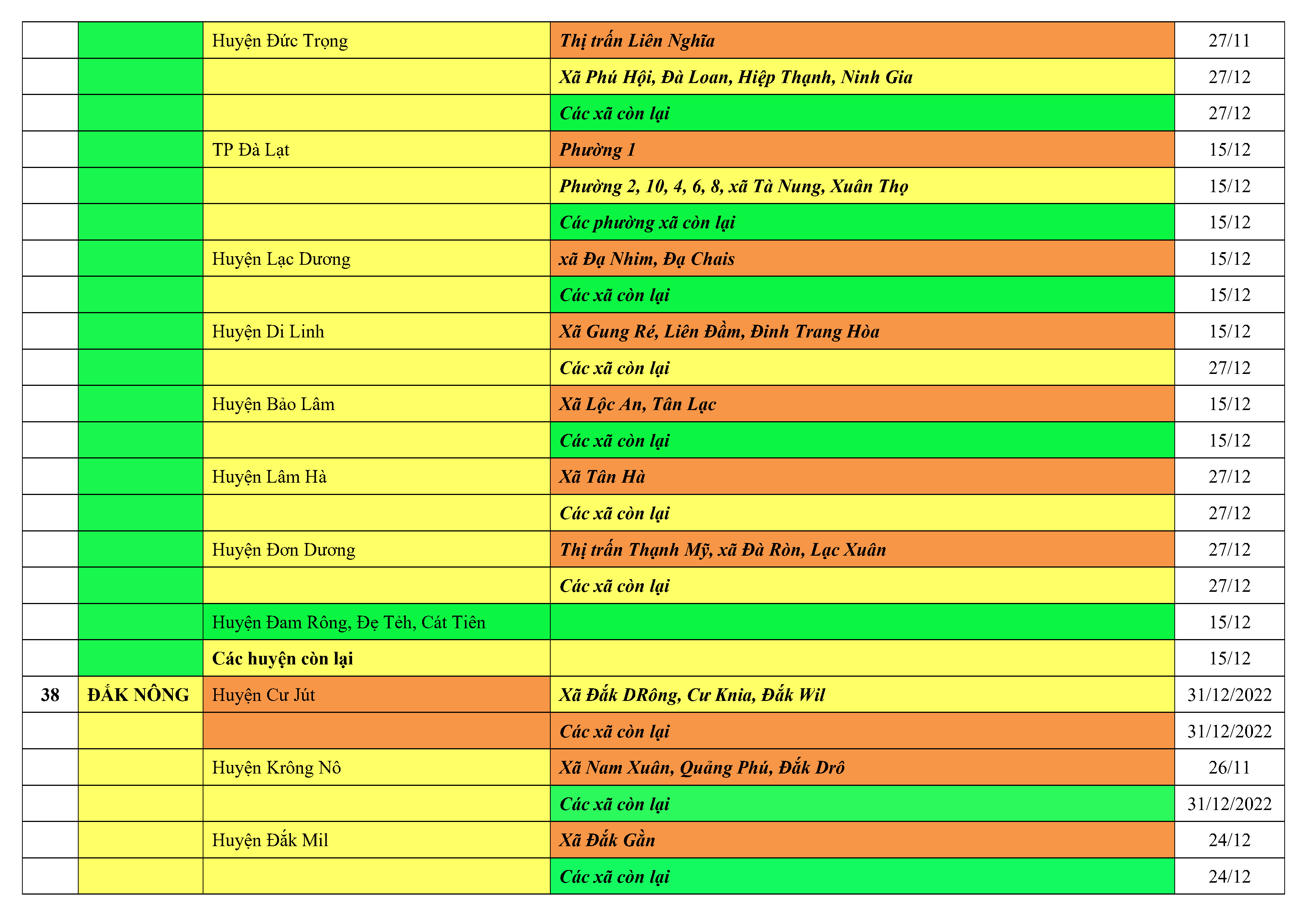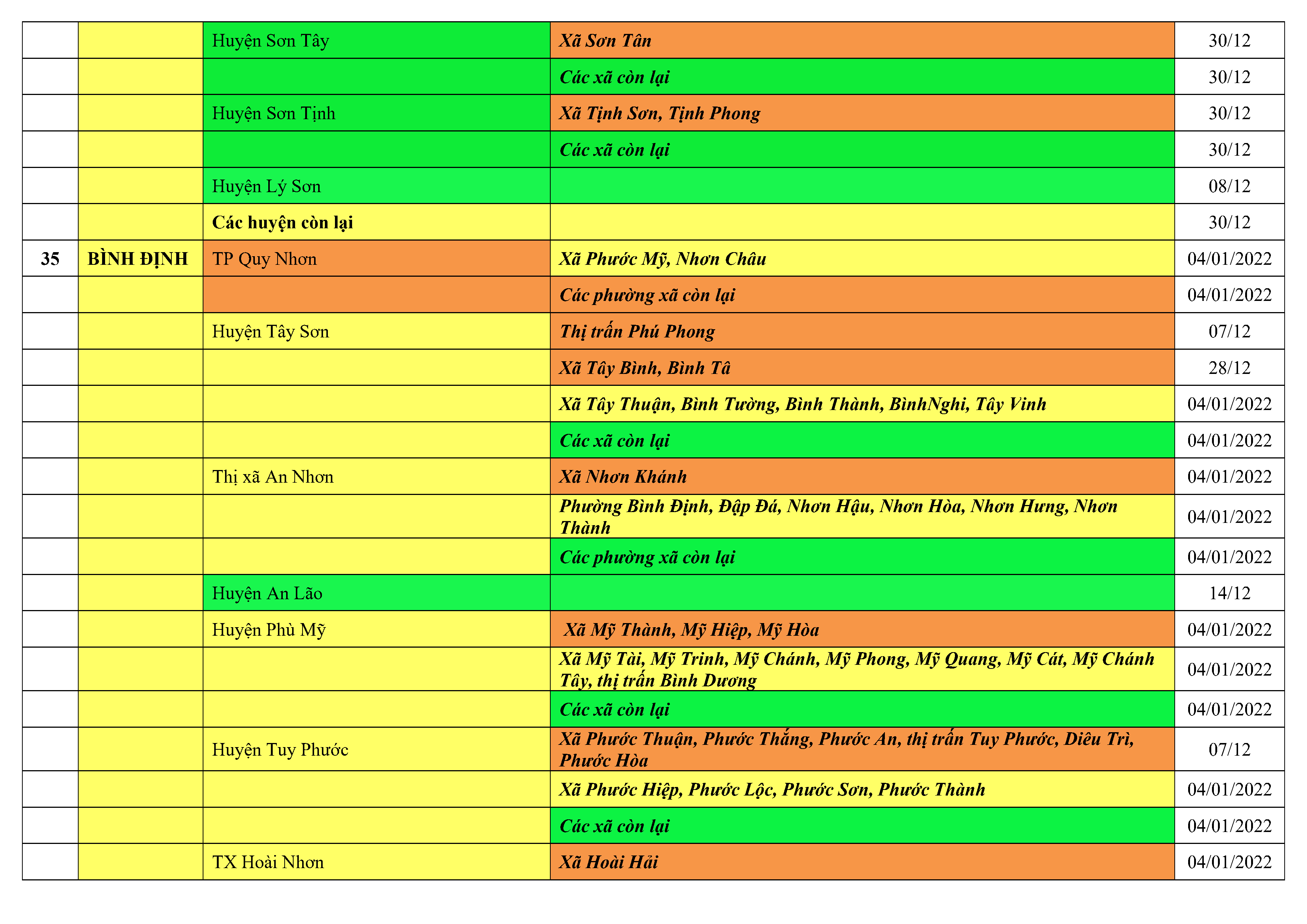 Áp dụng biện pháp tương ứng màu sắc ô cột theo thôn xóm; xã phường; quận huyện; tỉnh thành phố.