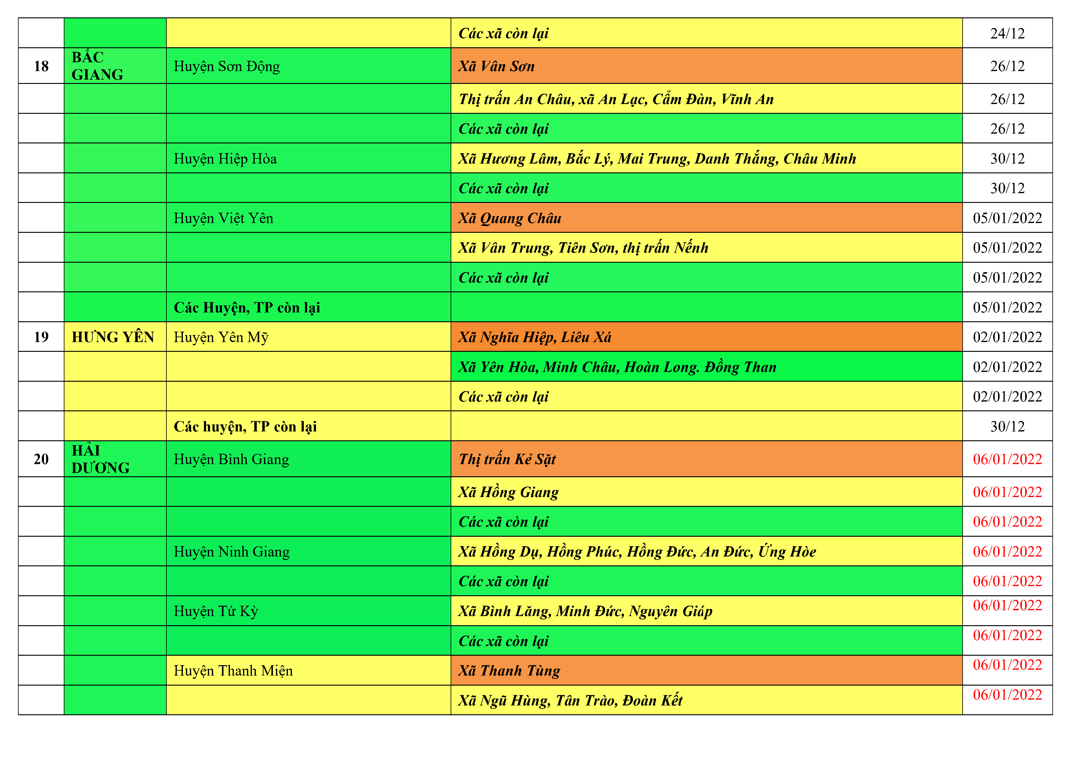2. Đối với công dân từ các địa phương về Hải Phòng, áp dụng theo bảng hướng dẫn dưới đây:
