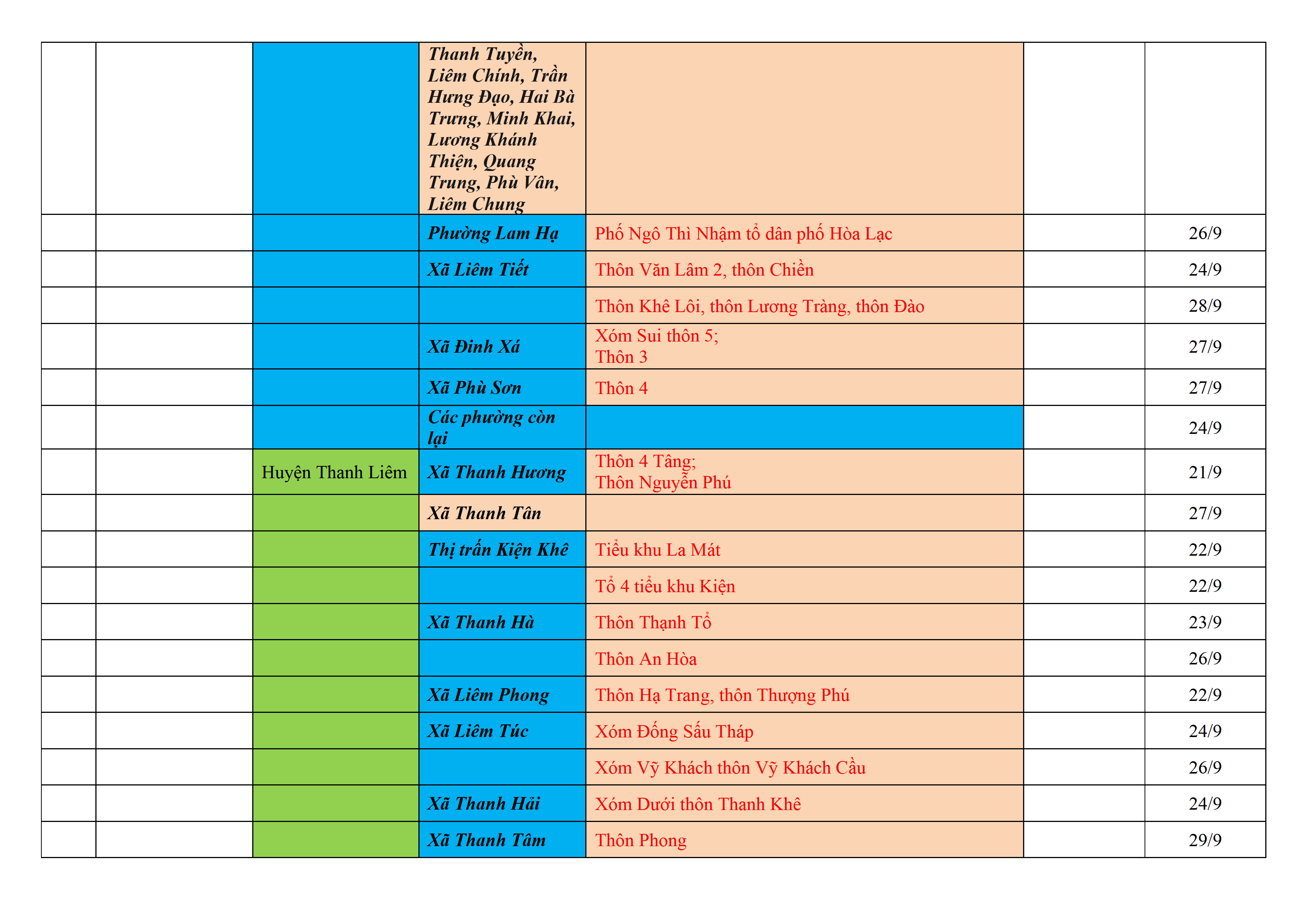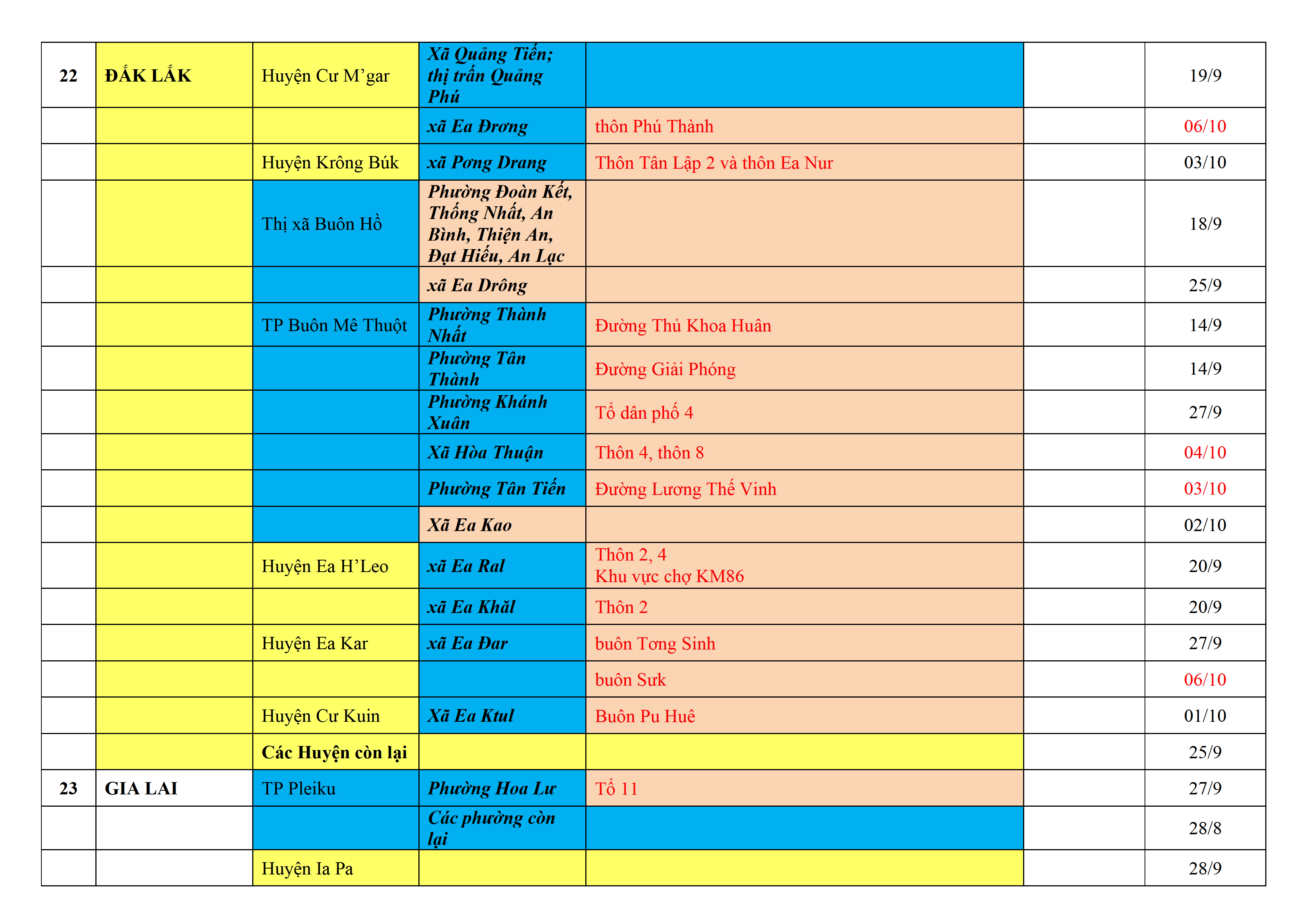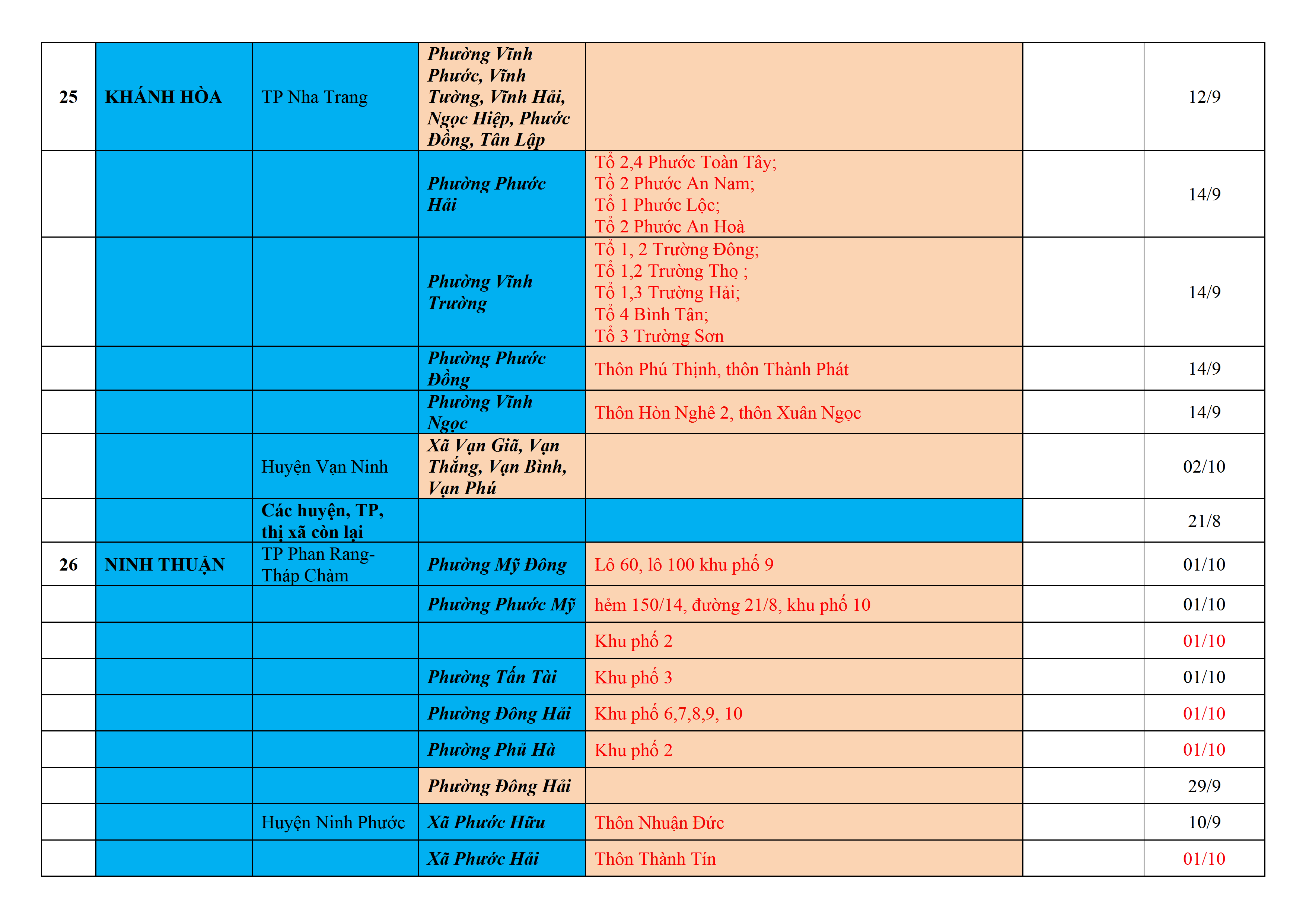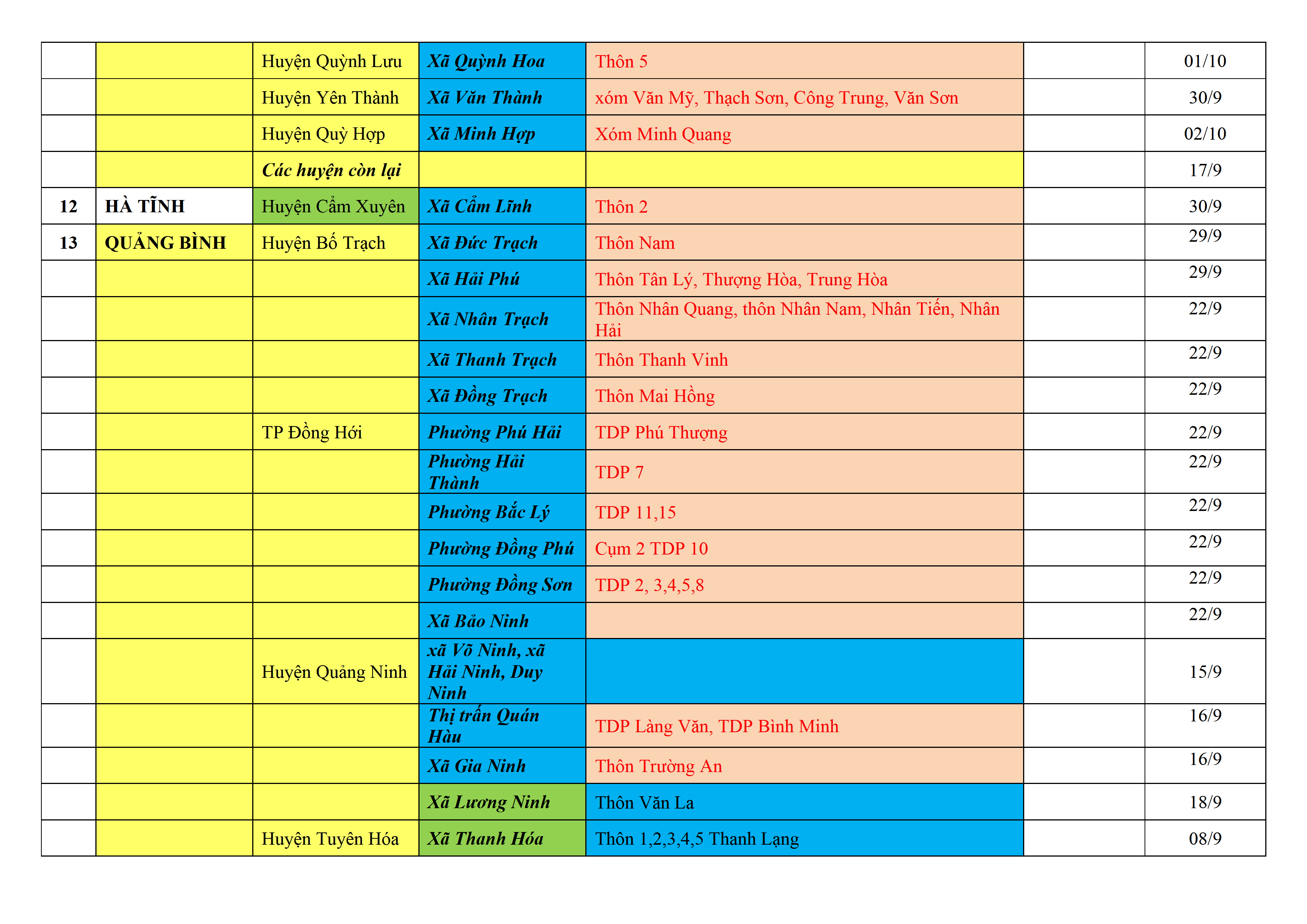 Biện pháp phòng, chống dịch COVID-19: Áp dụng biện pháp tương ứng màu sắc ô cột theo thôn xóm; xã phường; quận huyện; tỉnh thành phố. Cách ly y tế dựa vào việc tiếp xúc, đi đến địa điểm và nơi cư trú có ca bệnh, theo Thông báo của Bộ Y tế, các tỉnh thành phố.