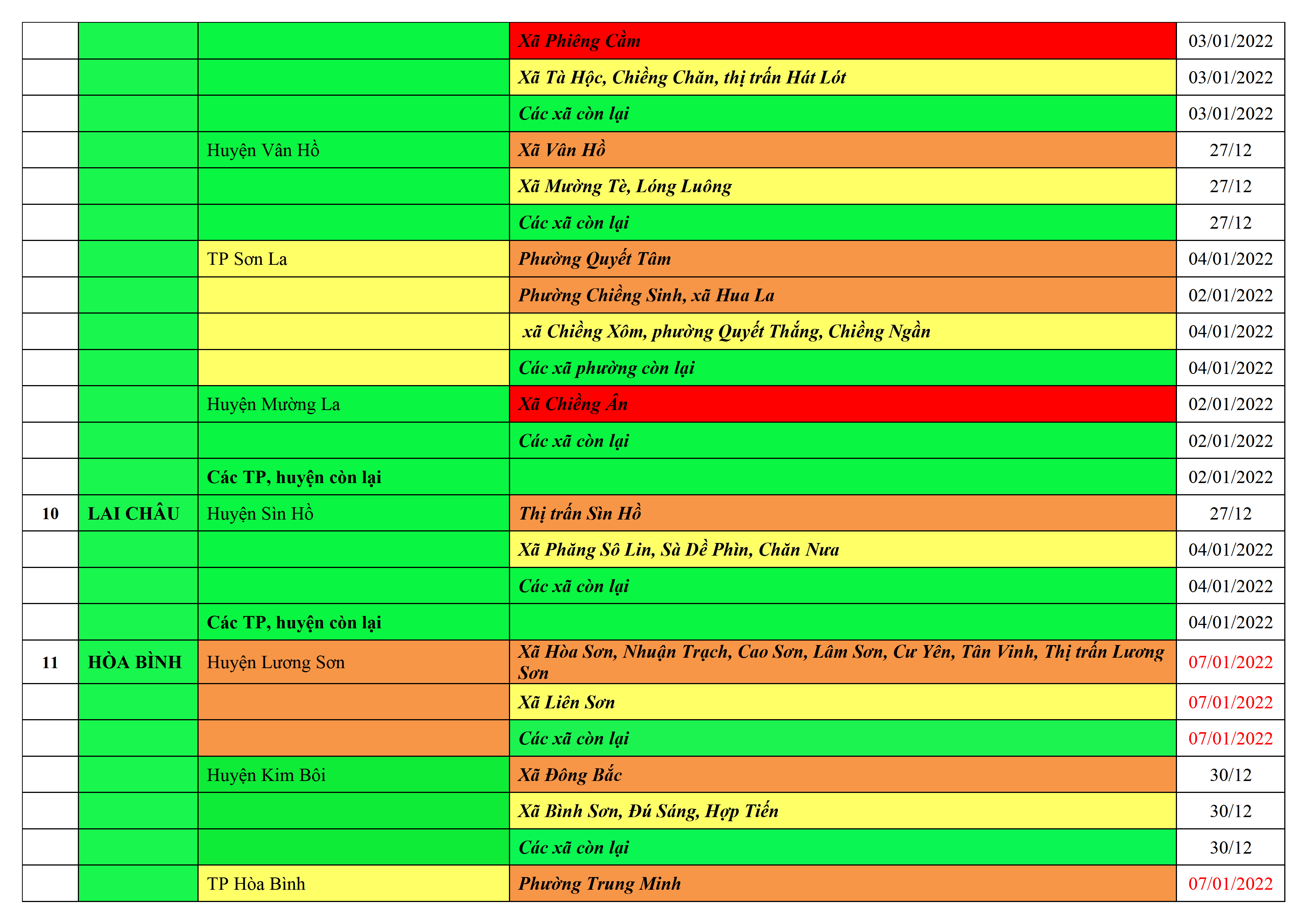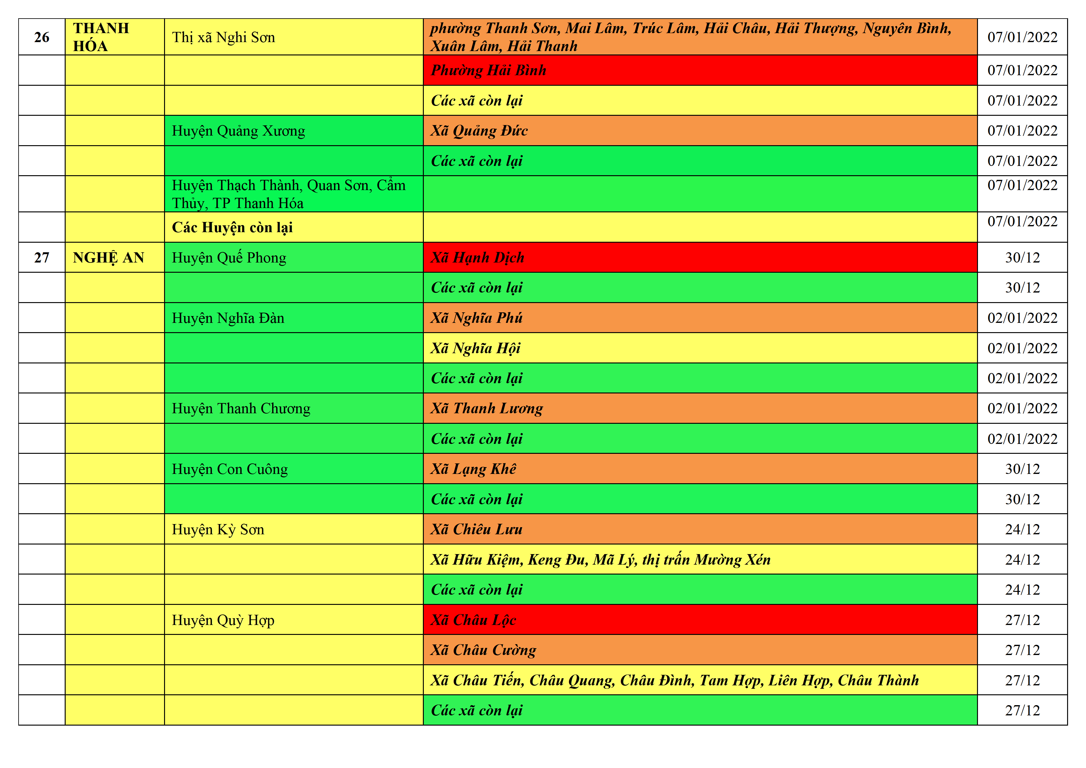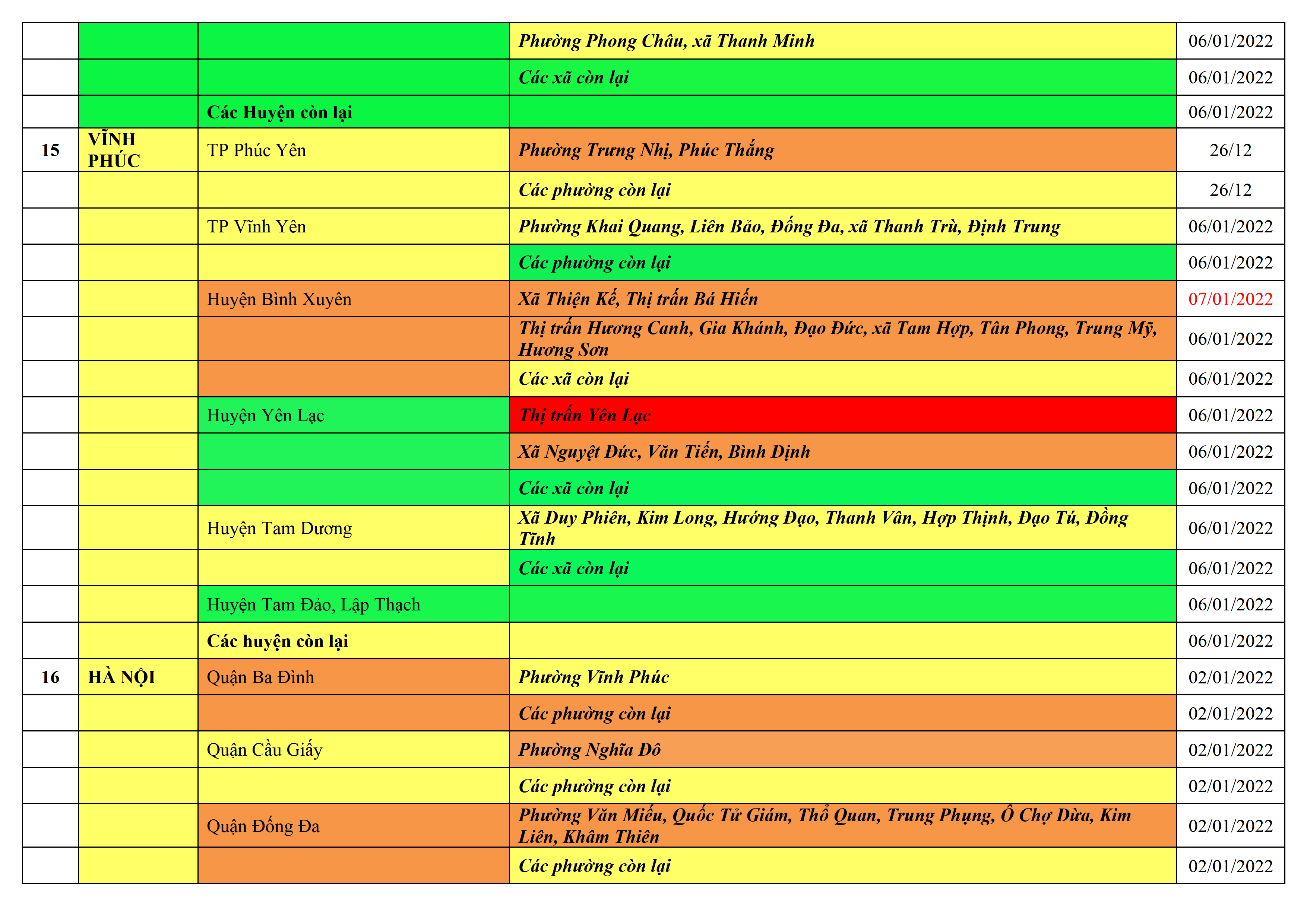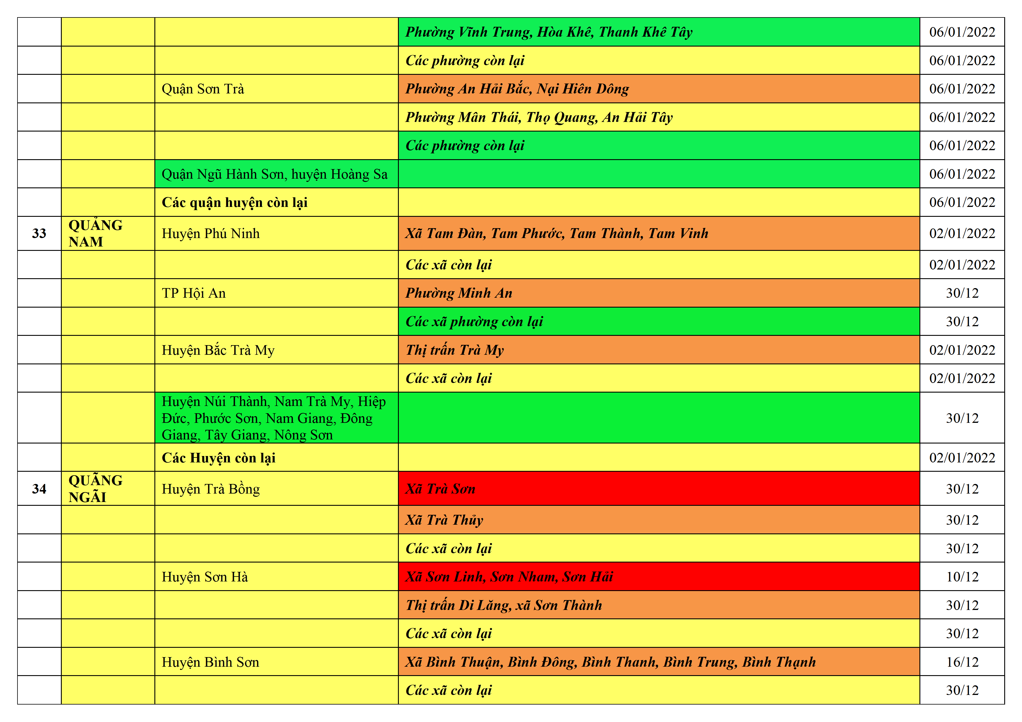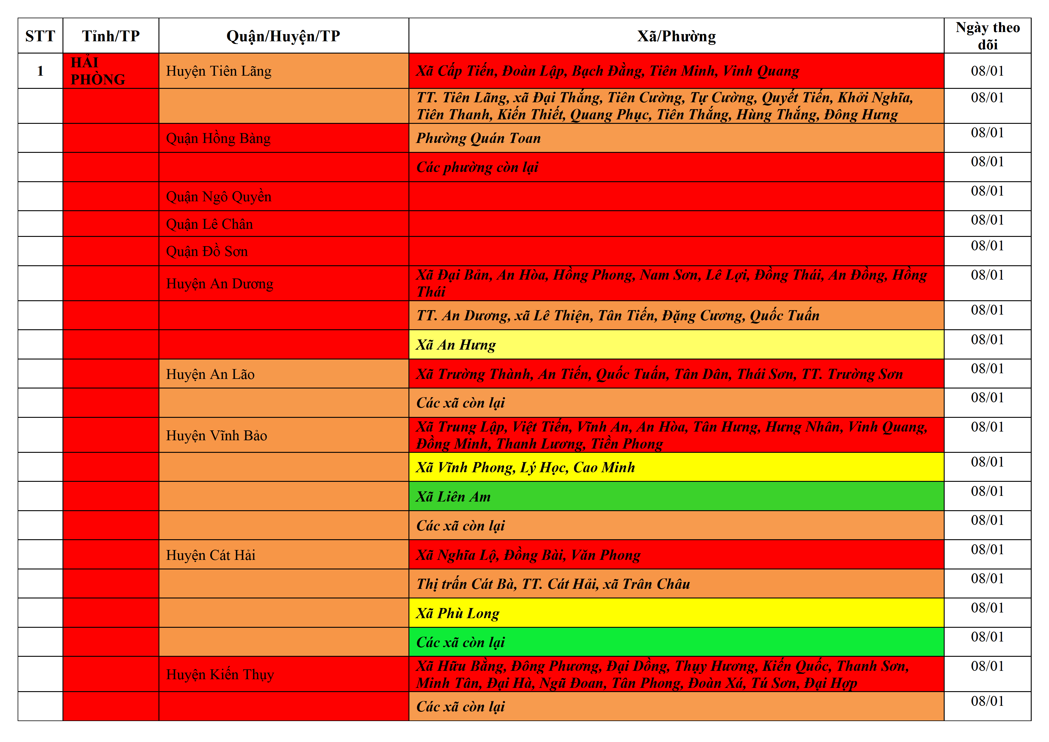 Áp dụng biện pháp tương ứng màu sắc ô cột theo thôn xóm; xã phường; quận huyện; tỉnh thành phố. Cách ly y tế dựa vào việc tiếp xúc, đi đến địa điểm và nơi cư trú có ca bệnh, theo Thông báo của Bộ Y tế, các tỉnh thành phố.