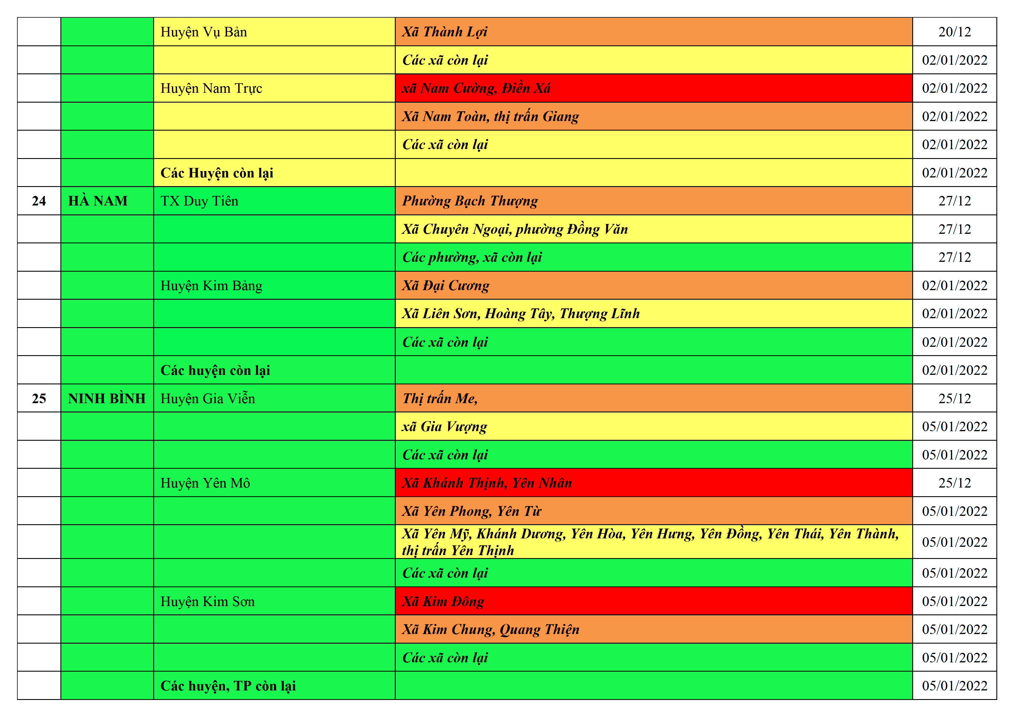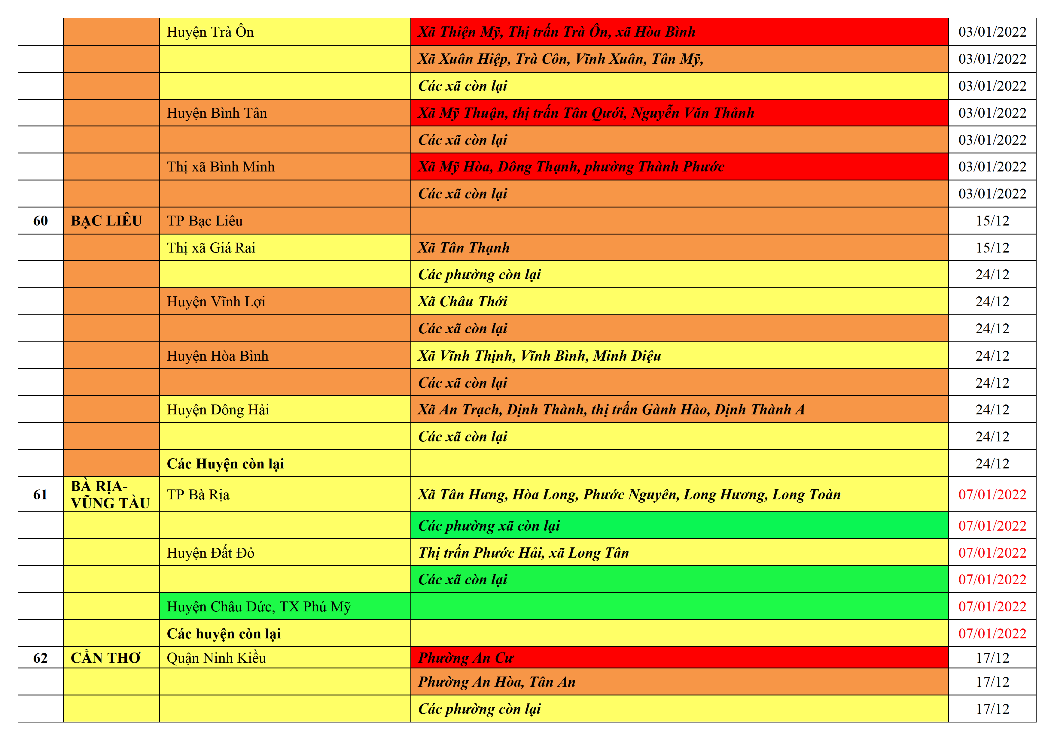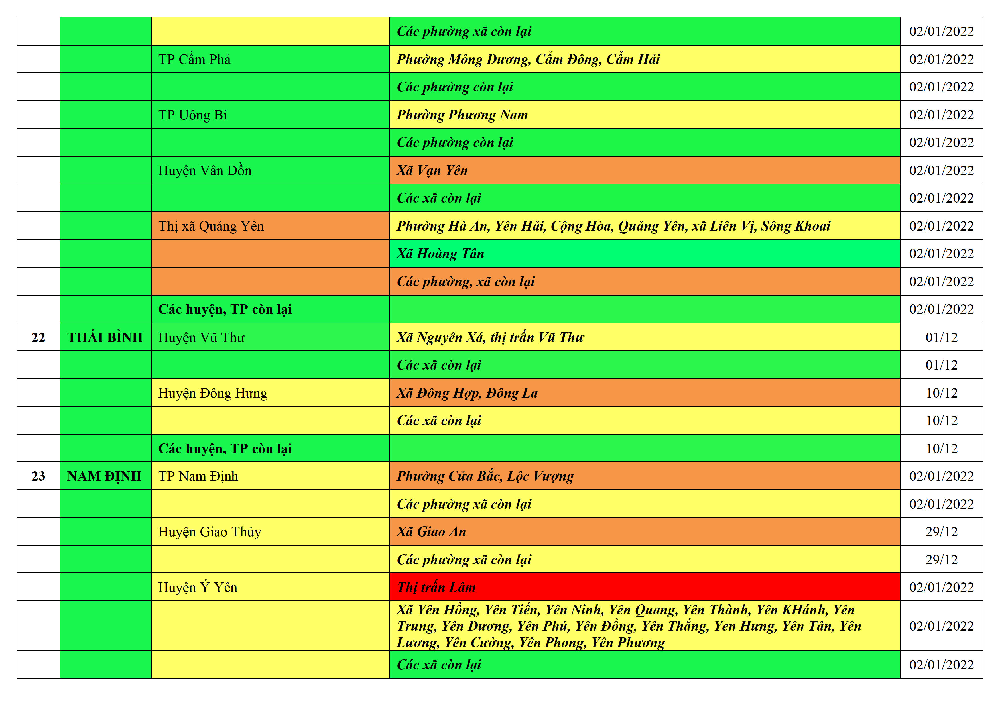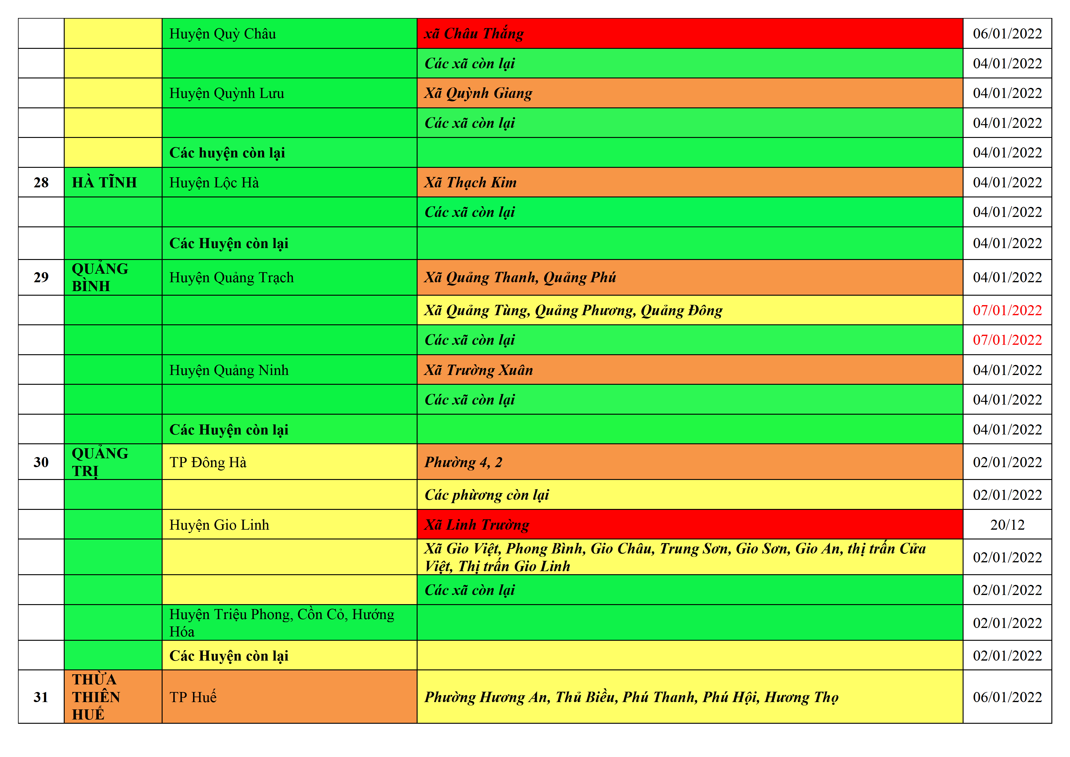 Áp dụng biện pháp tương ứng màu sắc ô cột theo thôn xóm; xã phường; quận huyện; tỉnh thành phố. Cách ly y tế dựa vào việc tiếp xúc, đi đến địa điểm và nơi cư trú có ca bệnh, theo Thông báo của Bộ Y tế, các tỉnh thành phố.