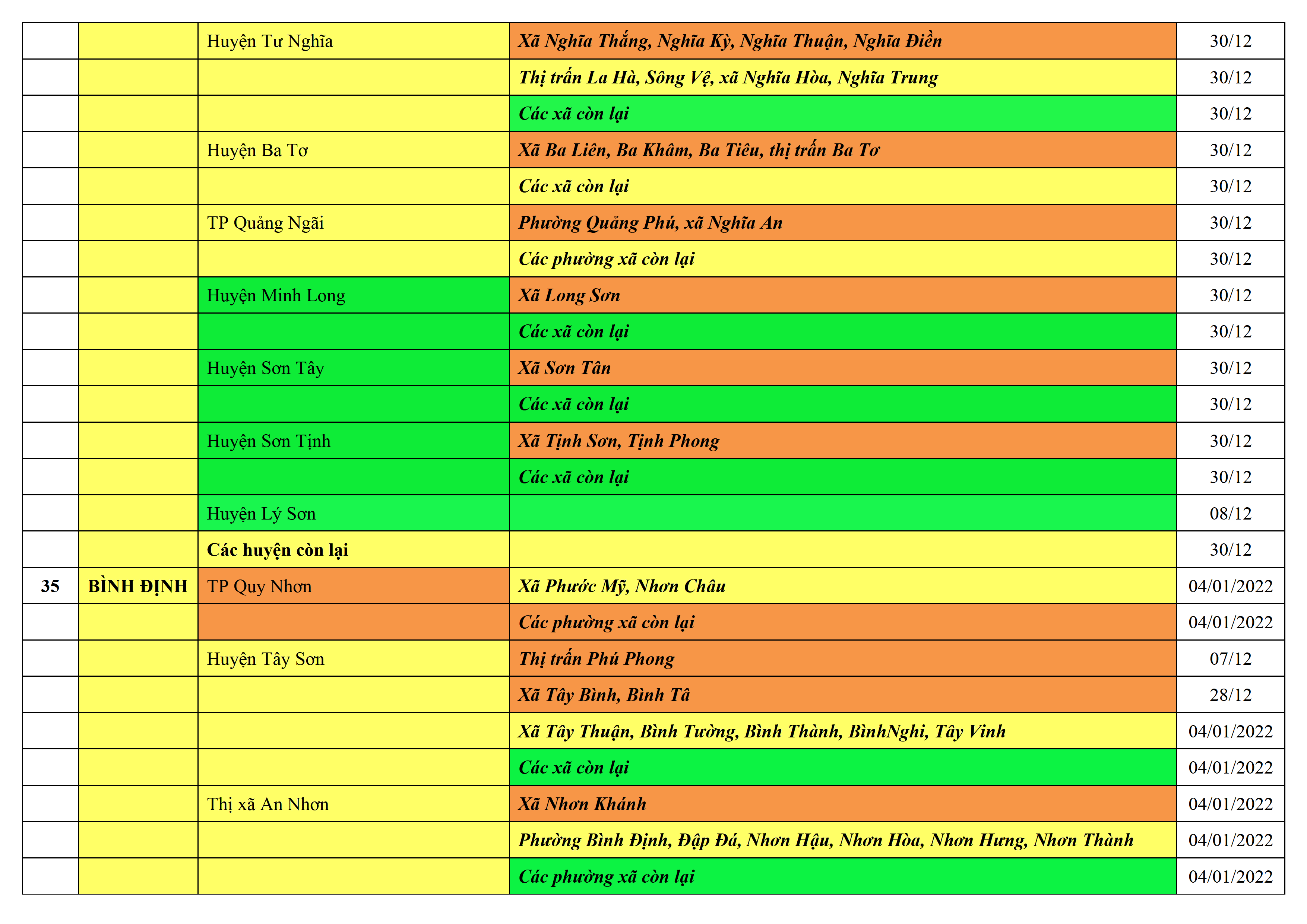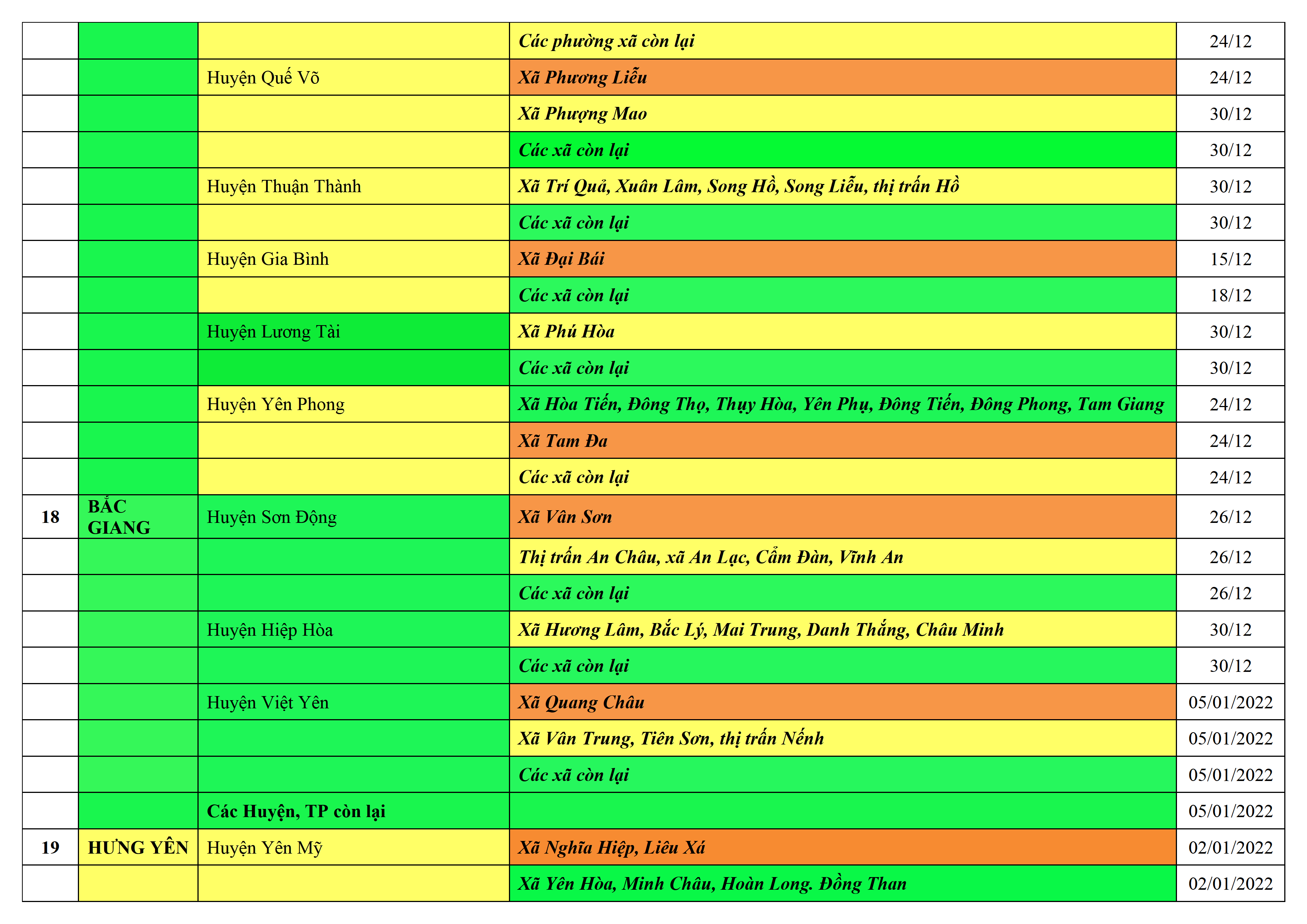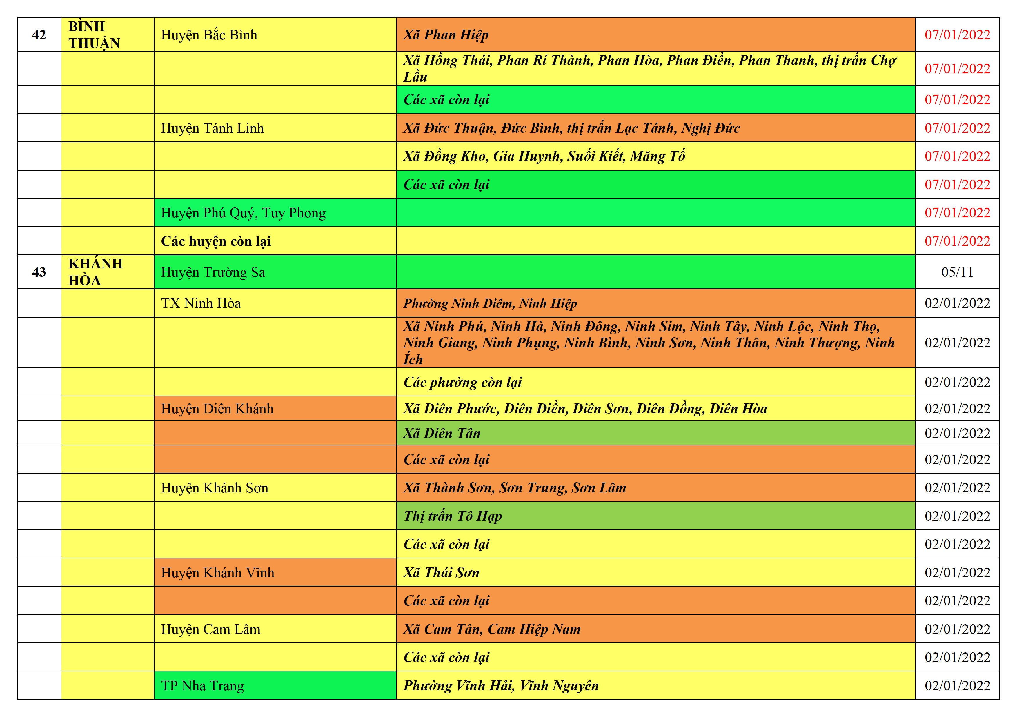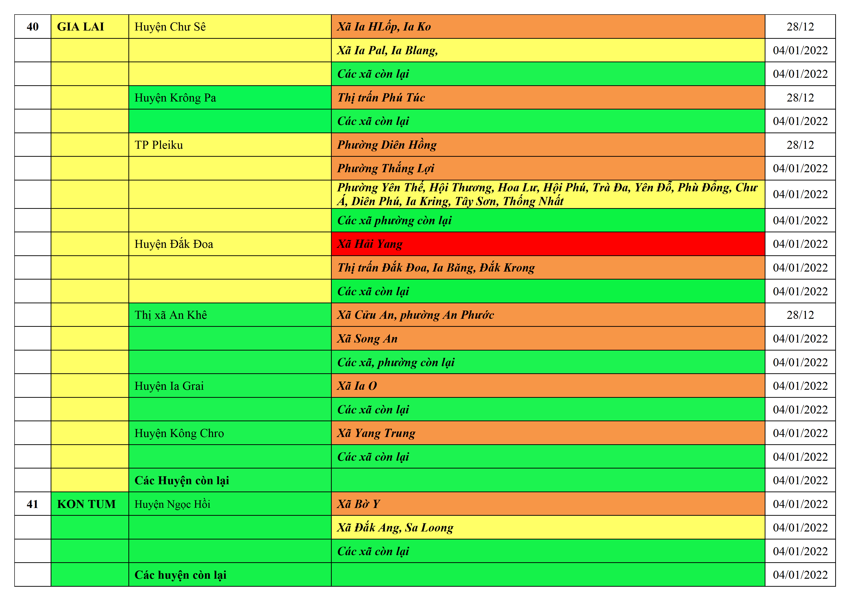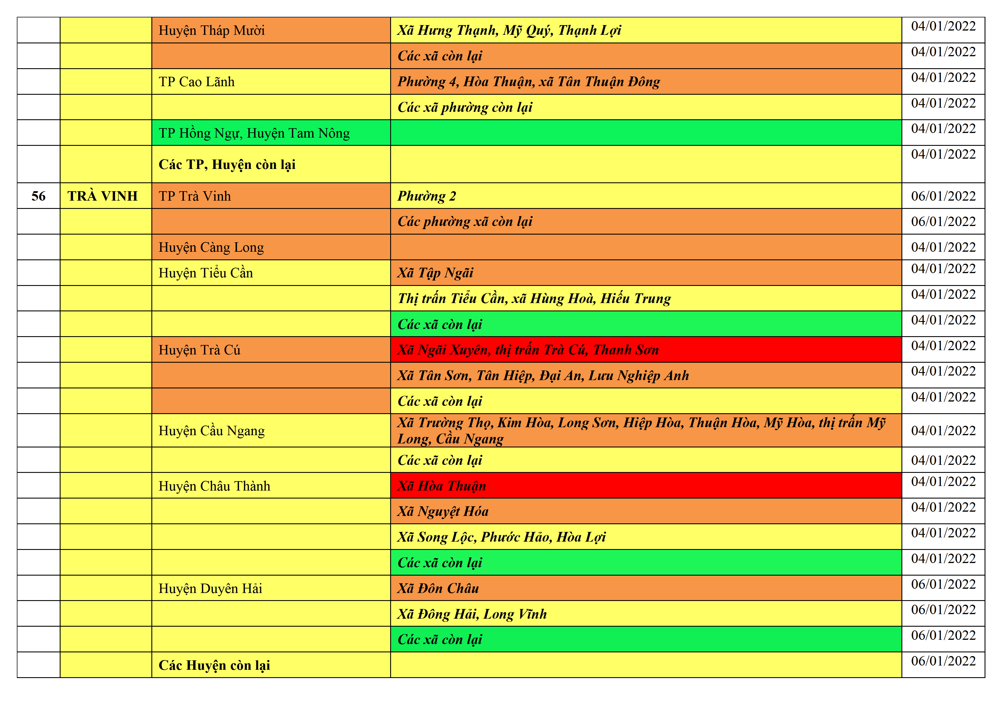 Áp dụng biện pháp tương ứng màu sắc ô cột theo thôn xóm; xã phường; quận huyện; tỉnh thành phố. Cách ly y tế dựa vào việc tiếp xúc, đi đến địa điểm và nơi cư trú có ca bệnh, theo Thông báo của Bộ Y tế, các tỉnh thành phố.