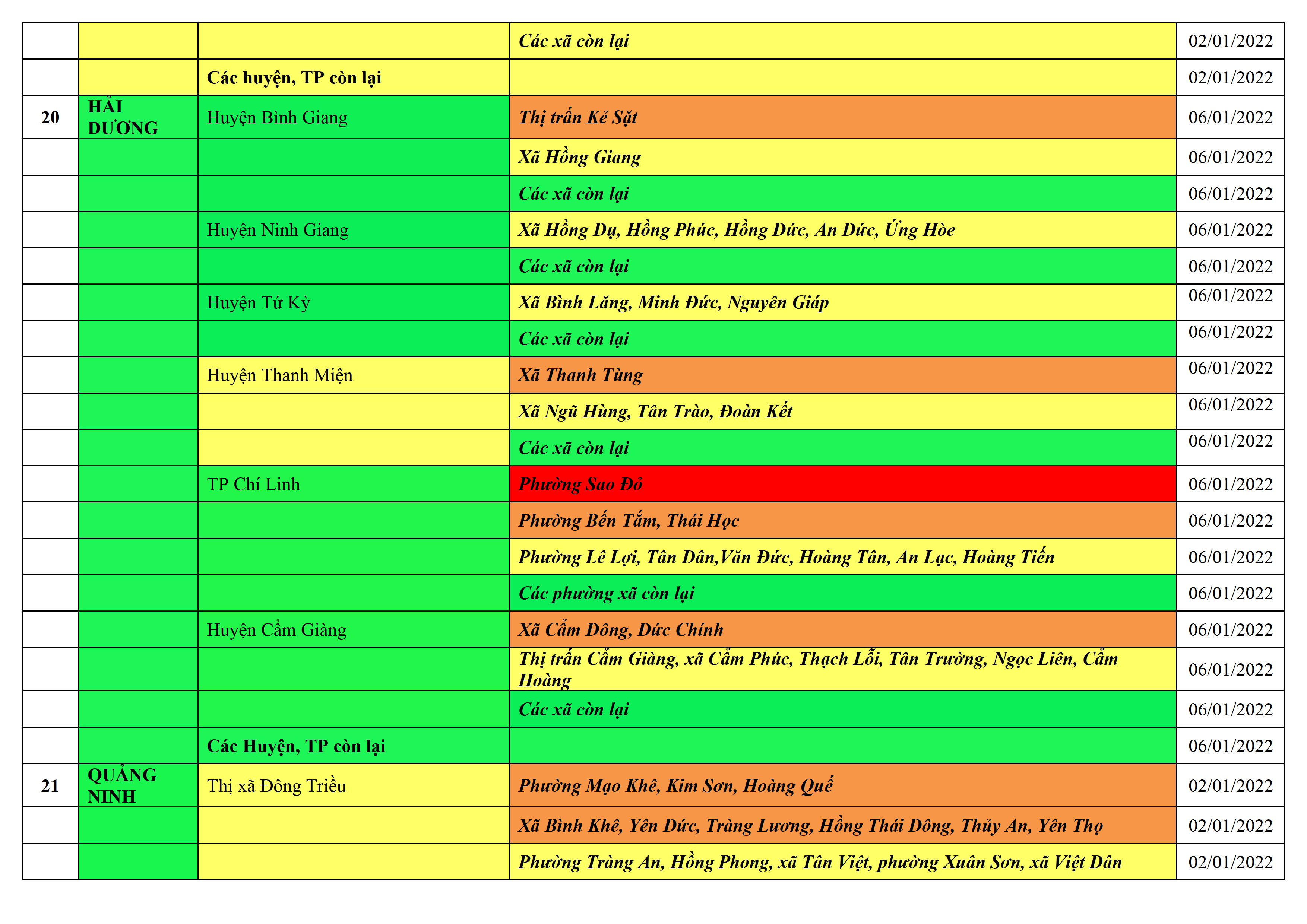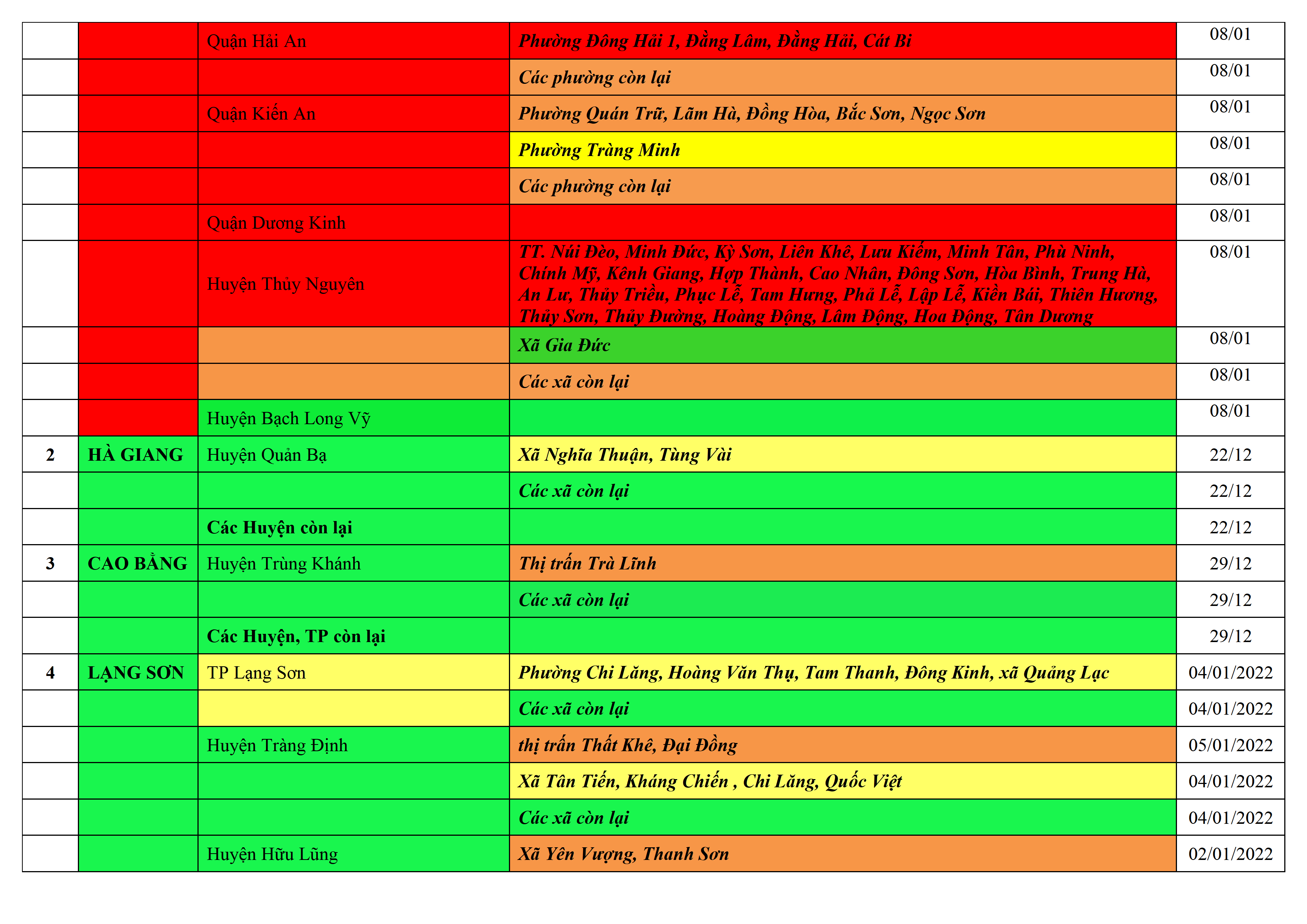 2. Đối với công dân từ các địa phương về Hải Phòng, áp dụng theo bảng hướng dẫn dưới đây: