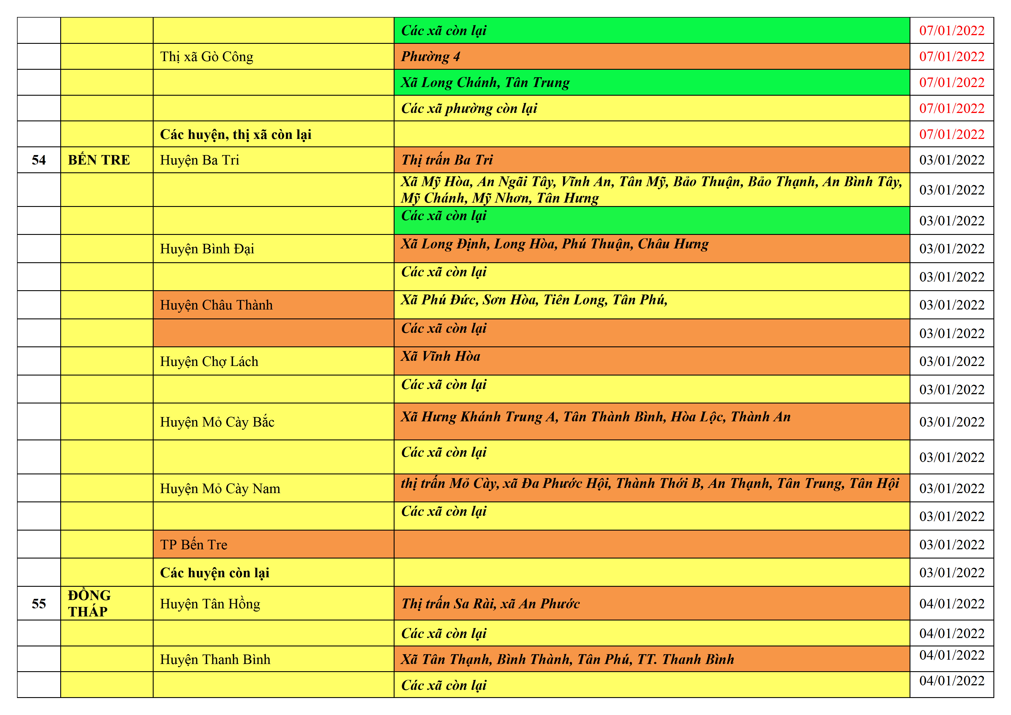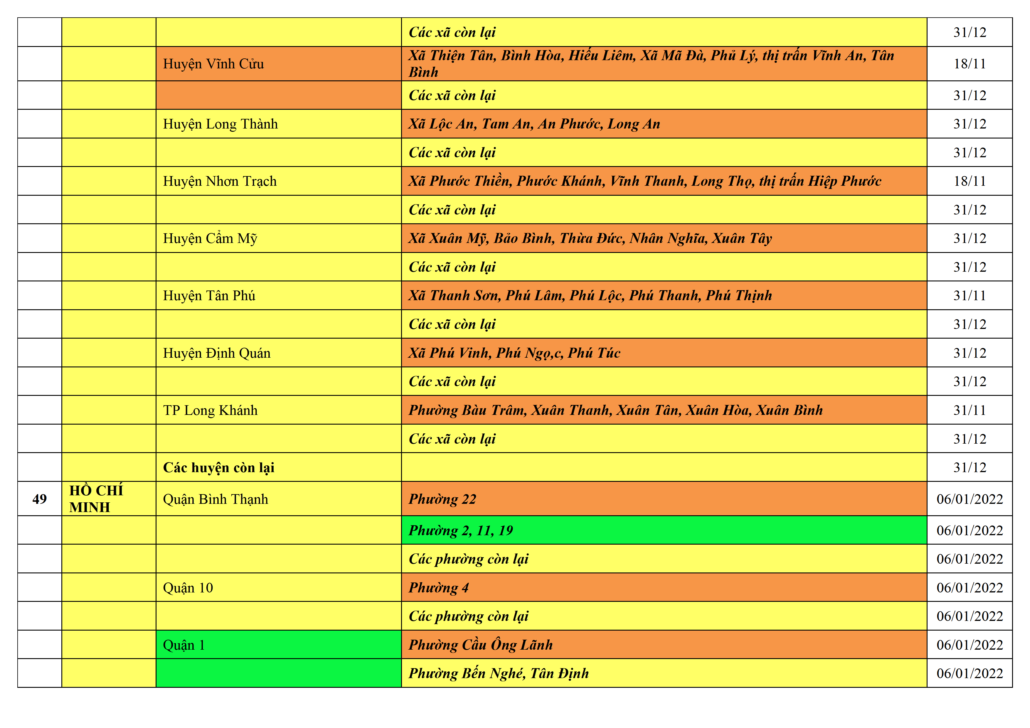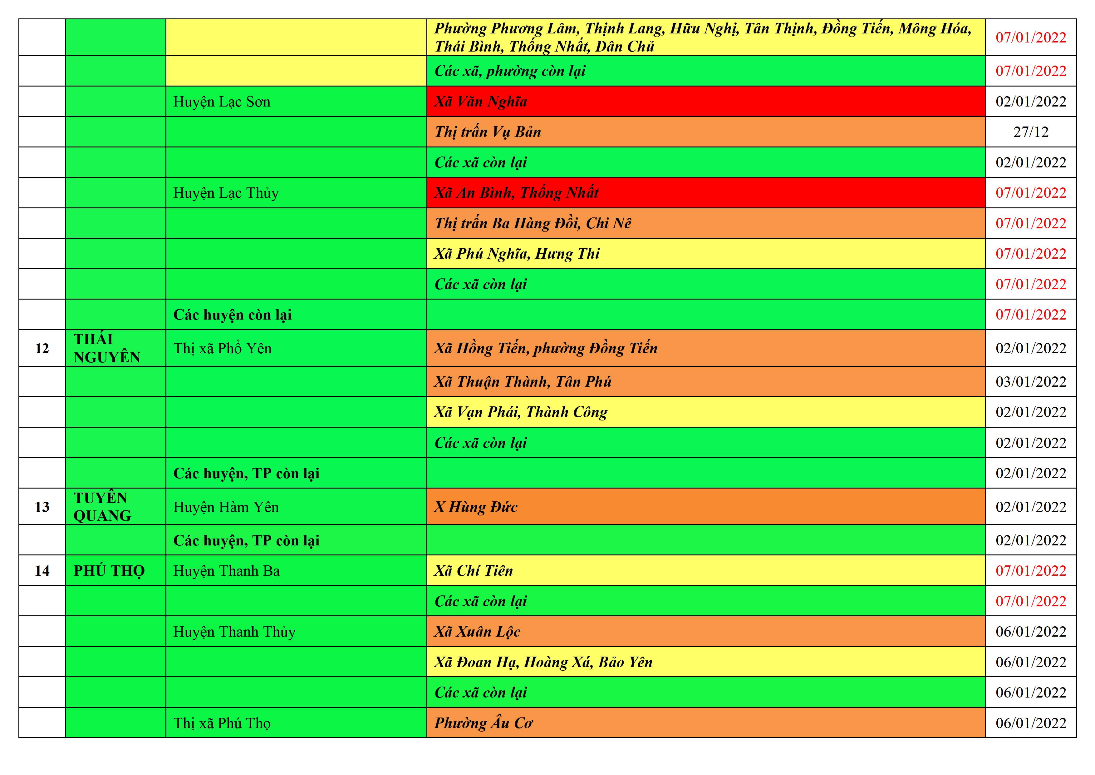 Áp dụng biện pháp tương ứng màu sắc ô cột theo thôn xóm; xã phường; quận huyện; tỉnh thành phố.