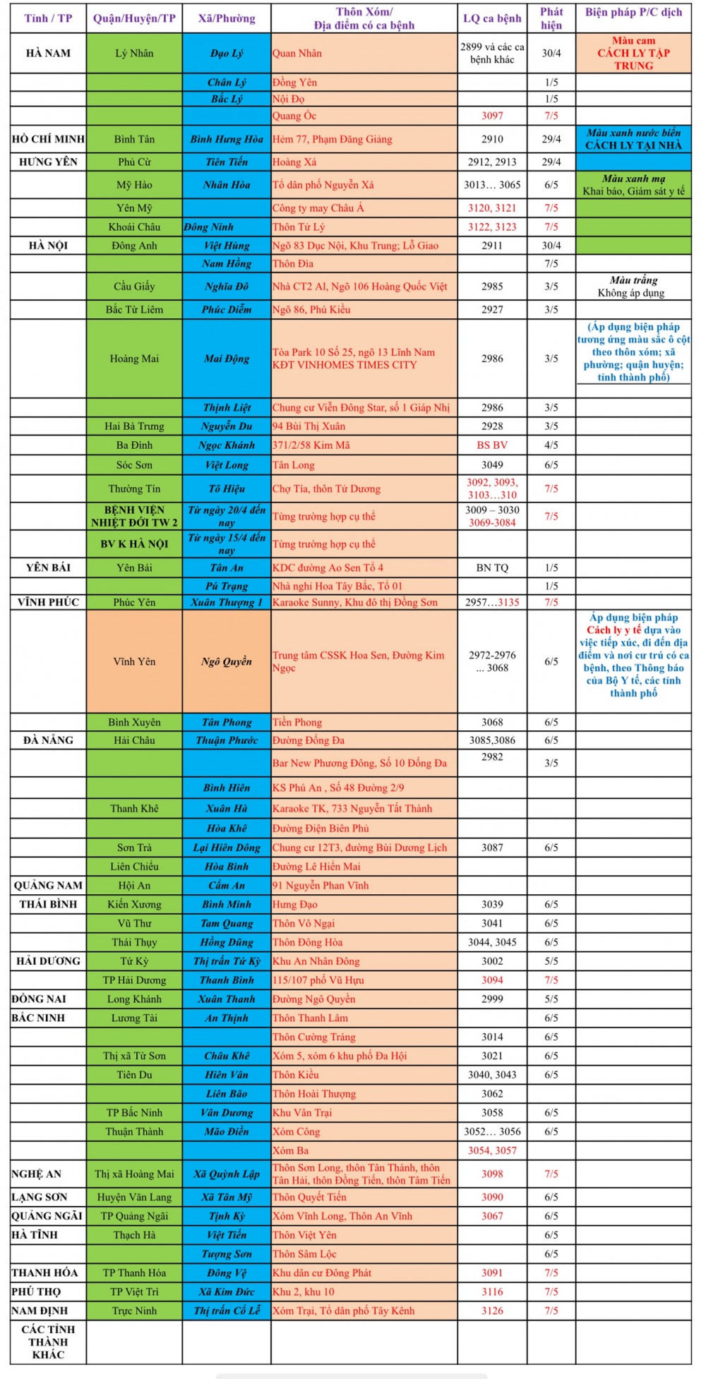 Cách ly tập trung theo MÀU CAM, Cách ly tại nhà theo MÀU XANH NƯỚC BIỂN, Khai báo, giám sát y tế theo MÀU XANH MẠ,
