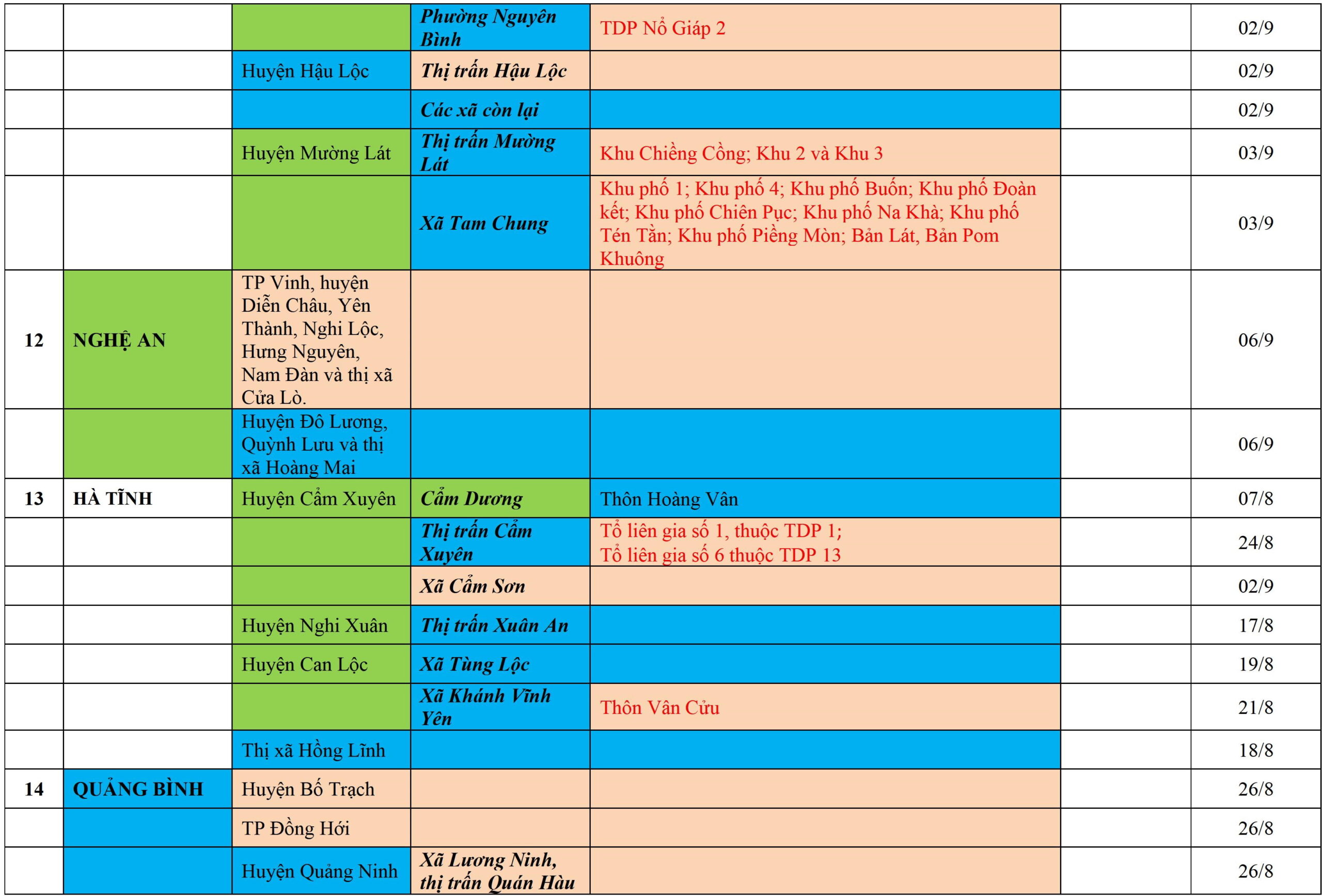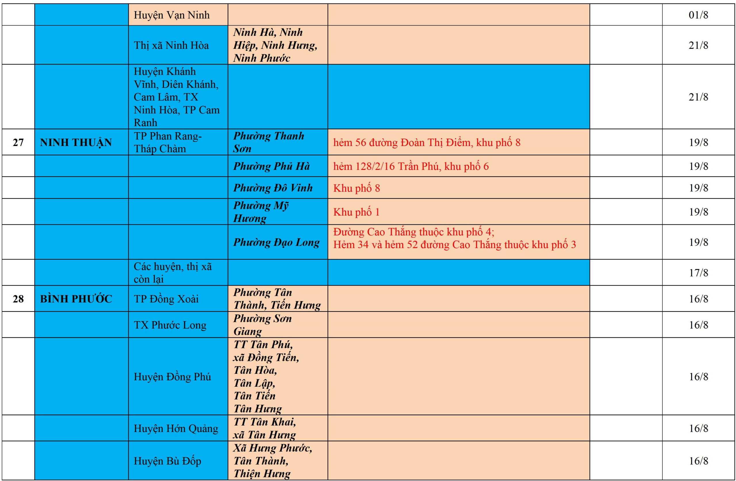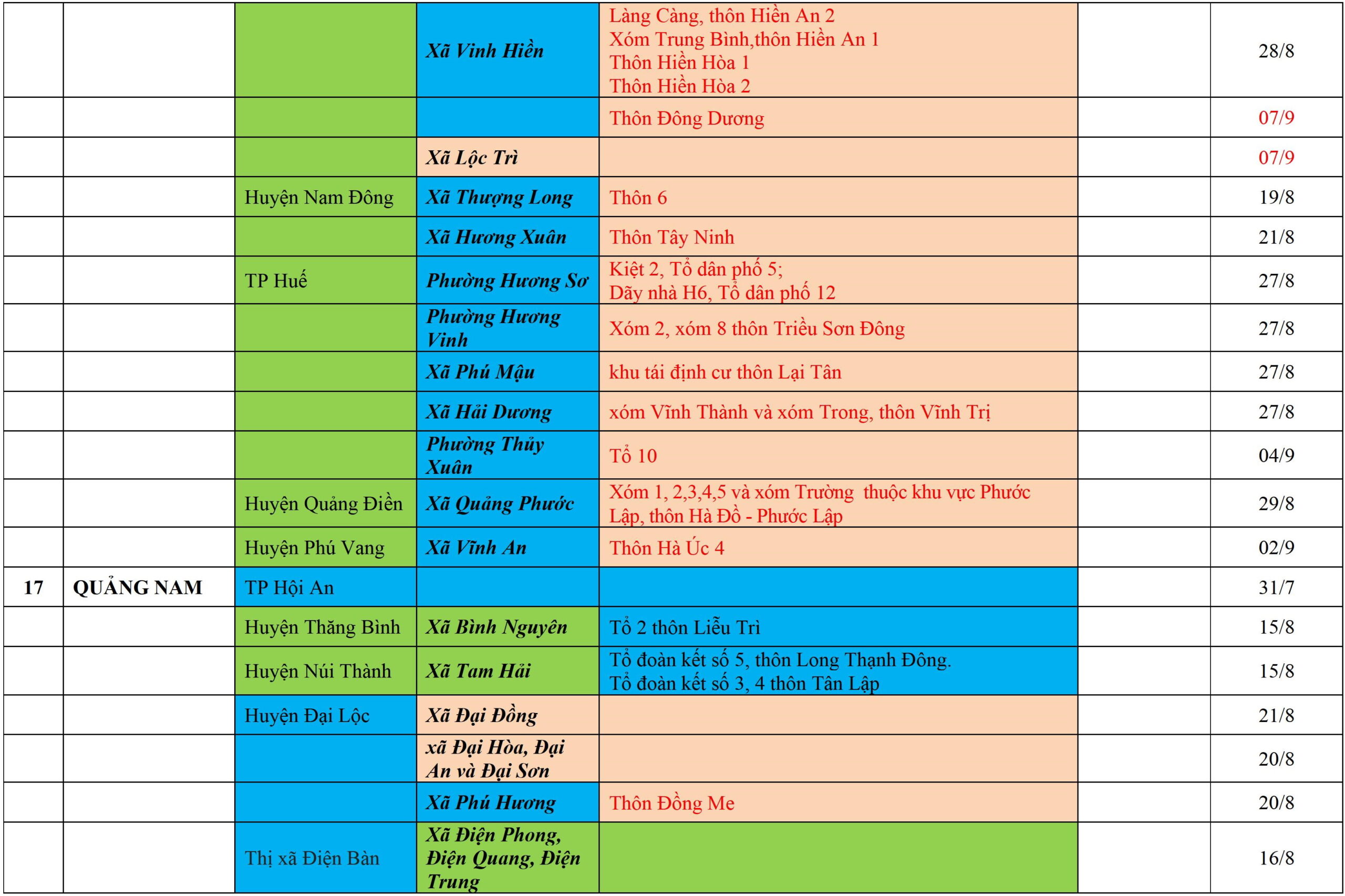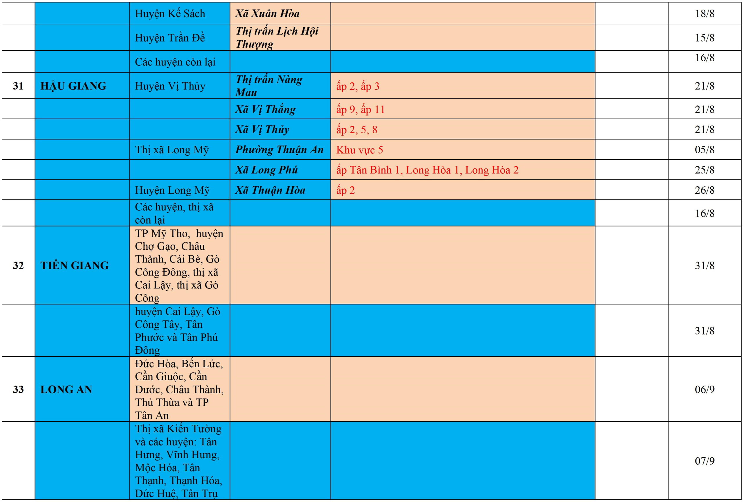 Màu nâu: TẠM DỪNG TIẾP NHẬN; Màu cam: CÁCH LY TẬP TRUNG 14 NGÀY; Màu xanh nước biển: CÁCH LY TẠI NHÀ 14 NGÀY; Màu xanh mạ: KHAI BÁO, GIÁM SÁT Y TẾ; Màu trắng: KHAI BÁO Y TẾ VÀ THỰC HIỆN 5K.
