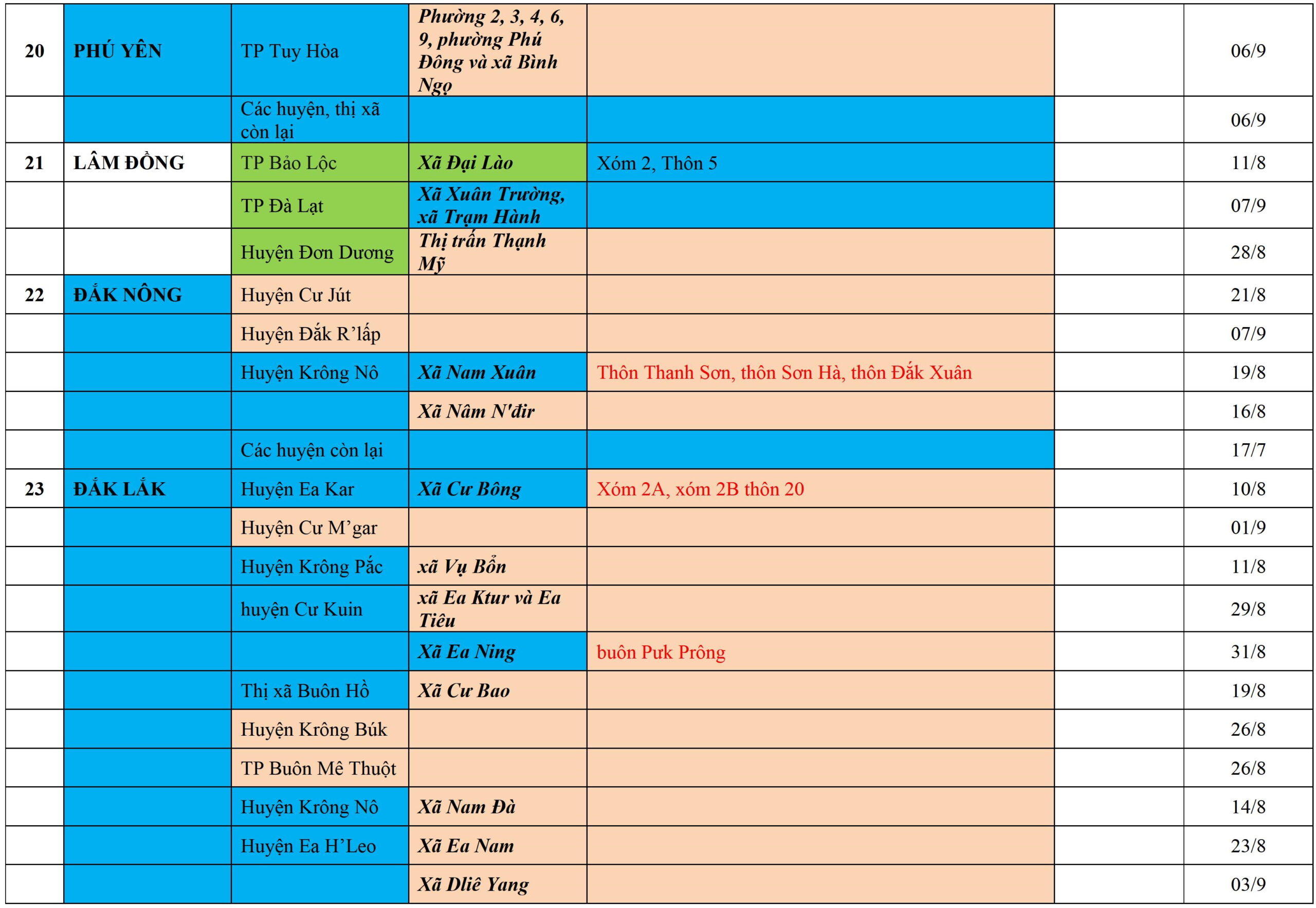 Biện pháp phòng chống dịch: Áp dụng biện pháp tương ứng màu sắc ô cột theo thôn xóm; xã phường; quận huyện; tỉnh thành phố. Cách ly y tế dựa vào việc tiếp xúc, đi đến địa điểm và nơi cư trú có ca bệnh, theo Thông báo của Bộ Y tế, các tỉnh thành phố.