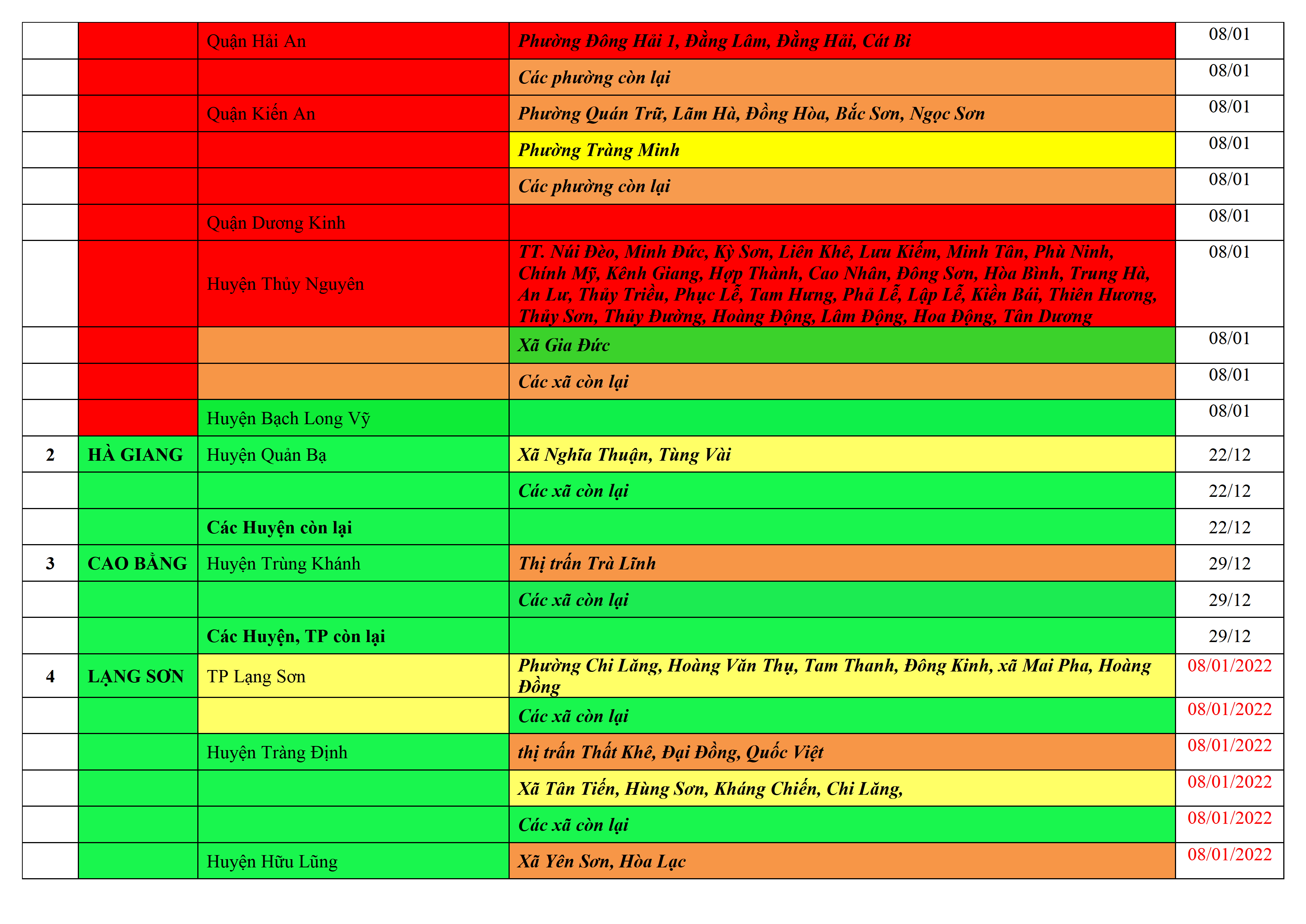 2. Đối với công dân từ các địa phương về Hải Phòng, áp dụng theo bảng hướng dẫn dưới đây: