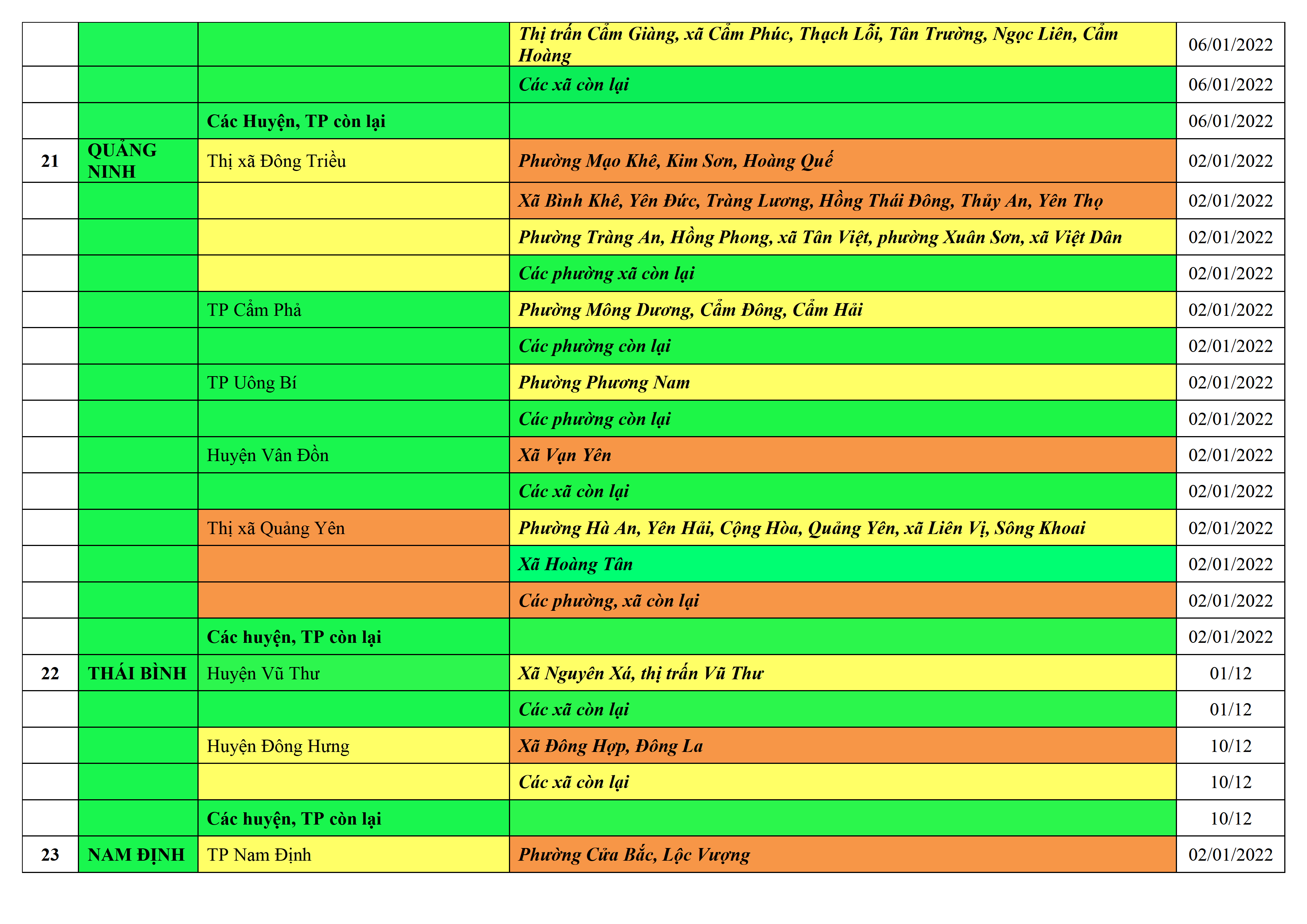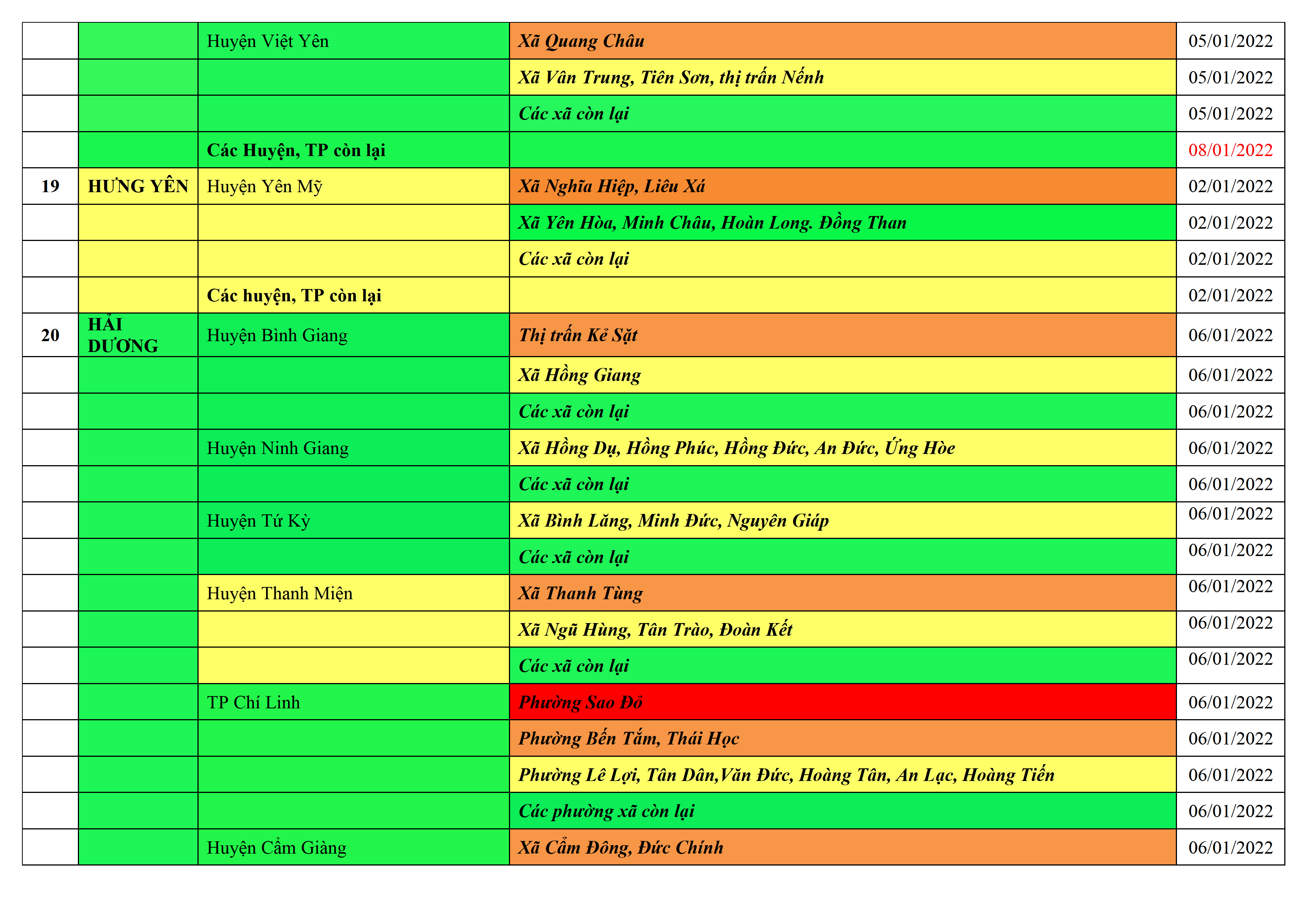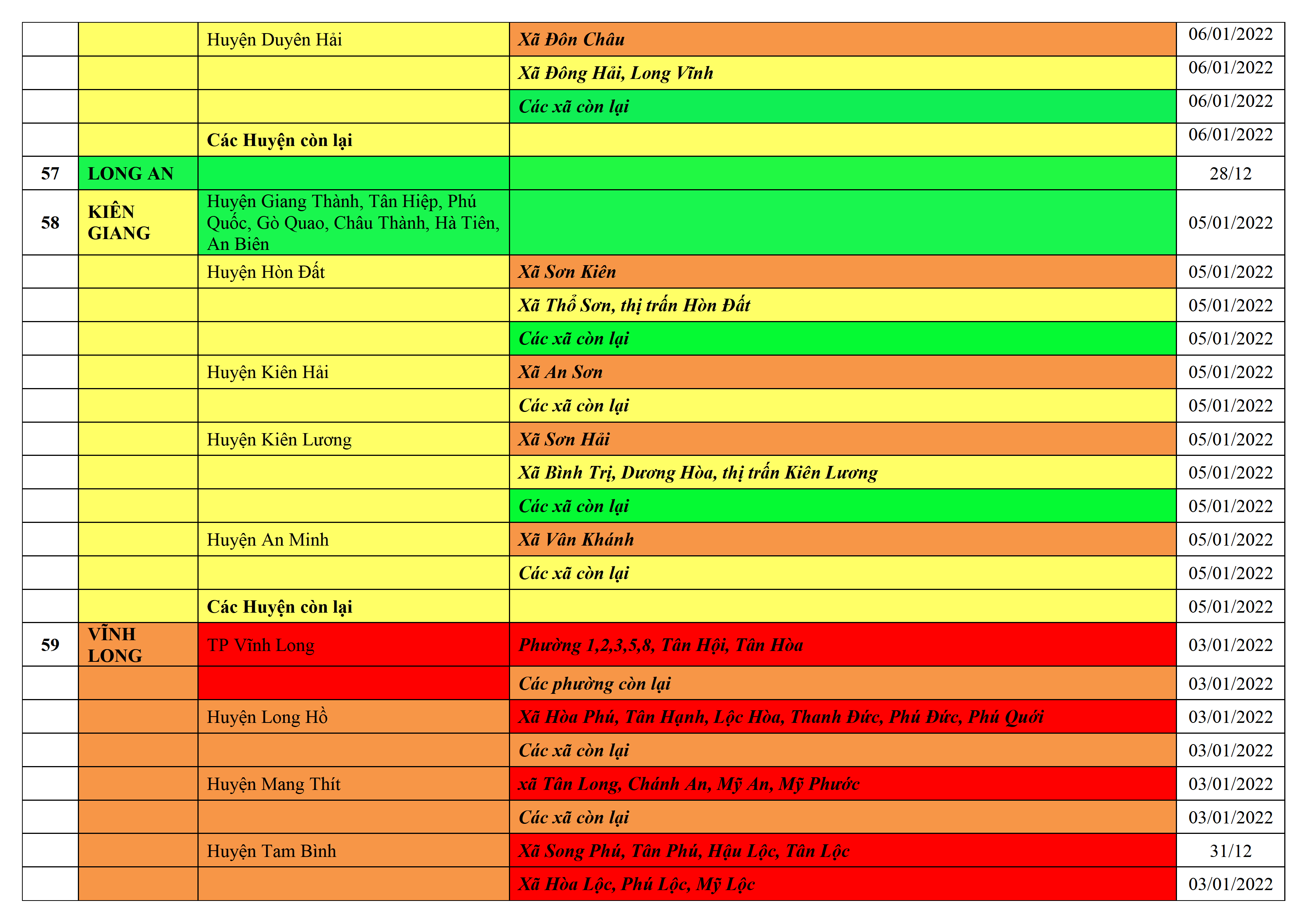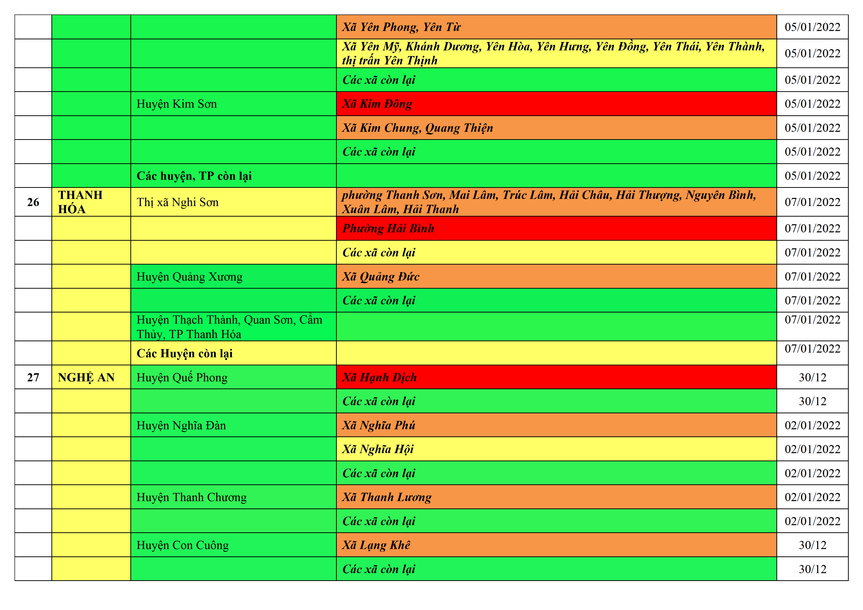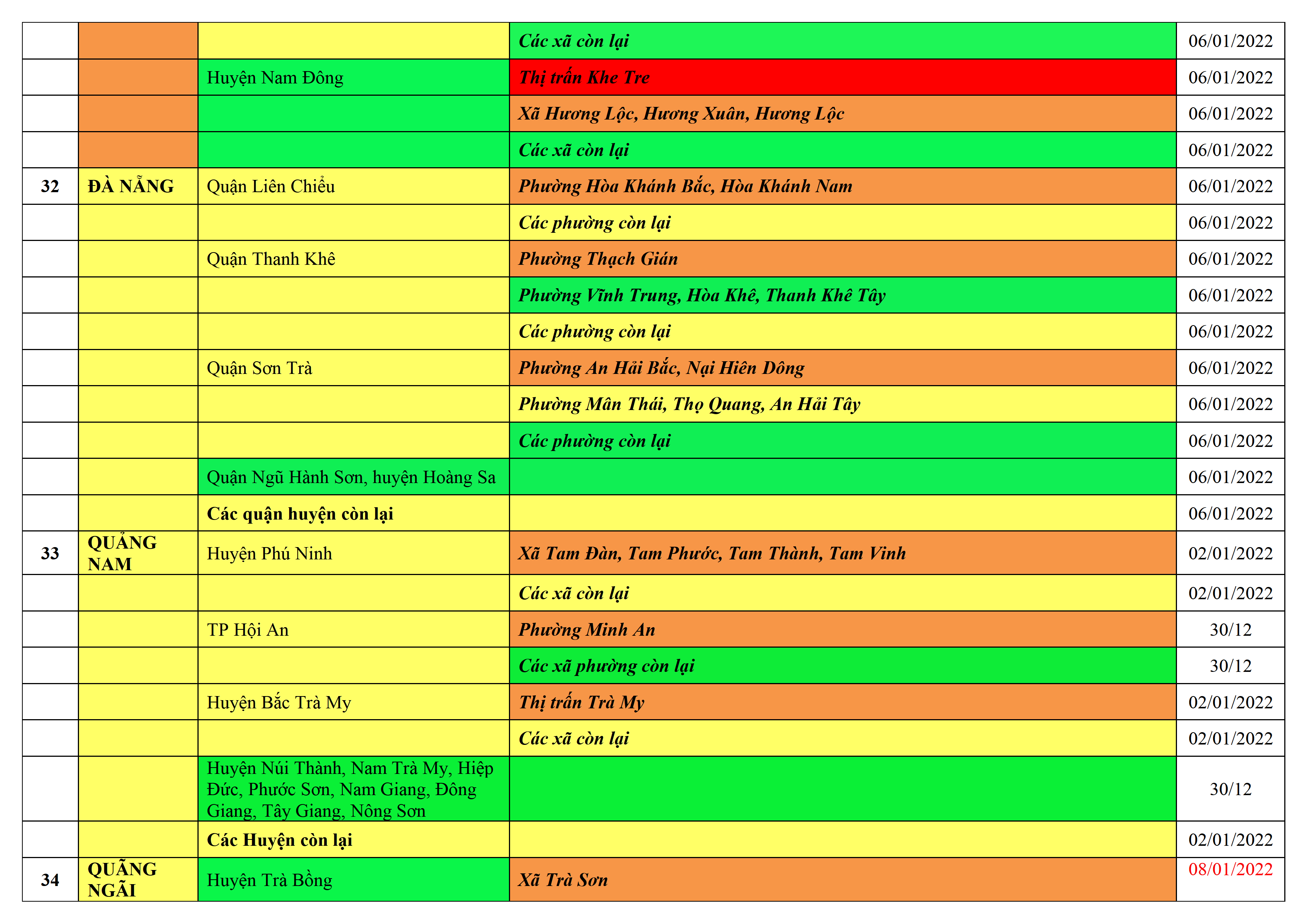 Áp dụng biện pháp tương ứng màu sắc ô cột theo thôn xóm; xã phường; quận huyện; tỉnh thành phố. Cách ly y tế dựa vào việc tiếp xúc, đi đến địa điểm và nơi cư trú có ca bệnh, theo Thông báo của Bộ Y tế, các tỉnh thành phố.