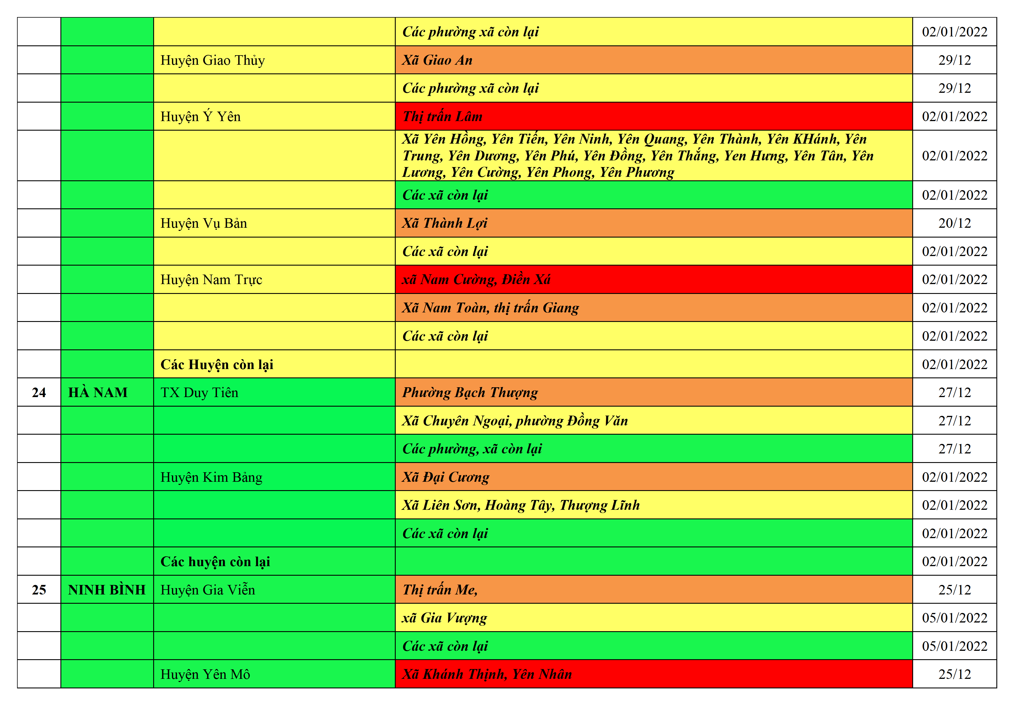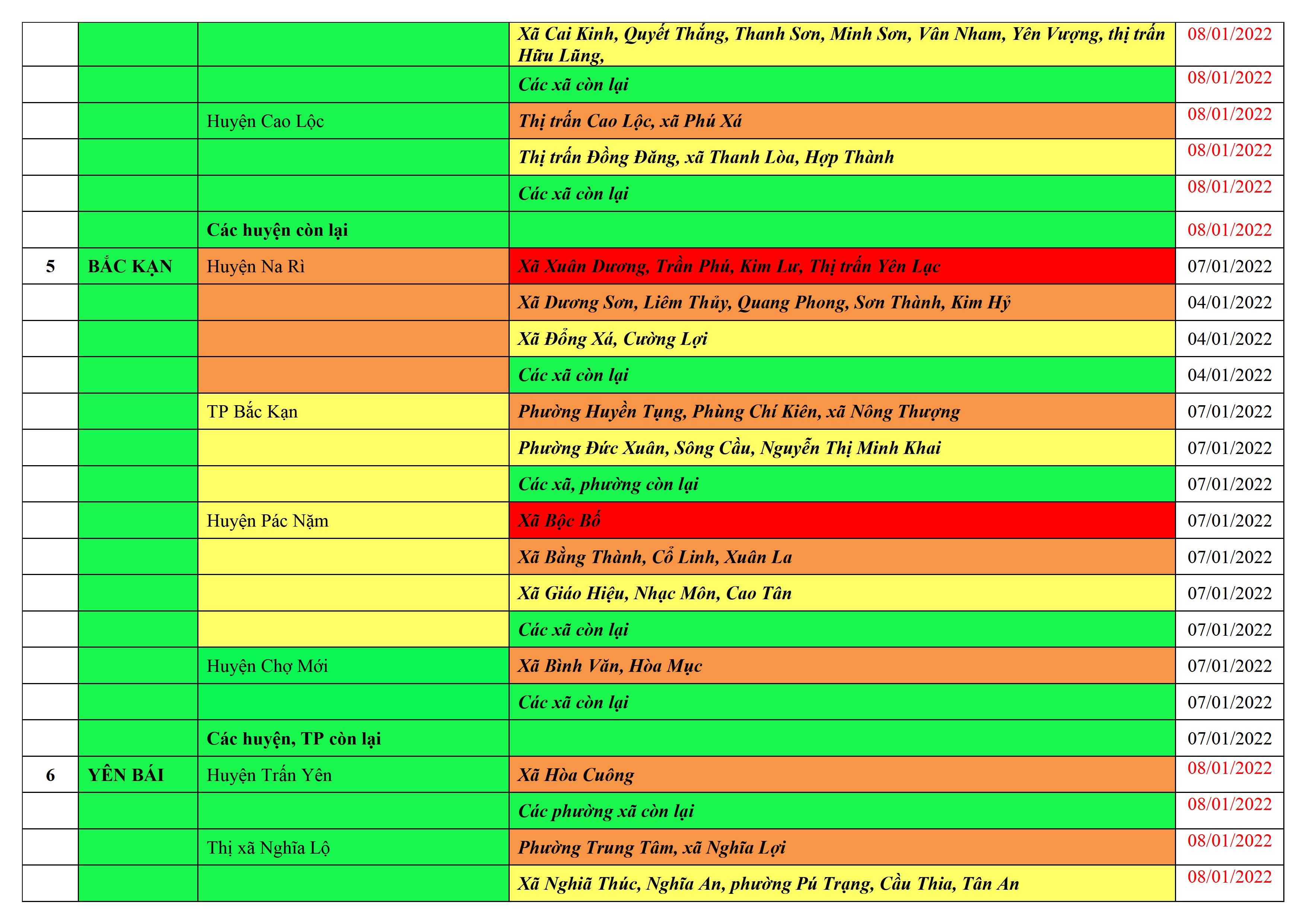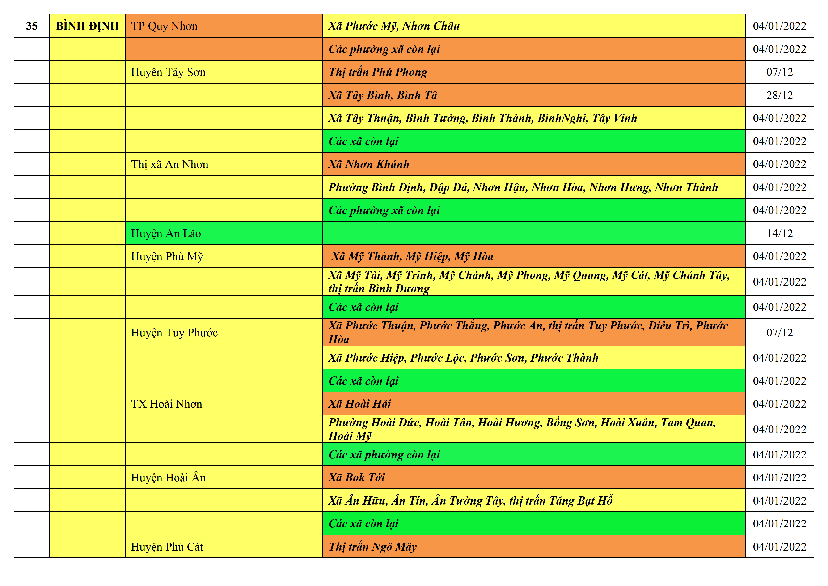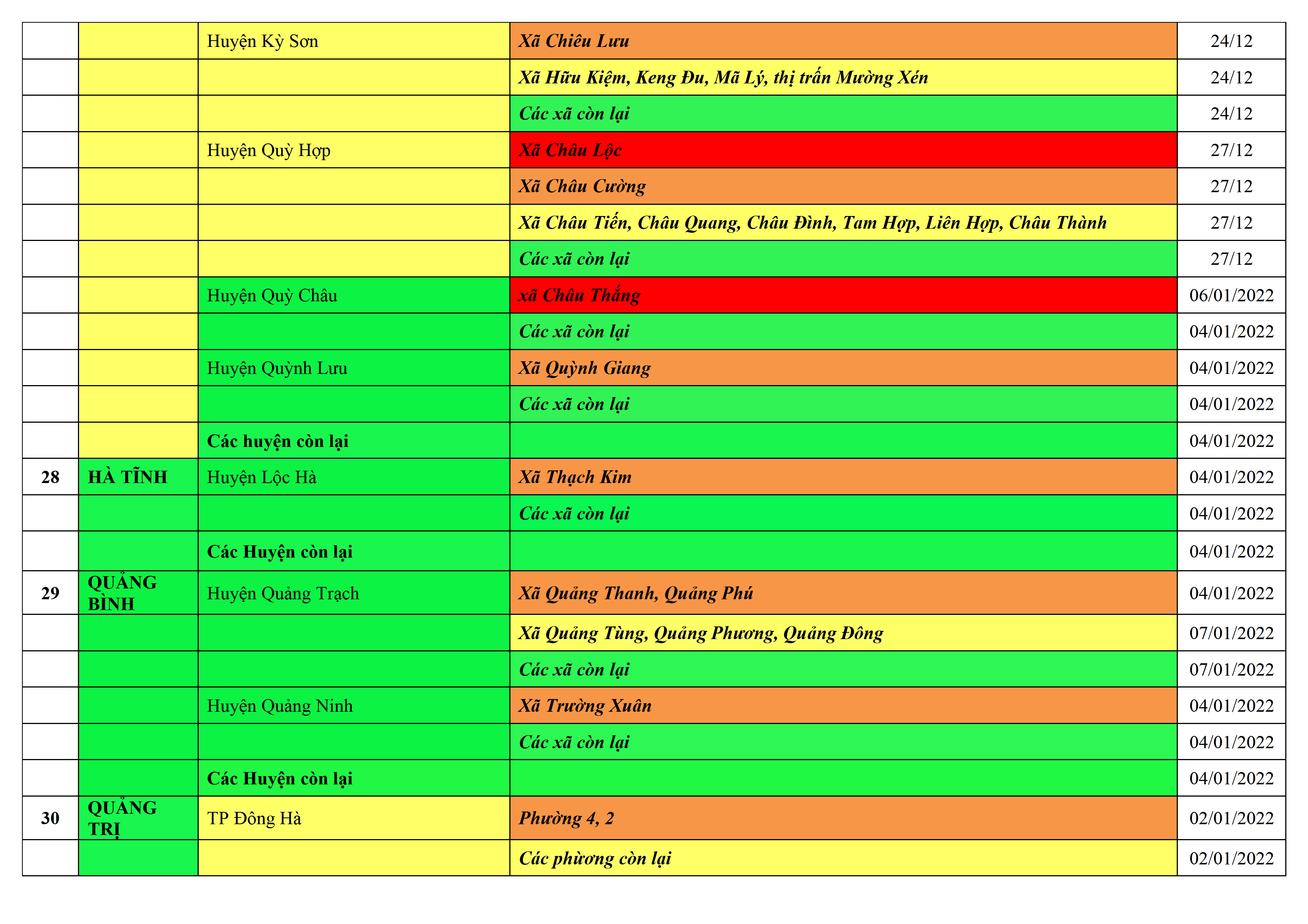Áp dụng biện pháp tương ứng màu sắc ô cột theo thôn xóm; xã phường; quận huyện; tỉnh thành phố. Cách ly y tế dựa vào việc tiếp xúc, đi đến địa điểm và nơi cư trú có ca bệnh, theo Thông báo của Bộ Y tế, các tỉnh thành phố.