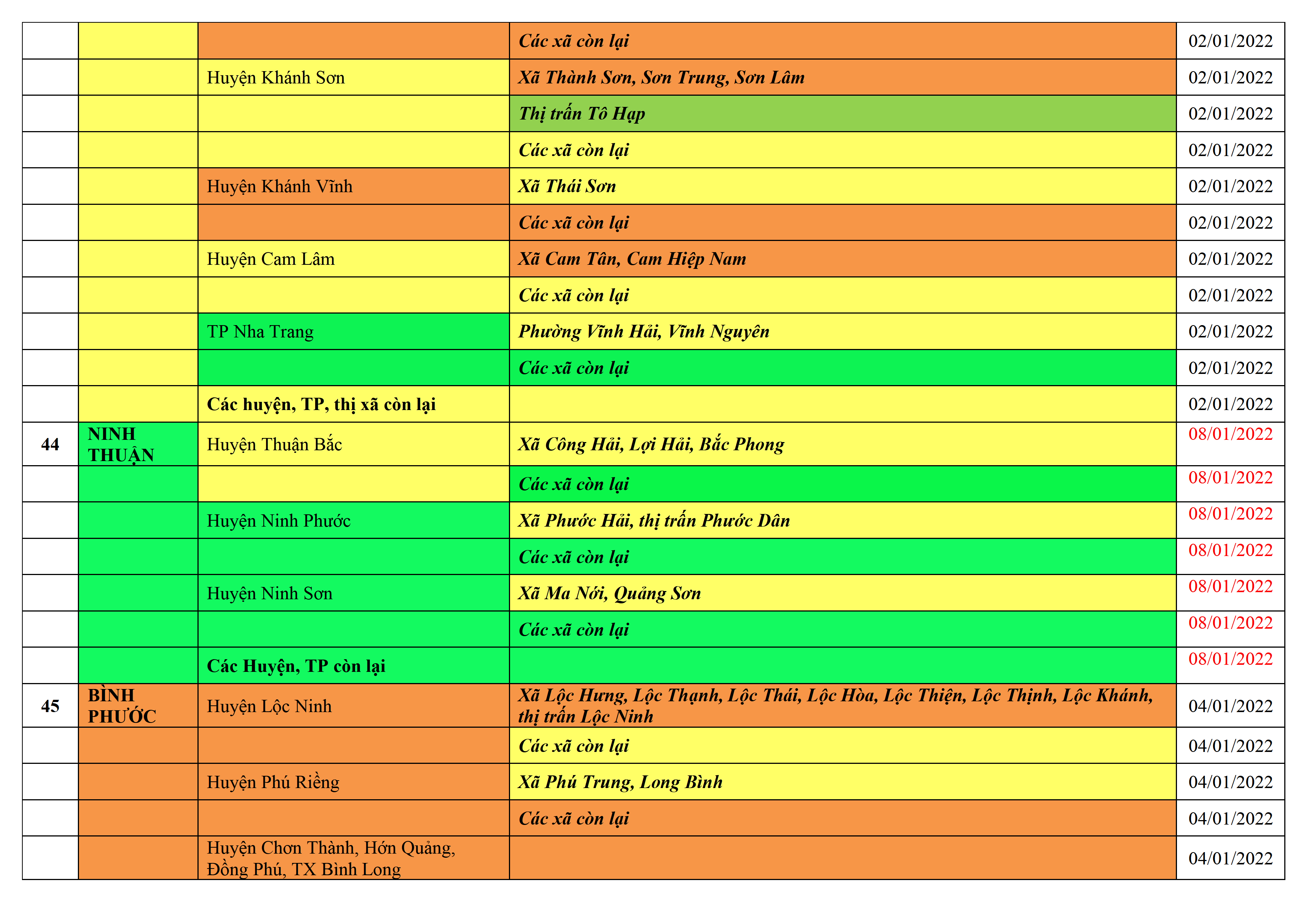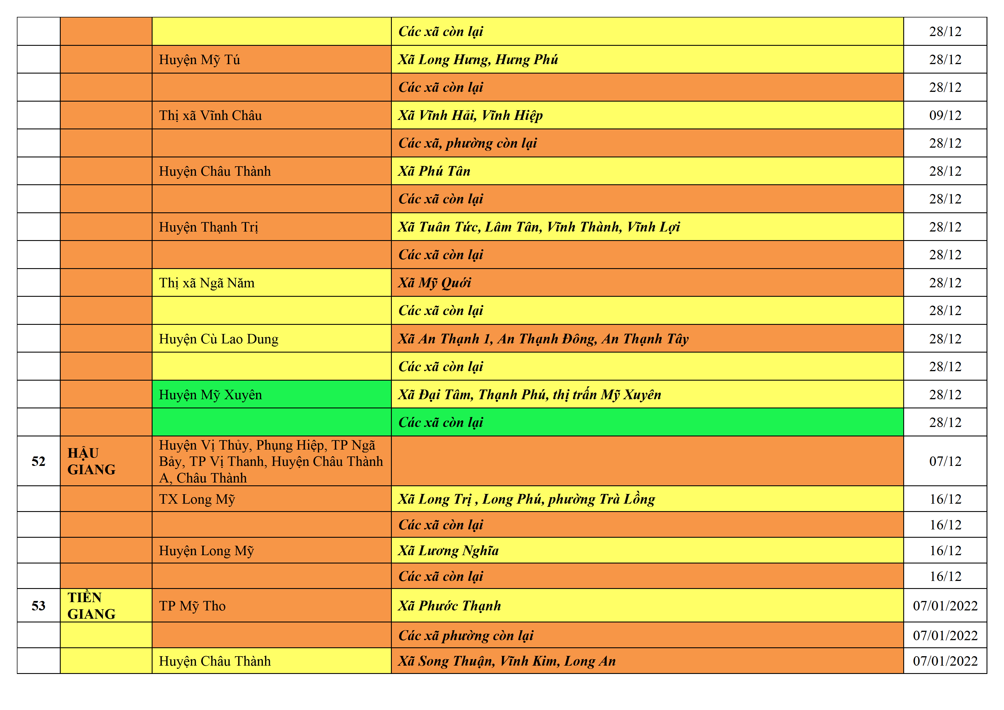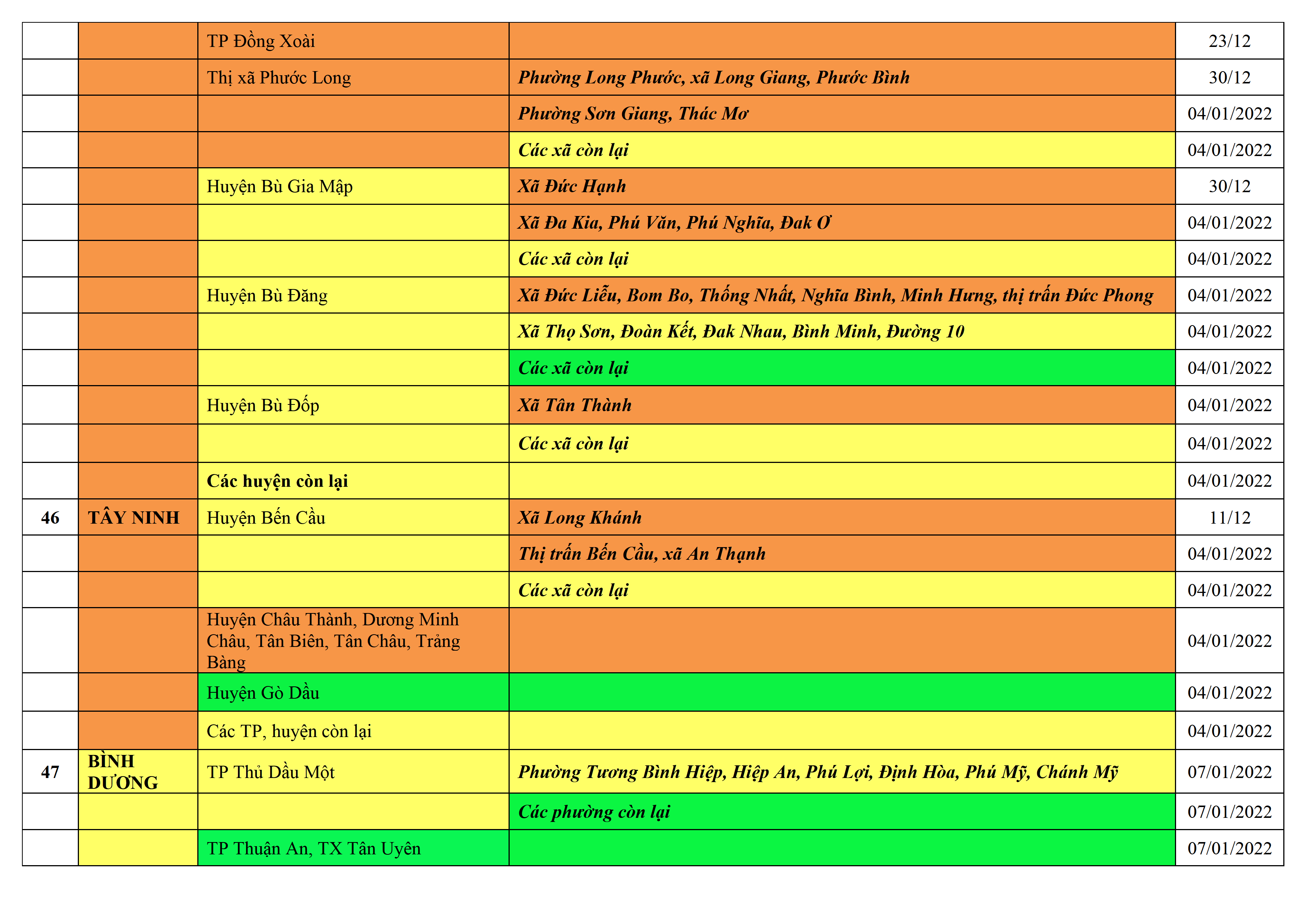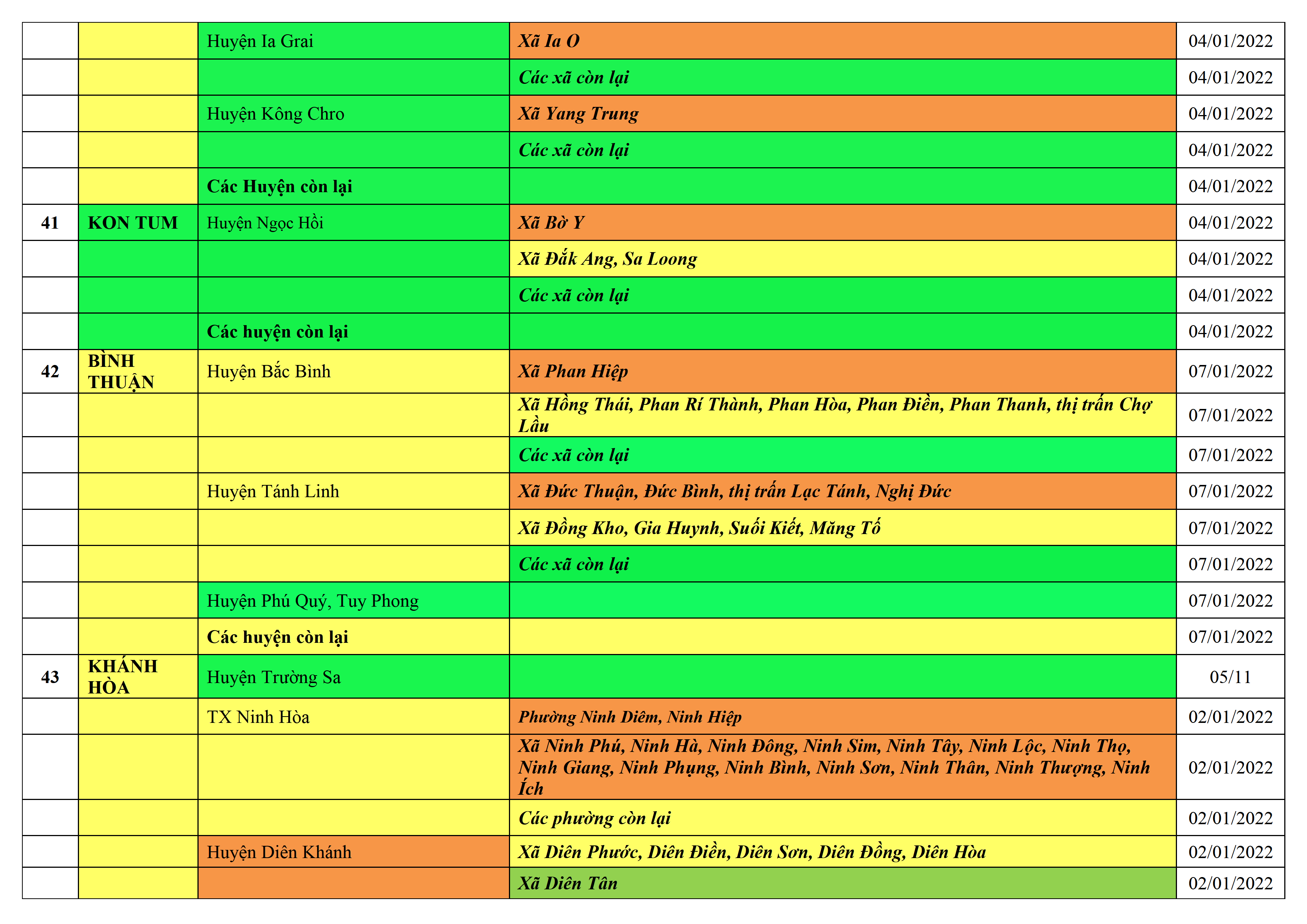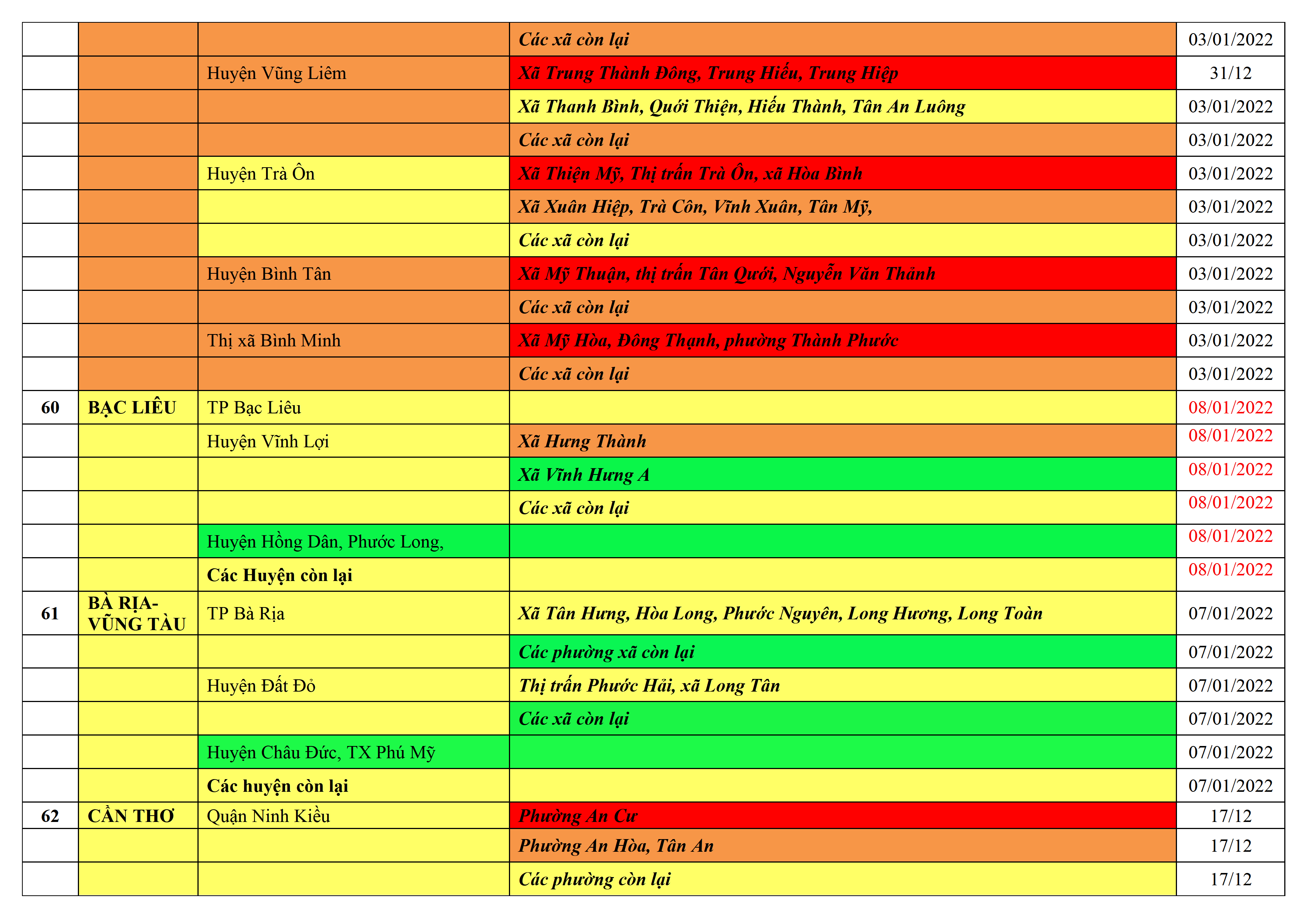 Áp dụng biện pháp tương ứng màu sắc ô cột theo thôn xóm; xã phường; quận huyện; tỉnh thành phố. Cách ly y tế dựa vào việc tiếp xúc, đi đến địa điểm và nơi cư trú có ca bệnh, theo Thông báo của Bộ Y tế, các tỉnh thành phố.