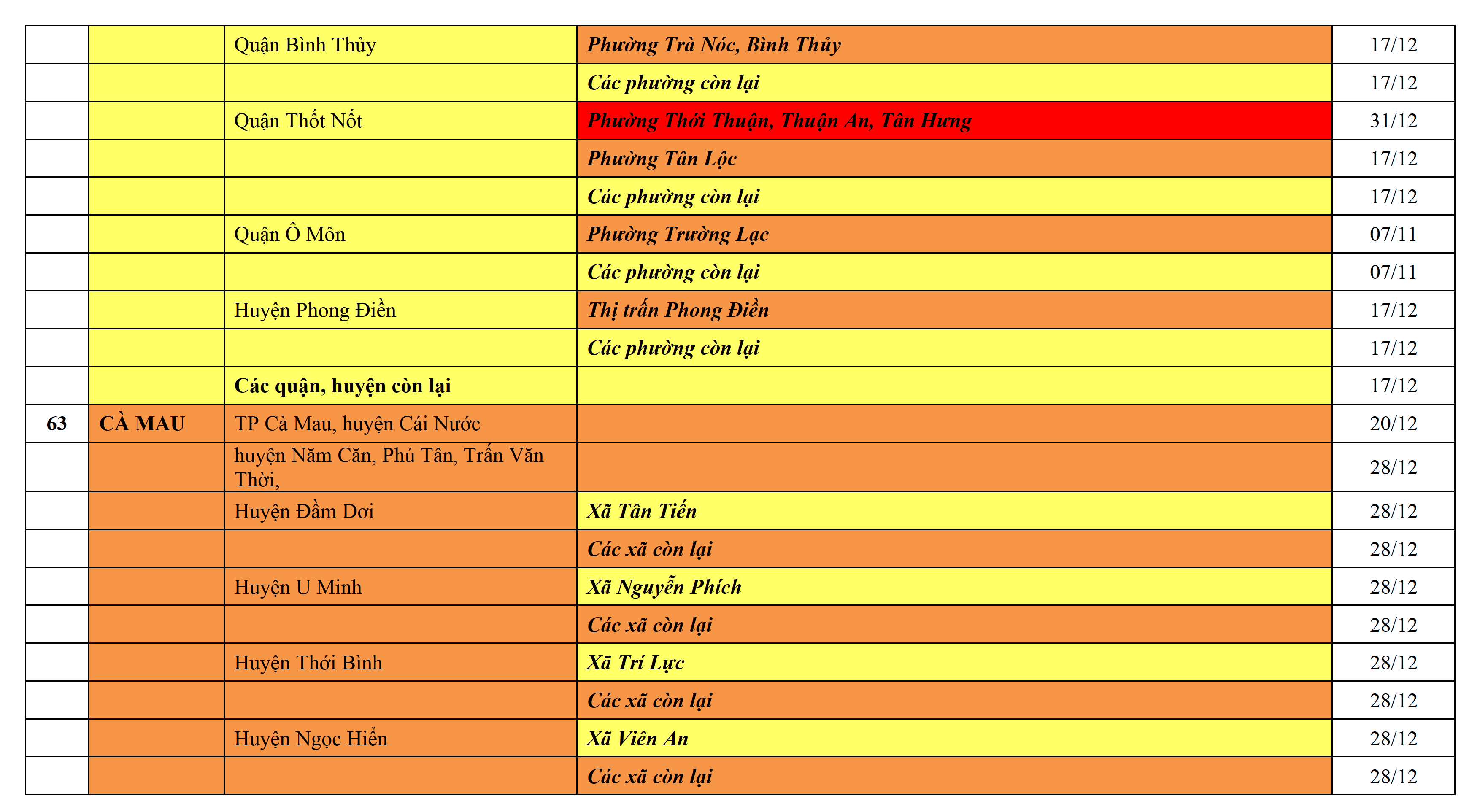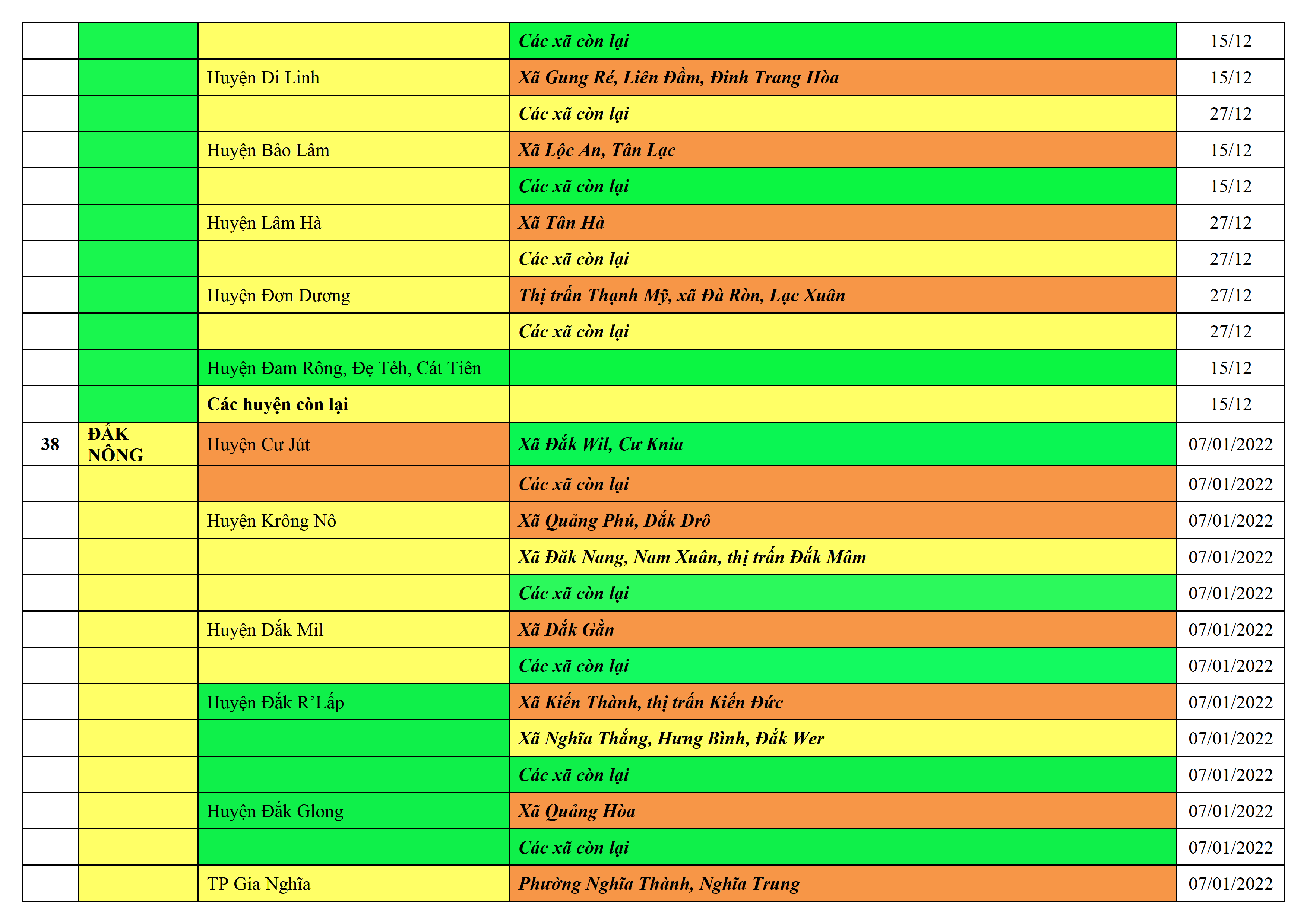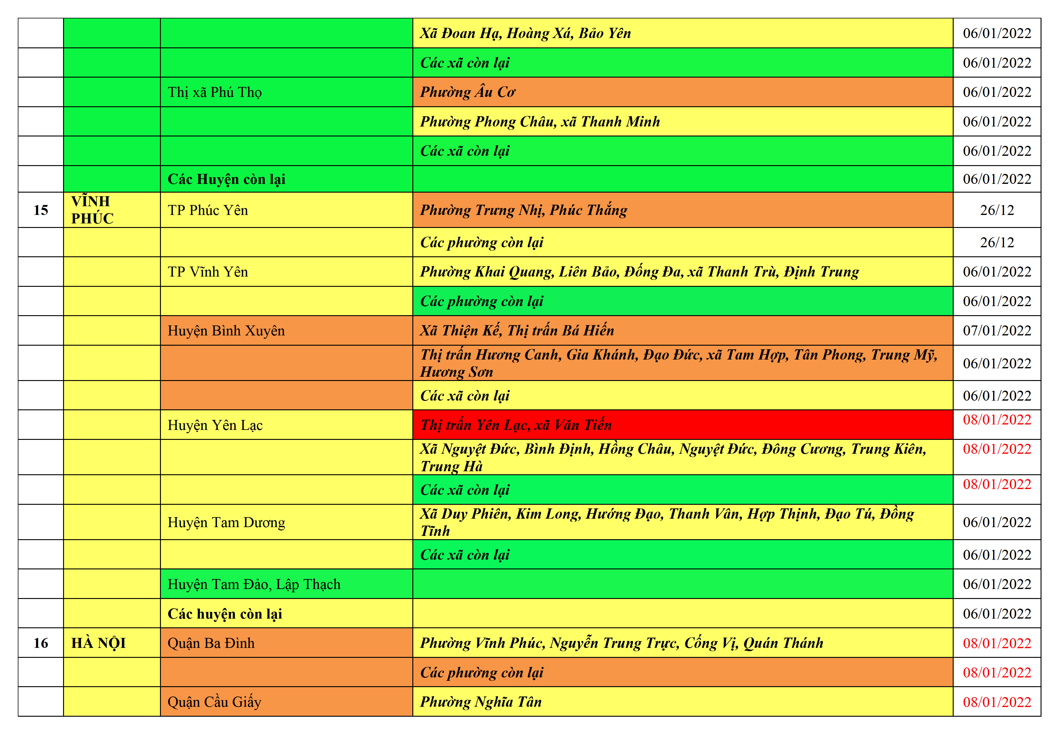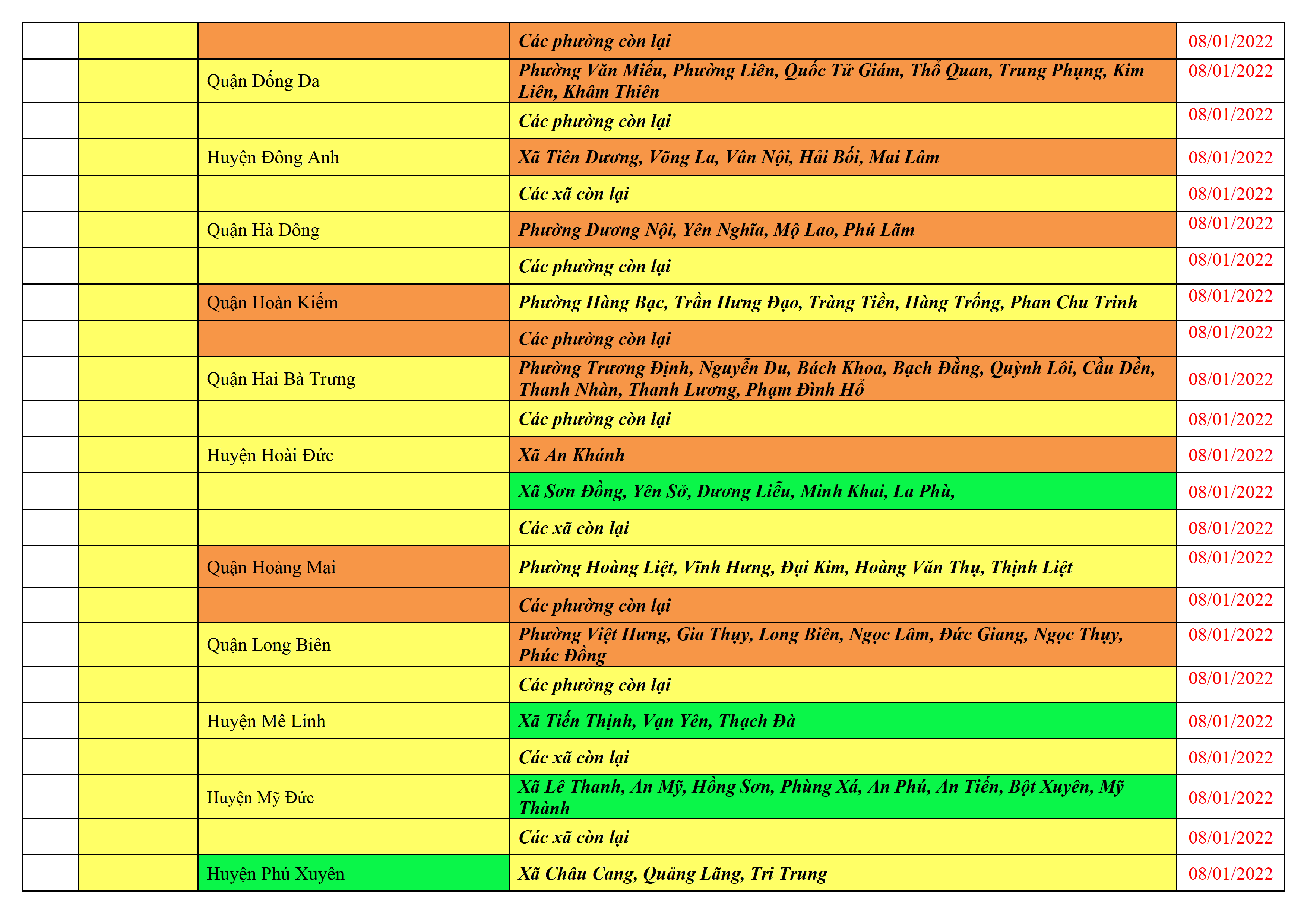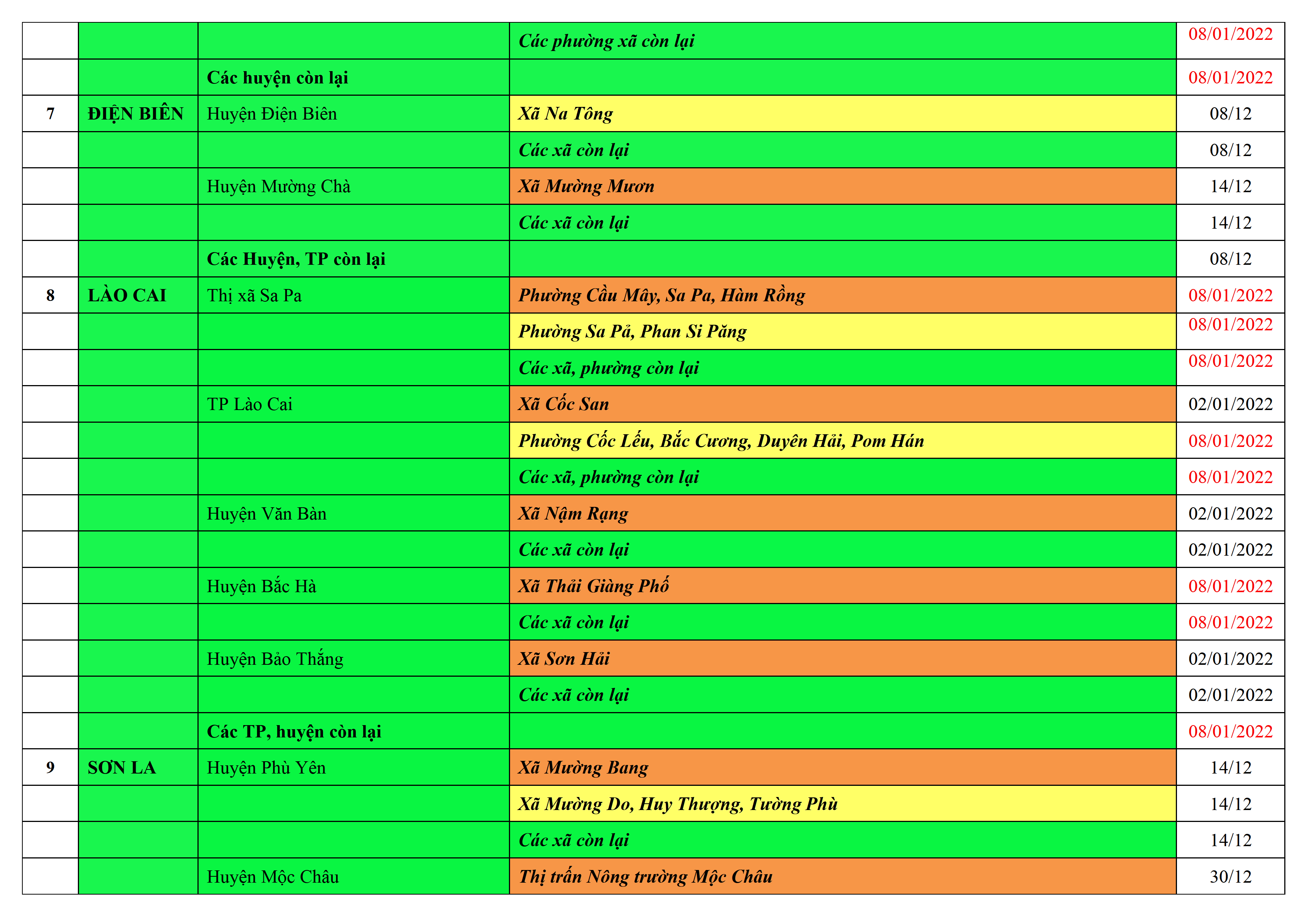 Áp dụng biện pháp tương ứng màu sắc ô cột theo thôn xóm; xã phường; quận huyện; tỉnh thành phố. Cách ly y tế dựa vào việc tiếp xúc, đi đến địa điểm và nơi cư trú có ca bệnh, theo Thông báo của Bộ Y tế, các tỉnh thành phố.