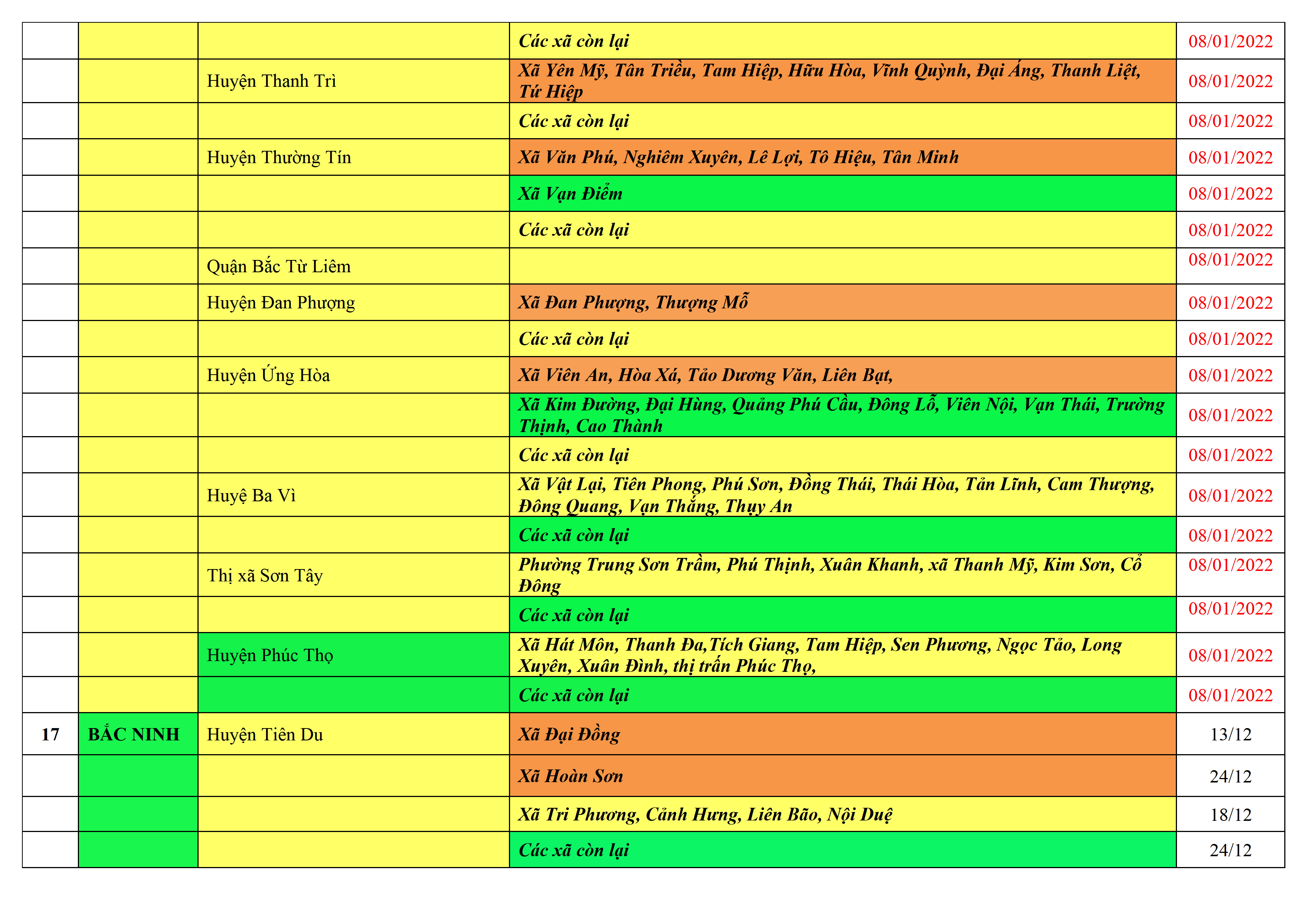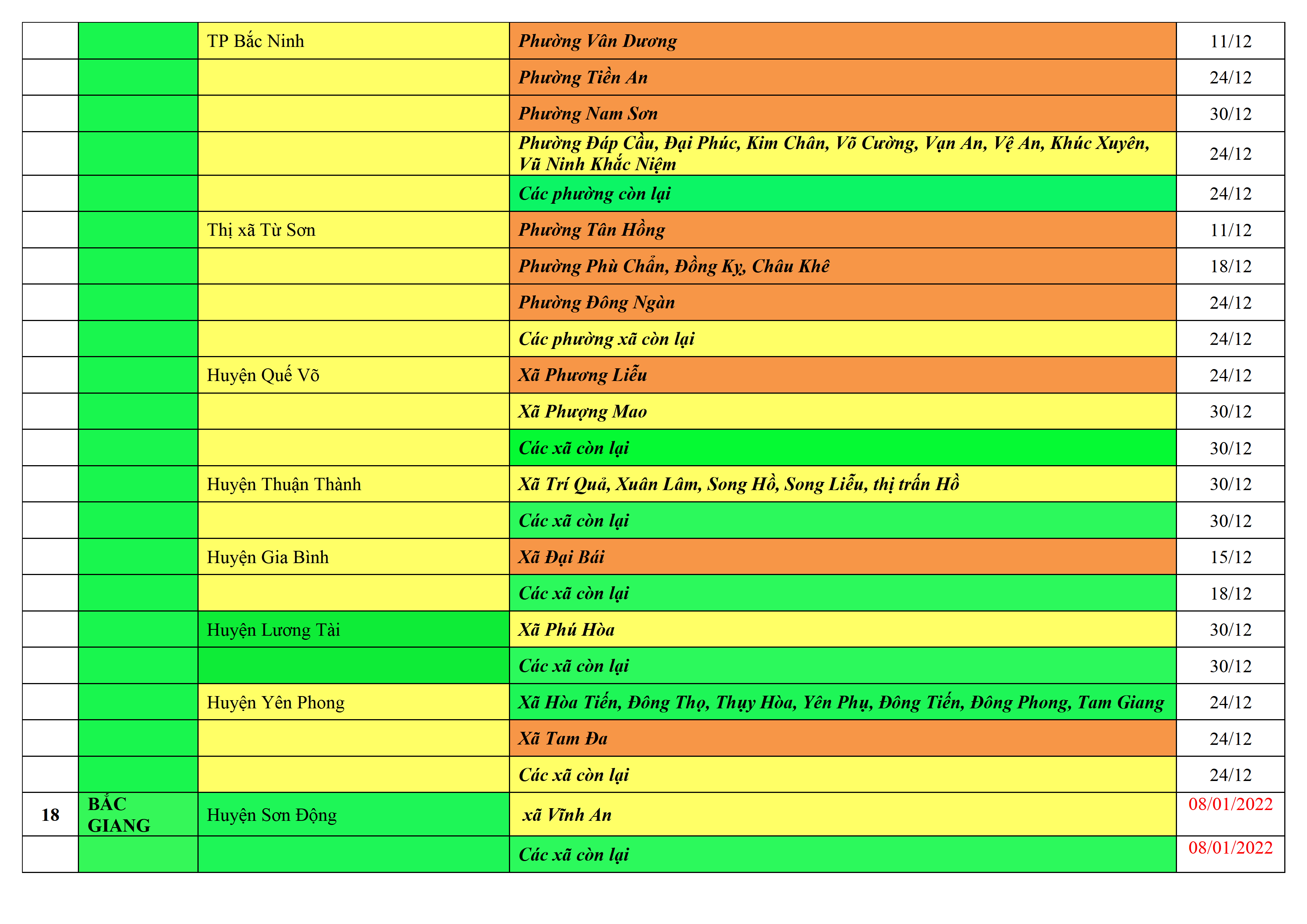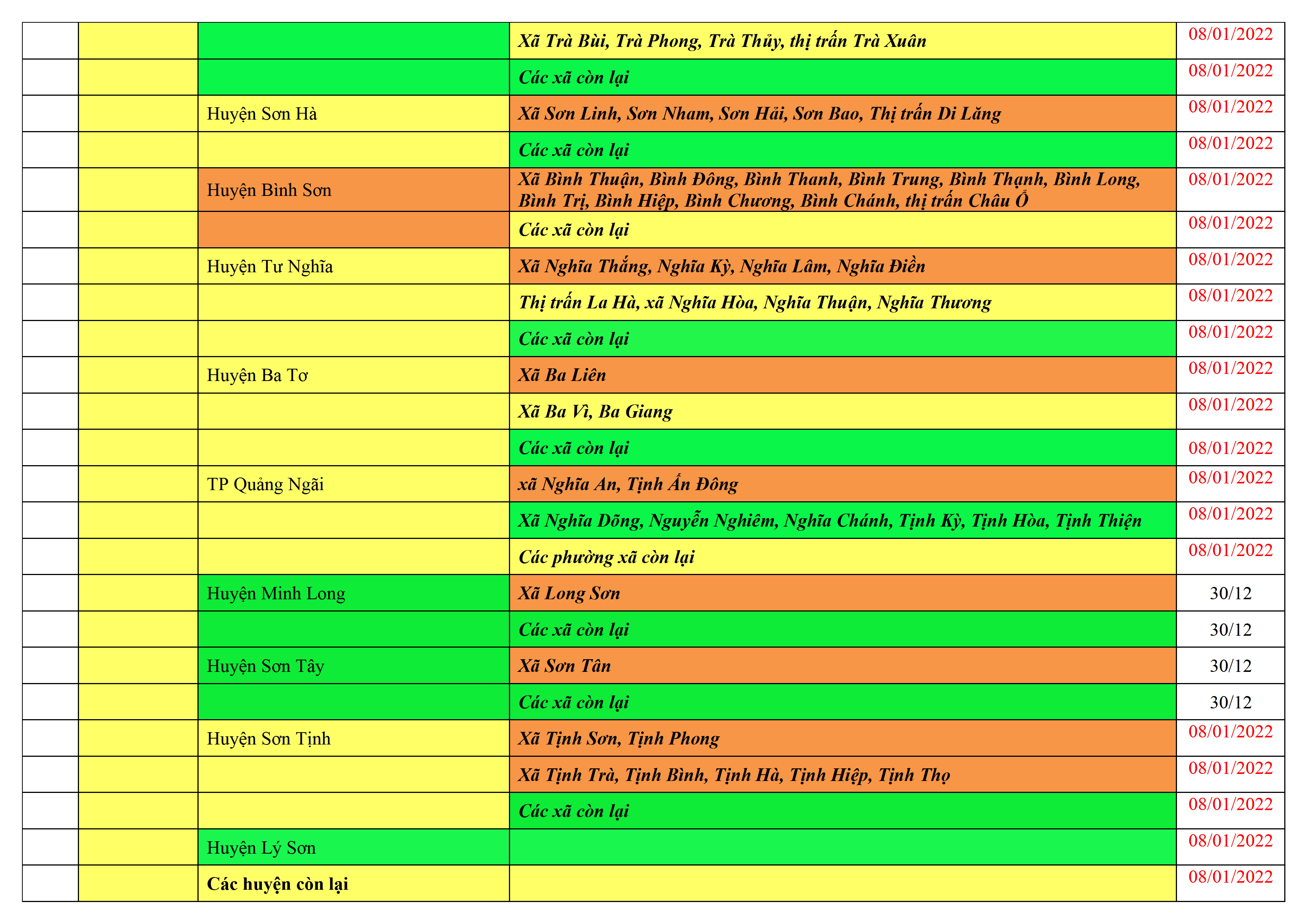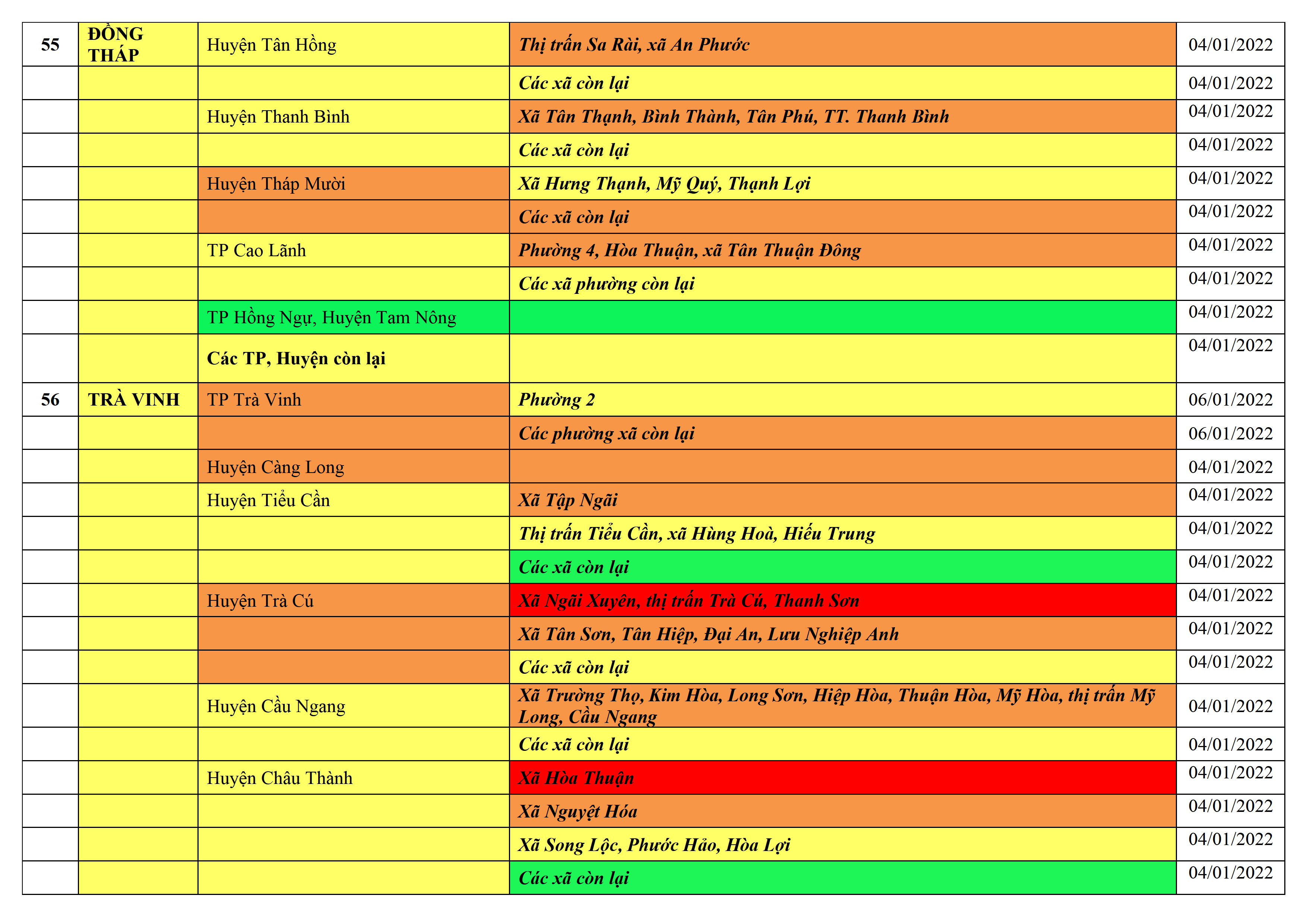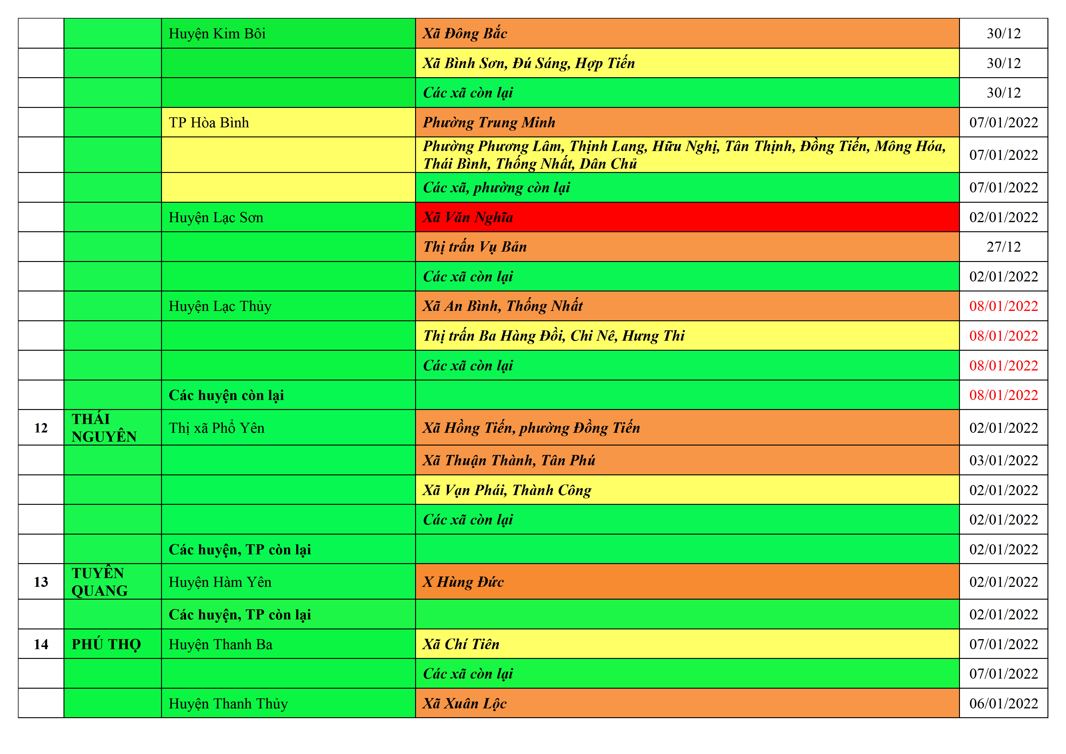 Áp dụng biện pháp tương ứng màu sắc ô cột theo thôn xóm; xã phường; quận huyện; tỉnh thành phố.