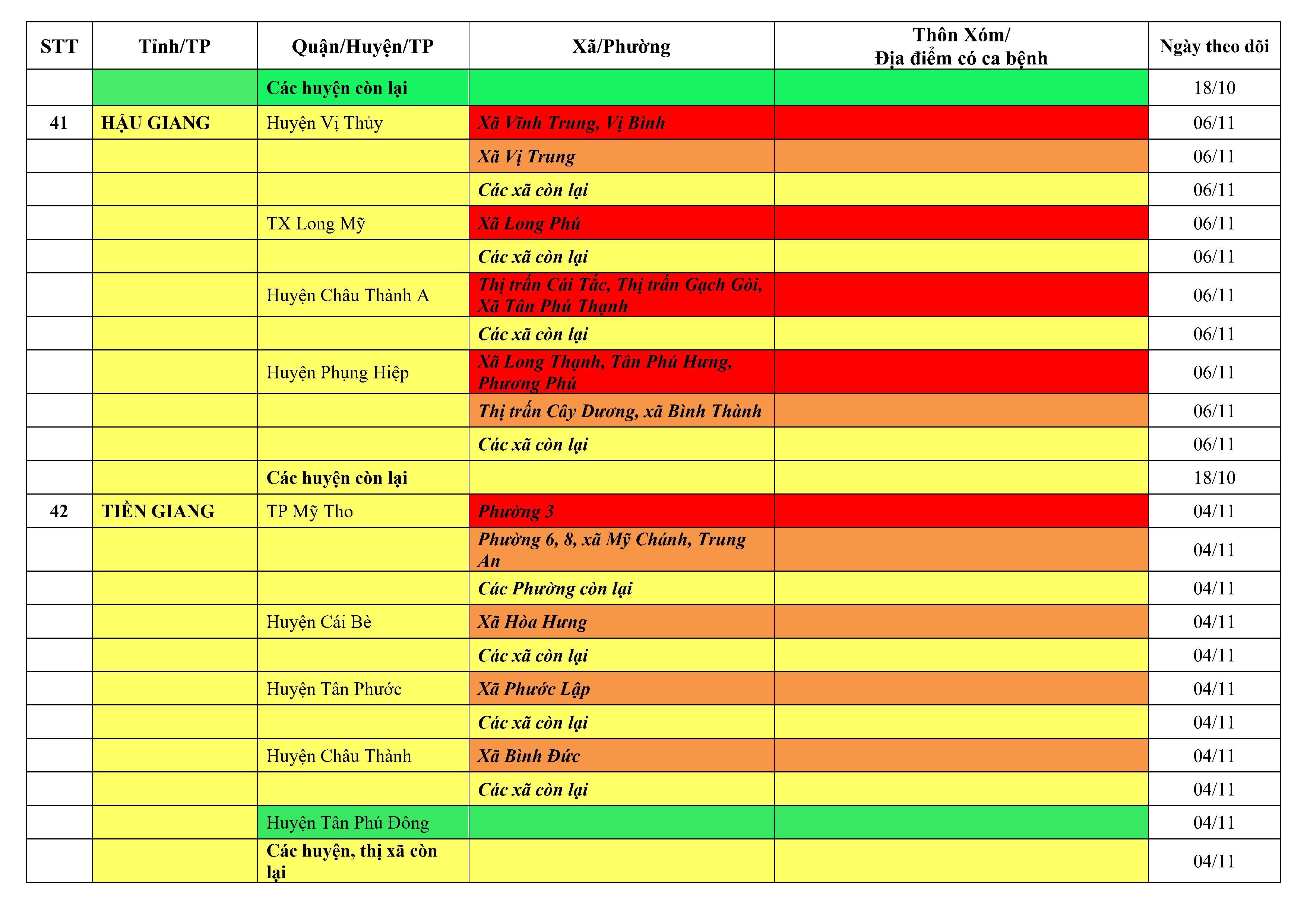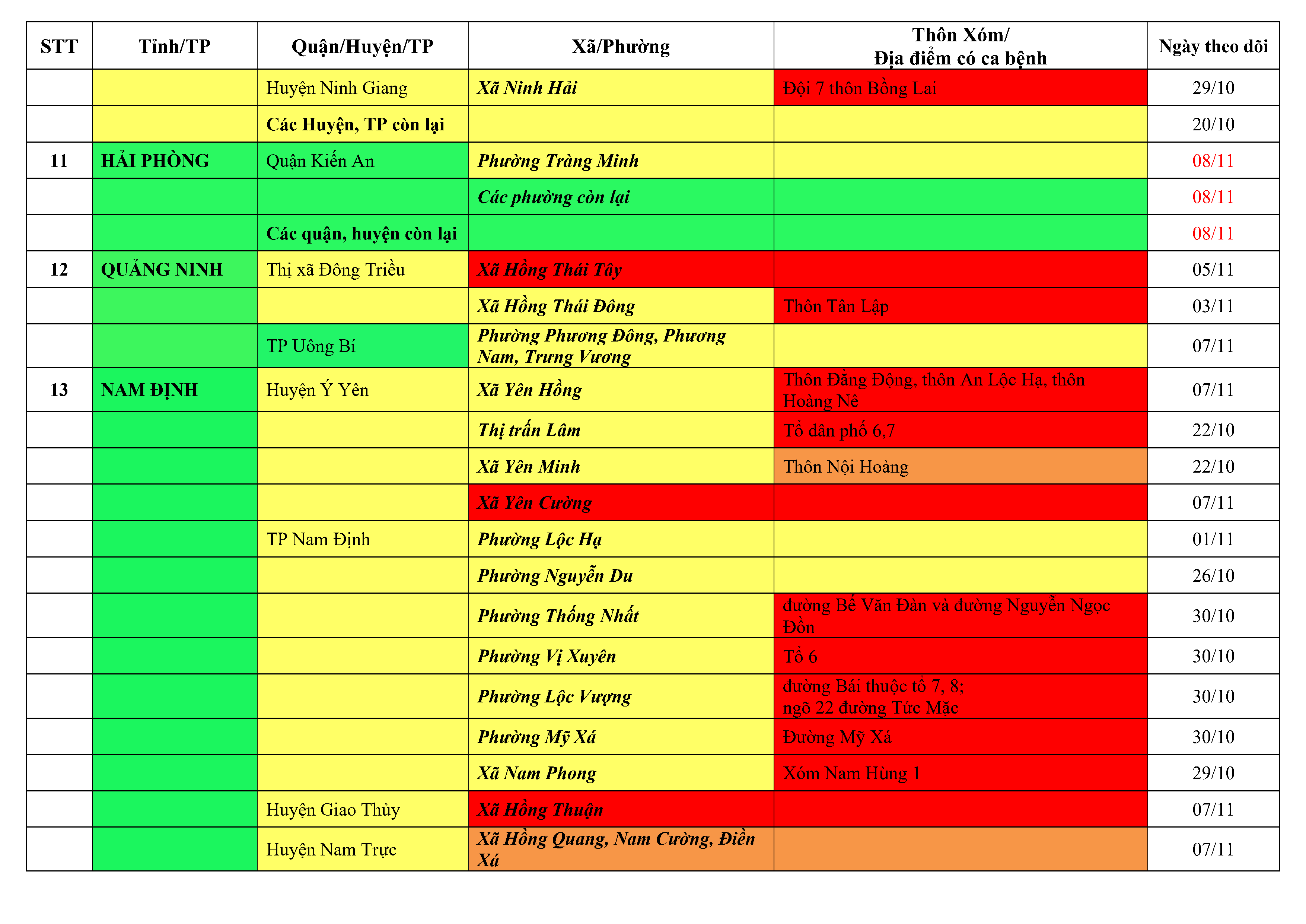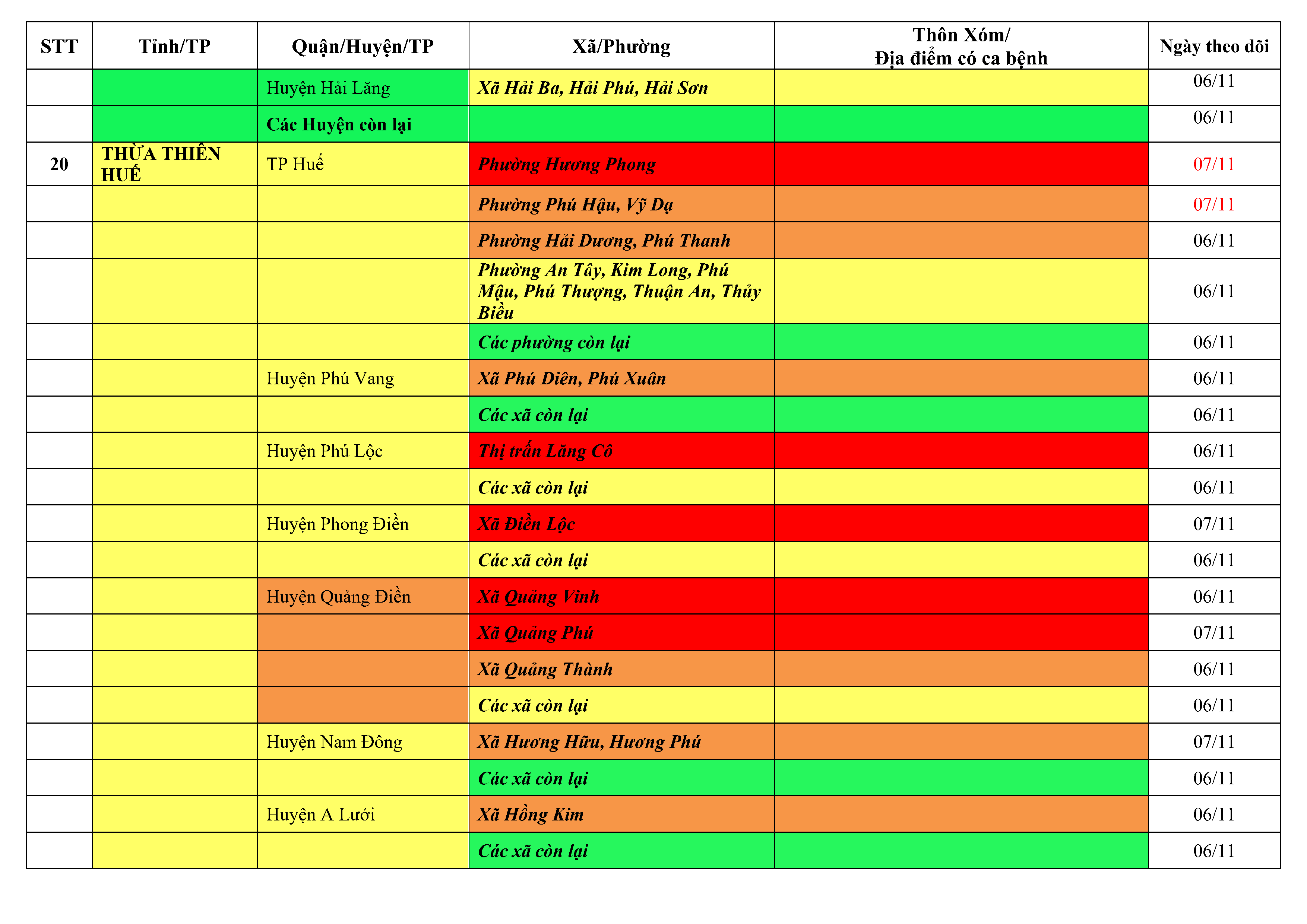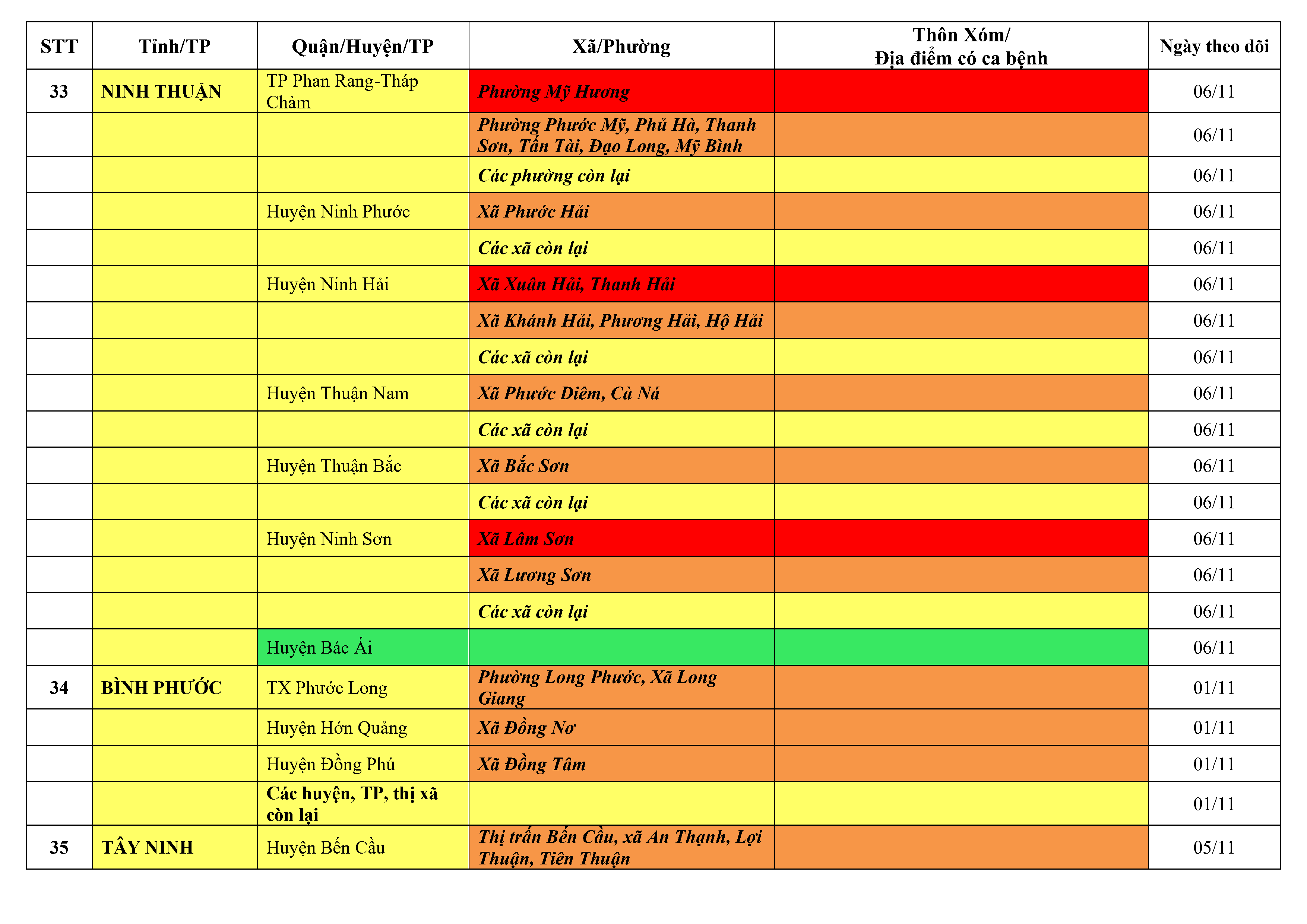 Lưu ý: Các tỉnh, thành phố không có tên trong bảng màu, đi lại bình thường, tuân thủ các biện pháp phòng chống dịch theo chỉ đạo của Bộ Y tế; khai báo y tế, thực hiện nghiêm 5K.