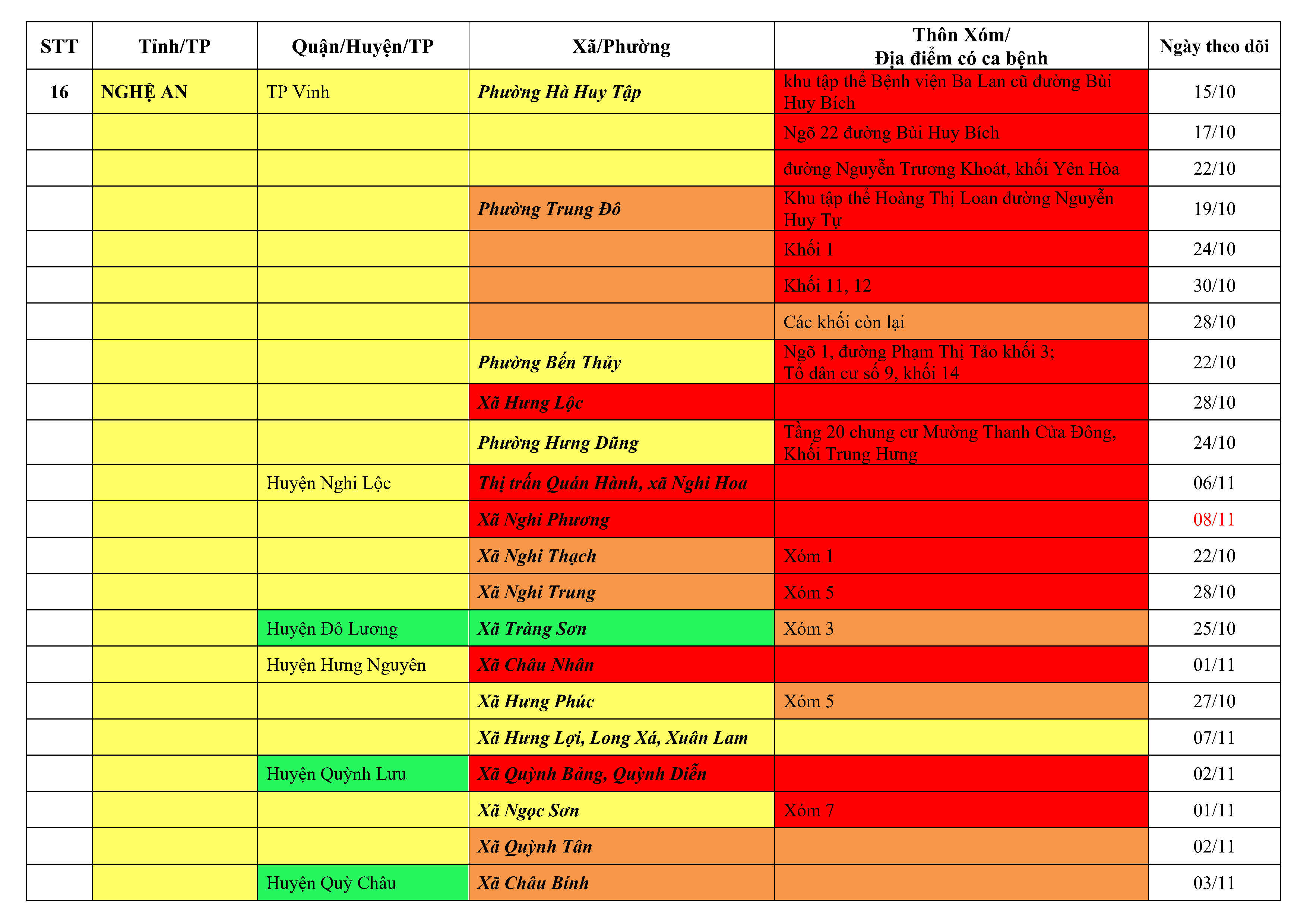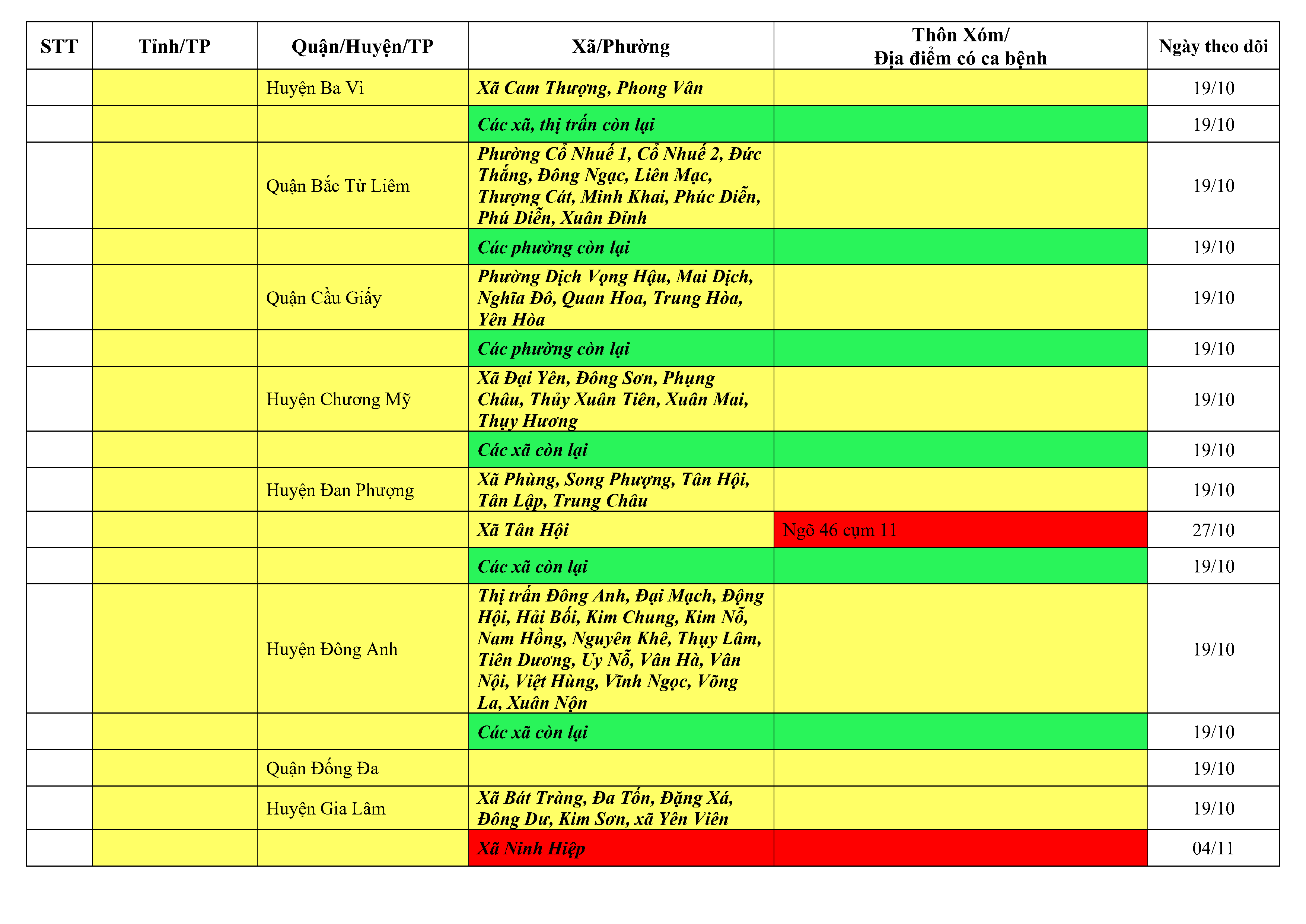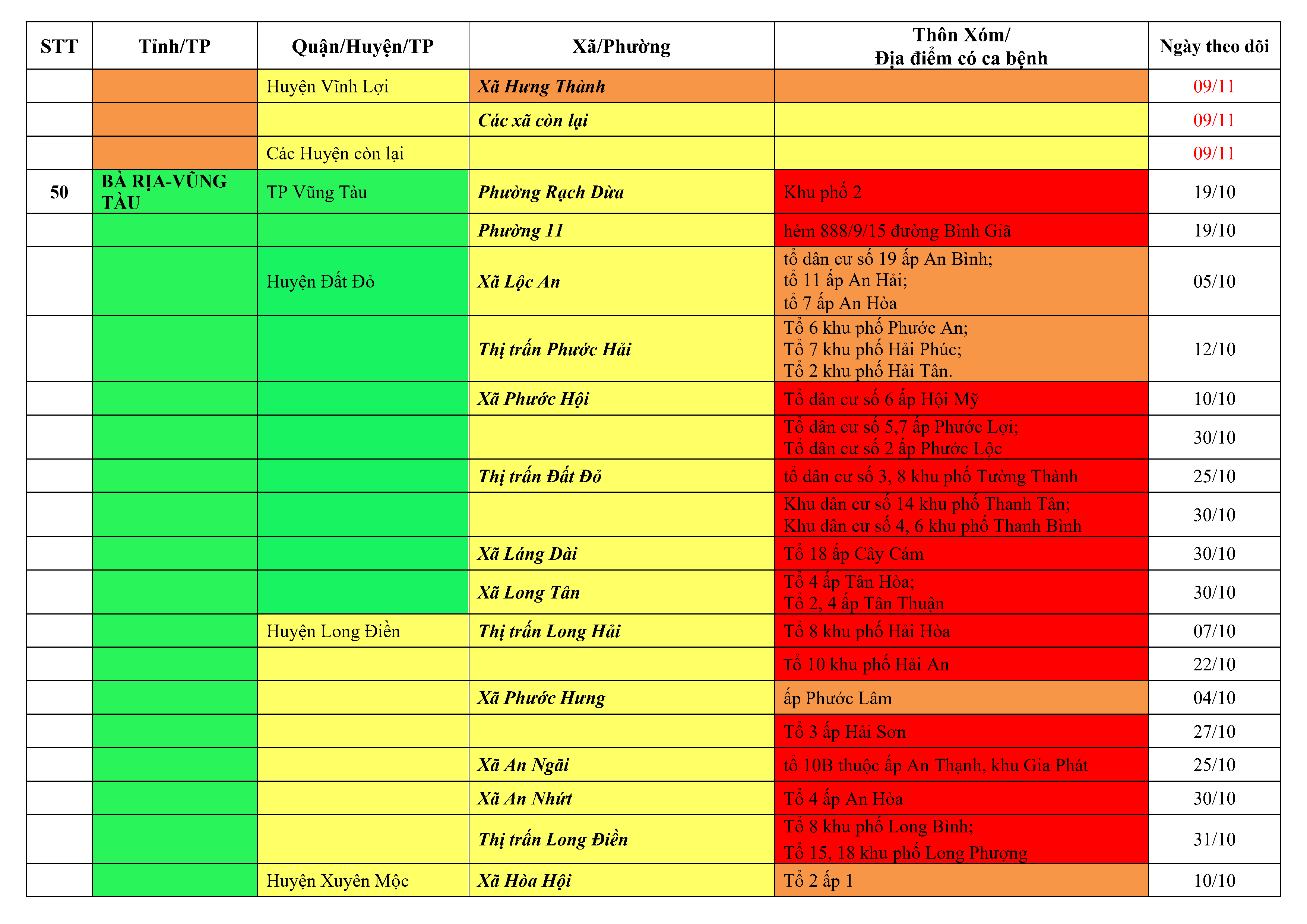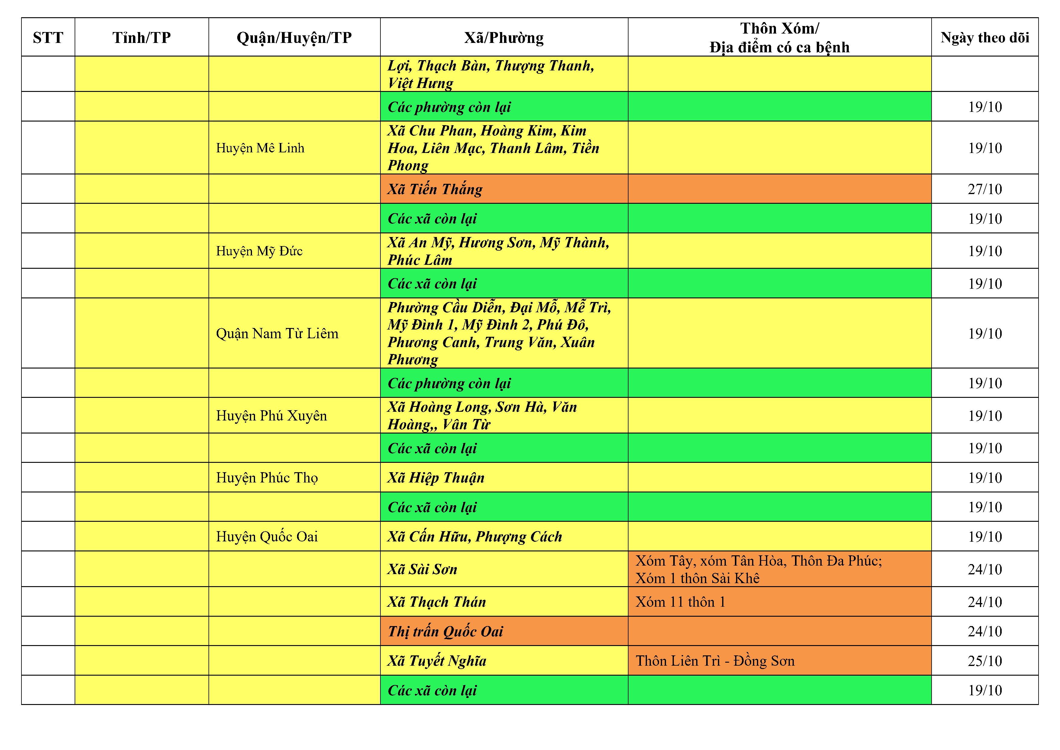 Lưu ý: Các tỉnh, thành phố không có tên trong bảng màu, đi lại bình thường, tuân thủ các biện pháp phòng chống dịch theo chỉ đạo của Bộ Y tế; khai báo y tế, thực hiện nghiêm 5K.