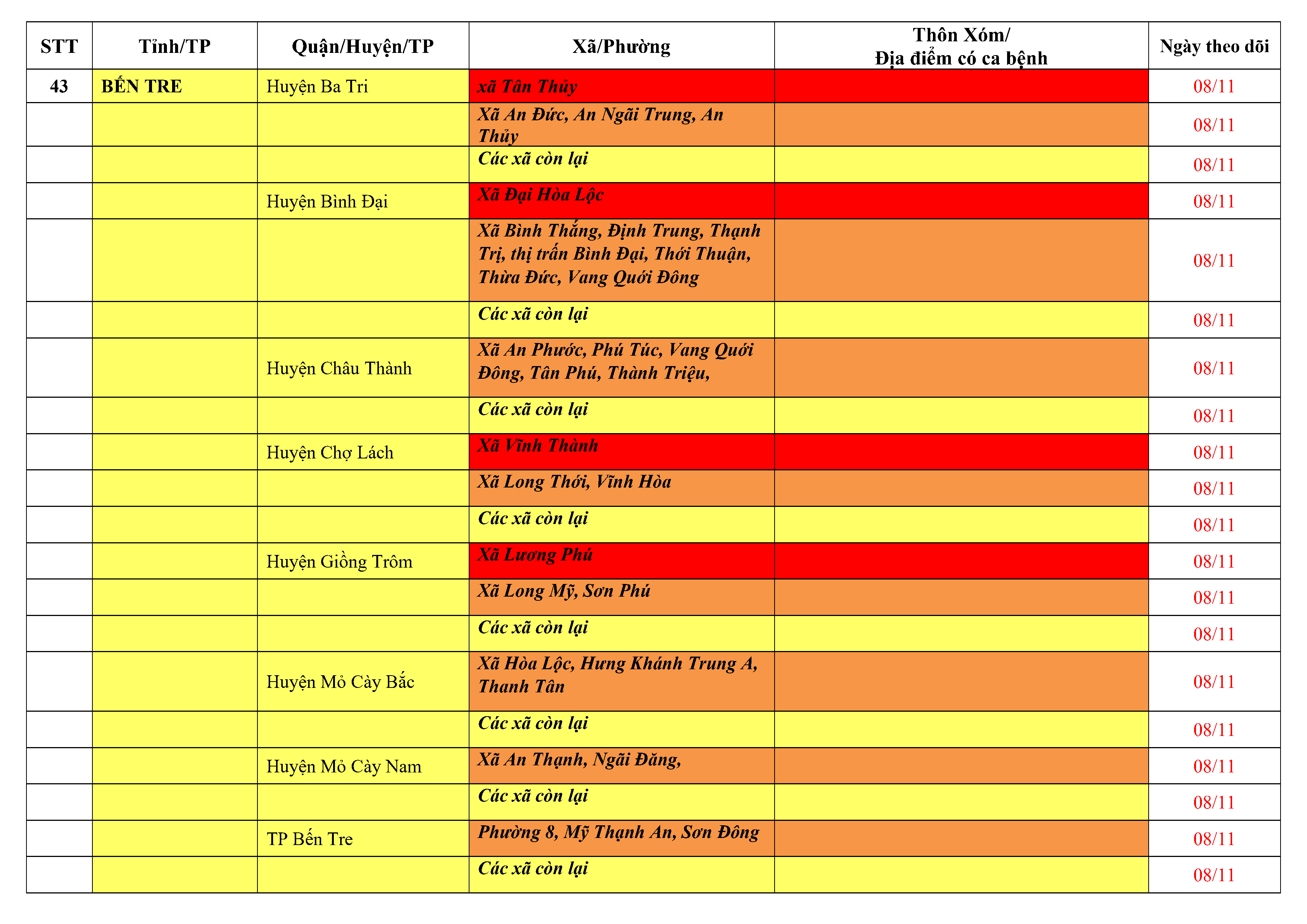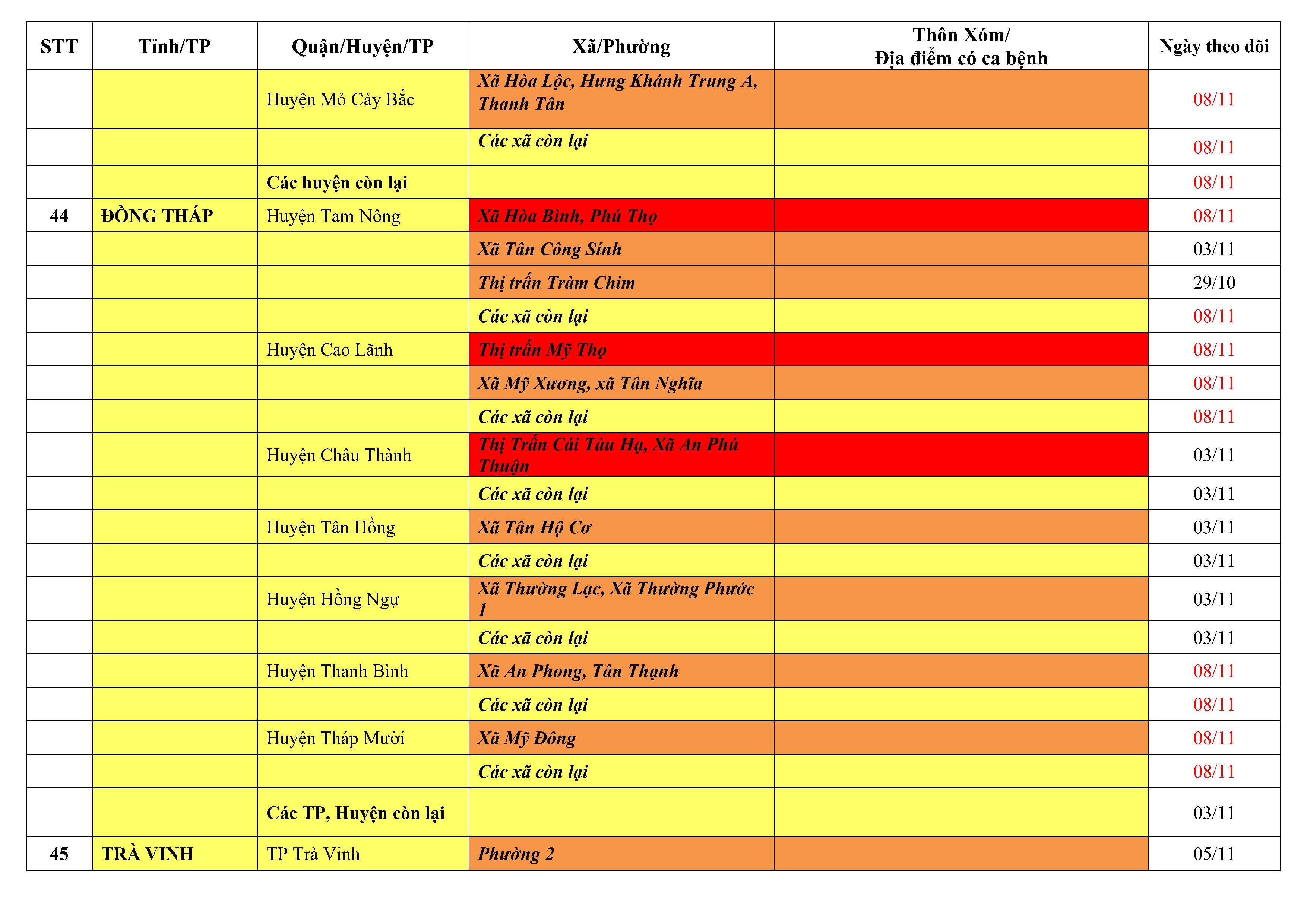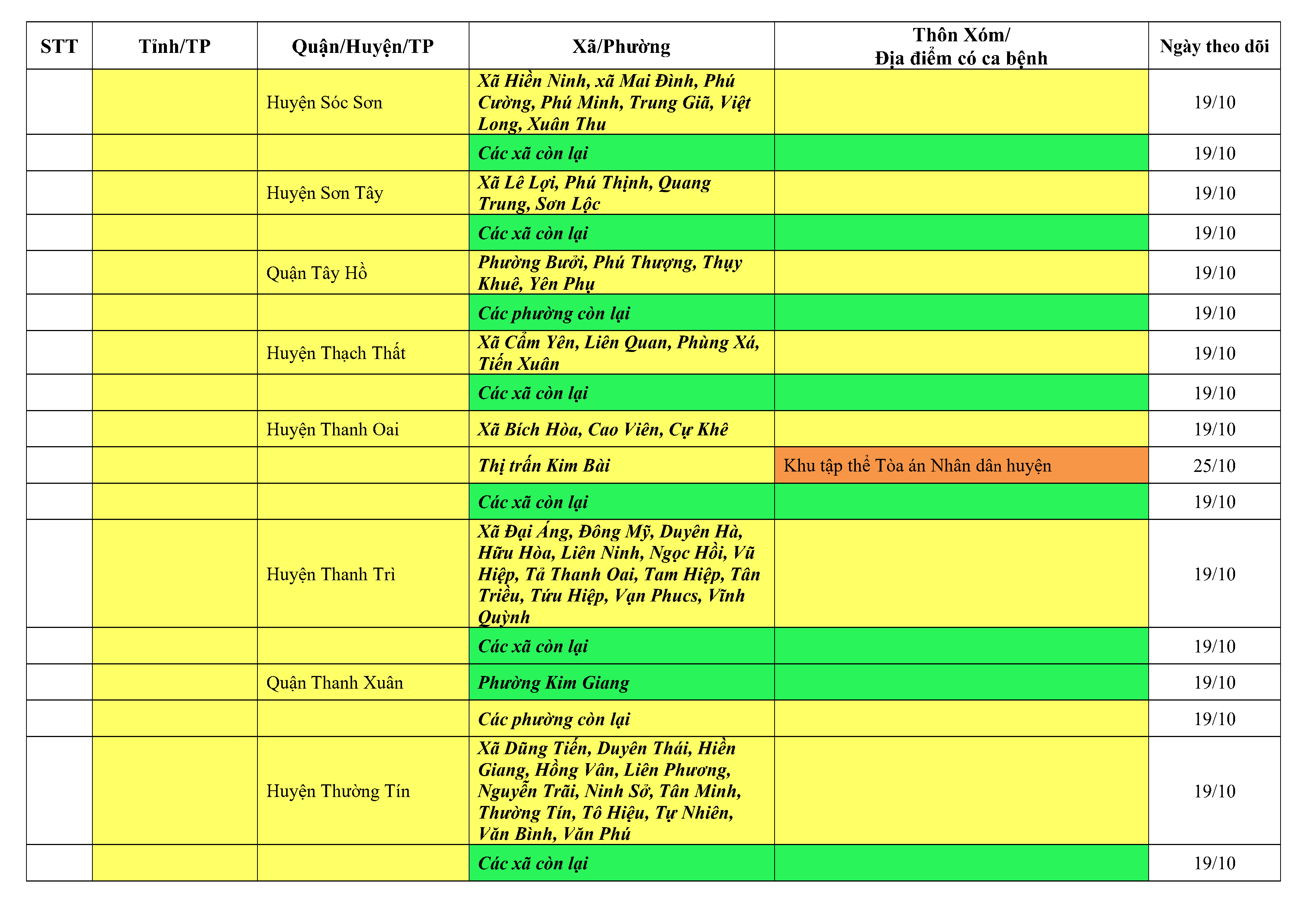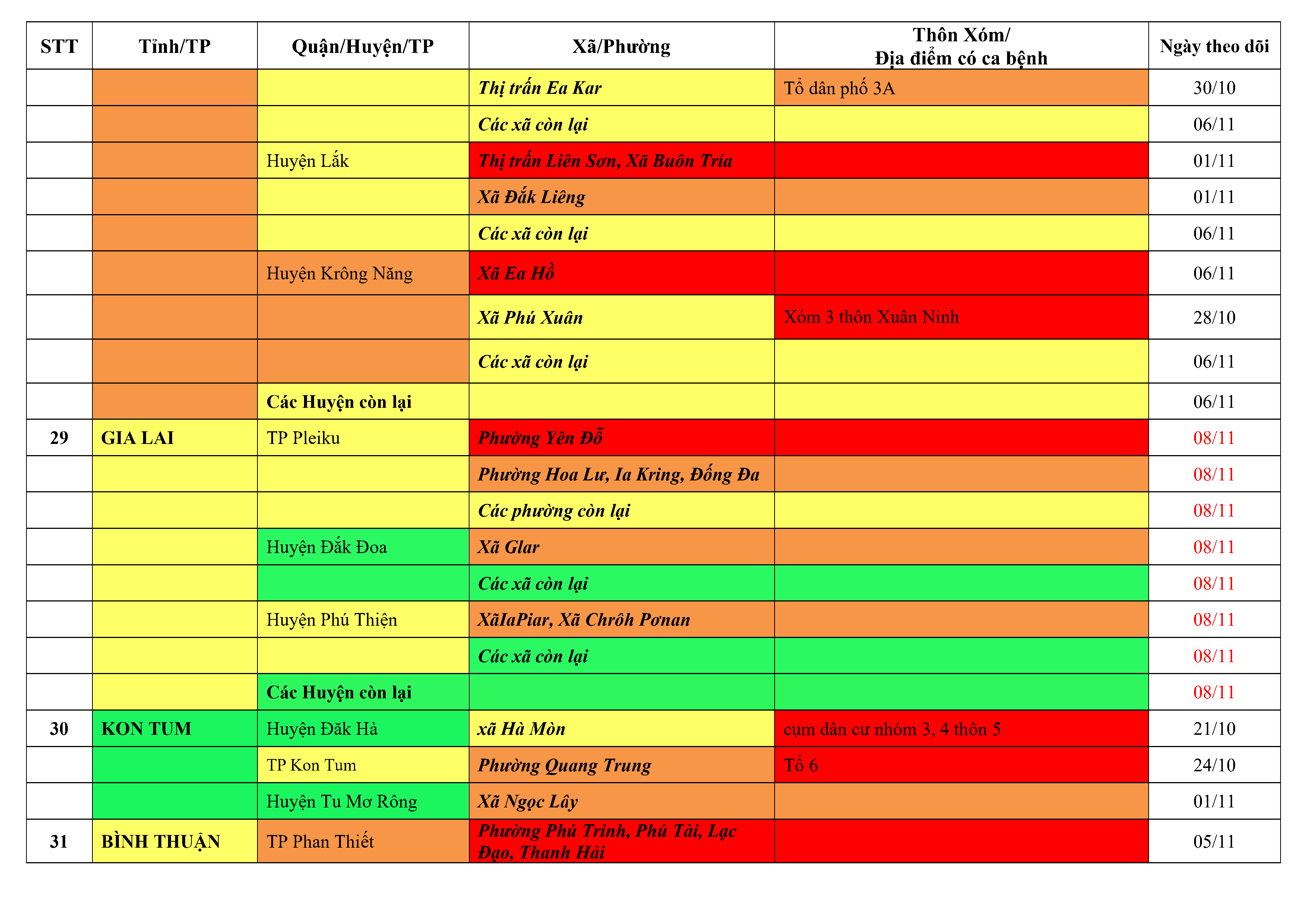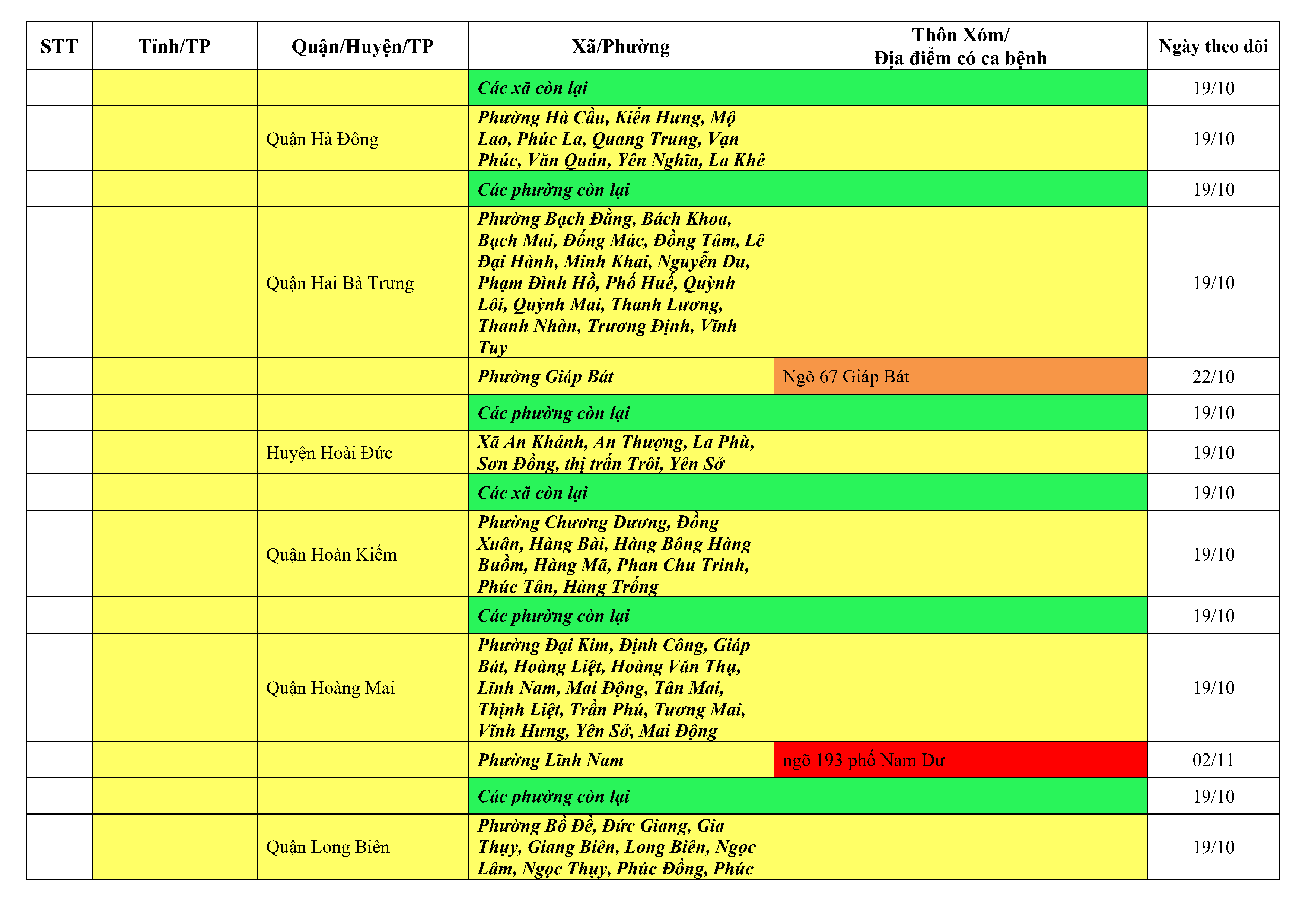 Lưu ý: Các tỉnh, thành phố không có tên trong bảng màu, đi lại bình thường, tuân thủ các biện pháp phòng chống dịch theo chỉ đạo của Bộ Y tế; khai báo y tế, thực hiện nghiêm 5K.