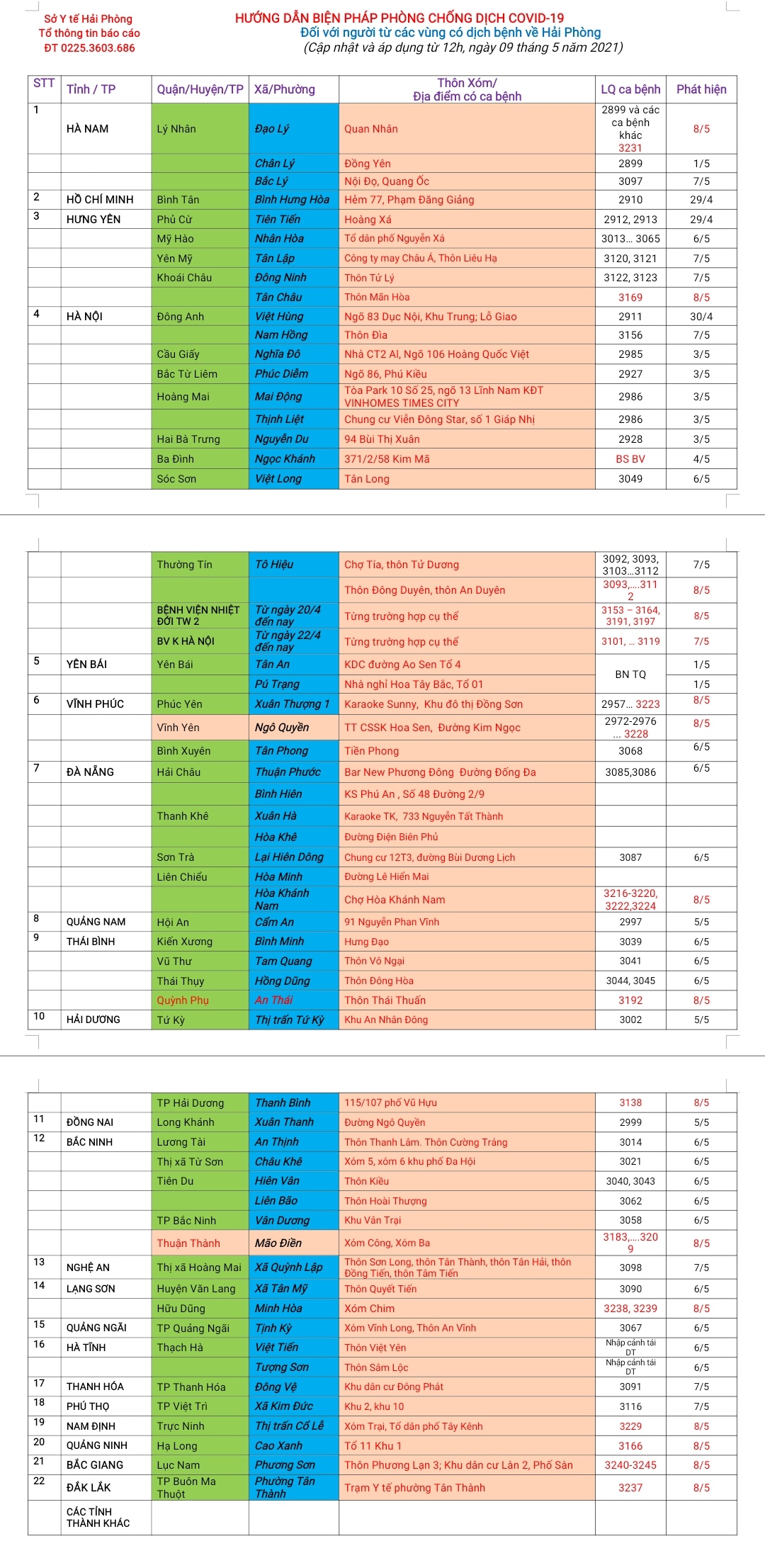 . Mọi người dân thực hiện 5K theo khuyến cáo của Bộ Y tế. Thực hiện công văn số 2803//UBND-VX ngày 30/4/2021; Thông báo số 164/TB-UBND ngày 5/5/2021, Công văn số 2928/UBND-VX ngày 8/5/2021 của UBND TP Hải Phòng.