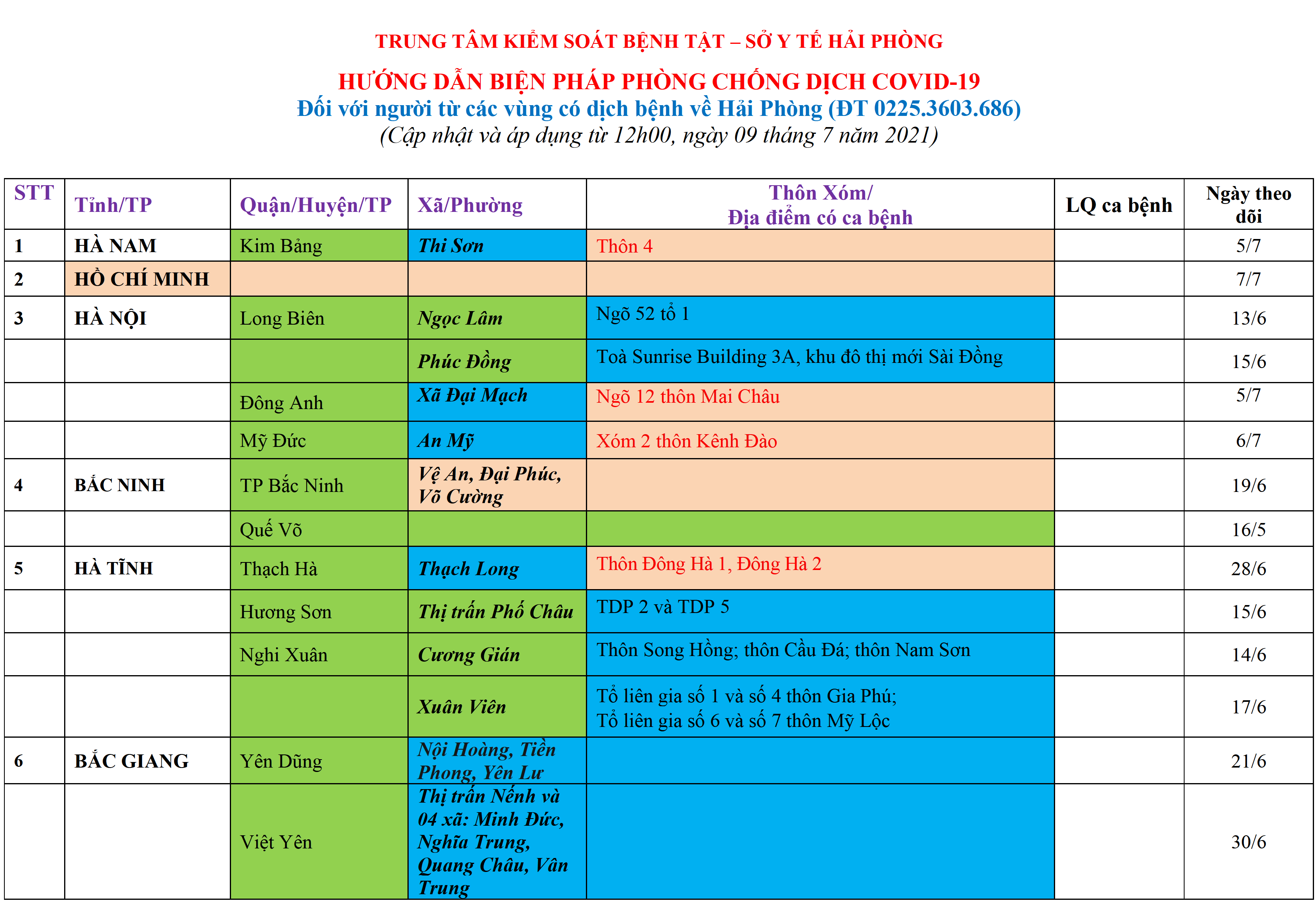 CDC Hải Phòng ban hành hướng dẫn tạm thời biện pháp phòng chống dịch COVID-19 đối với người từ các tỉnh, thành khác về thành phố như sau (thông tin cập nhật vào 12h00’ ngày 9/7/2021):