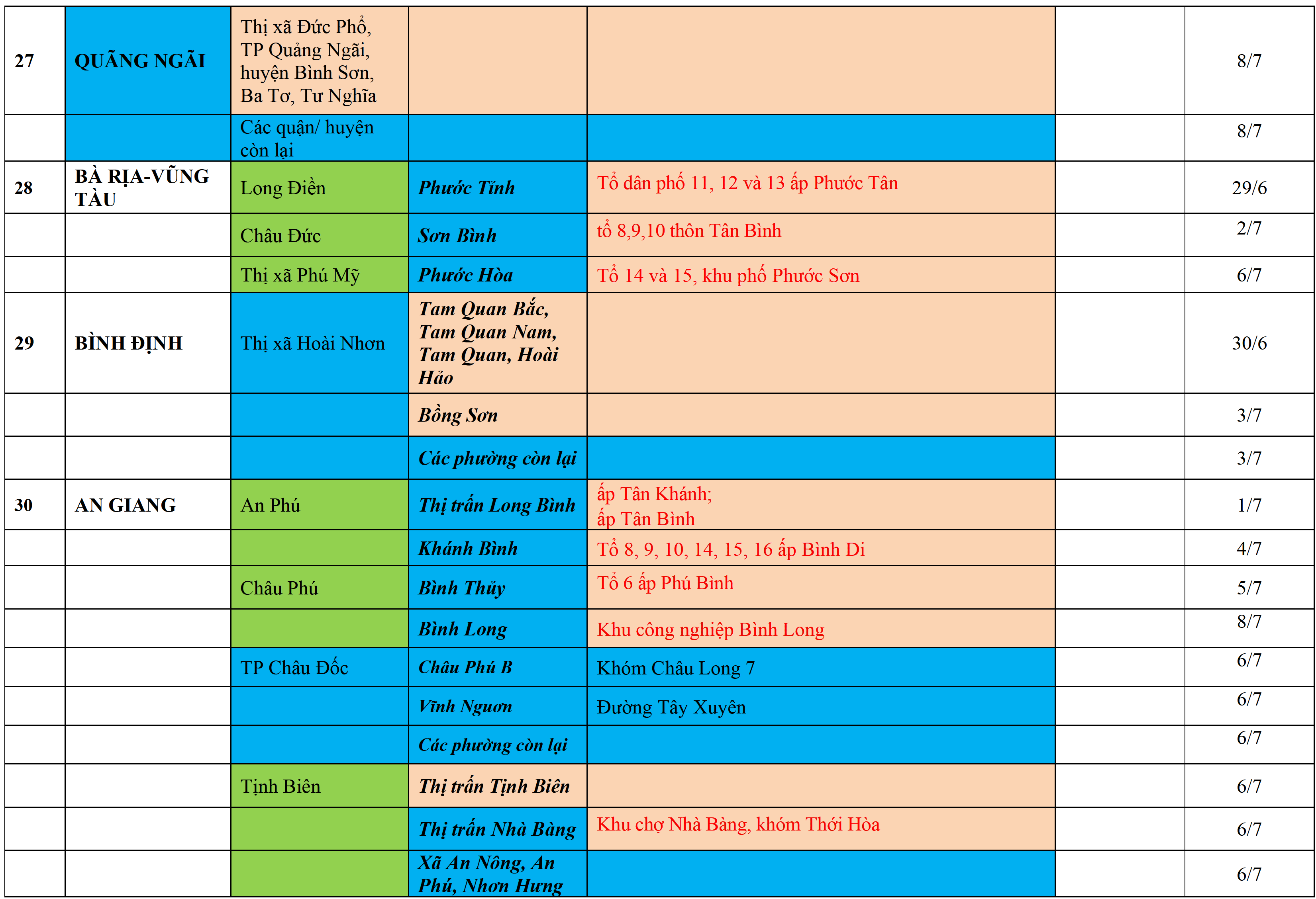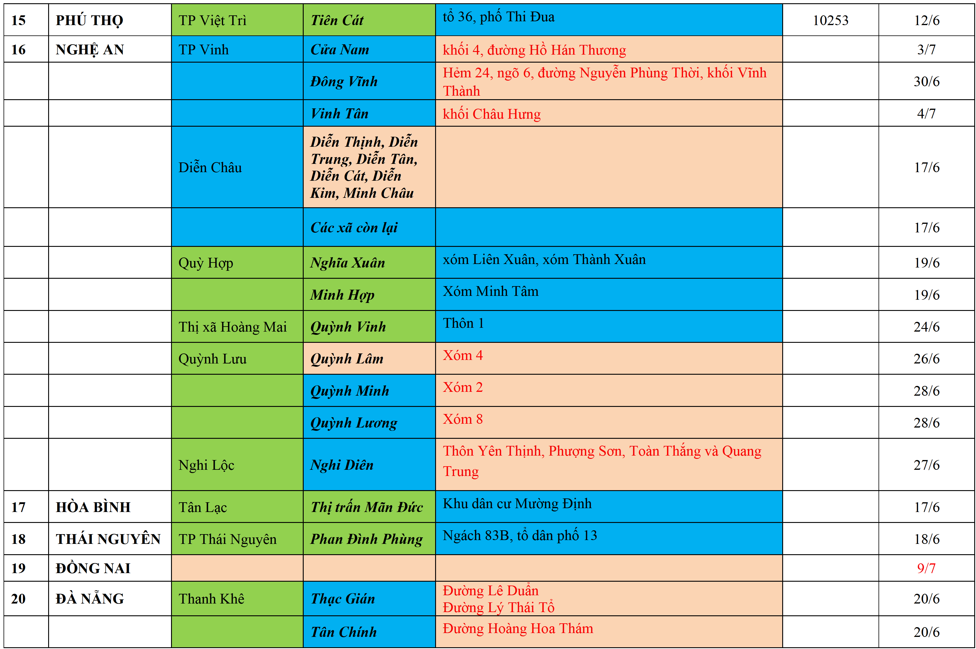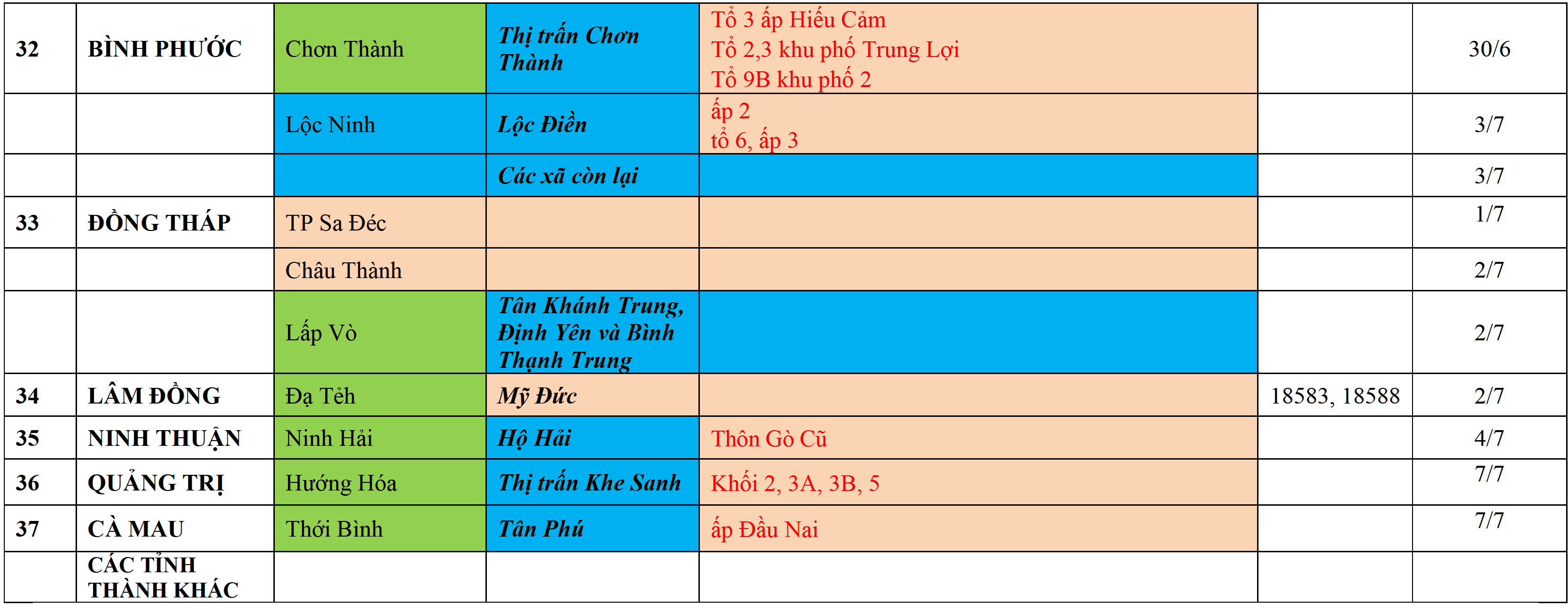 . Áp dụng biện pháp tương ứng màu sắc ô cột theo thôn xóm; xã phường; quận huyện; tỉnh thành phố. Cách ly y tế dựa vào việc tiếp xúc, đi đến địa điểm và nơi cư trú có ca bệnh, theo Thông báo của Bộ Y tế, các tỉnh thành phố.
