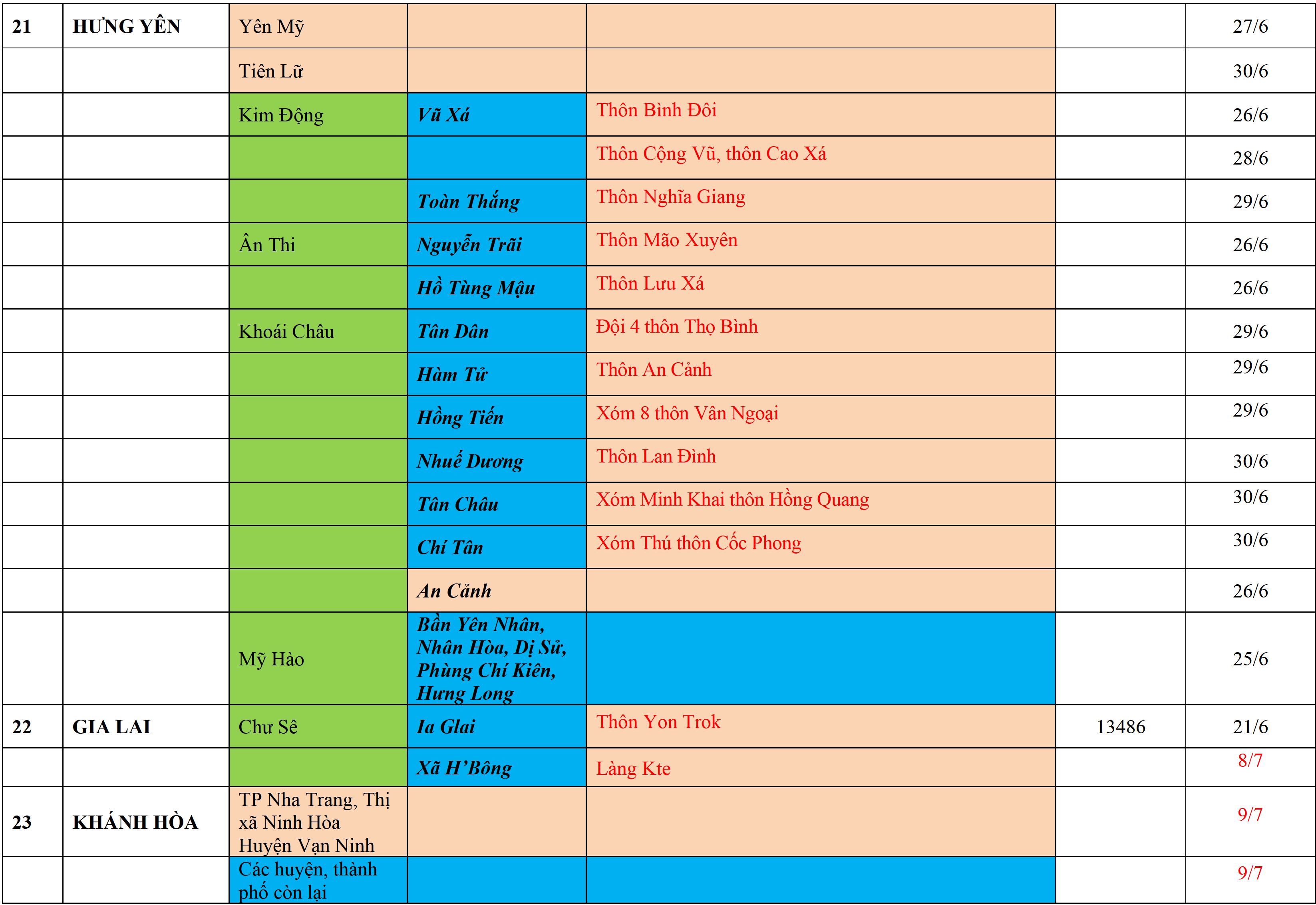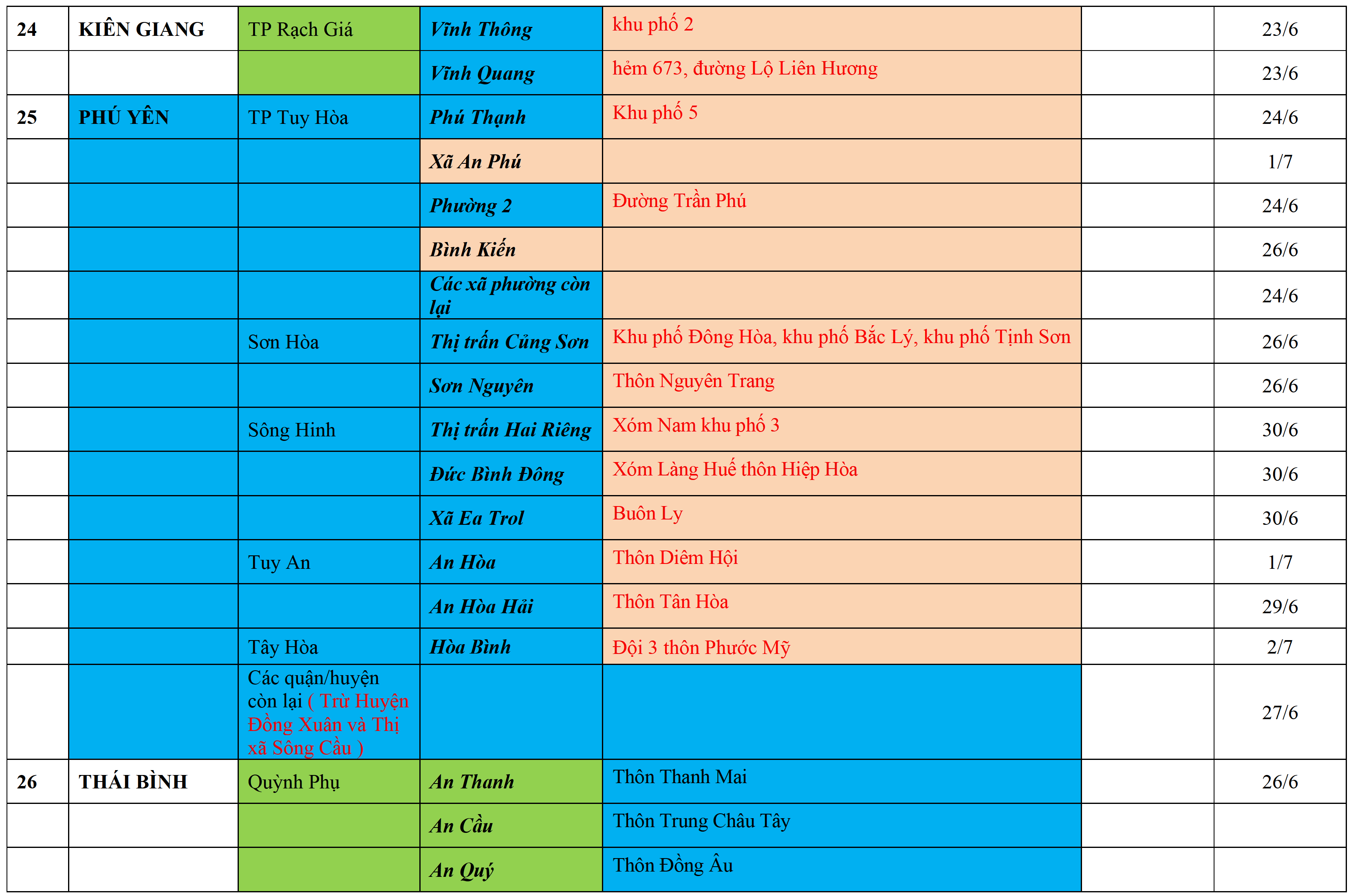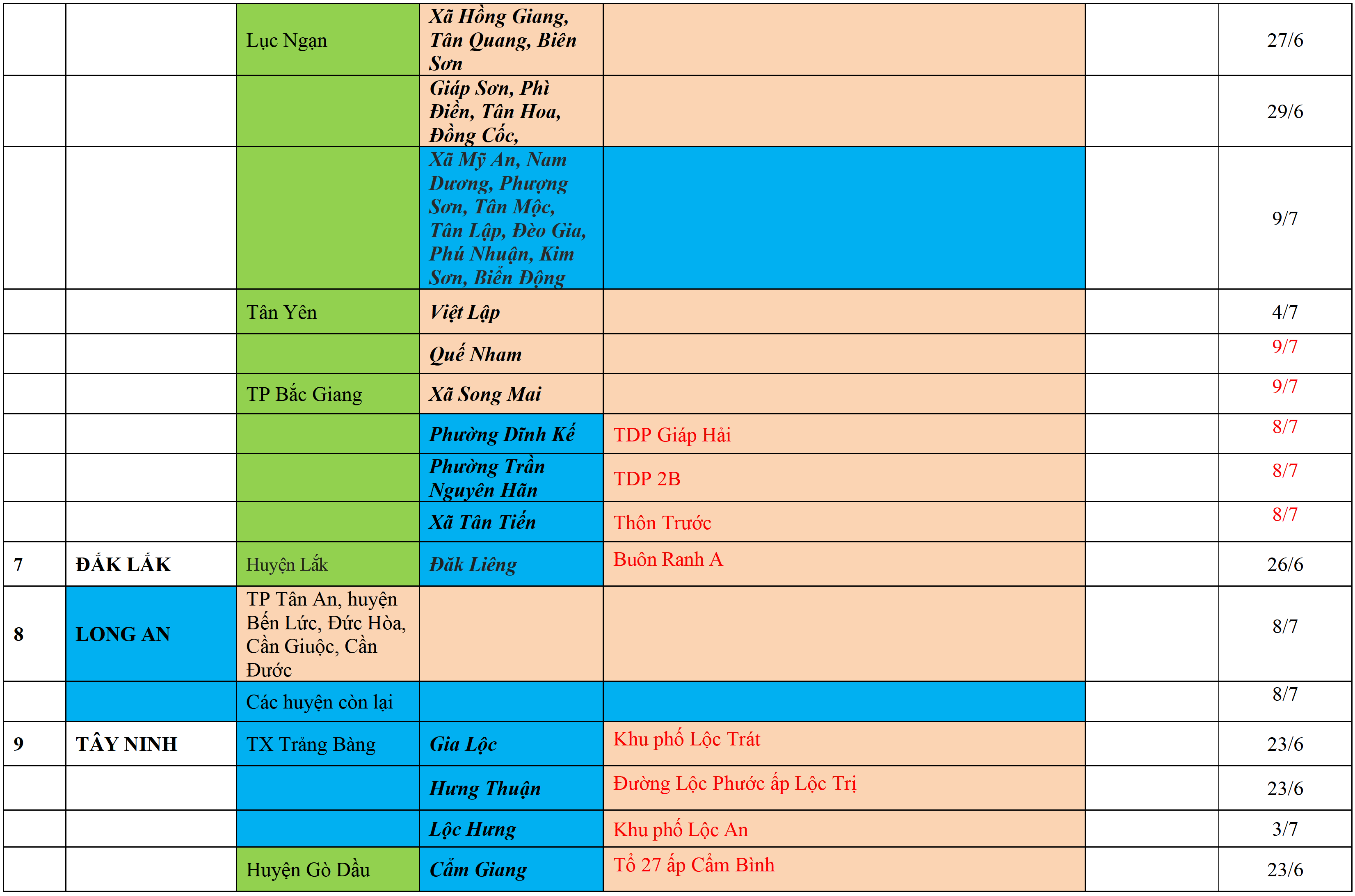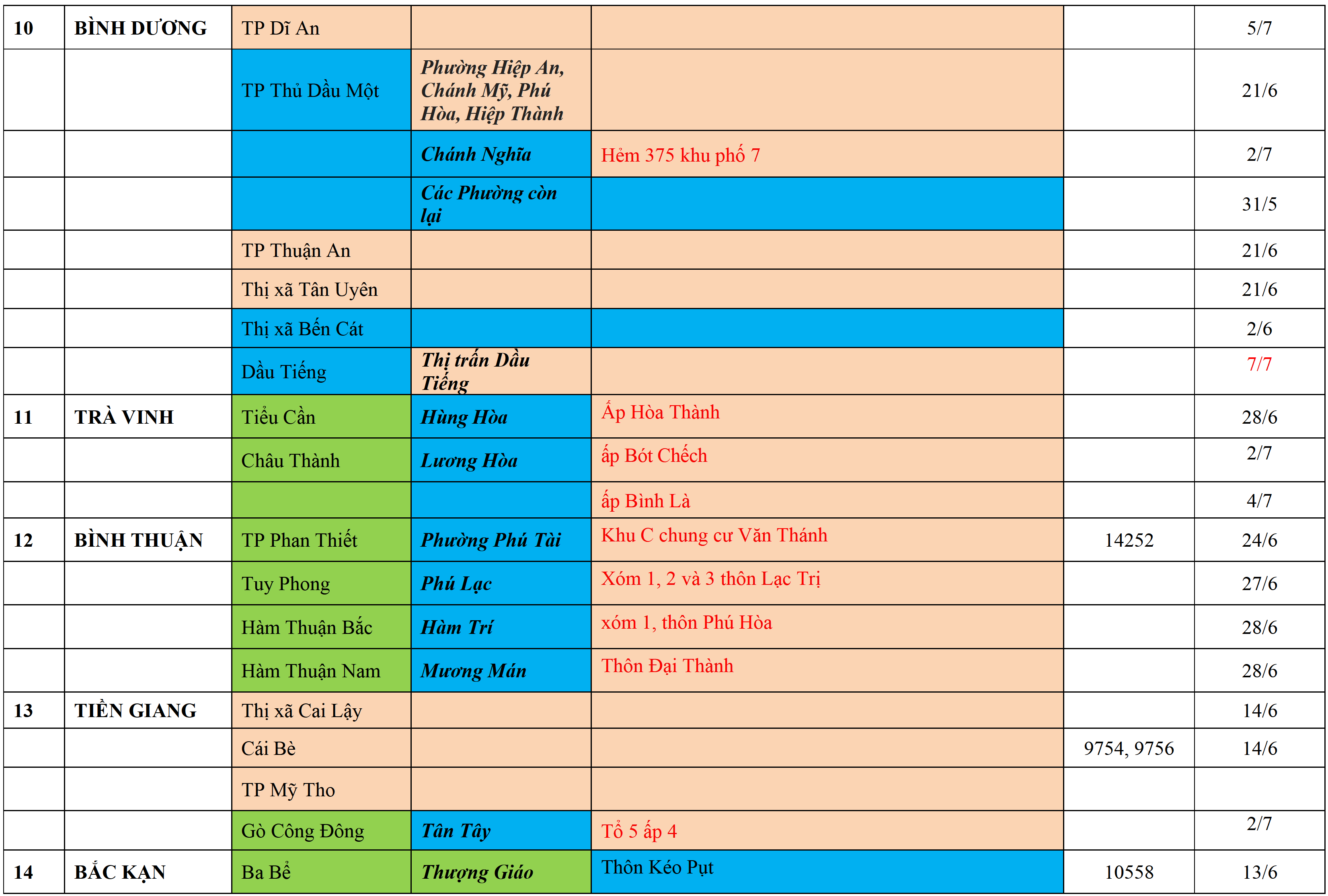 . Áp dụng biện pháp tương ứng màu sắc ô cột theo thôn xóm; xã phường; quận huyện; tỉnh thành phố. Cách ly y tế dựa vào việc tiếp xúc, đi đến địa điểm và nơi cư trú có ca bệnh, theo Thông báo của Bộ Y tế, các tỉnh thành phố.