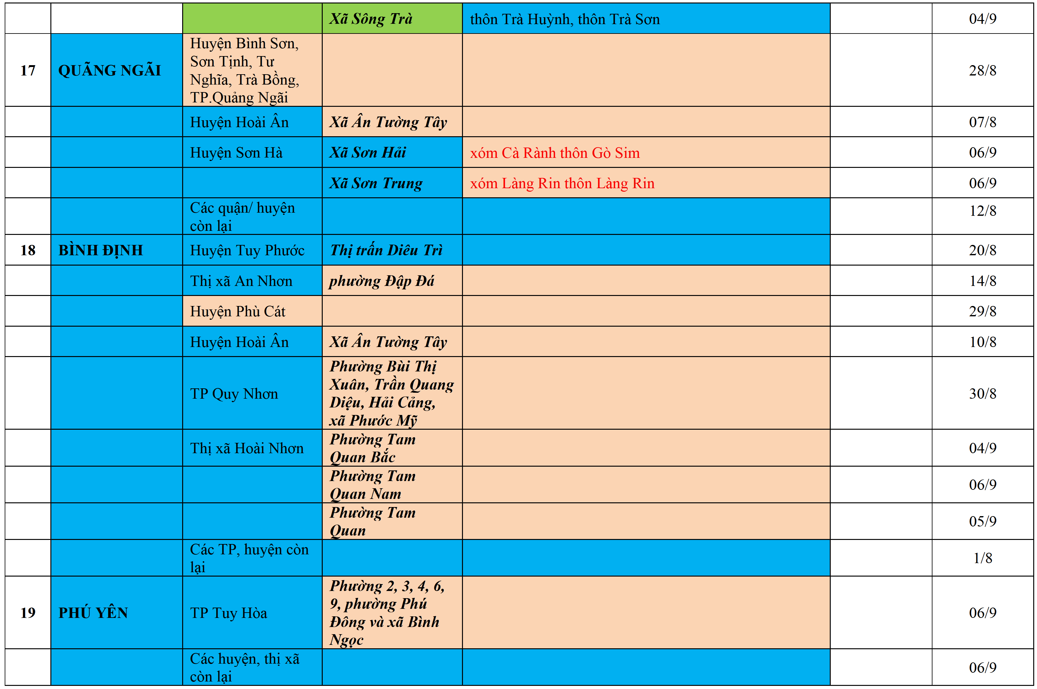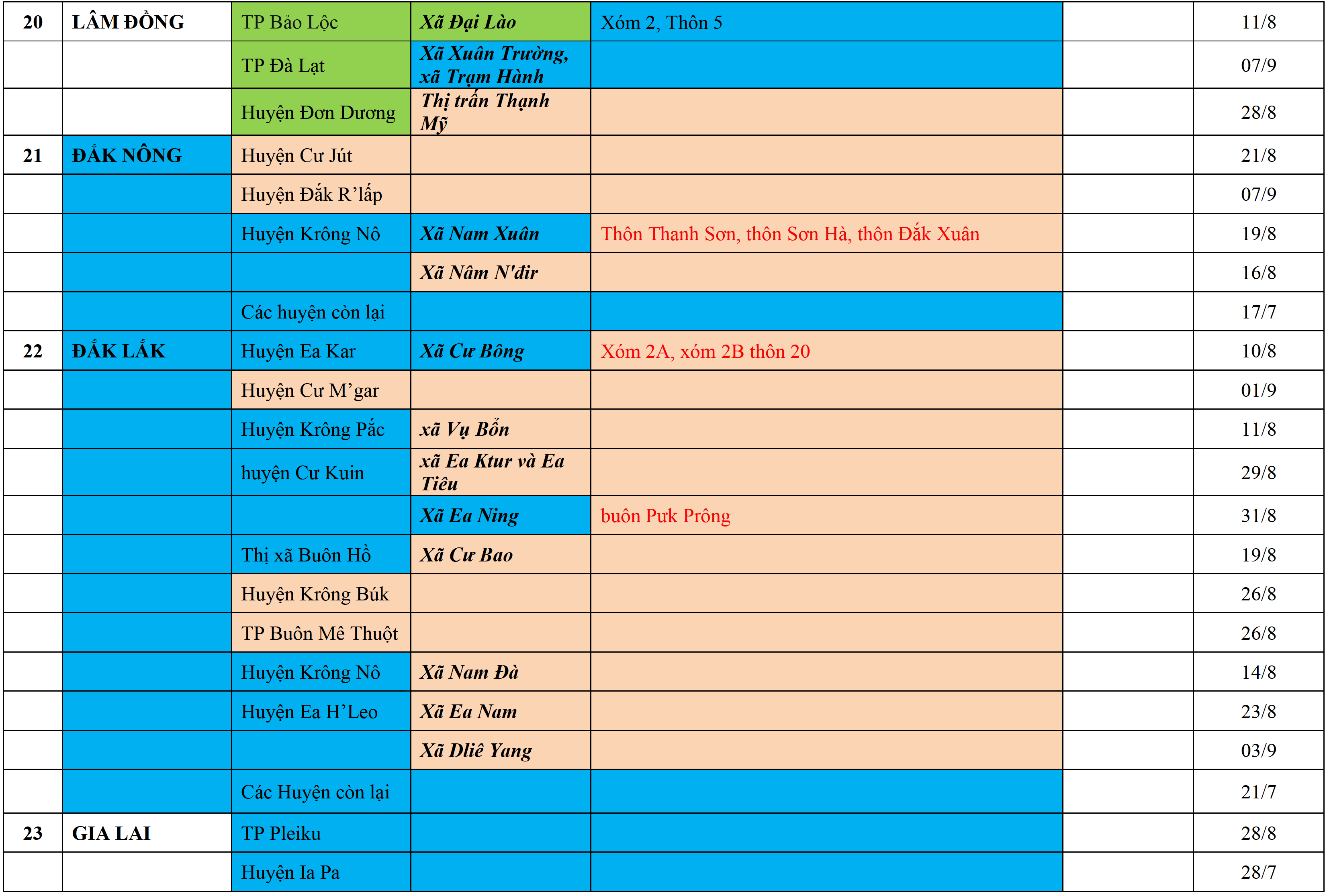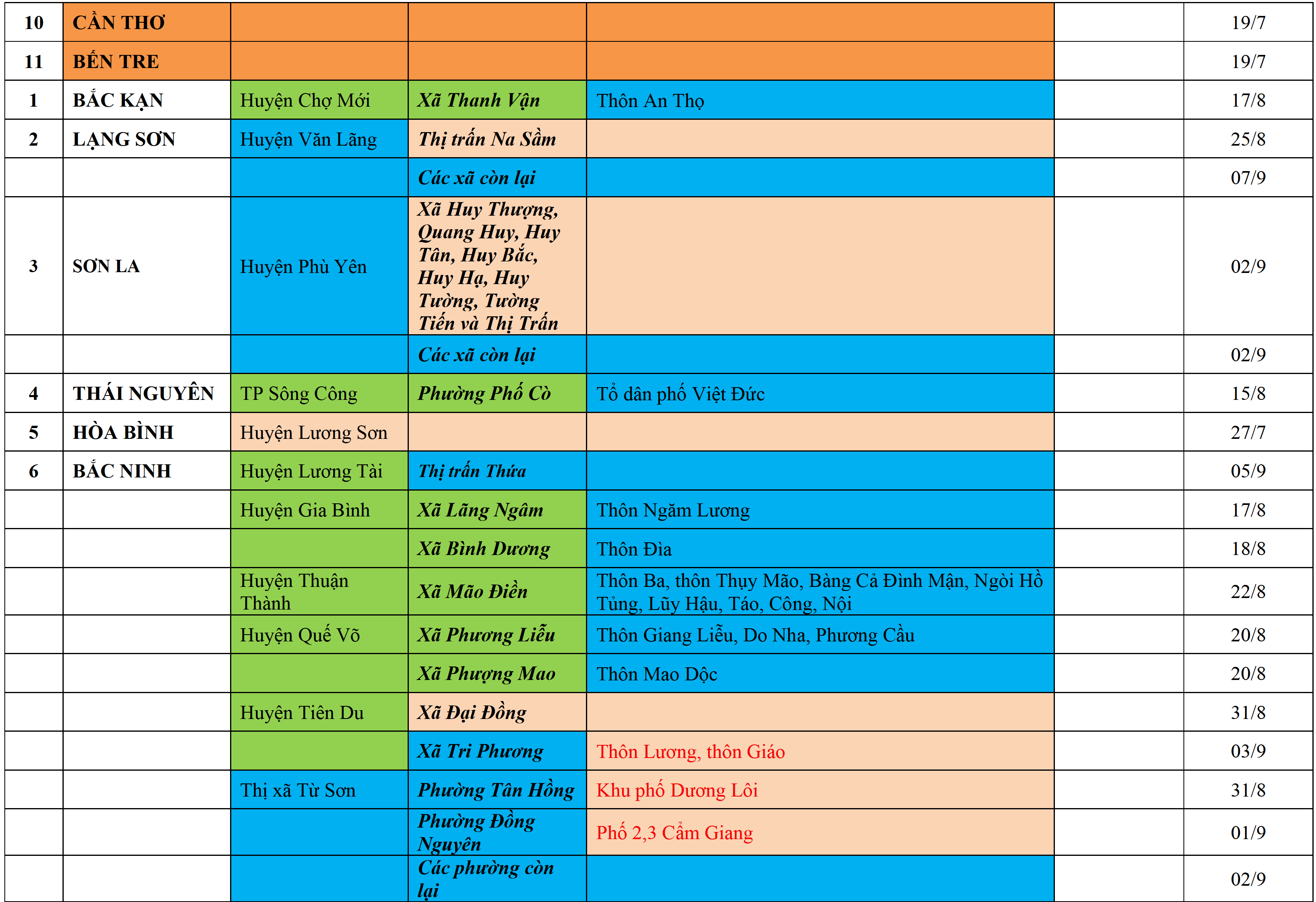 Biện pháp phòng chống dịch: Áp dụng biện pháp tương ứng màu sắc ô cột theo thôn xóm; xã phường; quận huyện; tỉnh thành phố. Cách ly y tế dựa vào việc tiếp xúc, đi đến địa điểm và nơi cư trú có ca bệnh, theo Thông báo của Bộ Y tế, các tỉnh thành phố.