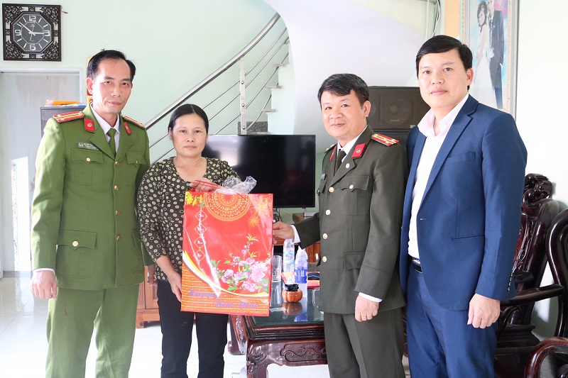 Thượng tá Nguyễn Xuân Đài – Phó Trưởng CAQ Đồ Sơn thừa ủy quyền của đồng chí Đại tá Lê Nguyên Trường – Phó Giám đốc CATP trao quà, chúc Tết quần chúng Nguyễn Thị Thủy