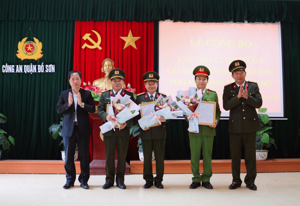 Cũng nhân dịp này, CATP công bố các quyết định về việc: Bổ nhiệm lại chức vụ Phó Trưởng CAQ Đồ Sơn đến thời điểm đủ tuổi nghỉ chờ hưu đối với đồng Thượng tá Nguyễn Xuân Hạnh; bổ nhiệm lại có thời hạn chức vụ Phó Trưởng CAQ Đồ Sơn đối với Thượng tá Nguyễn Xuân Đài; điều động Thượng tá Vũ Văn Cường, Phó Trưởng CAQ Đồ Sơn đến nhận công tác và giữ chức vụ Phó Trưởng CAQ Ngô Quyền.